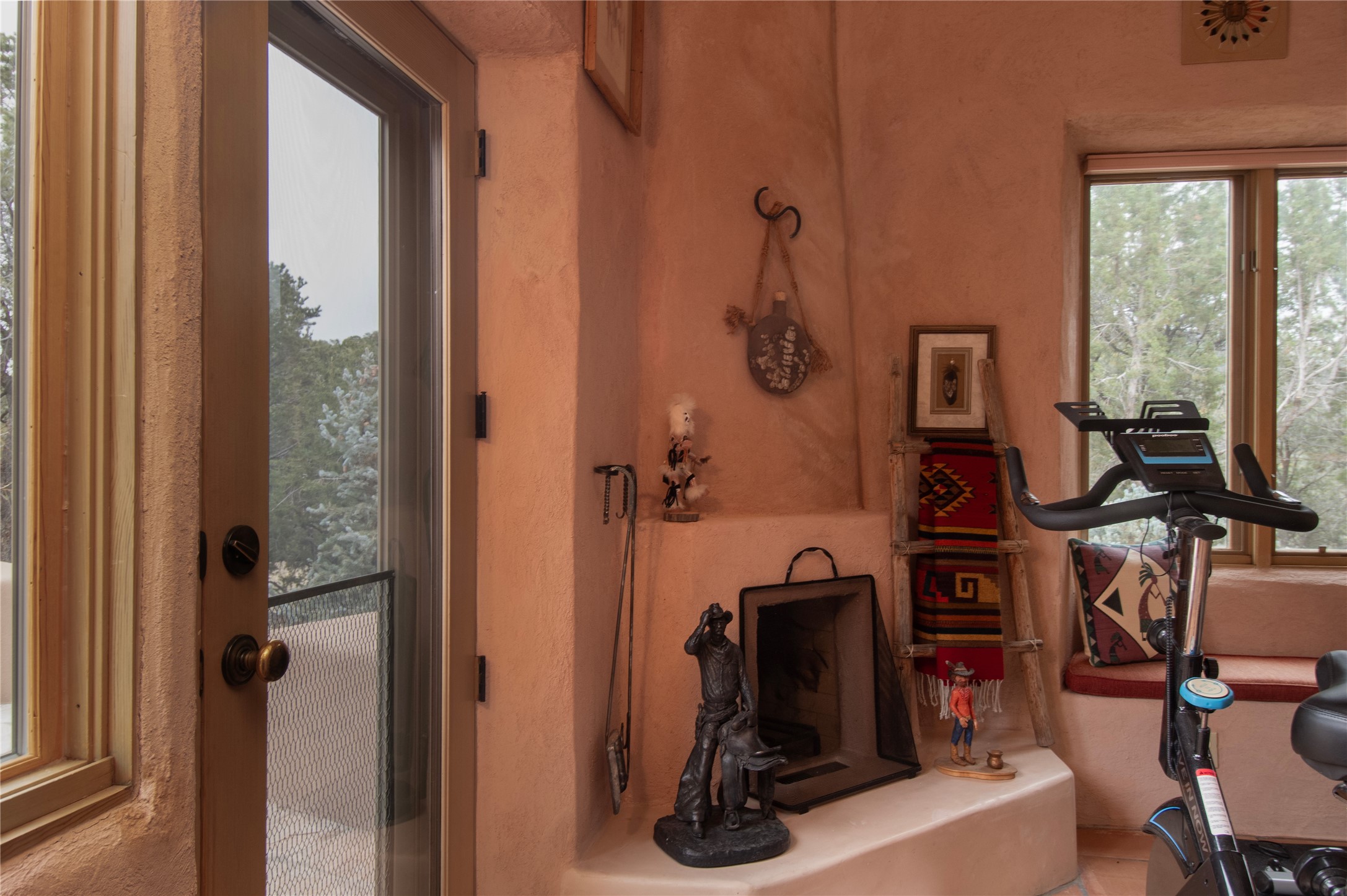 HIDDEN GEM IN THE OUTSTANDING EL CANON NEIGHBORHOOD - 4 BED | 5 BATH | 2 CARG - On a cul-de-sac tucked into the ridge top of a private canyon enclave in the upper east heights of the Cerro Gordo + Upper Canyon Road corridor, this 4 Bed, 5 Bath home boasts beautifulnorth east views of the Sangre de Cristos foothills and the Jemez Mountains.Designed by Robert Nestor the pueblo architecture and regional style make you feel right at home with the natural surroundings.This home is a true nest high in the foothills. A beautiful and dramatic entry features a calming fountain. Large vigas and beautiful decking, latillas, and split cedargrace the ceilings.Floor to ceiling glass doors on eitherside of the great room open this home up to the sky.With 4 bedrooms featuring en suite baths, this is a great home for hosting family or friends. This home has a wonderful layout with great separation of guest rooms from the main suite. One of the bedrooms is wonderfully situatedto double as an office and home gym. Mature trees and tiered rock garden beds make for privacy and a wonderful outdoor experience.Traditional Talavera tile kitchen and baths bring warmth and craft to this pueblo charmer.The kitchen is complete with breakfast nook, desk center, large kitchen island, hardwood cabinetry and walk-through pantry.The outdoor covered portal overlooking the hillsides is perfect for morning coffee or grilling dinner. Saltillo floors, skylights, and wood burning fireplaces bring comfort and brightness. A wonderfully handmade New Mexican tin chandeliersand sconce enhance the entry and guest wing.Sandstone patio and garden paths merge beautifully with the landscape, and a hot tub deck provides relaxation for soaking in the sun. While providing great privacy this home is only a short drivethrough the beautiful canyon into town and makes daily outings easy and pleasant. Don't miss the chance to own this slice of traditional pueblo living with views on the eastside!