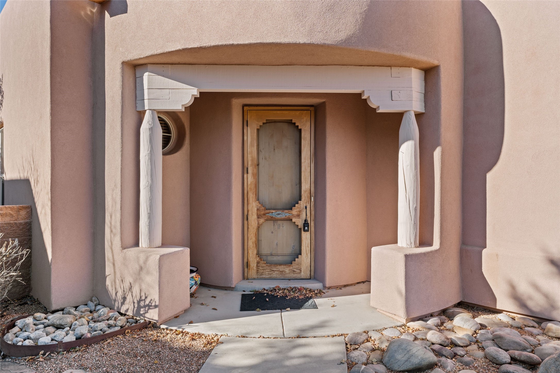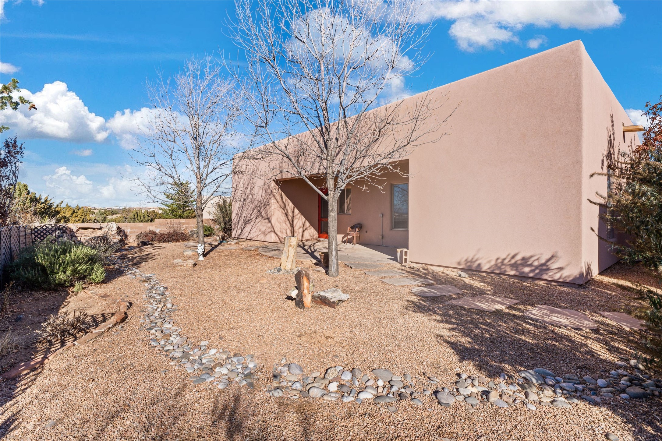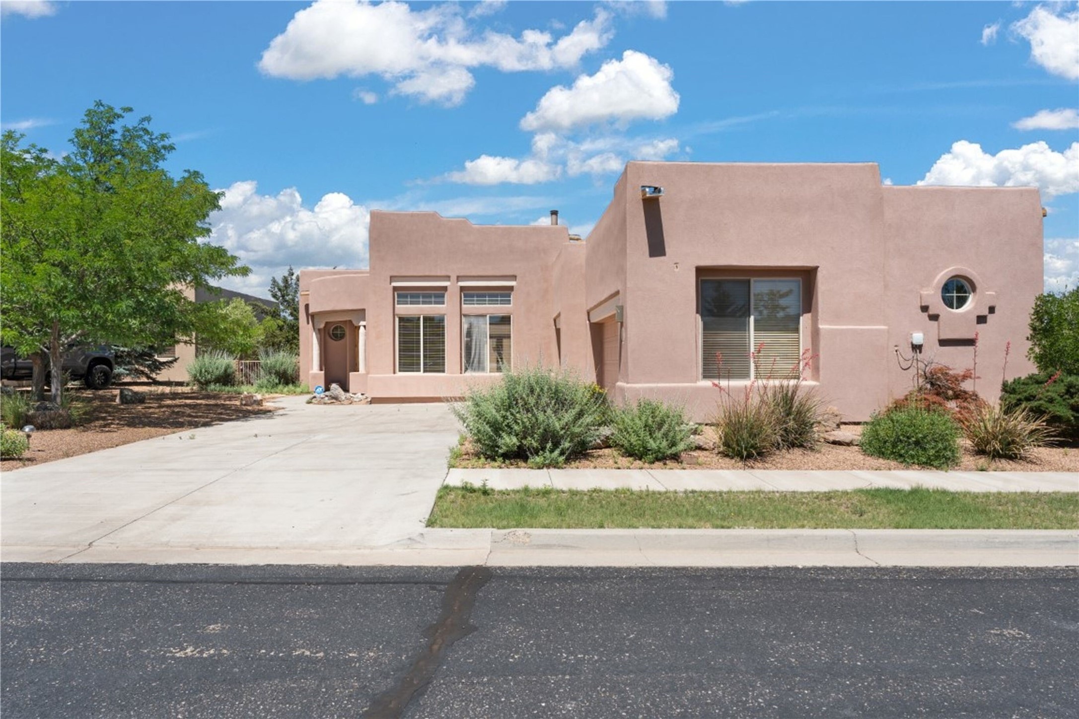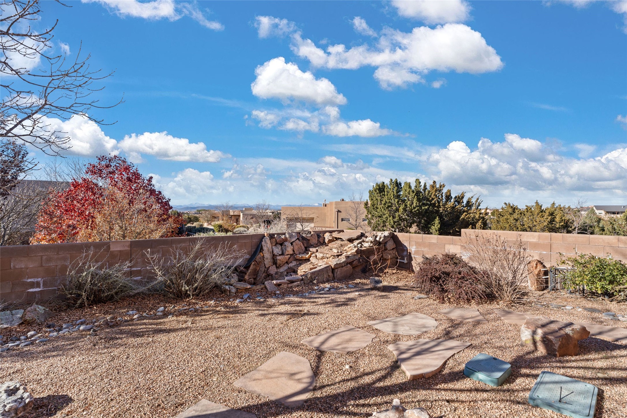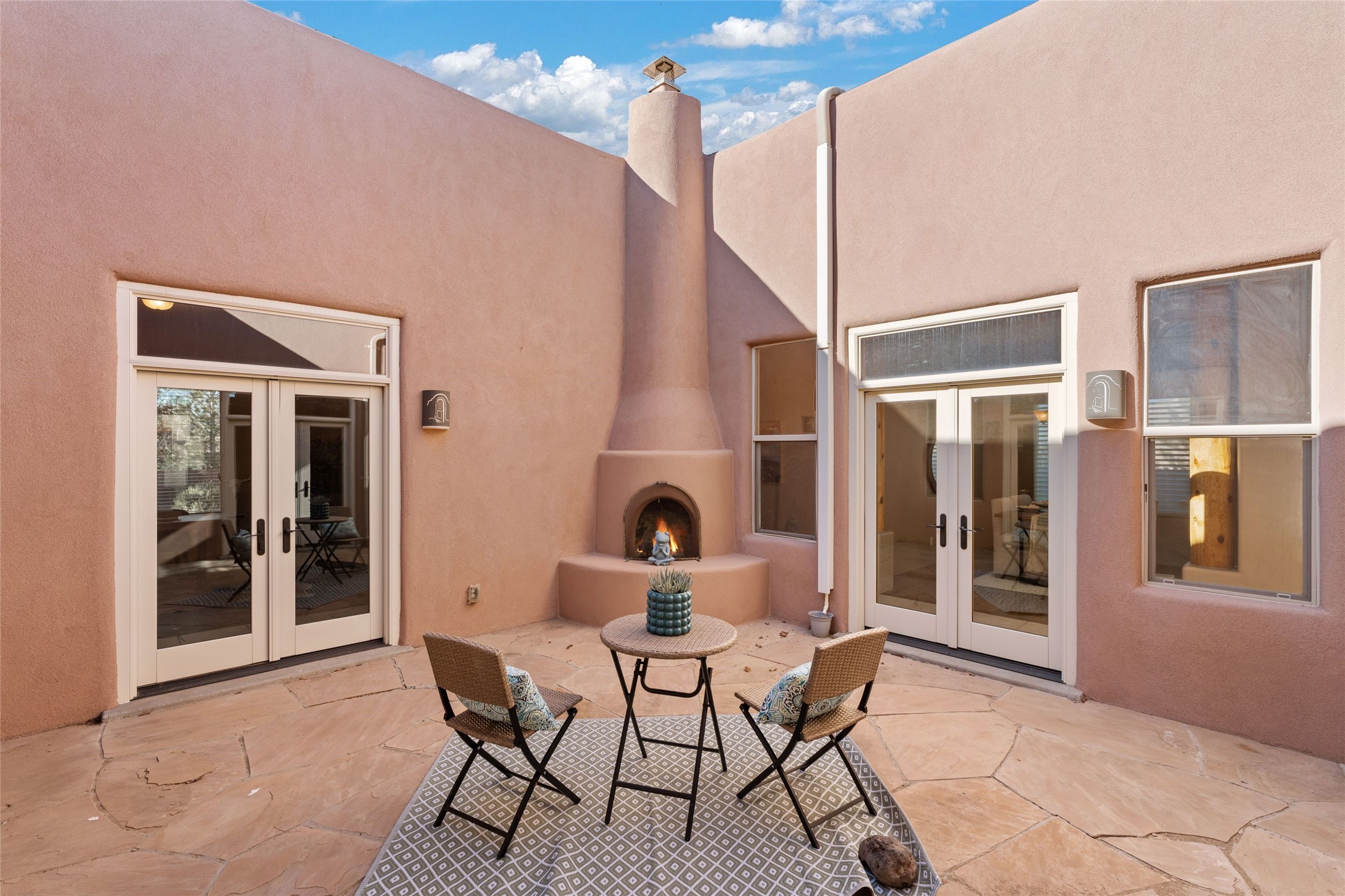 This gracious home, featuring a central courtyard, tile flooring, carpet only in primary bedroom, one gas and one wood burning Kiva fireplace, vigas in the living room, a study / TV room, formal and informal dining rooms, a gorgeous spa primary bathroom with glass blocks for soft light, a gourmet kitchen with stainless steel appliances, a new roof, and a three-car garage. Madre Mountain is a beautiful boulevard setting. This elegant home is a delight to experience!