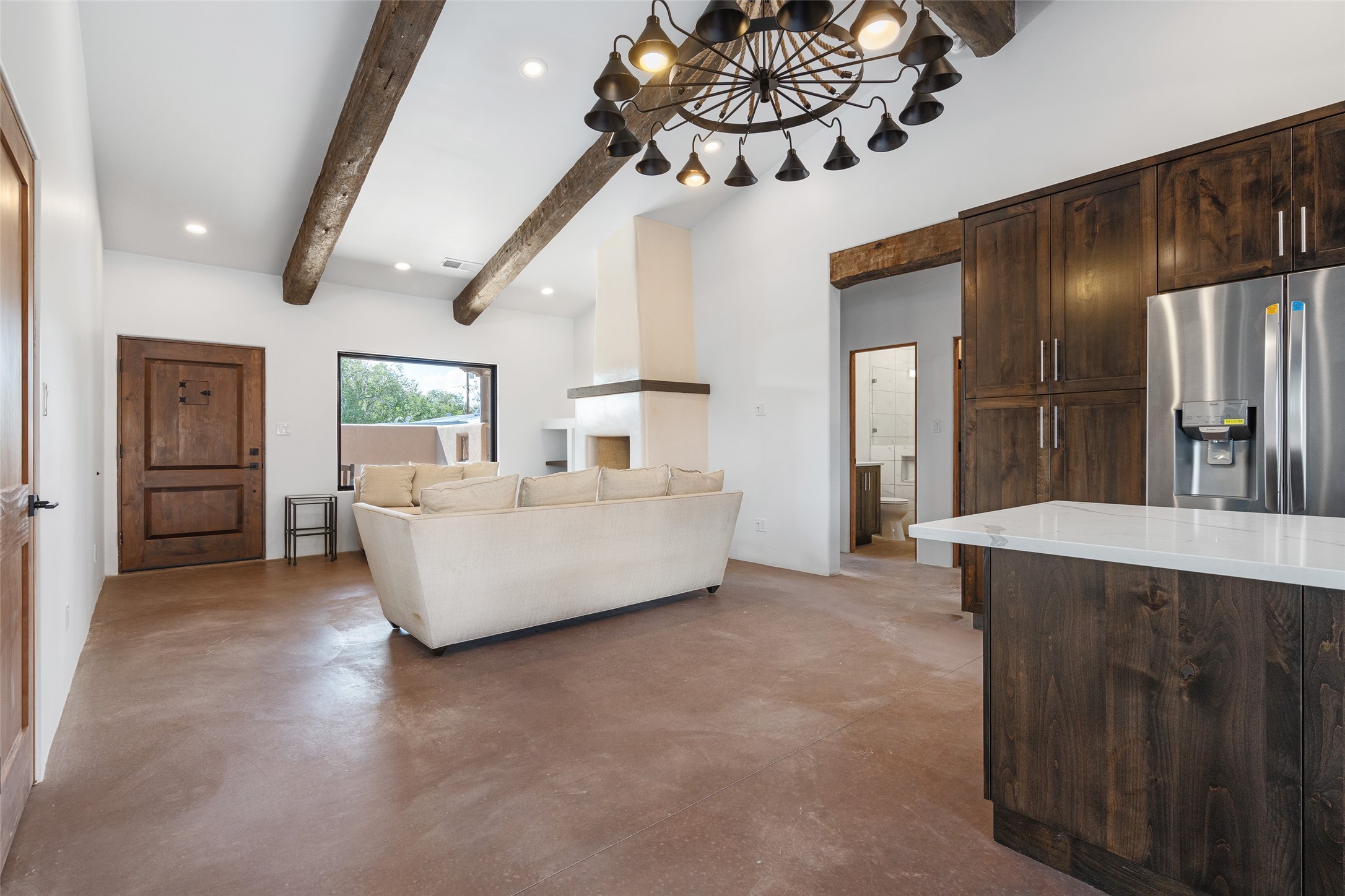 Experience the best of new Santa Fe living at 213 S El Rancho in the Alameda Park area. Built by Parade of Homes 2023 award-winning builder Arnoldo Carrillo of Carrillo Construction, this brand-new 2,437 sq. ft. residence blends modern design with timeless Southwestern character. The open, light-filled interiors feature quality finishes throughout, while the attached casita/guest quarters offer versatile space for visitors, multigenerational living, or a private studio. This beautiful home has 3 bedrooms and 3 bathrooms with a full 1 bedroom, 1 bathroom Casita with a private entry. A 2-car garage and prime location near trails, shopping, and dining complete this exceptional home.