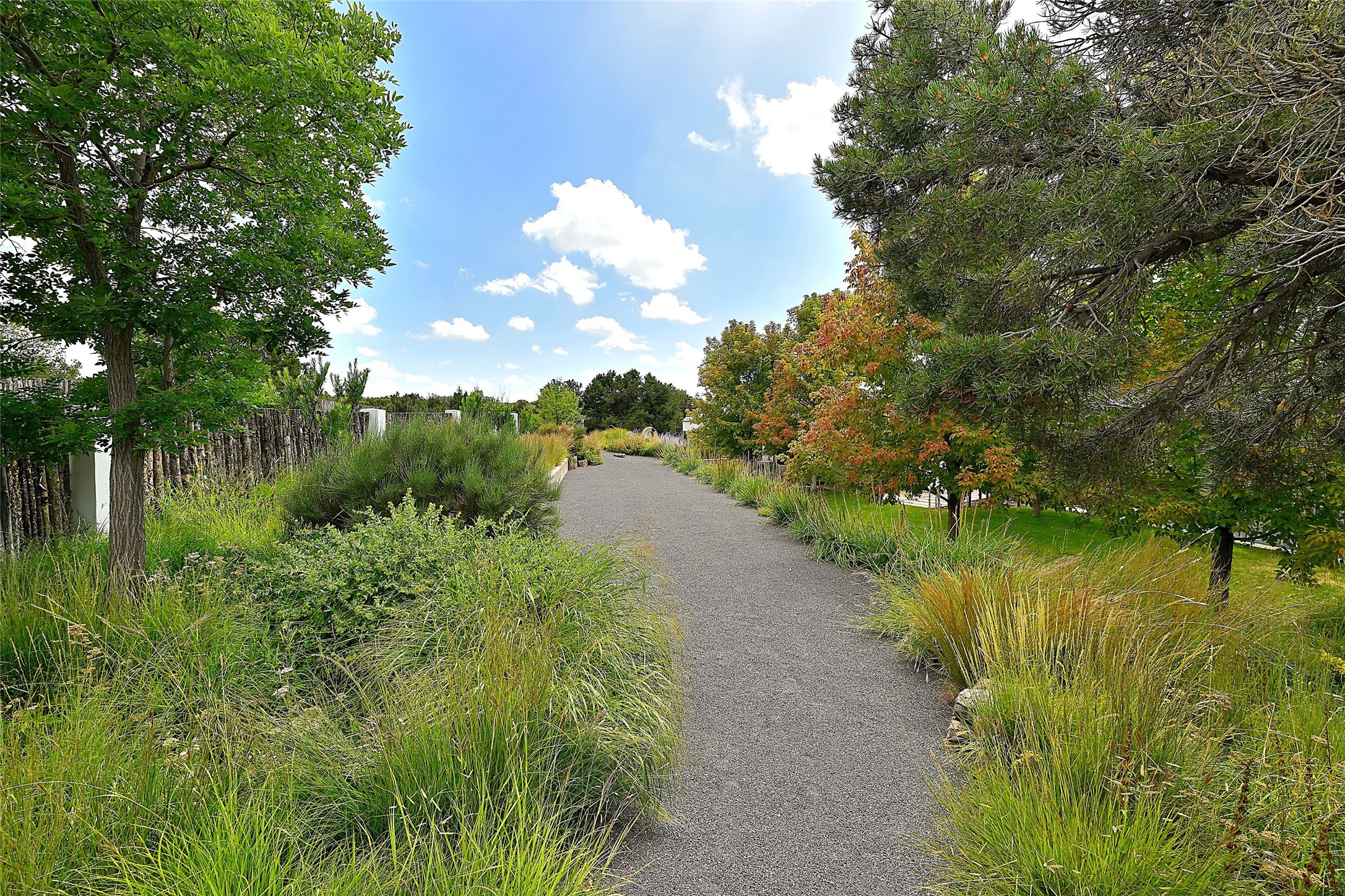 Wind your way along lovely Tano Rd. to this fabulous creatively contemporary estate. The original part of the home was designed by award winning architect, Jeff Harner and built in 2000. In 2018, an addition paid homage to his design, more than doubling the size of the home, but keeping a continuity to the conceptual contemporary creation. Natural light from windows integrate into every part of the home melding its beautifully composed and landscaped exteriors with its exceptional interior spaces. In addition to its pure design aesthetic of sleek and sophisticated living, great attention went into making the home an organizational dream, with ability to store and organize within drawers, cabinetry and closets. This unparalleled home provides an exquisite place to entertain and enjoy life. Quality materials, cabinetry, appliances, fixtures and finishes create one of the most strikingly designed homes in all of Santa Fe.The home has a crisp, light and enchanting feel, with detailed perfection in both design and execution. The rooms are Spacious and versatile. Elegant landscaping and a private gated setting assure views and tranquility. A 2 bedroom guest house was added in 2023 and the adjacent 2.5 acre lot was purchased for added privacy. The lot is offered separately.