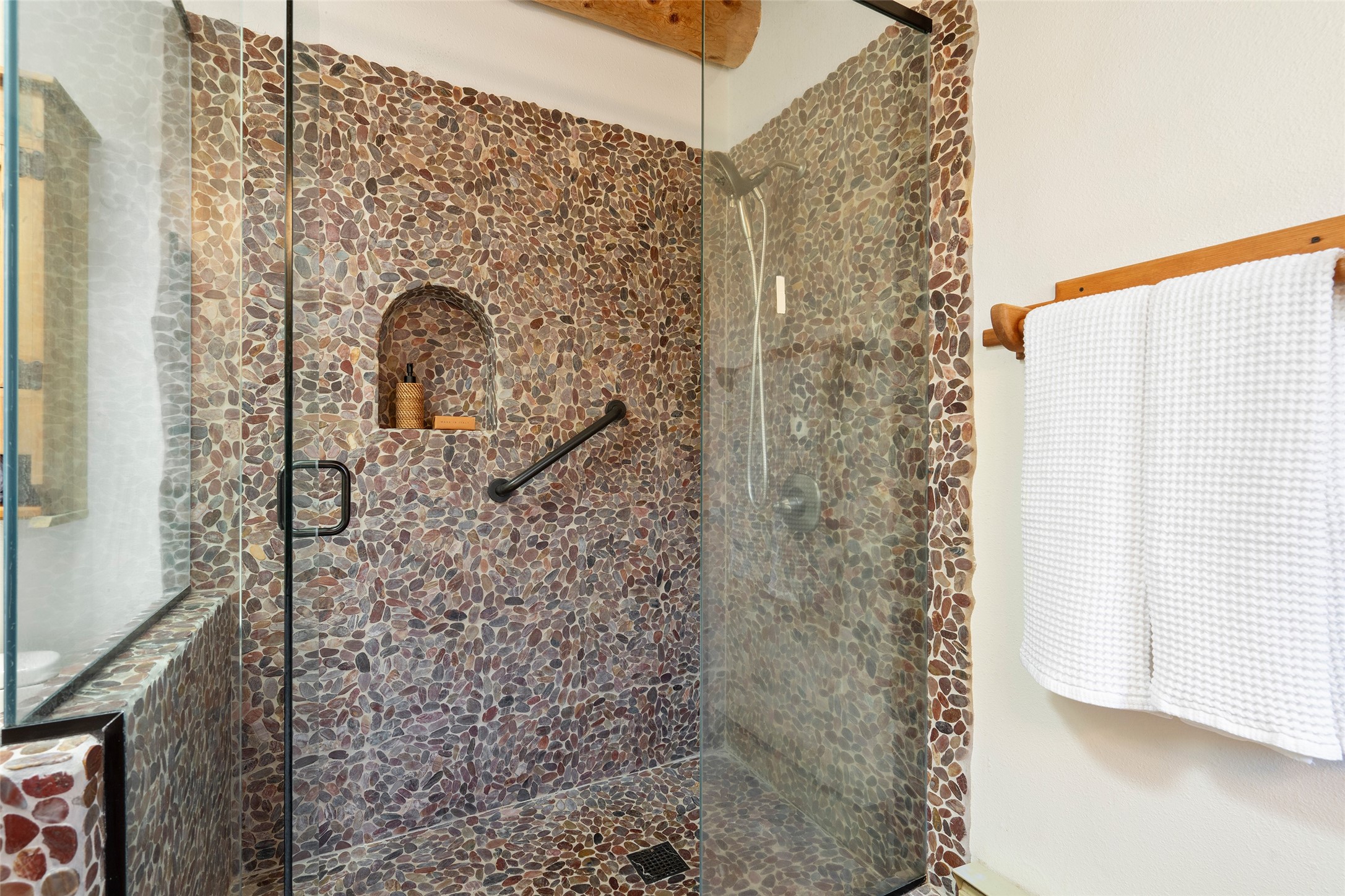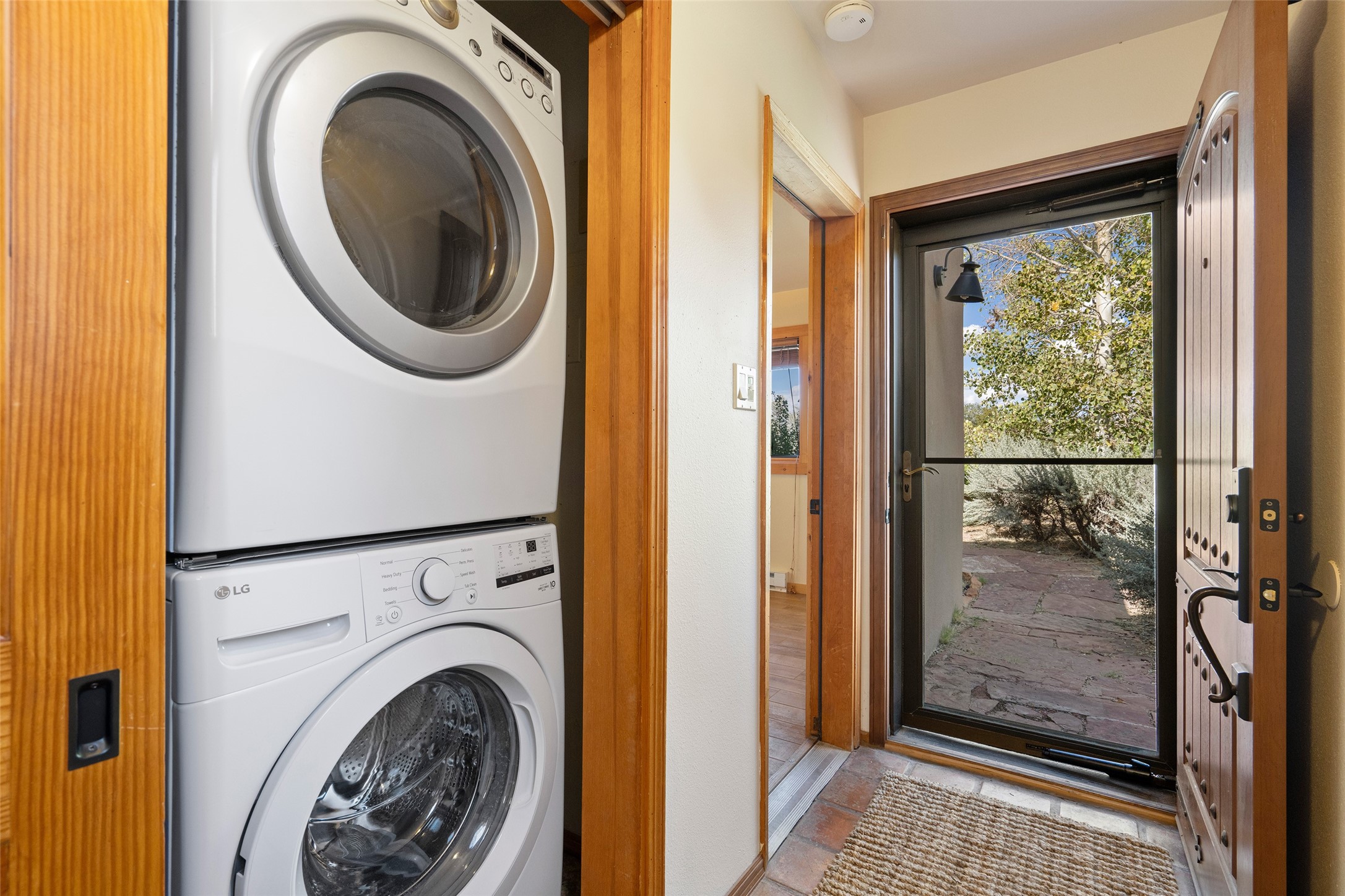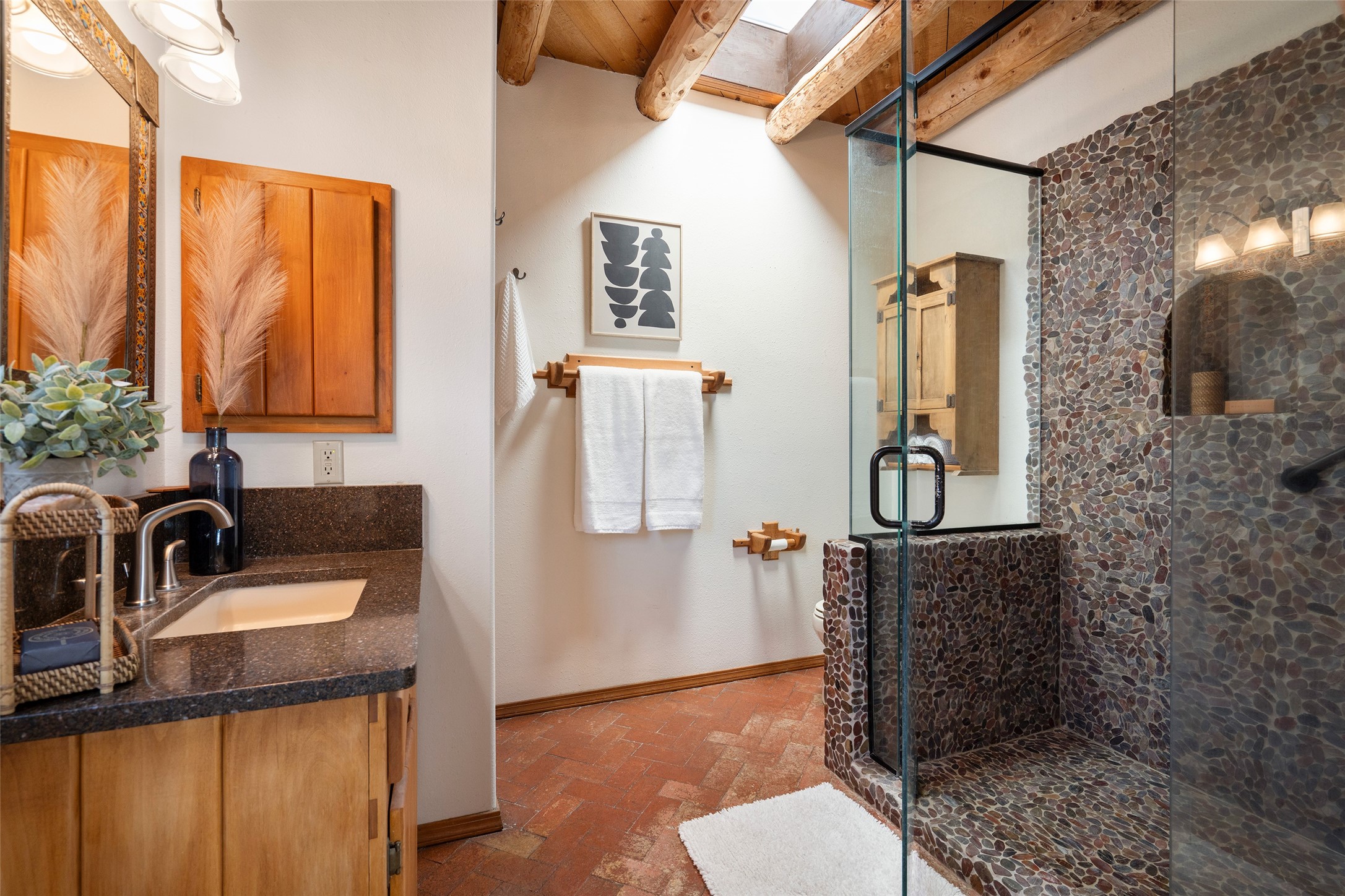 Discover the perfect blend of Santa Fe charm and modern comfort in this beautifully updated 3-bedroom, 3-bathroom home. Perched to capture breathtaking mountain views, and with two primary suites, this home offers an inviting retreat with plenty of space to relax and entertain guests. This home is well balanced with cozy, intimate living spaces and a sunroom with floor-to-ceiling windows and sweeping mountain views. A new silicone roof coating with transferable warranty provides peace of mind, while newly installed mini splits keep the home cool and comfortable year-round. Outdoors, the terraced yard creates multiple spaces to enjoy the high desert landscape--ideal for morning coffee, evening sunsets, or gatherings under the starry New Mexico sky. Move-in ready and perfectly situated in Eldorado with a community pool, neighborhood paths, and a nature preserve for hiking all within twenty minutes of downtown Santa Fe.