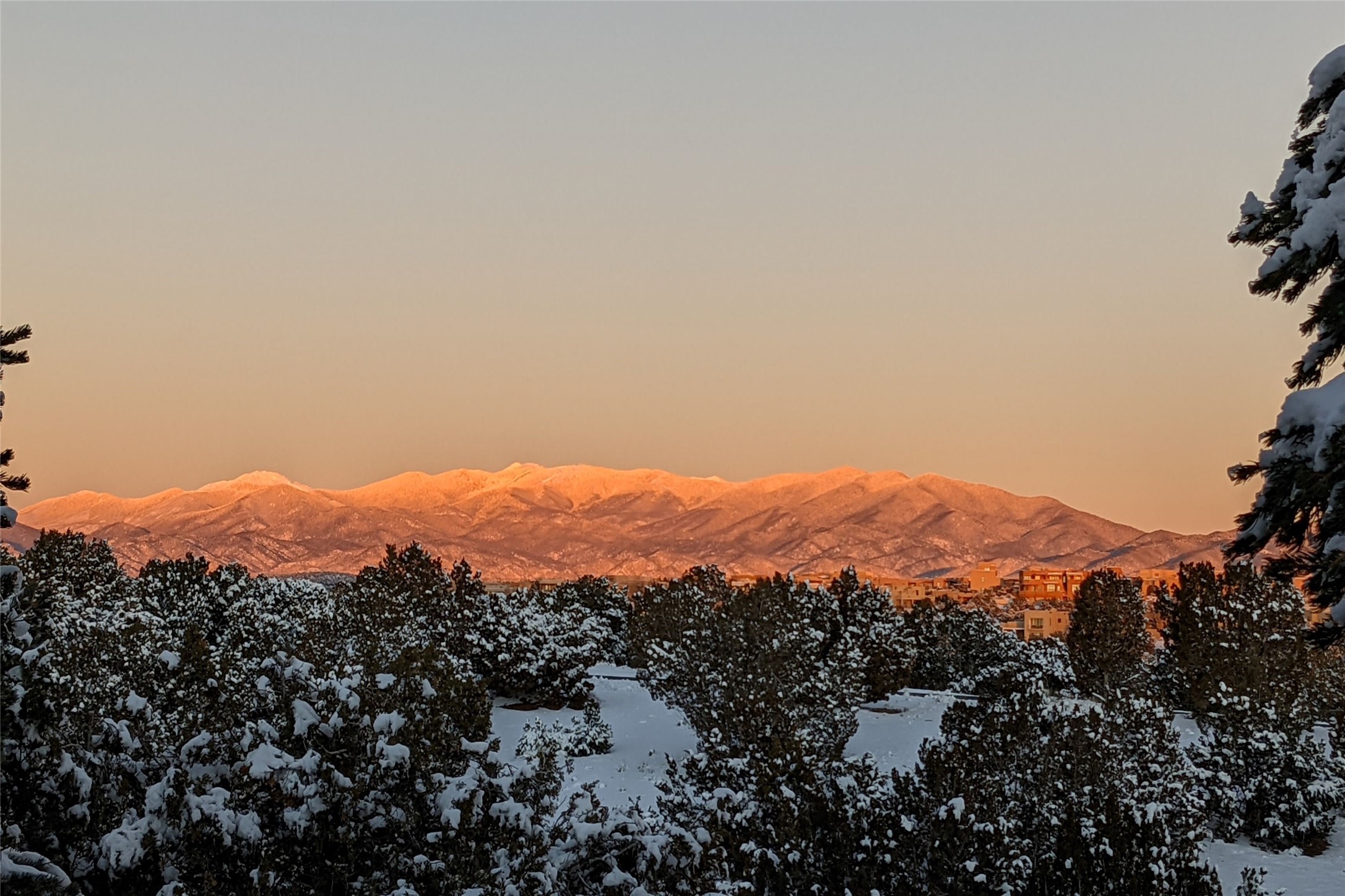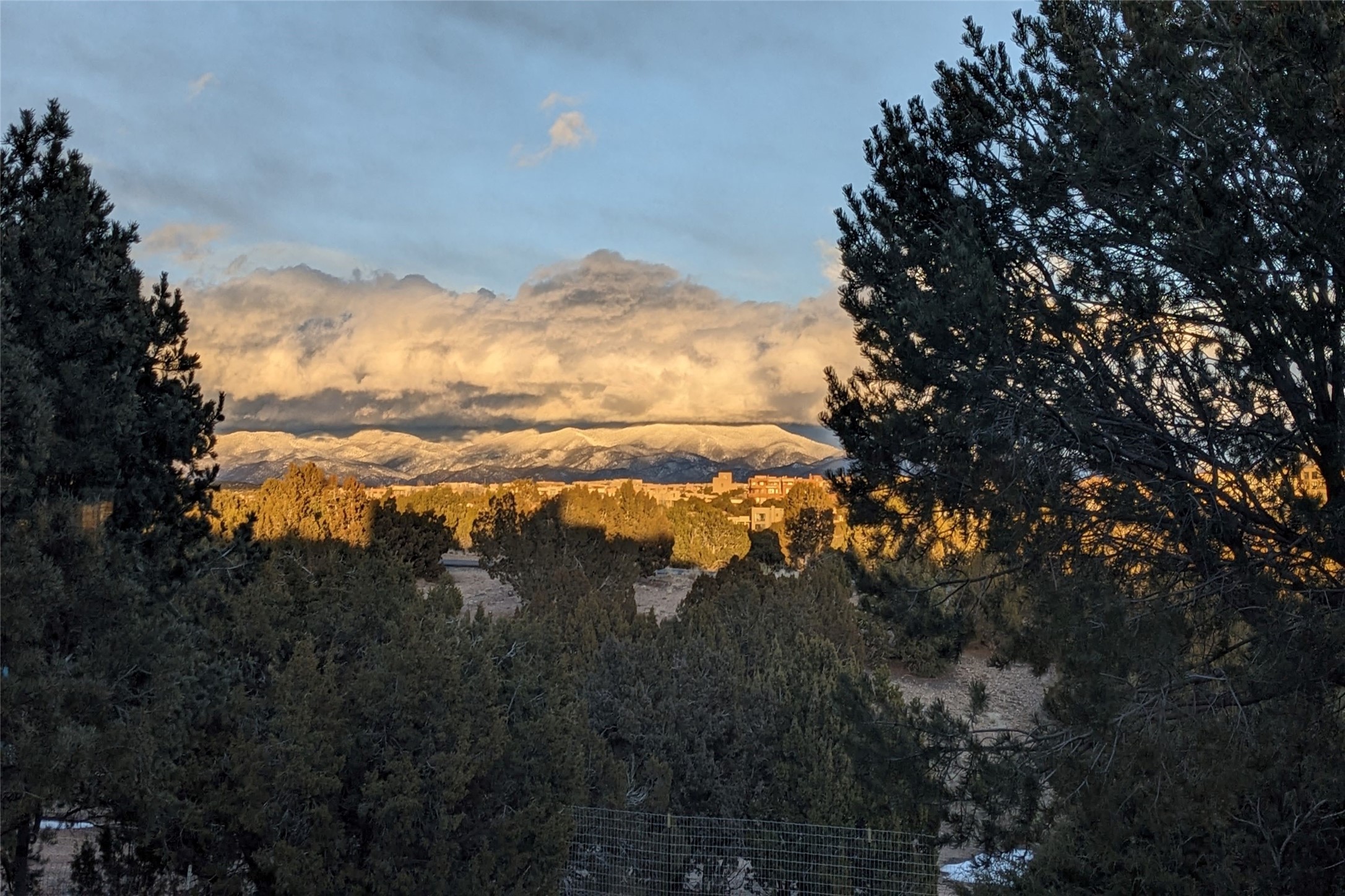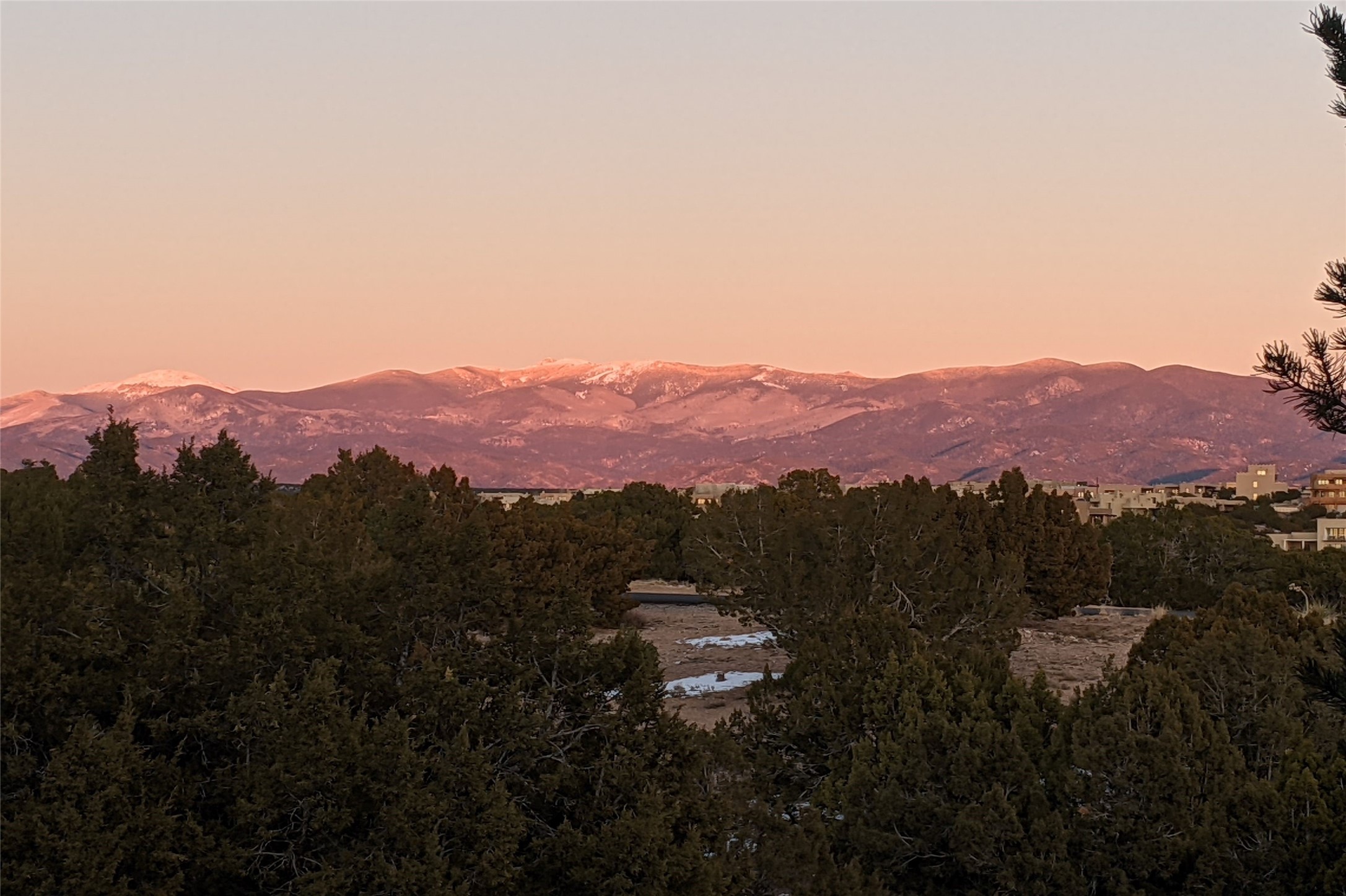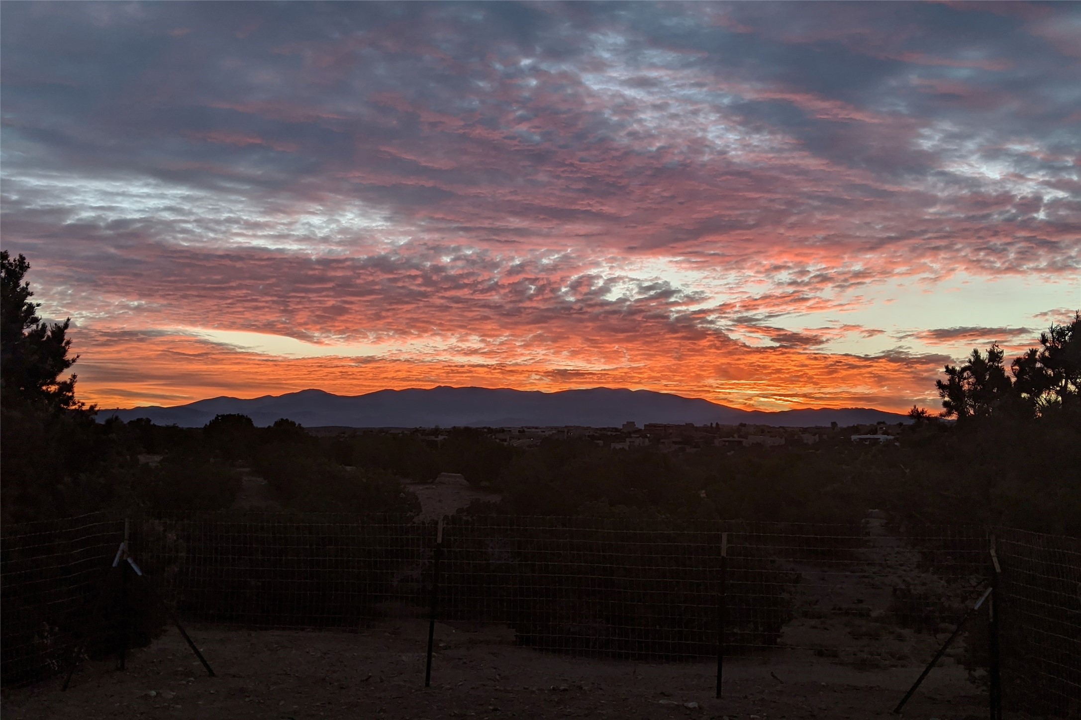 A true Santa Fe masterpiece, this luxurious estate seamlessly blends art, architecture, and nature on a serene 2.46-acre lot with breathtaking views of the Sangre de Cristo mountains. Designed for comfort, sustainability, and inspired living, this extraordinary property offers every amenity for the discerning homeowner.Notable features include double and single-car garages plus a large RV garage, ideal for car enthusiasts, adventure seekers or workshop. The 62-panel solar system and five 2,500-gallon interconnected buried cisterns support an eco-conscious lifestyle, while the extensive drip irrigation system nourishes a lush 1,000 sq. ft. irrigated vegetable garden, orchard (peach, apple, and plum trees), a berry patch bursting with blueberries, blackberries, and raspberries.Enjoy miles of hiking, biking, and horseback riding trails just across the street, or relax in your private oasis with green space bordering the eastern edge of the property, a tranquil water feature with Koi pond, and multiple covered outdoor entertaining spaces, including a plumbed gas fire pit and a fully insulated hot tub.Inside, comfort and luxury abound with radiant floor heating throughout, mini-split systems for cooling, and a security system with cameras. The heart of the home is the spectacular Great Hall, anchored by a gas fireplace, and offering soaring ceilings and an atmosphere of timeless elegance and opening to outdoor spaces. Additional highlights include a top-of-the-line chef's kitchen, butler's pantry, and a quilting/art studio.The estate also includes a charming 2-bedroom guest house and a spacious 2-bedroom studio, also with Sangre de Cristo mountains views. Perfect for guests, extended family, or creative workspaces.There is ample parking for guests and extra vehicles, this estate is ideal for entertaining or enjoying peaceful privacy and solitude. A rare opportunity to own a truly magical home that celebrates the best of indoor-outdoor living in Santa Fe.
