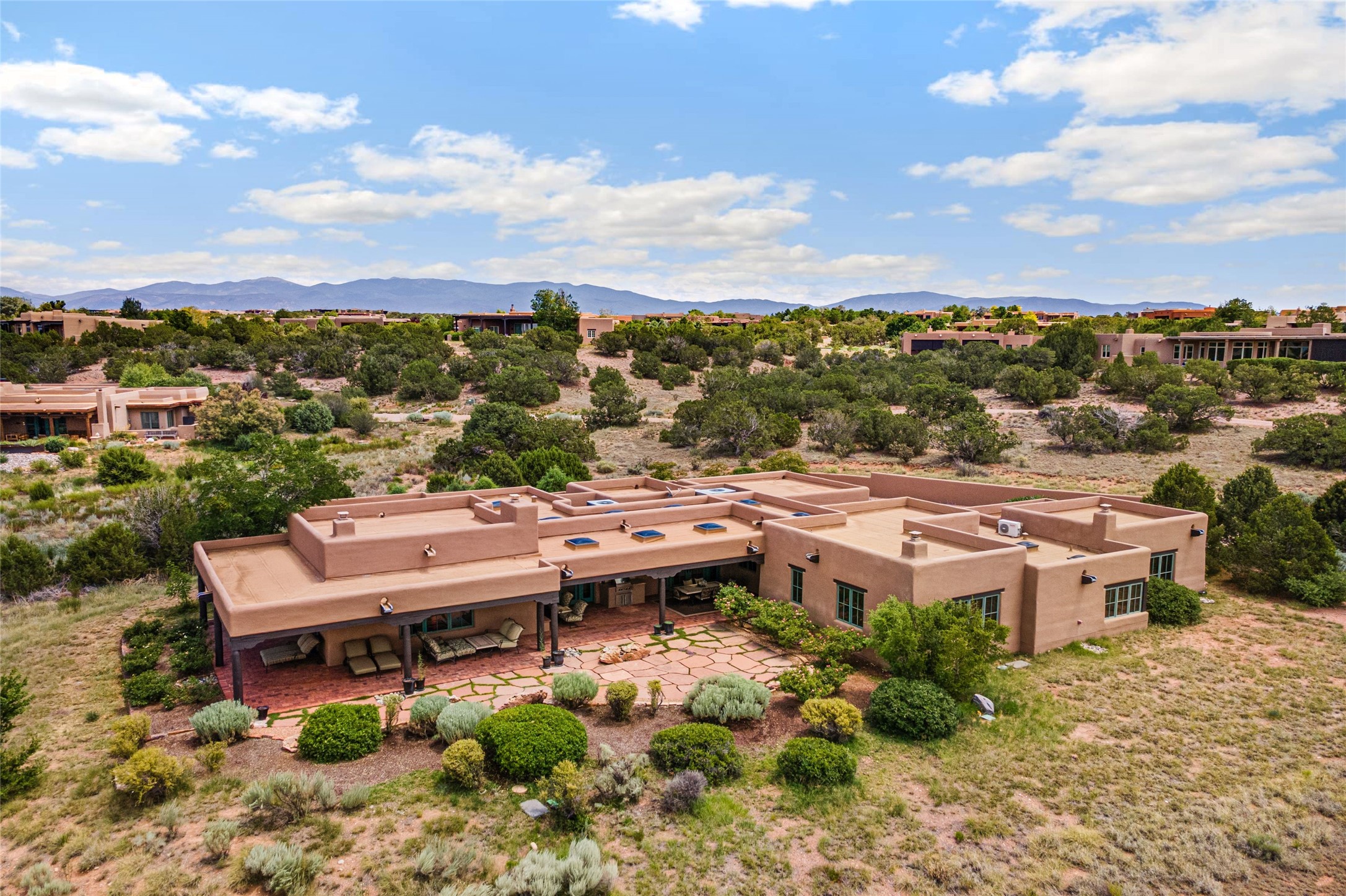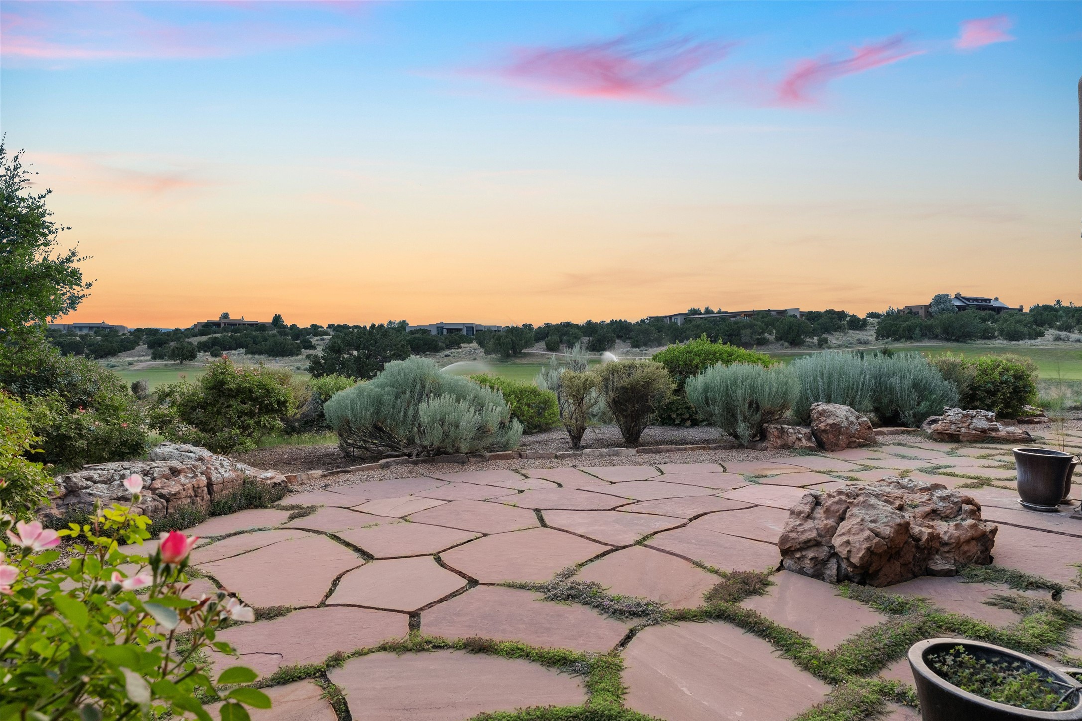 In the tree-studded rolling hills northwest of town are Las Campanas and a host of other developments and neighborhoods of larger, private lots and newer homes, most with city services and utilities. The land here sits between the city and the arroyos that carry rainwater to the Rio Grande, just a few miles west, creating a landscape almost like ocean waves rolling into shore.