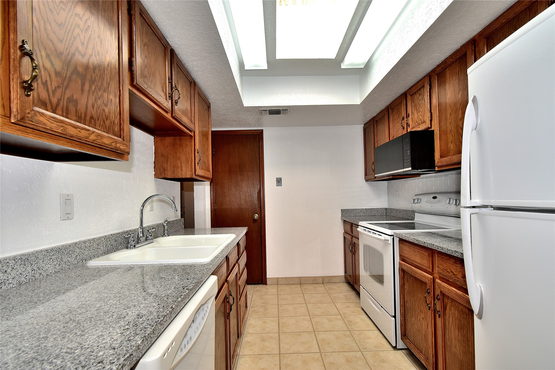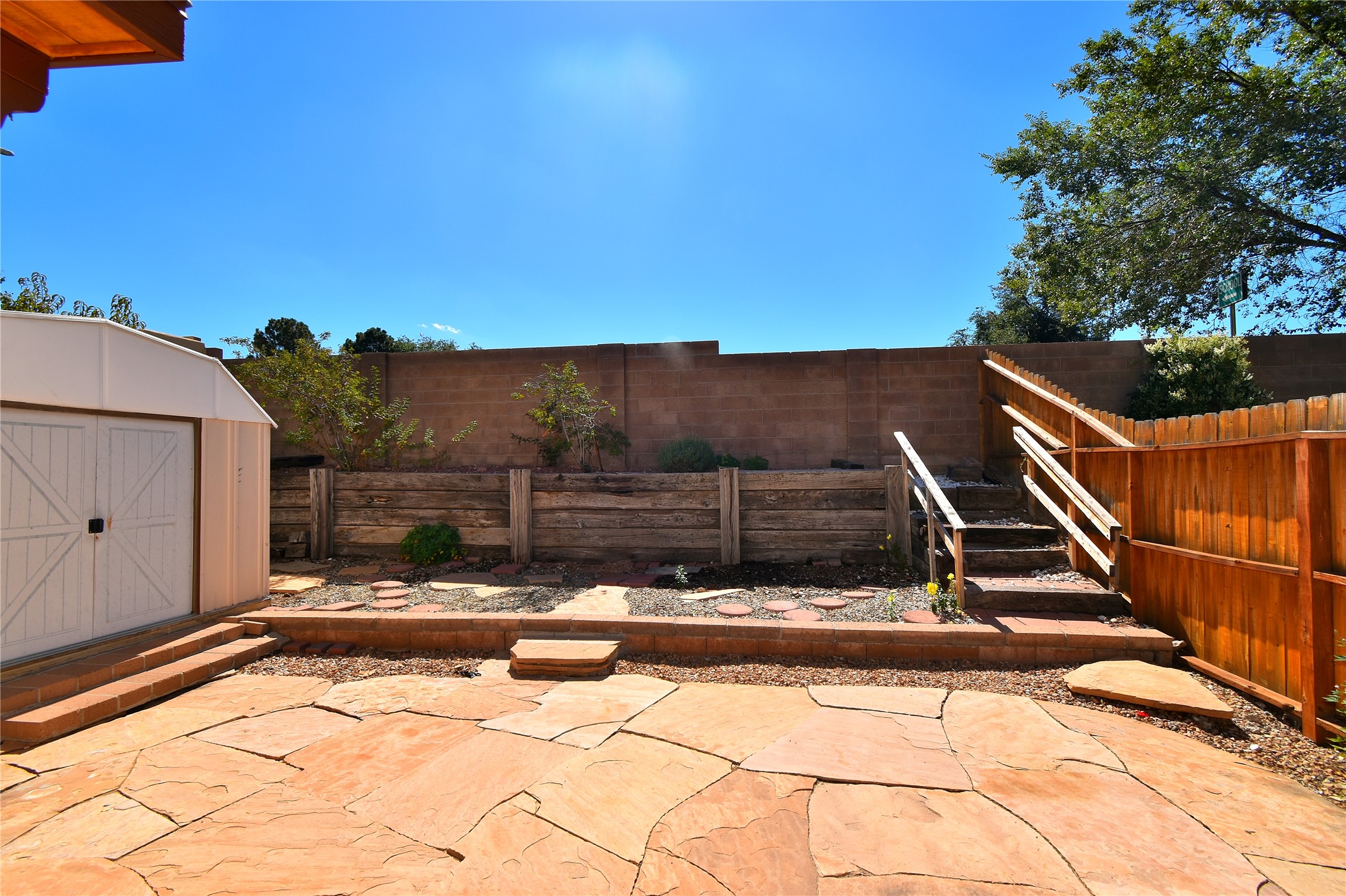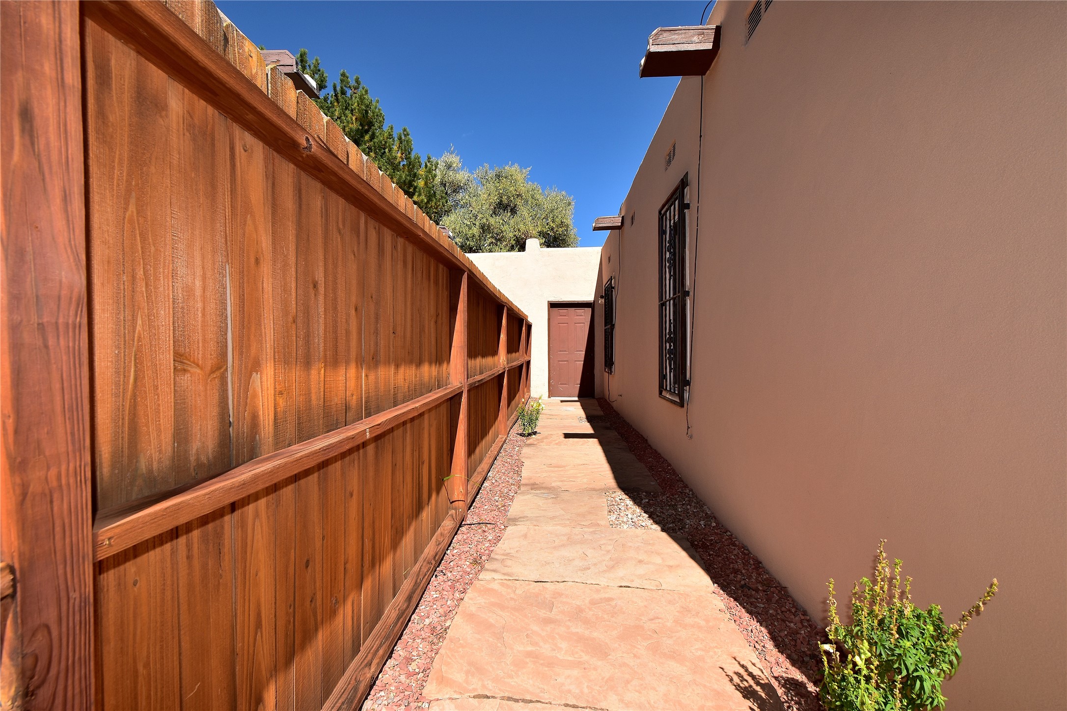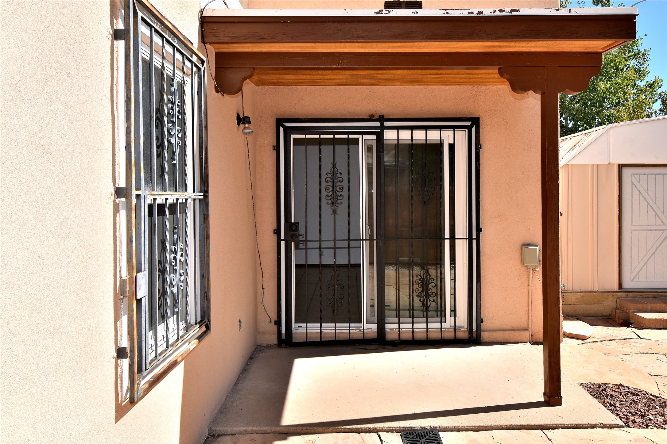 Beautiful, updated, light and bright and freshly painted home in Pueblo de Rodeo Rd. This single level home offers 3 bedrooms, 2 bathrooms and a 1-car garage with a spacious double driveway providing ample parking. An enclosed front entry courtyard welcomes you into the home. The galley kitchen features granite countertops, tile backsplash, pantry and new microwave in 2025. The backyard is private and offers a covered porch with flagstone and a large shed. Lovely features and amenities include: Newer windows-Remote Hunter Douglas top/down blinds-TPO roof-Tile and carpet floors-New washer and dryer in 2025 including water filter/softener system-Ceiling fans-Walk-in closet in primary suite-Carpet in the bedrooms. Super sweet home not to be missed.