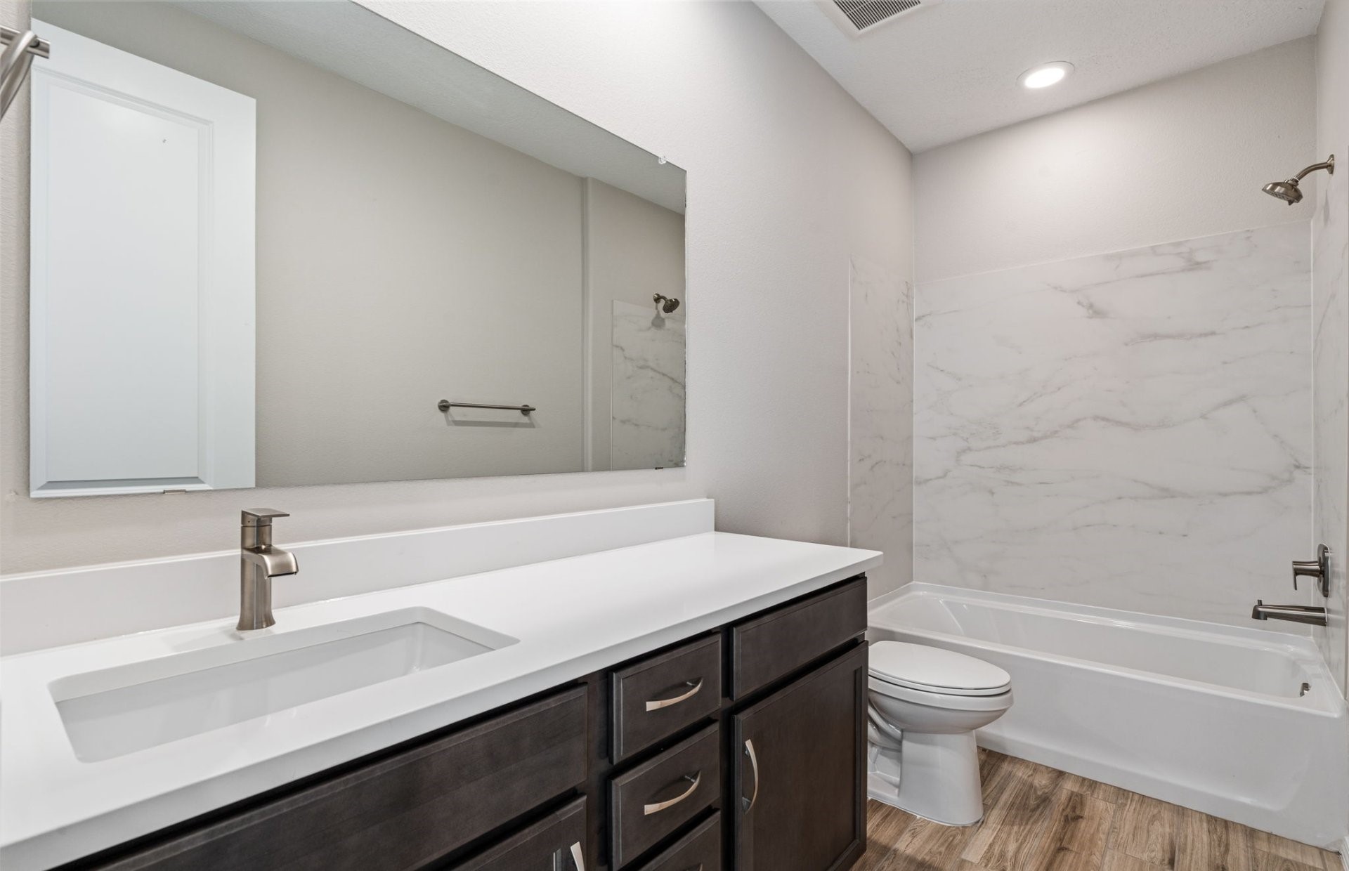 Step into this exceptional single-story home, where elegance meets functionality. The expansive covered patio provides the perfect outdoor retreat for relaxation or entertaining. Inside, the heart of the home features a huge kitchen island, paired with upgraded dark cabinets that offer timeless style and ample storage. Cozy up by the fireplace in the inviting living area, and retreat to the owner's suite, complete with a large 5-foot walk in shower with a seat for a spa-like experience. A spacious office is ideal for productivity or quiet reflection and can easily be used as extra living space. The home's thoughtful design continues with a chef's kitchen with built-in appliances and 8-foot interior doors, enhancing the sense of space throughout. This home is truly a blend of luxury and comfort, perfect for making lasting memories.