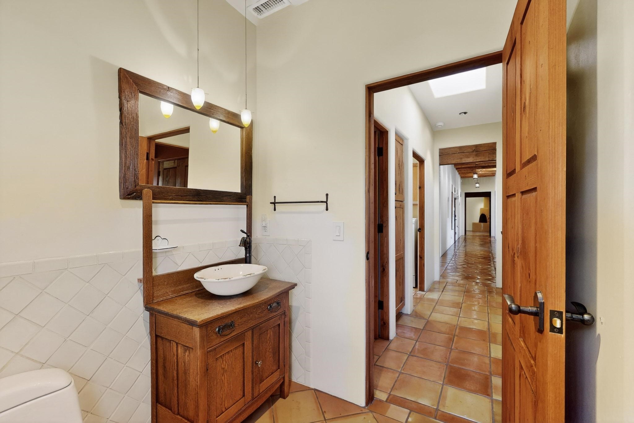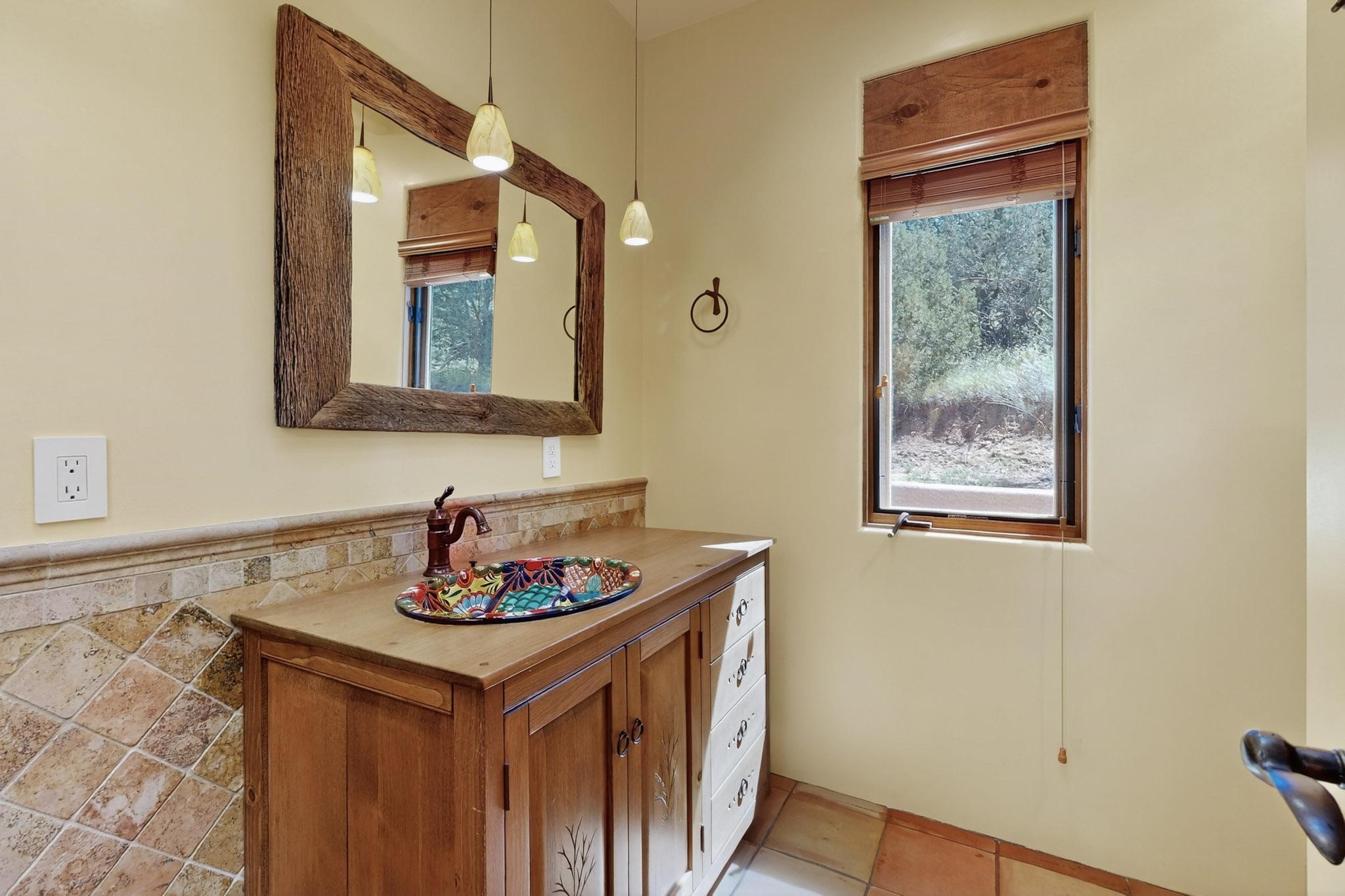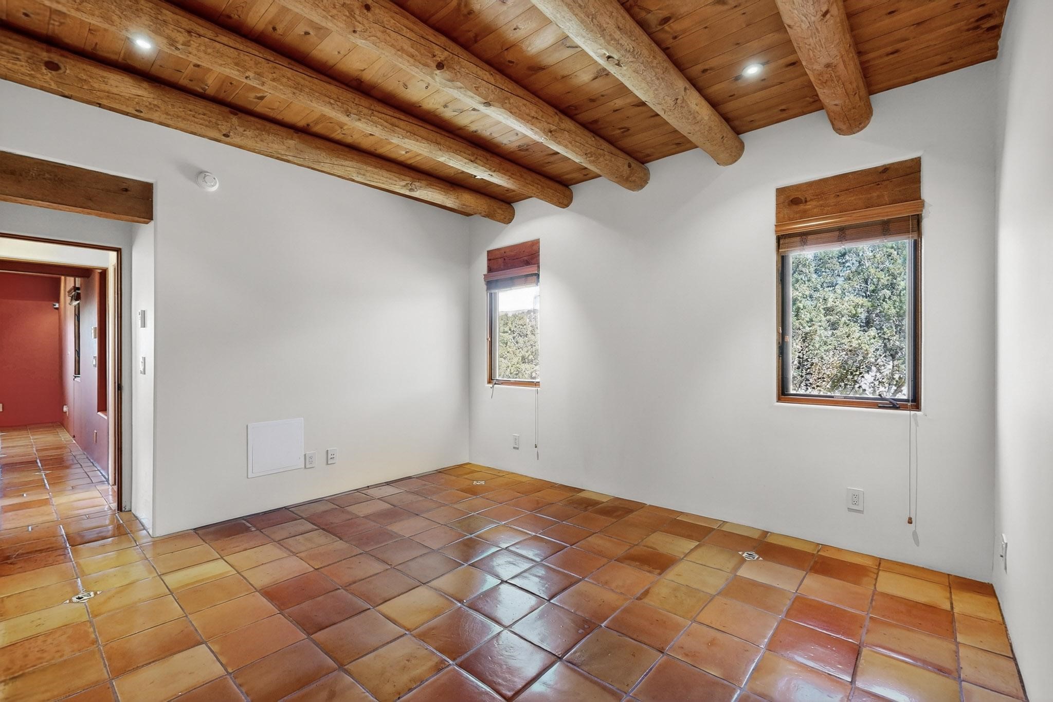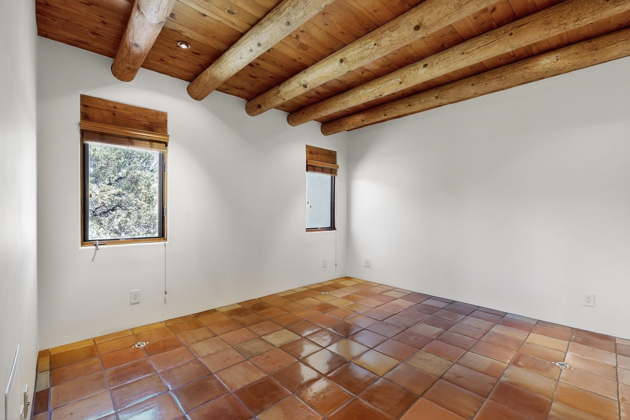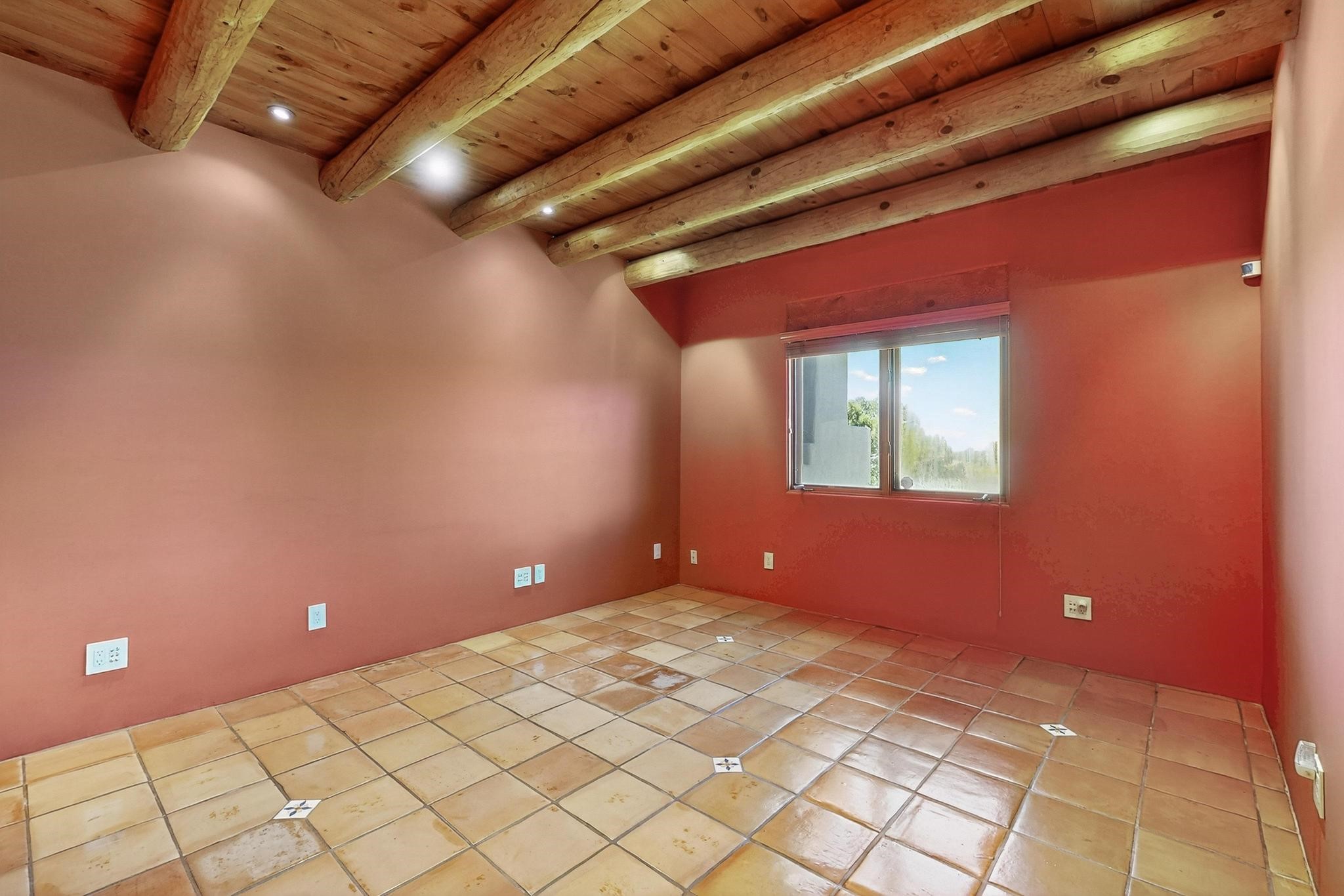A rare offering in coveted Belicia Estates, custom designed and built this grand Santa Fe pueblo home delights the eye. From gleaming Saltillo tile floors to high viga ceilings, featuring lighted nichos, corbelled beams, 3 traditional kiva fireplaces, a pizza kiva in the kitchen plus an outside kiva for entertainment on the portal. Open plan, split bedroom floorpan creates a separate owners suite with 2 separate bathrooms, a large walk in closet and a separate study/office. There is a grand living room plus family/play room plus formal dining off the kitchen leading out to a wonderfully private walled outside entertainment area with foothill mountain views from the portal. There is a fun chefs kitchen with sunny breakfast nook and large island. There is a separate 2 bedroom and bath guest suite, and convenient laundry room which leads to the spacious 2 car garage. Positioned at the end of a paved cul de sac on 4.3acres close to the gated entry it is within easy reach to 2 local shopping centers, the Galisteo preserve and only minutes into historic Santa Fe. A must see:)