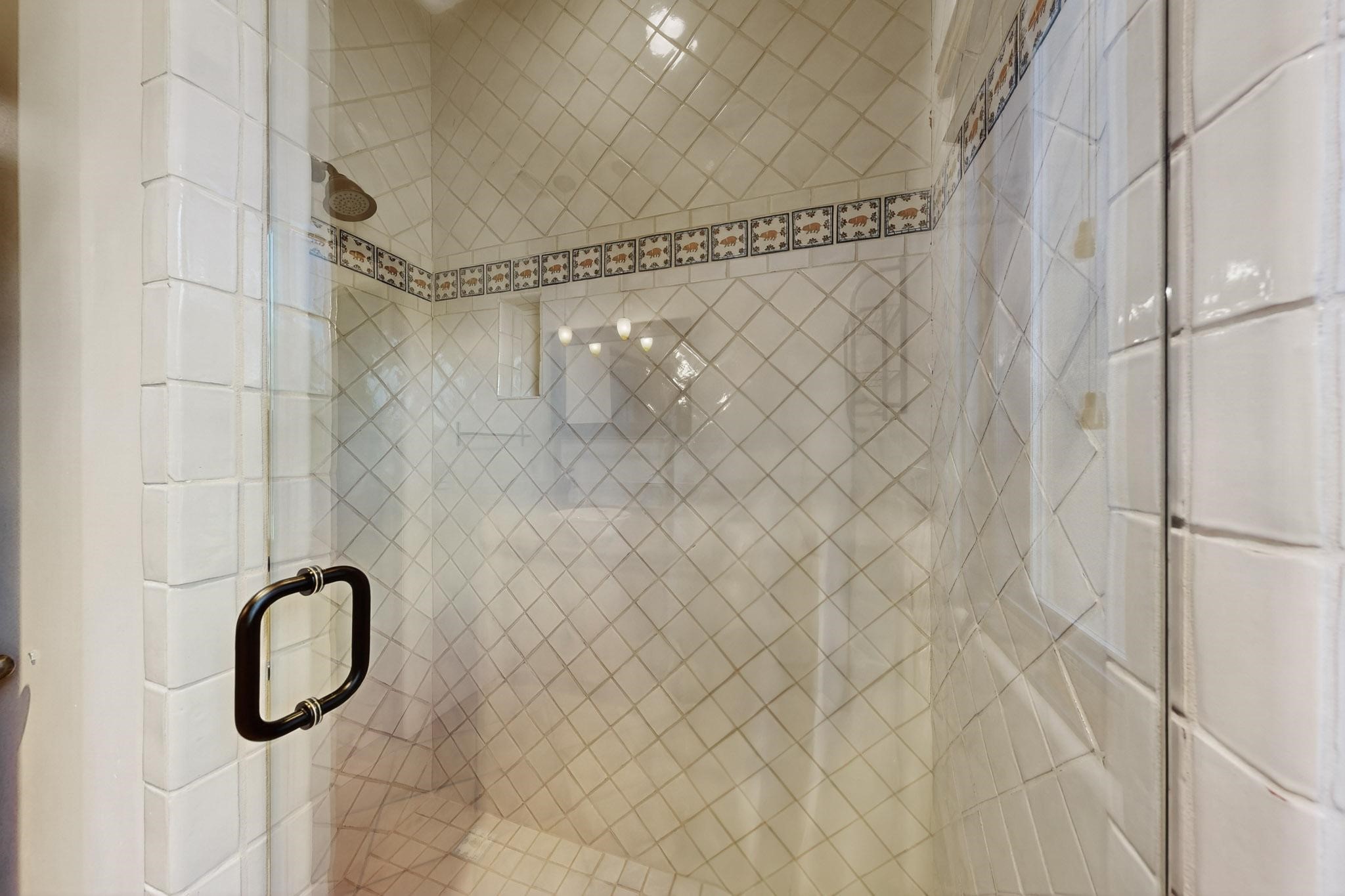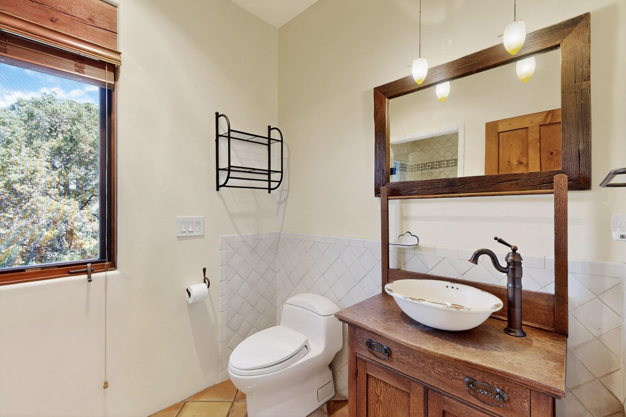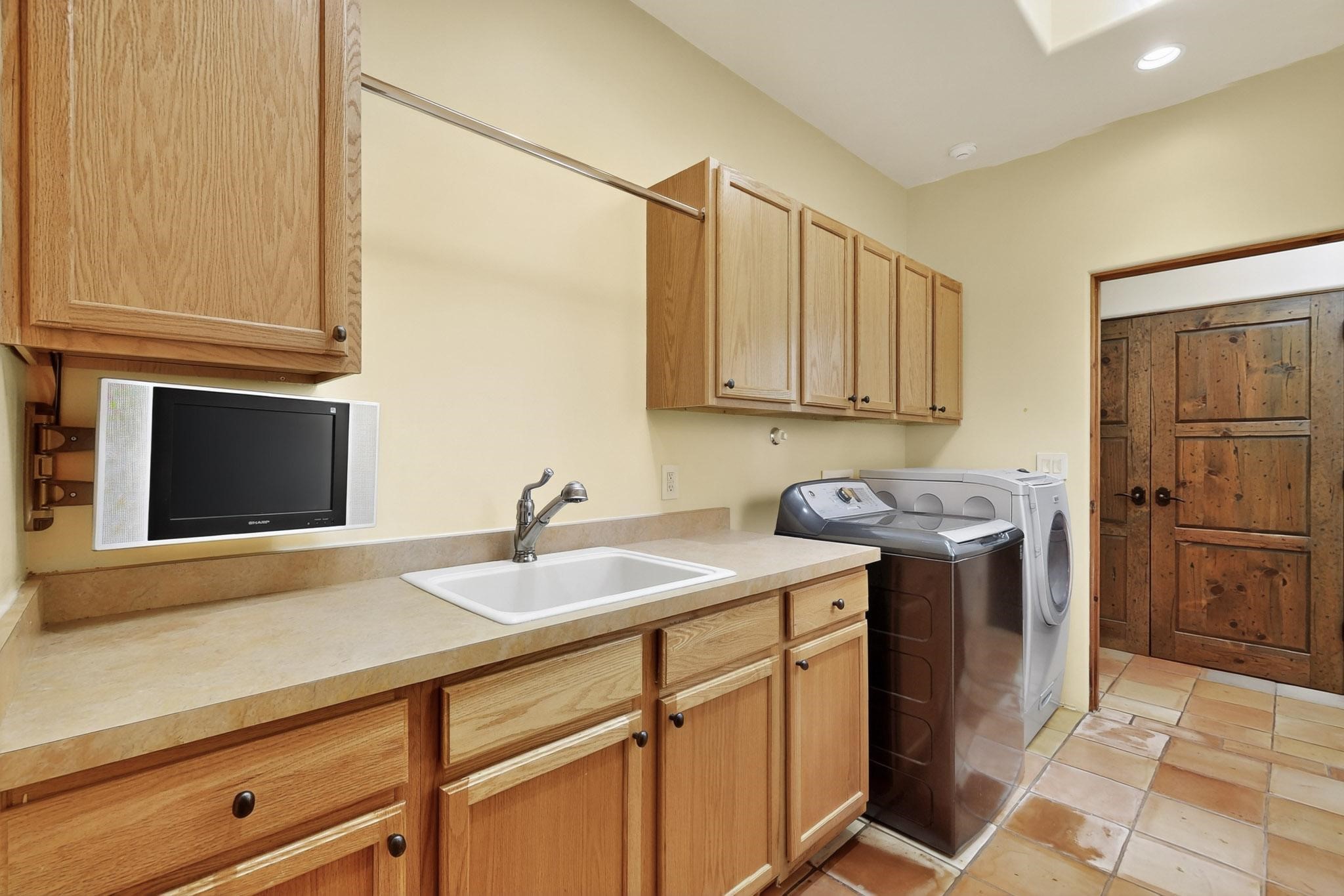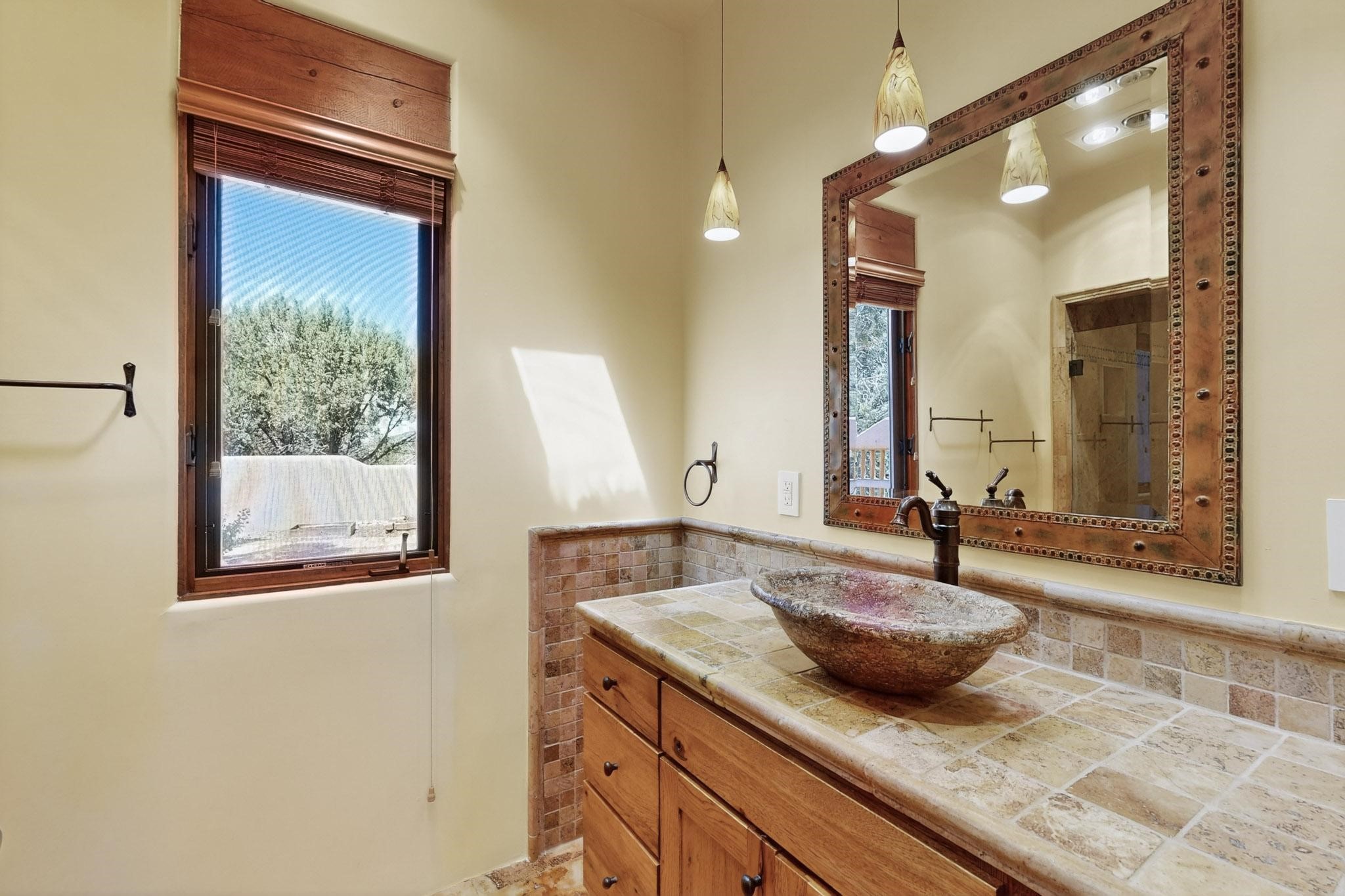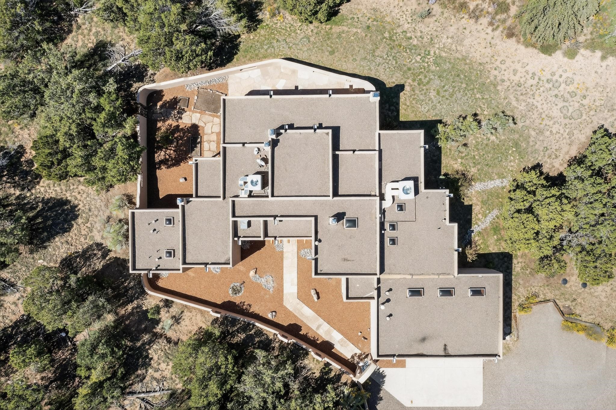 A rare offering in coveted Belicia Estates, custom designed and built this grand Santa Fe pueblo home delights the eye. From gleaming Saltillo tile floors to high viga ceilings, featuring lighted nichos, corbelled beams, 3 traditional kiva fireplaces, a pizza kiva in the kitchen plus an outside kiva for entertainment on the portal. Open plan, split bedroom floorpan creates a separate owners suite with 2 separate bathrooms, a large walk in closet and a separate study/office. There is a grand living room plus family/play room plus formal dining off the kitchen leading out to a wonderfully private walled outside entertainment area with foothill mountain views from the portal. There is a fun chefs kitchen with sunny breakfast nook and large island. There is a separate 2 bedroom and bath guest suite, and convenient laundry room which leads to the spacious 2 car garage. Positioned at the end of a paved cul de sac on 4.3acres close to the gated entry it is within easy reach to 2 local shopping centers, the Galisteo preserve and only minutes into historic Santa Fe. A must see:)