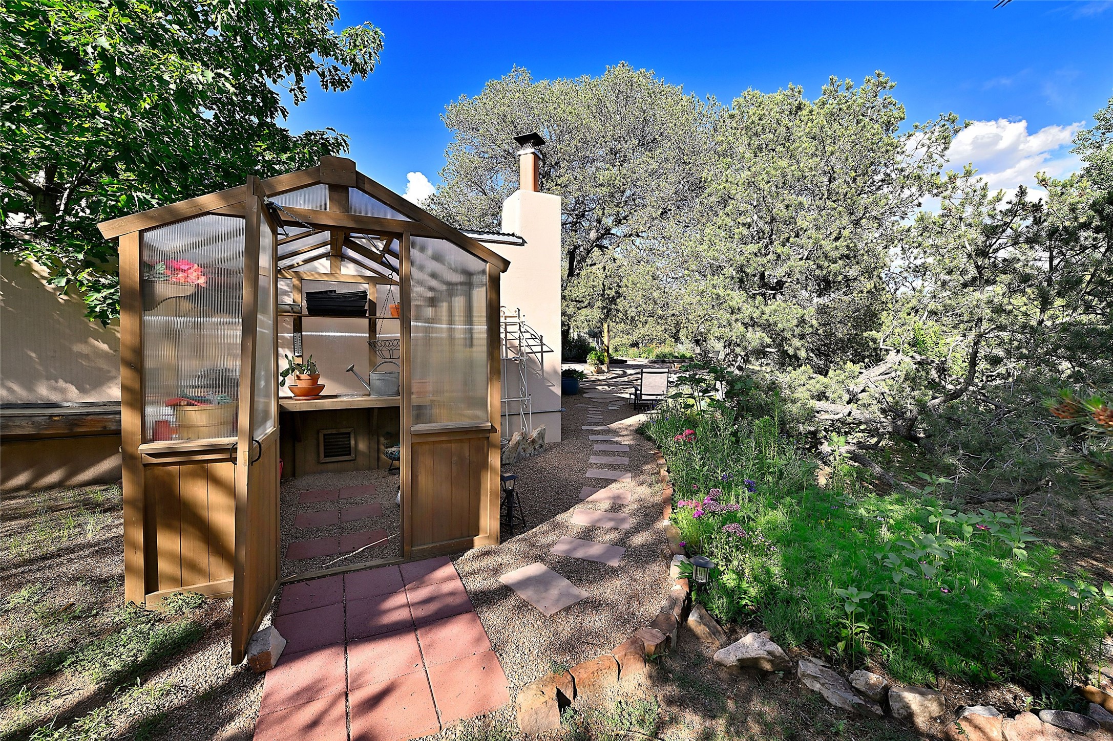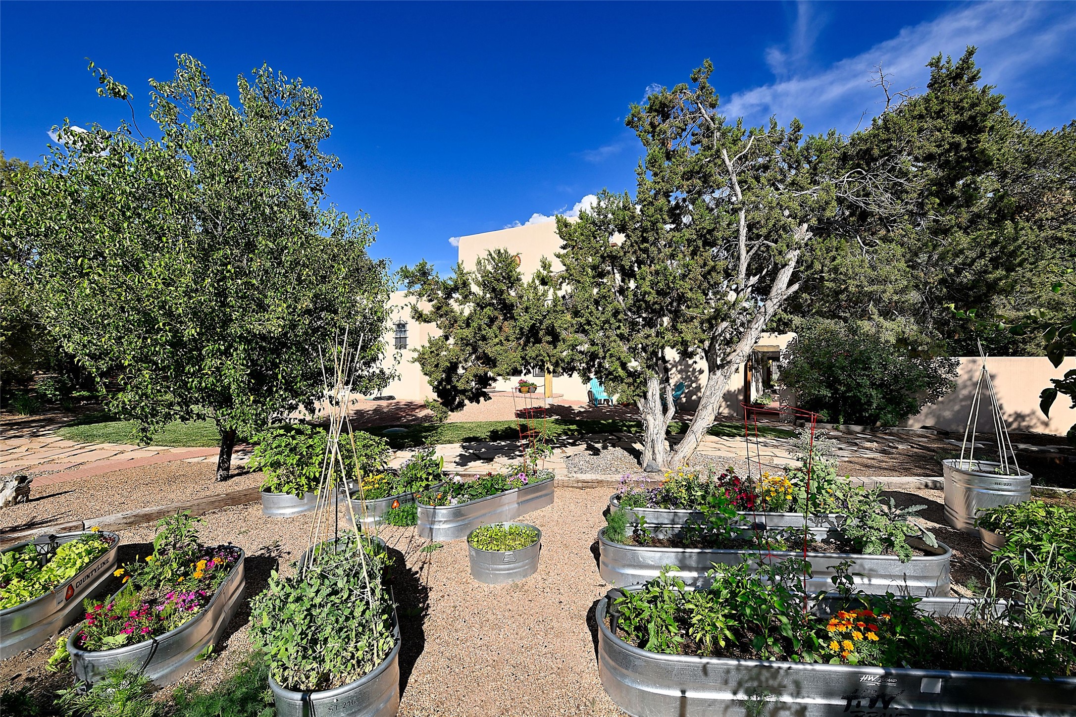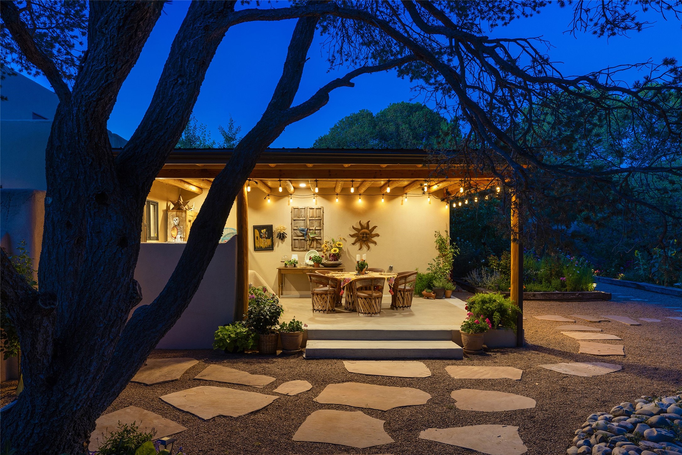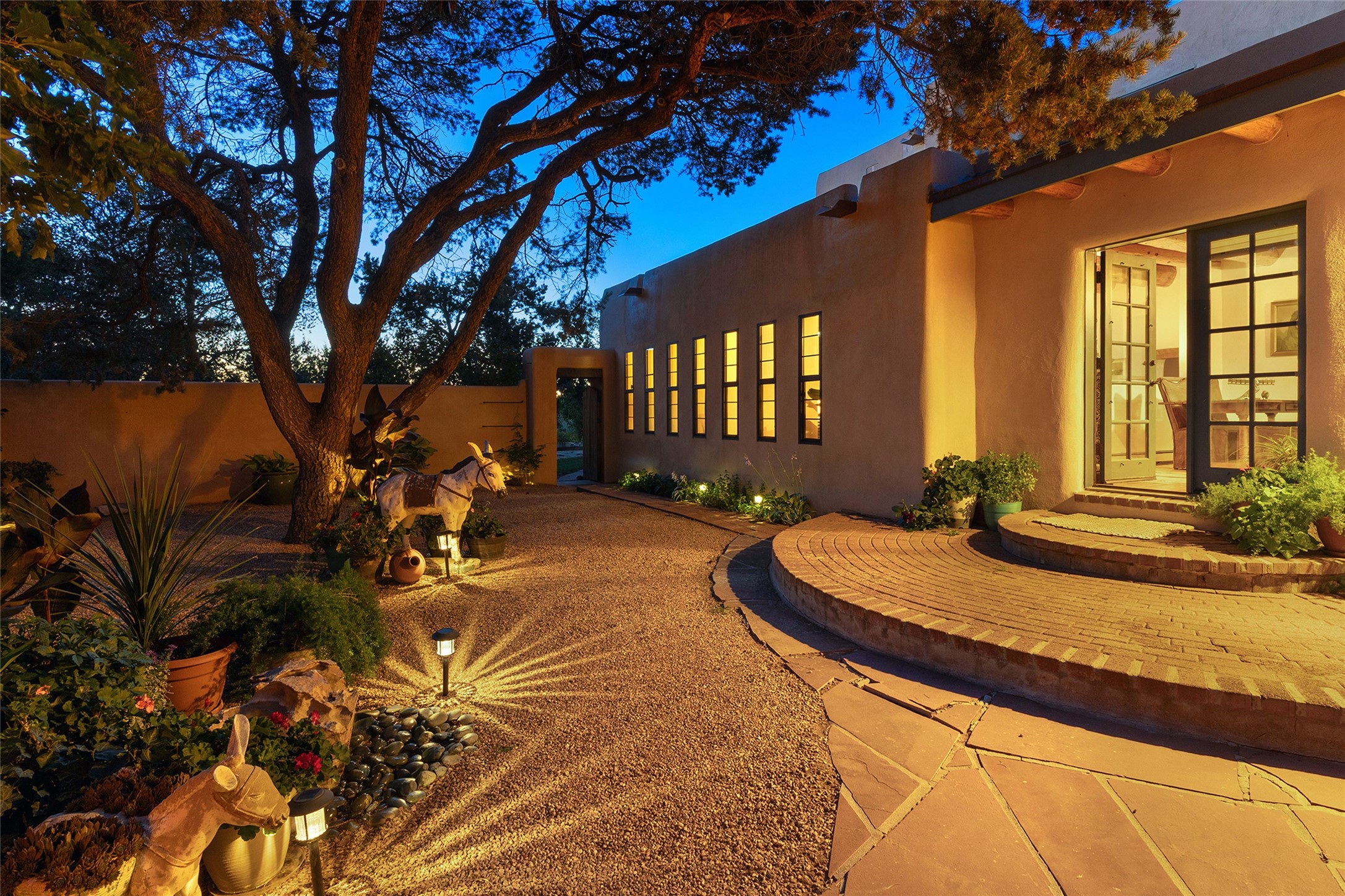 Welcome to 104 Calle Paula in highly coveted Sol y Lomas, an exquisitely appointed 4-bed, 3.5-bath home on 1.12 private, flourishing acres in the heart of Santa Fe. Seamlessly blending refined interiors with expansive outdoor living, this property is the perfect retreat for quiet living or elegant entertaining. The updated chef's kitchen features Wolf and Viking appliances, custom cabinetry, and sleek stone countertops, ideal for culinary creativity. Each bedroom is thoughtfully designed, including a serene primary suite with a spa-like bath, walk-in closet, and private patio with views to the north, east, and west. High ceilings with large vigas, artisanal finishes, and multiple kiva fireplaces, indoors and out, infuse the home with timeless Santa Fe warmth and charm. Outdoor living is equally inviting, with shaded portals, peaceful patios, and lush gardens featuring mature trees, a small orchard, and beautifully crafted gathering spaces. A charming detached studio offers flexible space for art or work, adding even more versatility to the property. Set on an expansive lot, the home offers abundant room to unwind, cultivate, or simply savor the tranquility of its surroundings. Tucked in a quiet enclave just minutes from the historic Santa Fe Plaza, top restaurants, medical facilities, and grocery stores, this home offers a rare blend of privacy, style, and convenience. This is Santa Fe living at its finest. Schedule your private showing today.