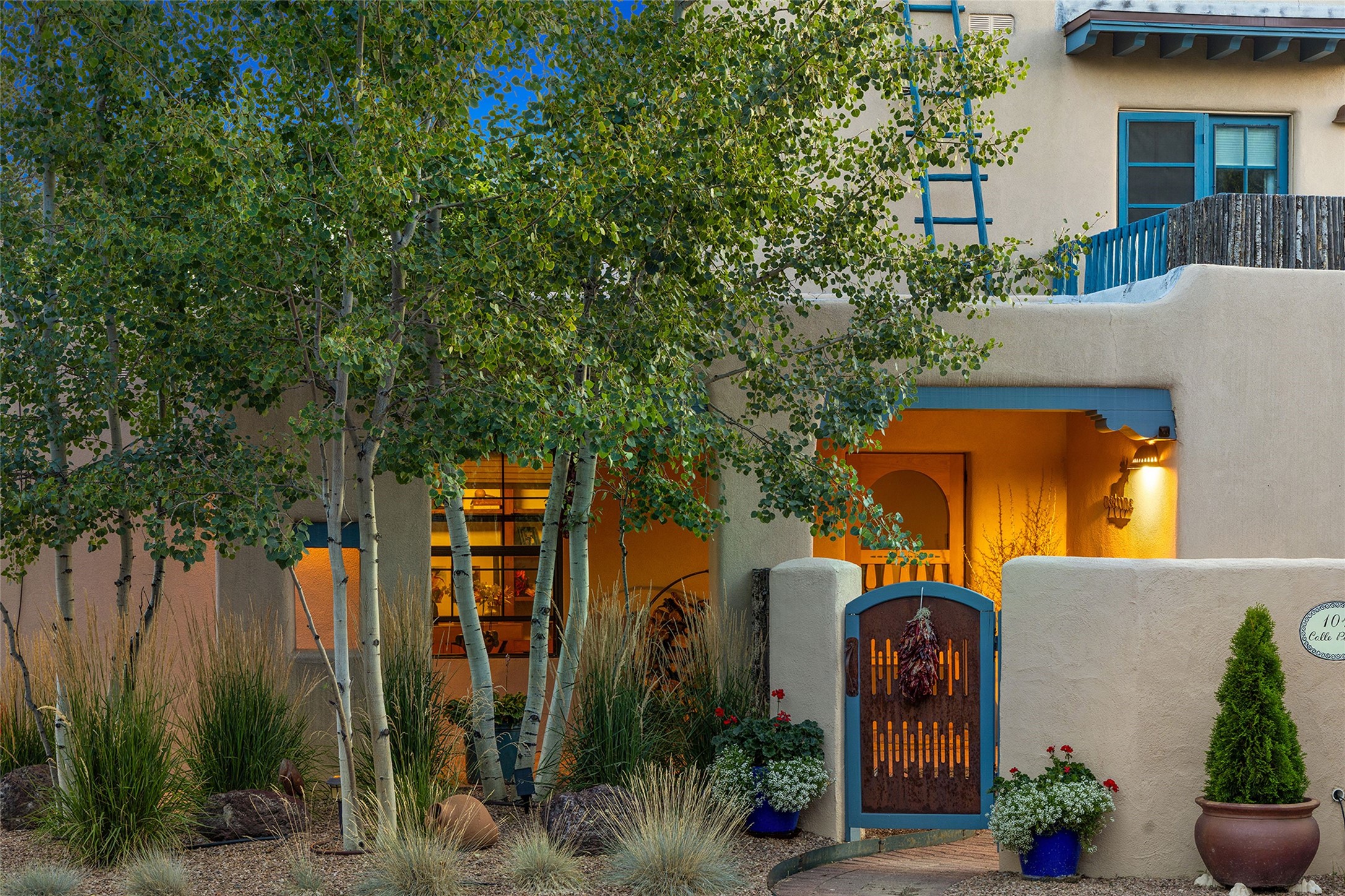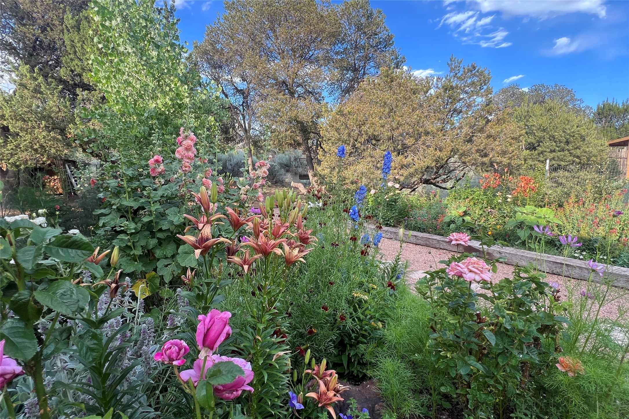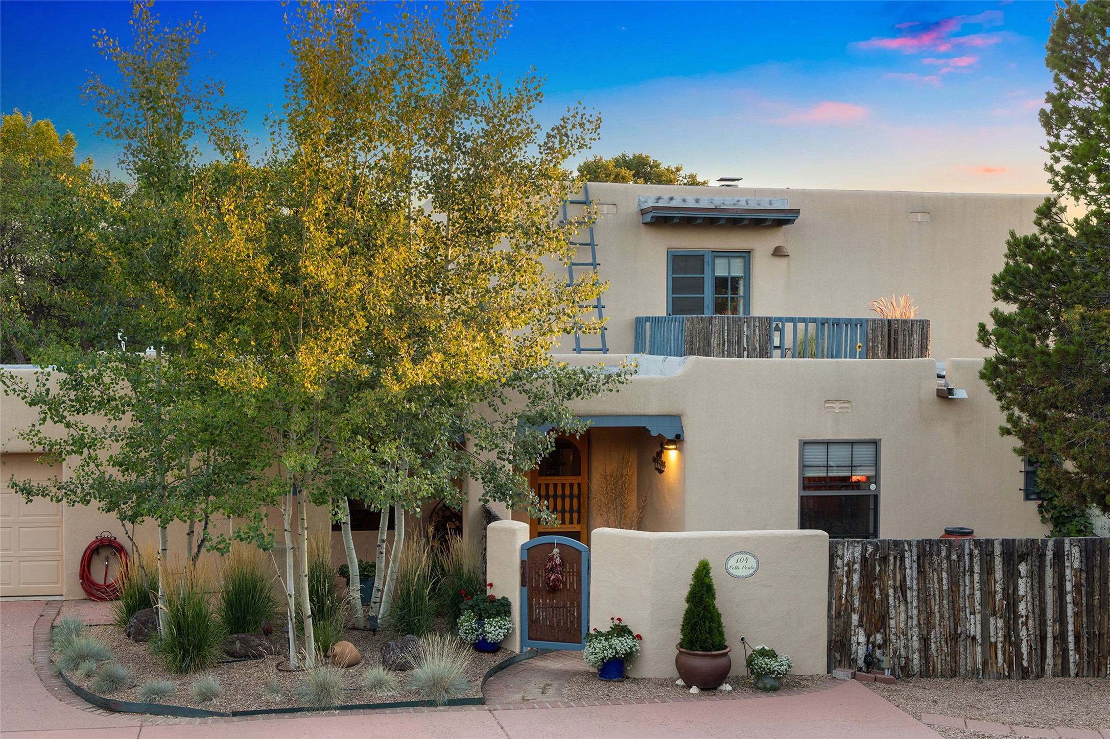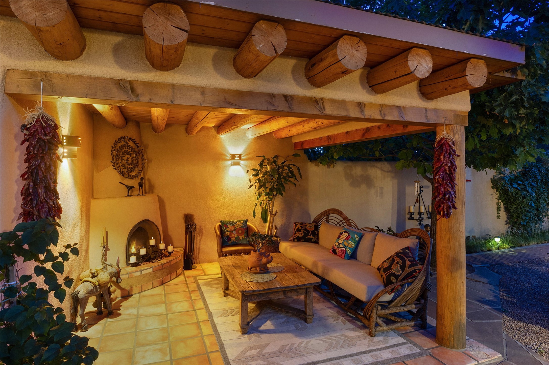 Welcome to 104 Calle Paula in highly coveted Sol y Lomas, an exquisitely appointed 4-bed, 3.5-bath home on 1.12 private, flourishing acres in the heart of Santa Fe. Seamlessly blending refined interiors with expansive outdoor living, this property is the perfect retreat for quiet living or elegant entertaining. The updated chef's kitchen features Wolf and Viking appliances, custom cabinetry, and sleek stone countertops, ideal for culinary creativity. Each bedroom is thoughtfully designed, including a serene primary suite with a spa-like bath, walk-in closet, and private patio with views to the north, east, and west. High ceilings with large vigas, artisanal finishes, and multiple kiva fireplaces, indoors and out, infuse the home with timeless Santa Fe warmth and charm. Outdoor living is equally inviting, with shaded portals, peaceful patios, and lush gardens featuring mature trees, a small orchard, and beautifully crafted gathering spaces. A charming detached studio offers flexible space for art or work, adding even more versatility to the property. Set on an expansive lot, the home offers abundant room to unwind, cultivate, or simply savor the tranquility of its surroundings. Tucked in a quiet enclave just minutes from the historic Santa Fe Plaza, top restaurants, medical facilities, and grocery stores, this home offers a rare blend of privacy, style, and convenience. This is Santa Fe living at its finest. Schedule your private showing today.