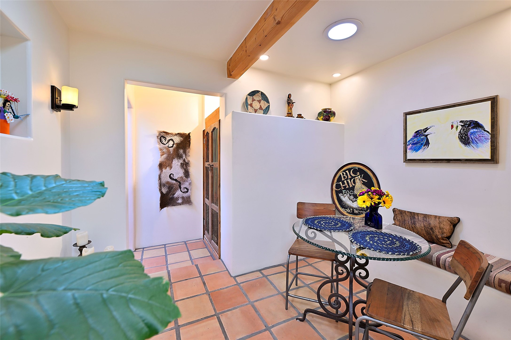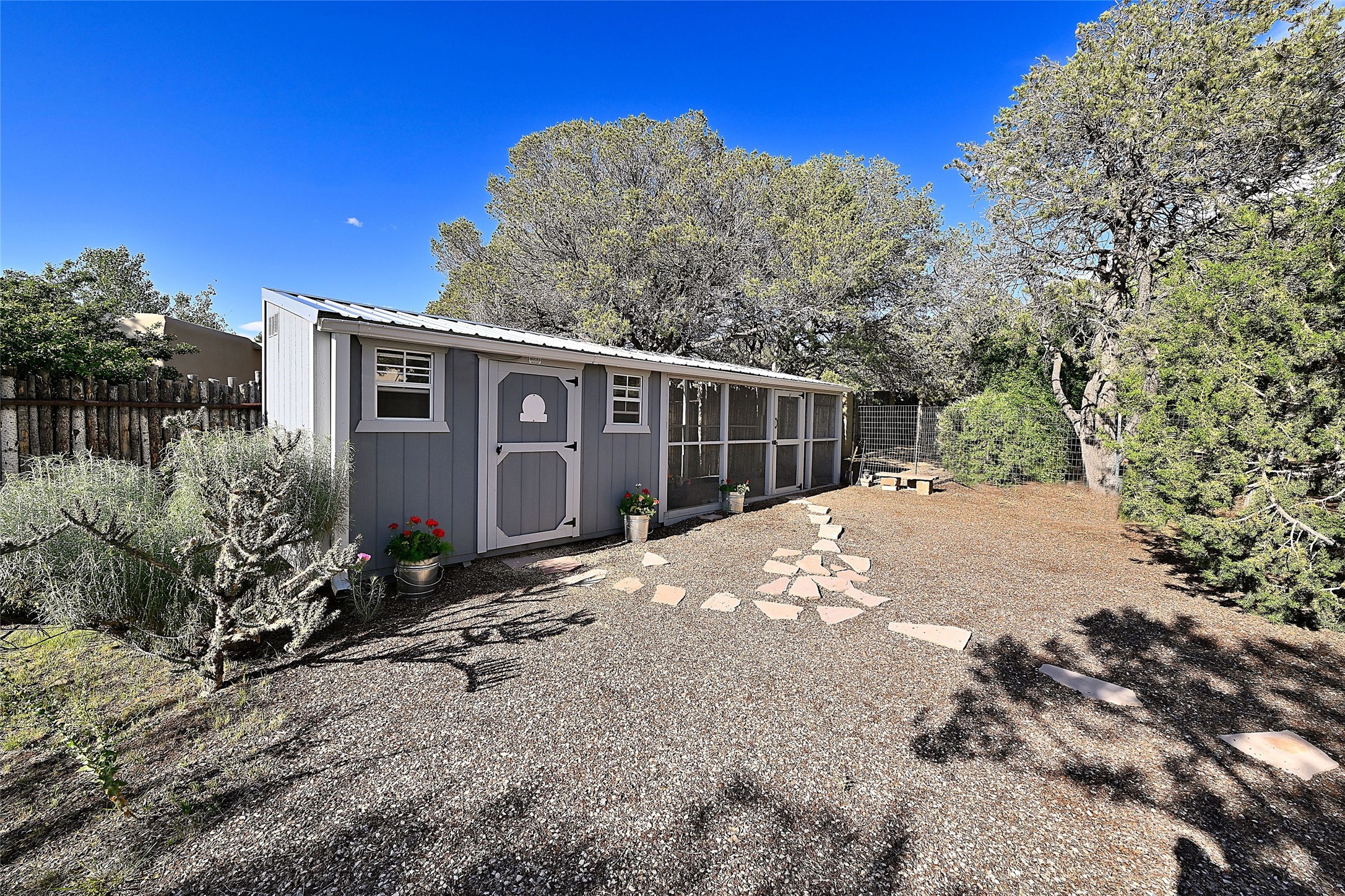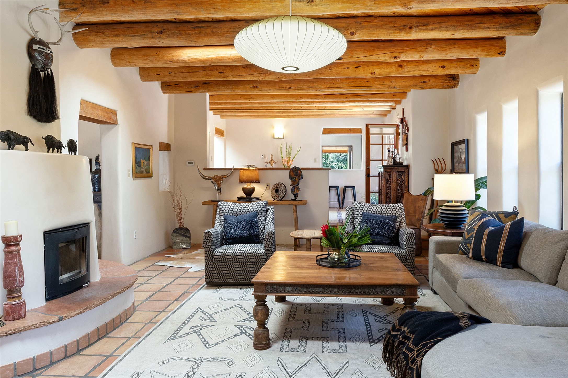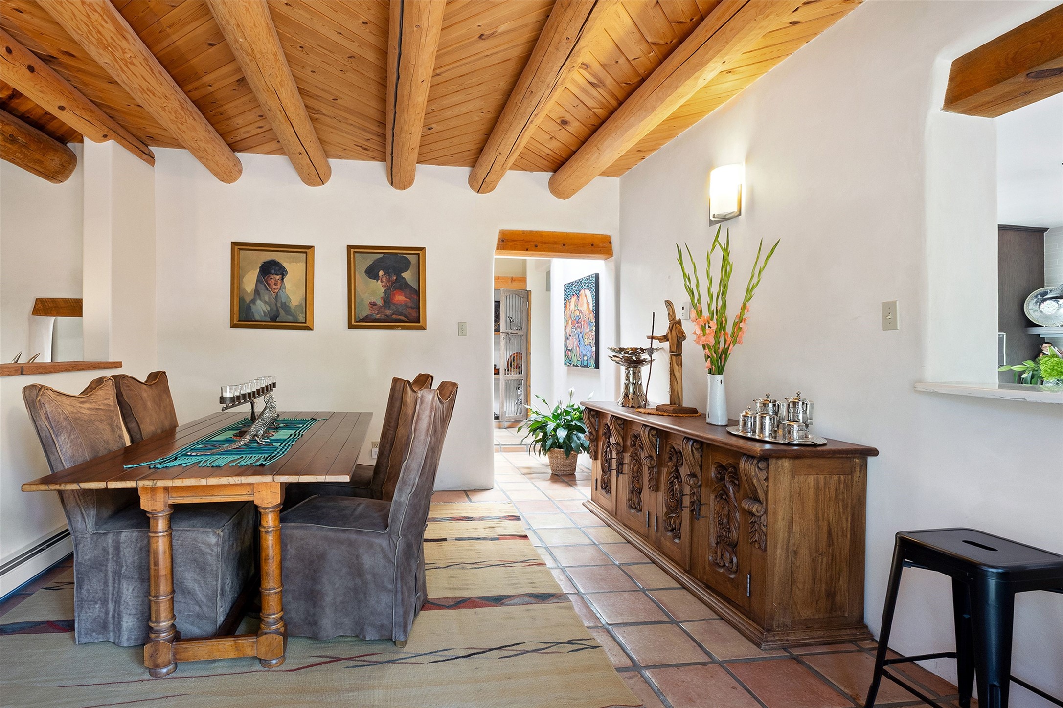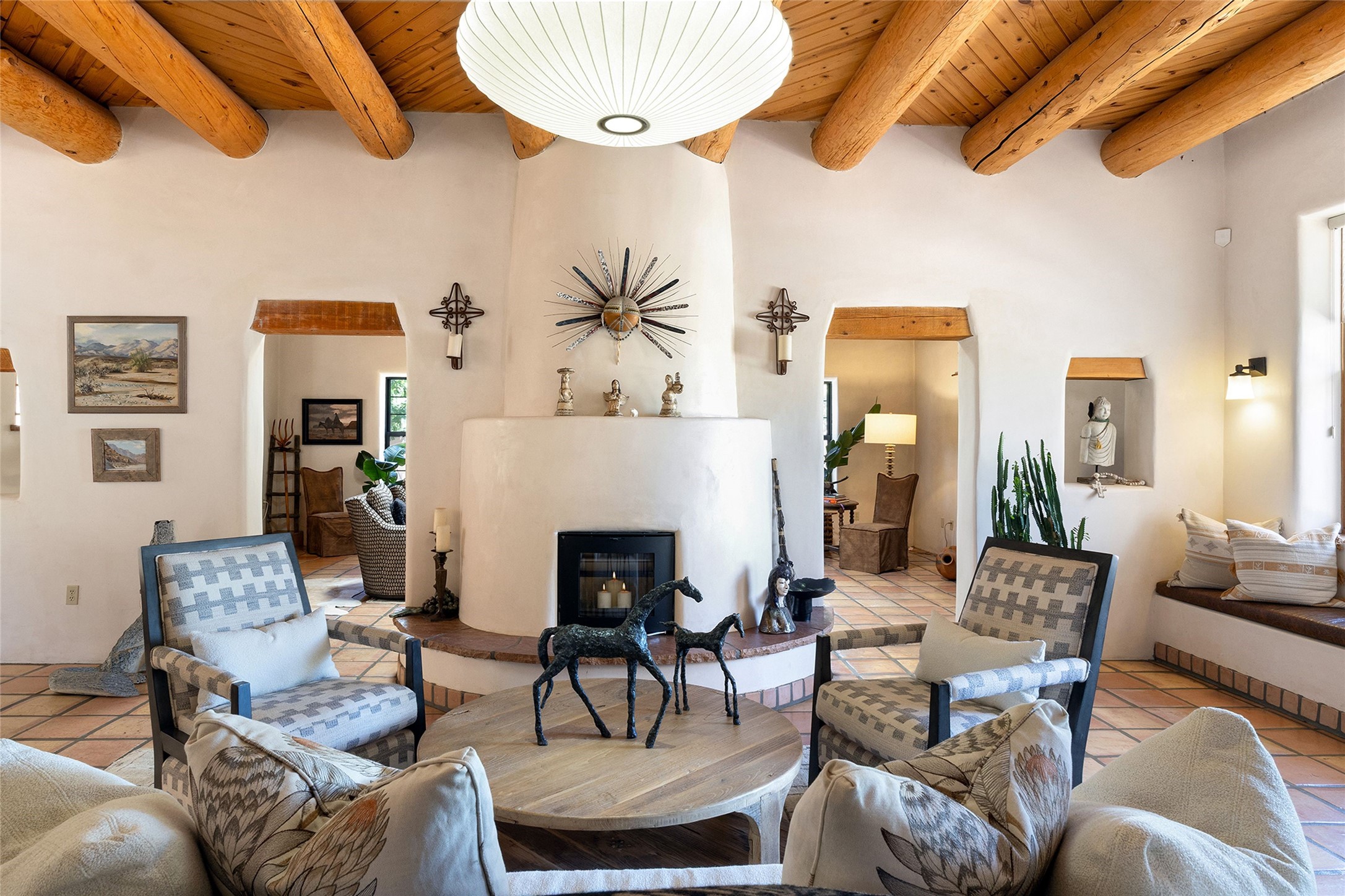 Welcome to 104 Calle Paula in highly coveted Sol y Lomas, an exquisitely appointed 4-bed, 3.5-bath home on 1.12 private, flourishing acres in the heart of Santa Fe. Seamlessly blending refined interiors with expansive outdoor living, this property is the perfect retreat for quiet living or elegant entertaining. The updated chef's kitchen features Wolf and Viking appliances, custom cabinetry, and sleek stone countertops, ideal for culinary creativity. Each bedroom is thoughtfully designed, including a serene primary suite with a spa-like bath, walk-in closet, and private patio with views to the north, east, and west. High ceilings with large vigas, artisanal finishes, and multiple kiva fireplaces, indoors and out, infuse the home with timeless Santa Fe warmth and charm. Outdoor living is equally inviting, with shaded portals, peaceful patios, and lush gardens featuring mature trees, a small orchard, and beautifully crafted gathering spaces. A charming detached studio offers flexible space for art or work, adding even more versatility to the property. Set on an expansive lot, the home offers abundant room to unwind, cultivate, or simply savor the tranquility of its surroundings. Tucked in a quiet enclave just minutes from the historic Santa Fe Plaza, top restaurants, medical facilities, and grocery stores, this home offers a rare blend of privacy, style, and convenience. This is Santa Fe living at its finest. Schedule your private showing today.