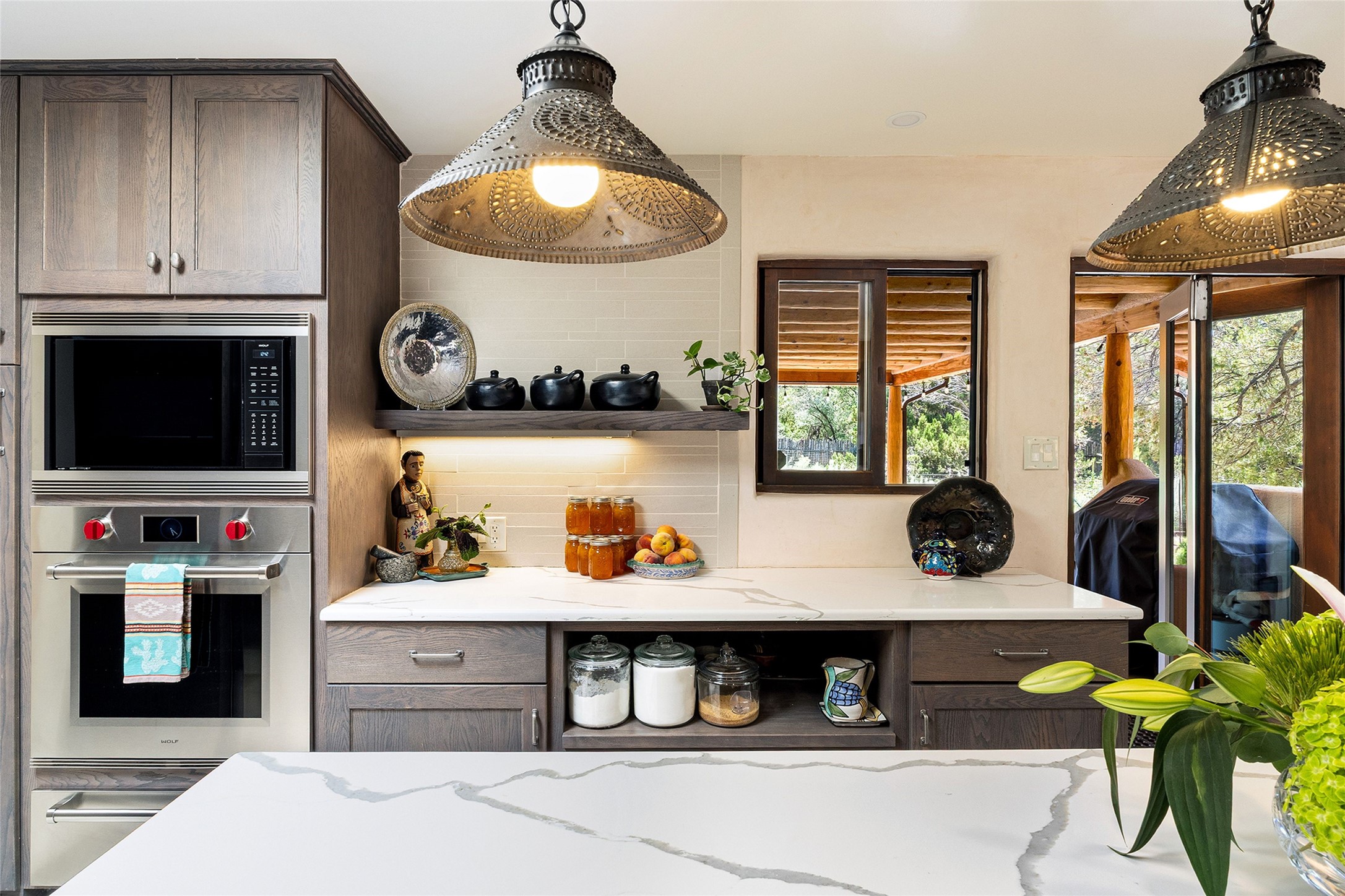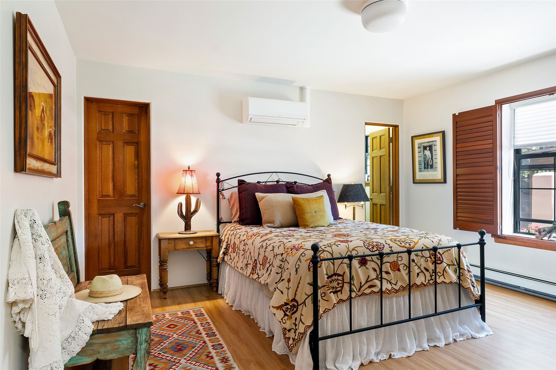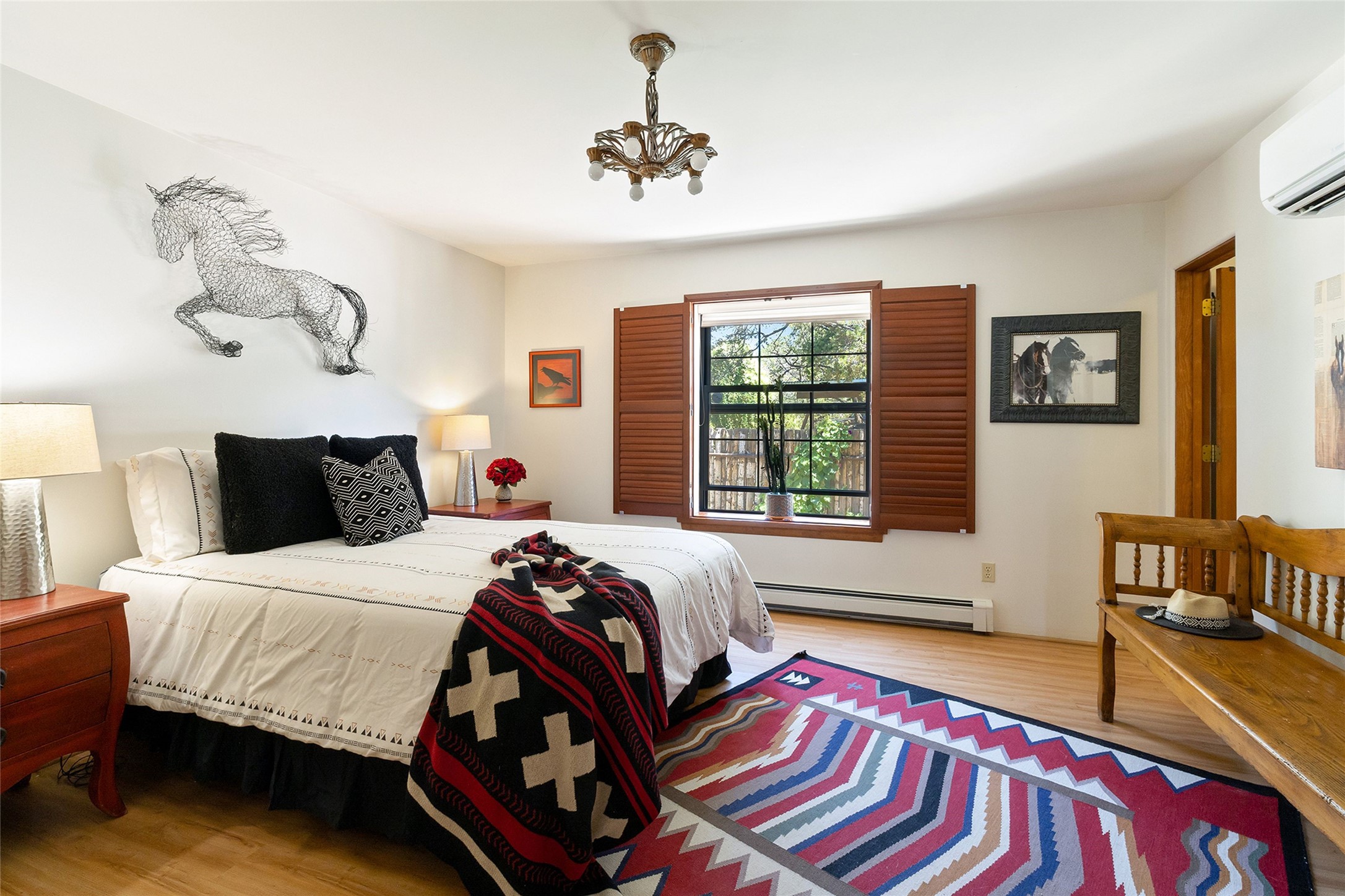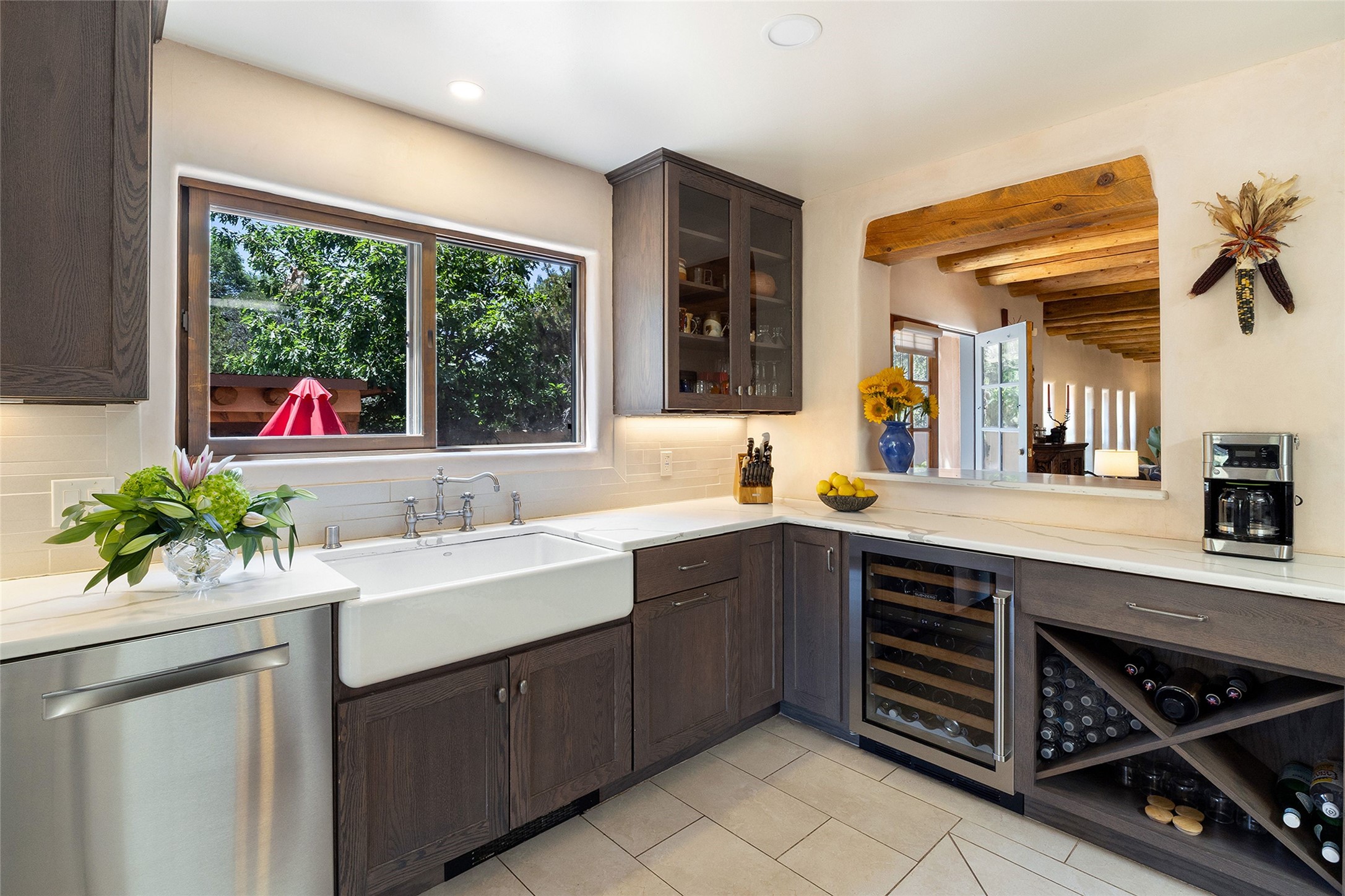 Welcome to 104 Calle Paula in highly coveted Sol y Lomas, an exquisitely appointed 4-bed, 3.5-bath home on 1.12 private, flourishing acres in the heart of Santa Fe. Seamlessly blending refined interiors with expansive outdoor living, this property is the perfect retreat for quiet living or elegant entertaining. The updated chef's kitchen features Wolf and Viking appliances, custom cabinetry, and sleek stone countertops, ideal for culinary creativity. Each bedroom is thoughtfully designed, including a serene primary suite with a spa-like bath, walk-in closet, and private patio with views to the north, east, and west. High ceilings with large vigas, artisanal finishes, and multiple kiva fireplaces, indoors and out, infuse the home with timeless Santa Fe warmth and charm. Outdoor living is equally inviting, with shaded portals, peaceful patios, and lush gardens featuring mature trees, a small orchard, and beautifully crafted gathering spaces. A charming detached studio offers flexible space for art or work, adding even more versatility to the property. Set on an expansive lot, the home offers abundant room to unwind, cultivate, or simply savor the tranquility of its surroundings. Tucked in a quiet enclave just minutes from the historic Santa Fe Plaza, top restaurants, medical facilities, and grocery stores, this home offers a rare blend of privacy, style, and convenience. This is Santa Fe living at its finest. Schedule your private showing today.