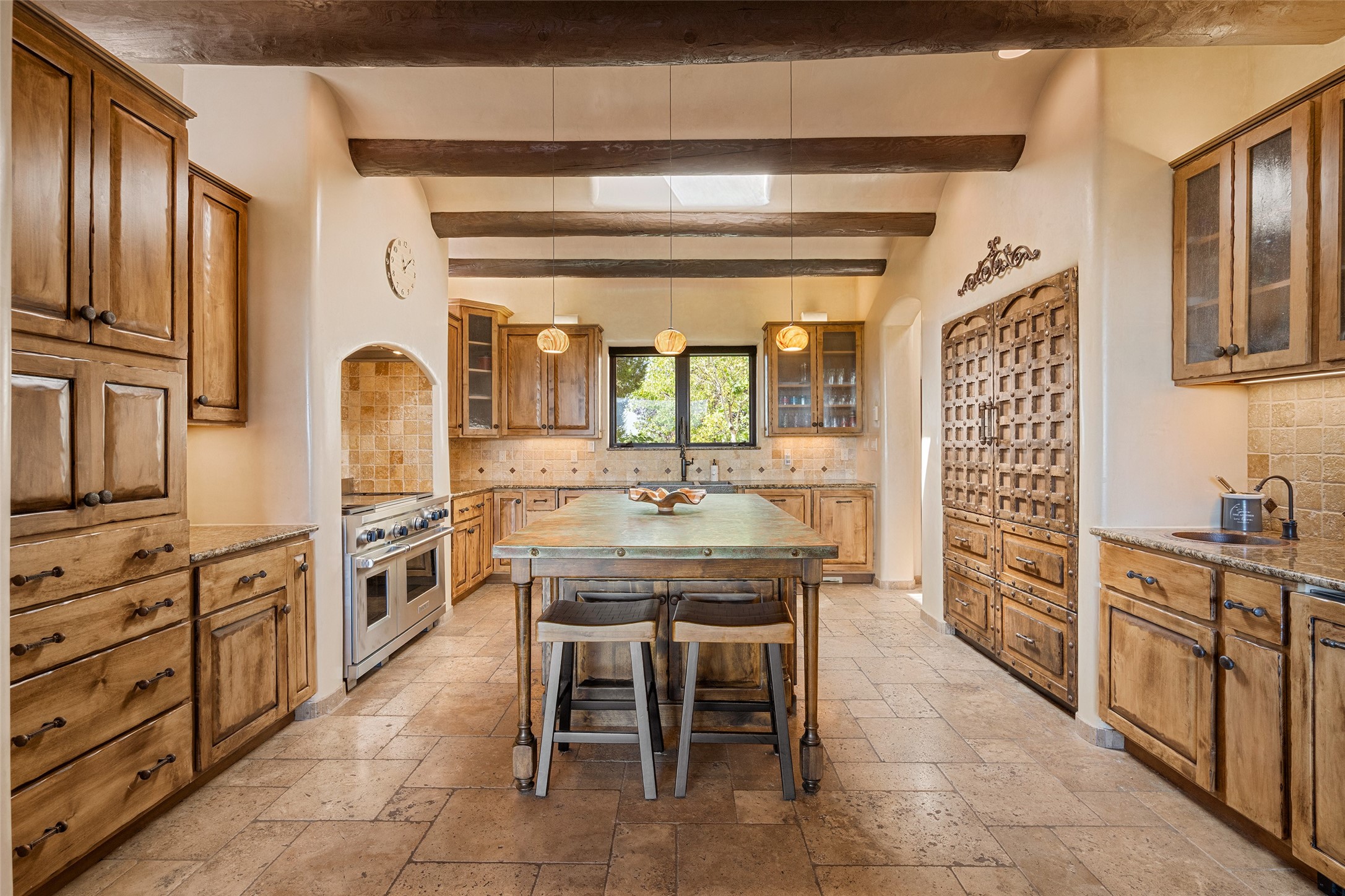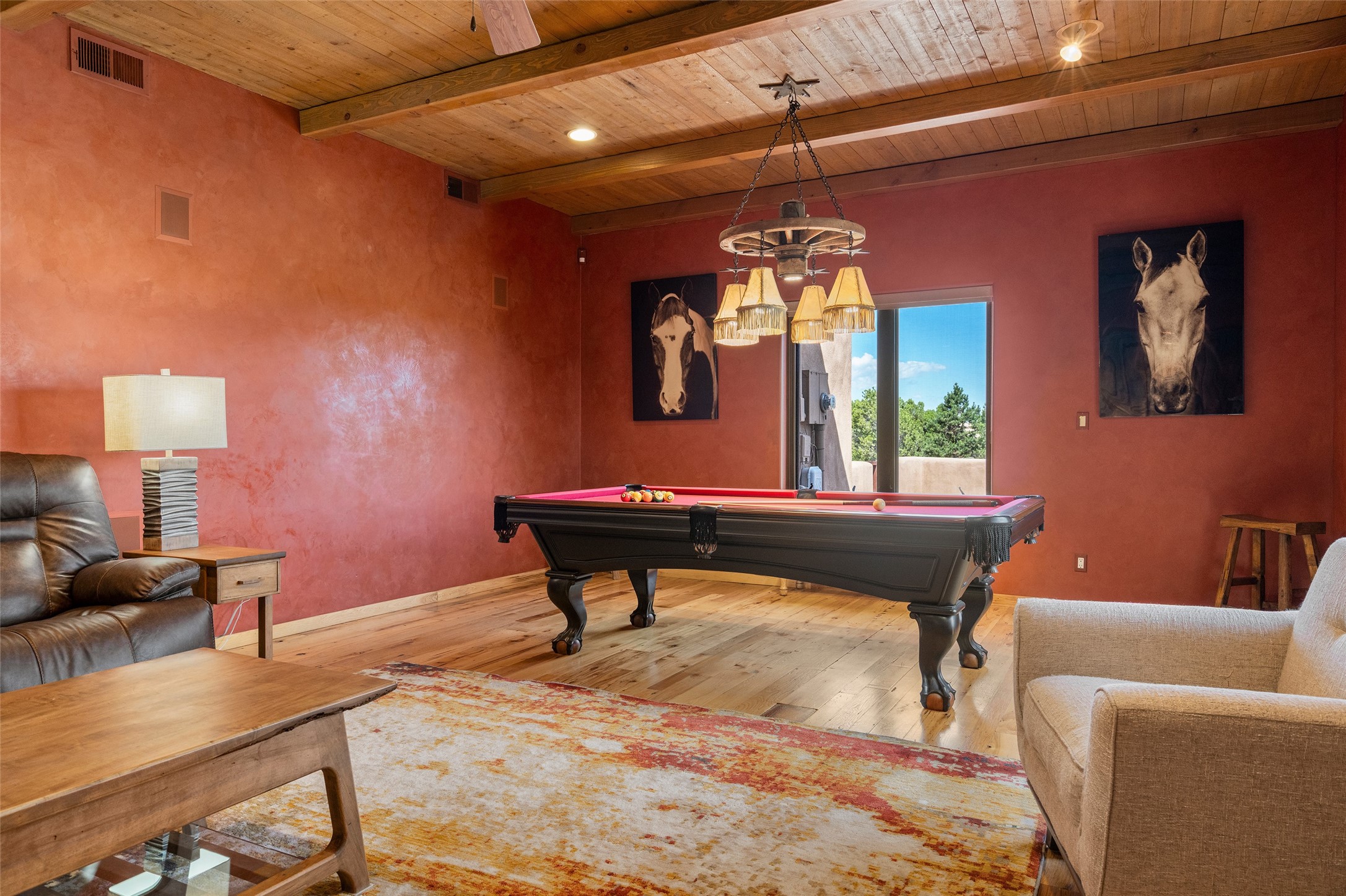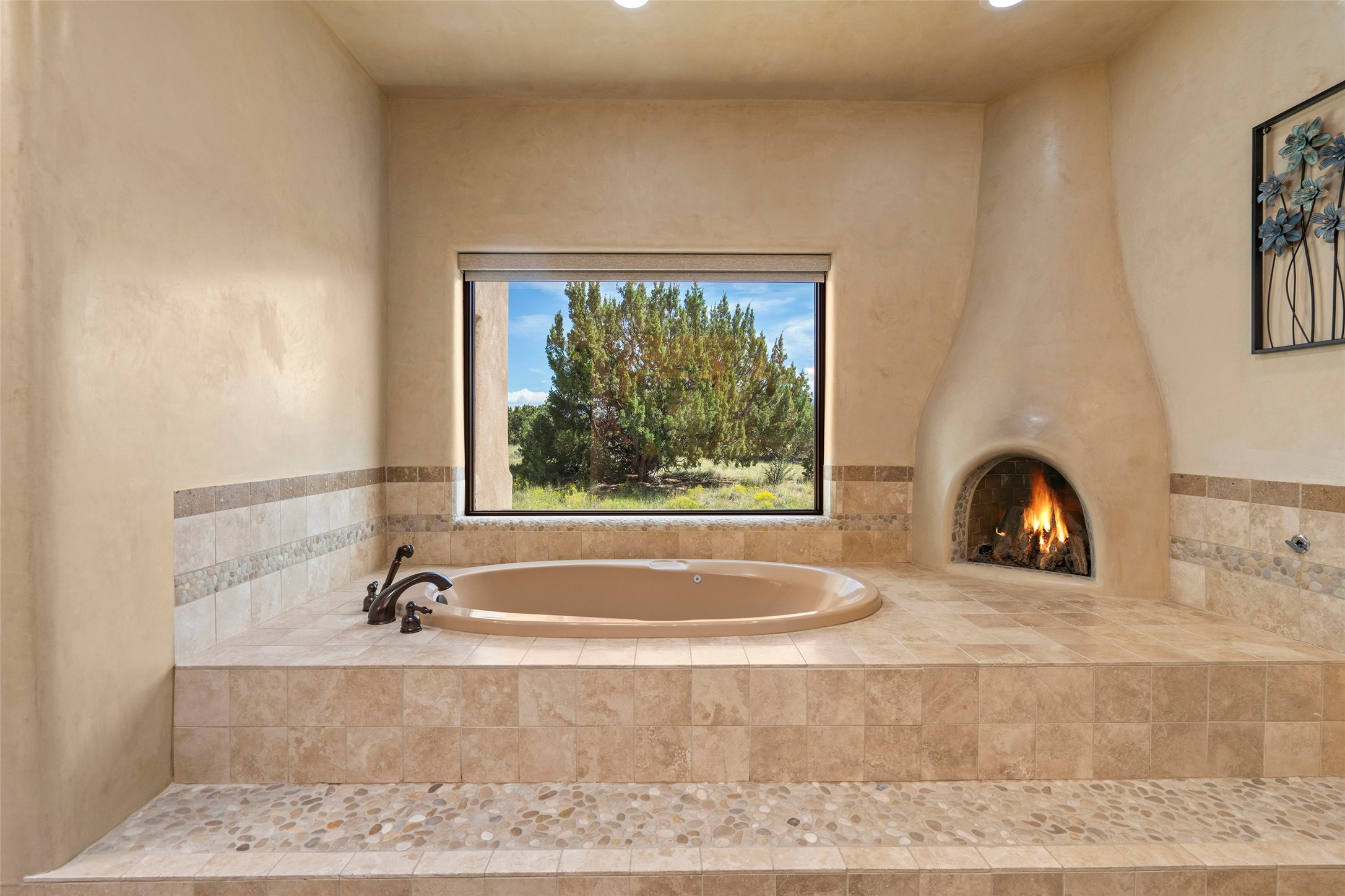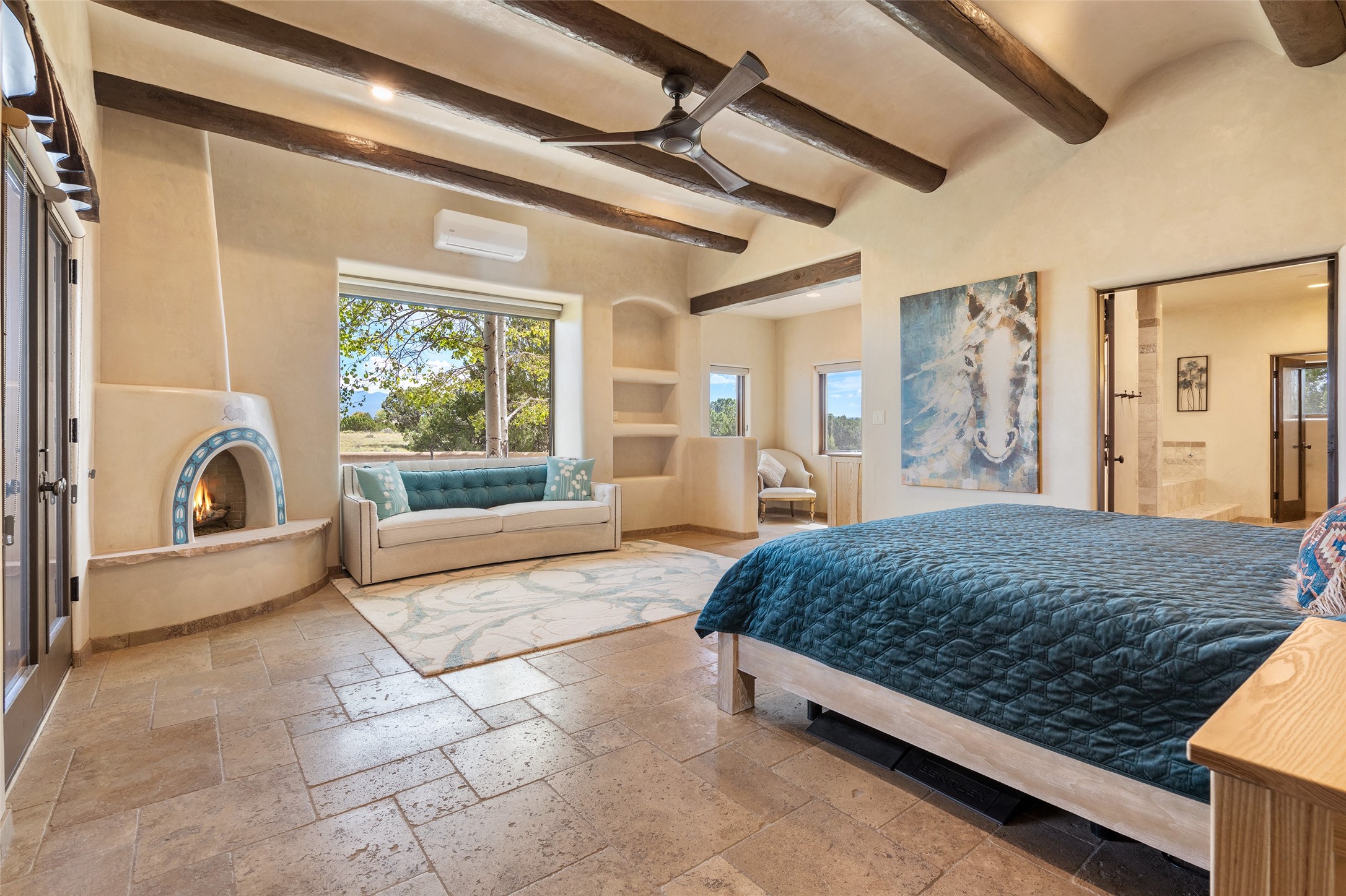 PANORAMIC VIEWS AND TIMELESS DESIGN IN LAS CAMPANAS. This refined residence in the Las Campanas community combines sweeping mountain vistas with many updates and enduring style in a hard-to-find 4 bedroom with a dramatic architecture. An inviting courtyard entry opens to generous living spaces framed by a dramatic sliding glass wall, creating seamless indoor-outdoor living. Towering viga-lined ceilings and plaster walls frame the spaces. The gourmet kitchen features dual Sub-Zero refrigerators, a Sub-Zero ice maker, and expanded storage. The owner's suite offers a quiet and spacious retreat, while a large media/game room provides flexibility for entertainment or relaxation. Recent enhancements include upgraded landscaping, refreshed interiors, and mechanical improvements that elevate both comfort and efficiency. Outdoor areas are designed for year-round enjoyment, with covered dining spaces, a pizza oven, and xeric, drip-irrigated gardens that are both lush and easy to maintain. Residents enjoy close proximity to The Club at Las Campanas, with spa, fitness, and dining amenities (membership available through the private Club at Las Campanas) as well as direct access to miles of walking paths. A move-in ready home blending elegant finishes, multiple upgrades, and the best of Santa Fe living.