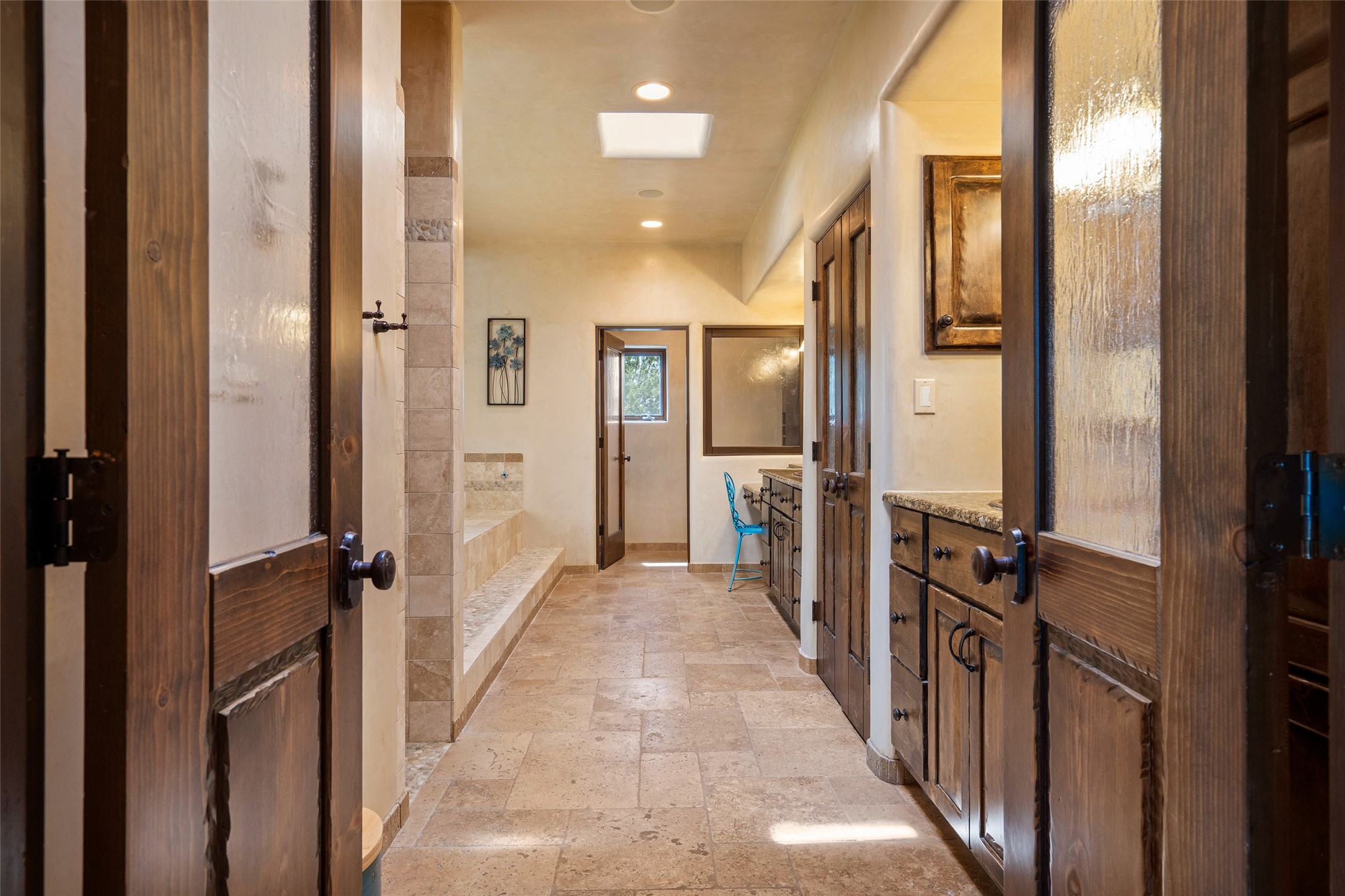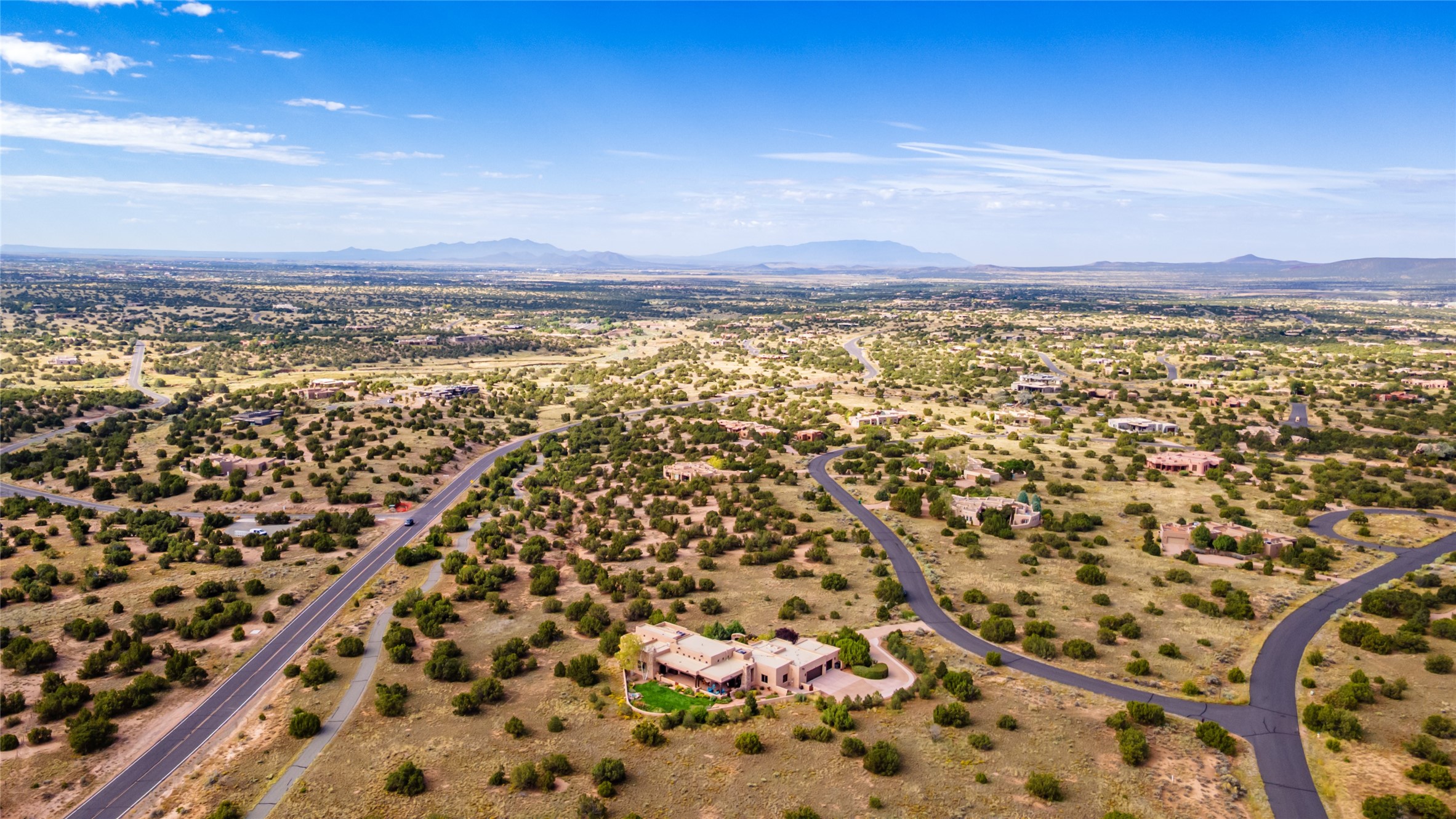 In the tree-studded rolling hills northwest of town are Las Campanas and a host of other developments and neighborhoods of larger, private lots and newer homes, most with city services and utilities. The land here sits between the city and the arroyos that carry rainwater to the Rio Grande, just a few miles west, creating a landscape almost like ocean waves rolling into shore.