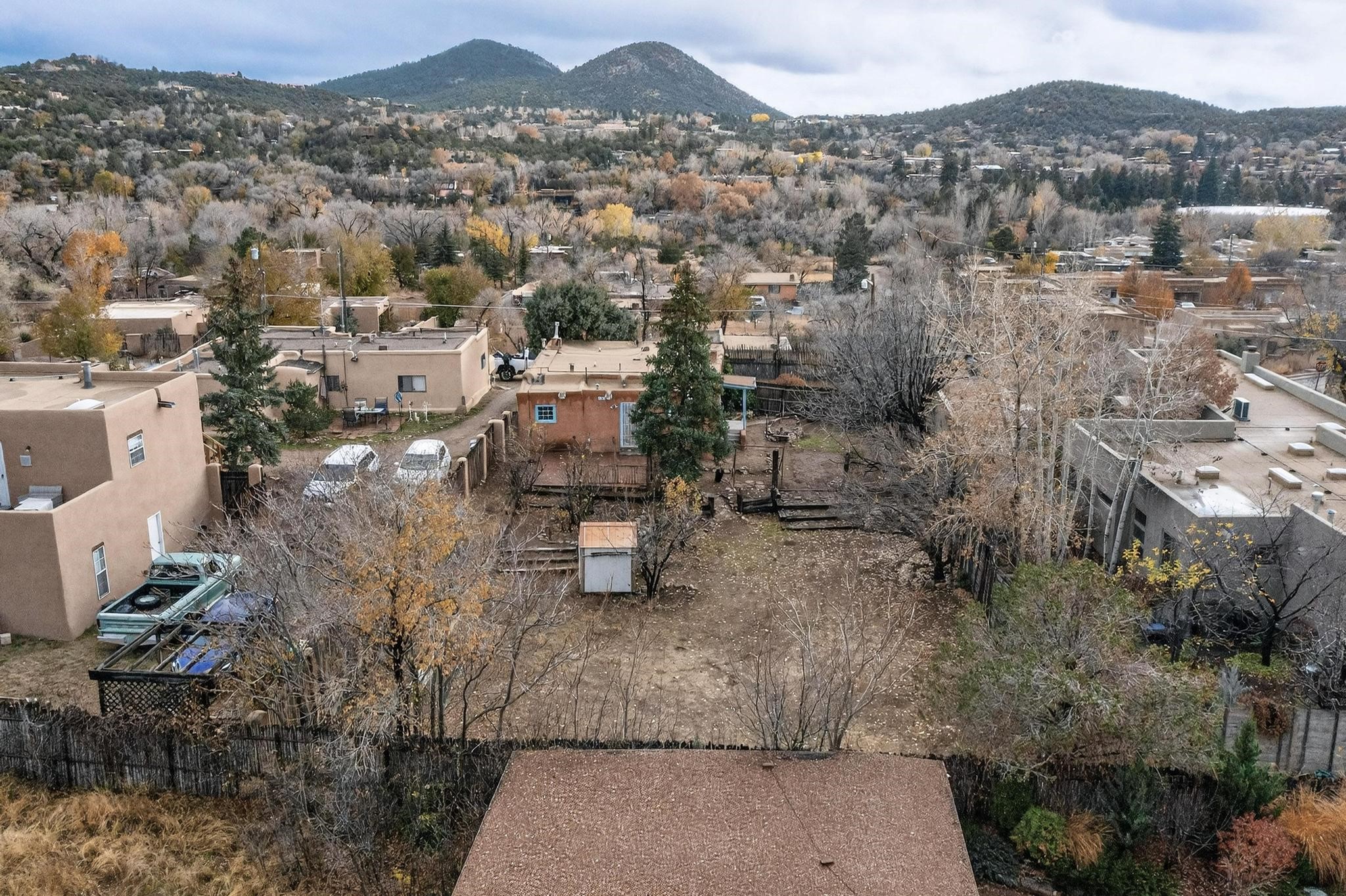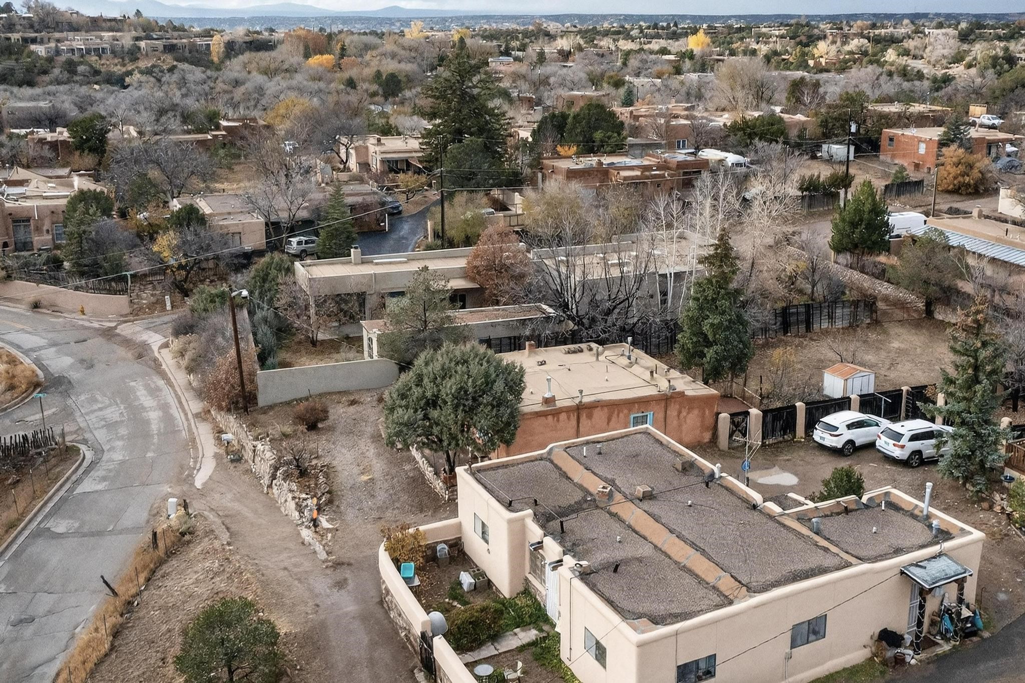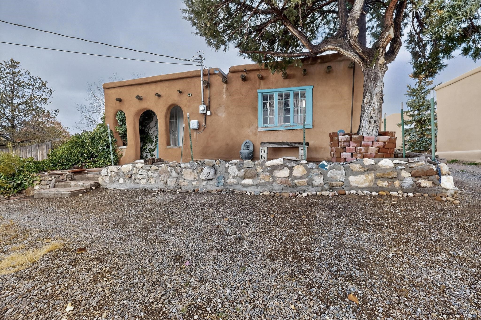 This Historic Adobe estate has prime land and development opportunity near downtown Santa Fe. This exclusive offering is a 1931 Adobe structure featuring a one bedroom one bathroom configuration. The elevated positioning affords expansive unparalleled views of the surrounding landscape. Preliminary assessment indicates the acreage is sufficient to accommodate the development of a second residential parcel, offering an exceptional investment for expansion opportunity, subject to zoning confirmation. Notably, there is a separate rear entrance to the backside of the property on N. Armijo Lane. The estate is defined by its maturity and natural beauty, featuring abundant native trees, notably including two striking black walnut trees along with some other fruit baring trees. The property maintains a remarkable balance of secluded natural tranquility while remaining approximately 5 minutes from the cultural and culinary center of downtown Santa Fe. This is a rare market entry for a developer, investor, or homeowner seeking a distinct blend of historic architecture, and close proximity to the city and acreage for future expansion. Don't miss this opportunity!