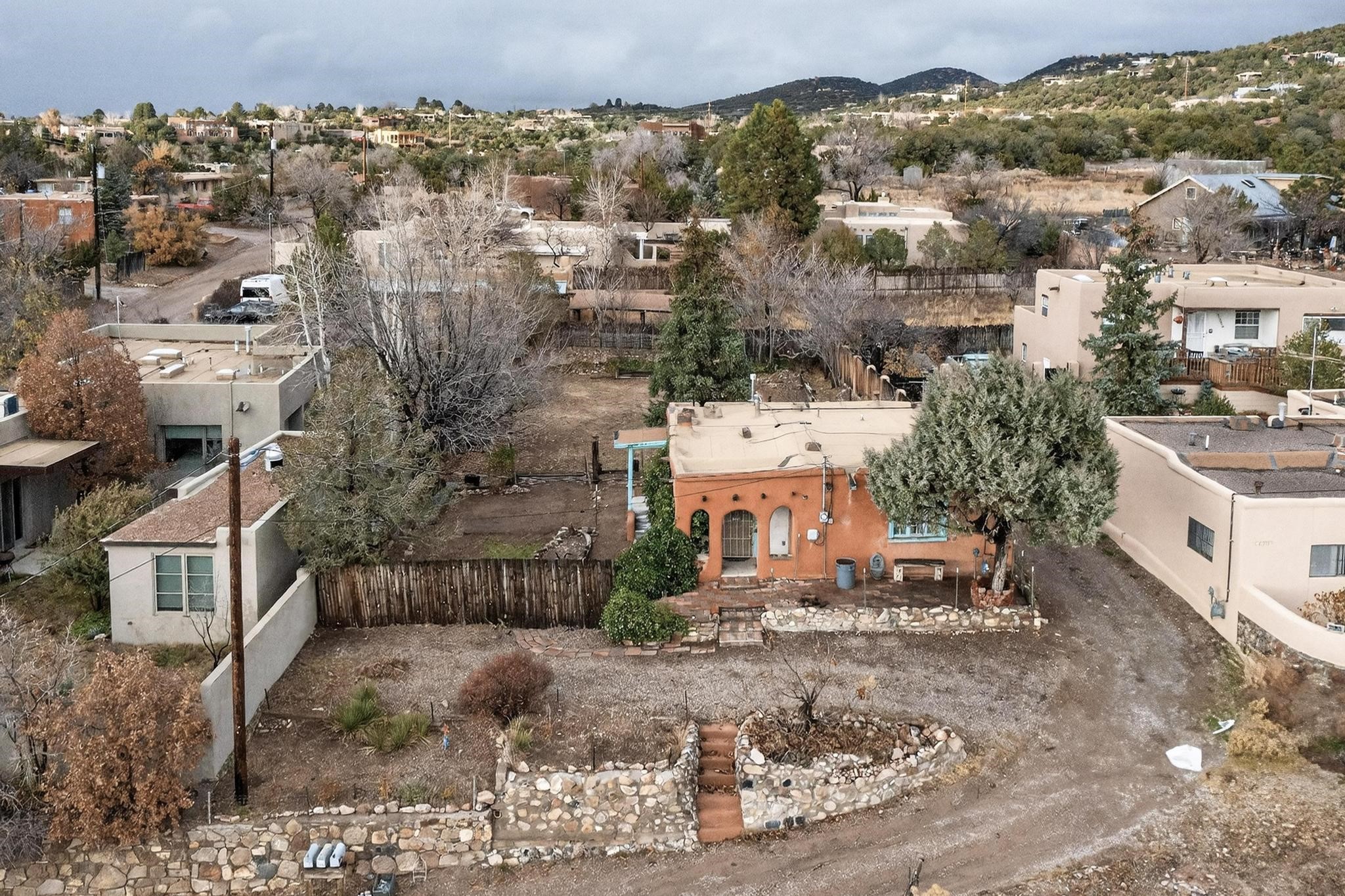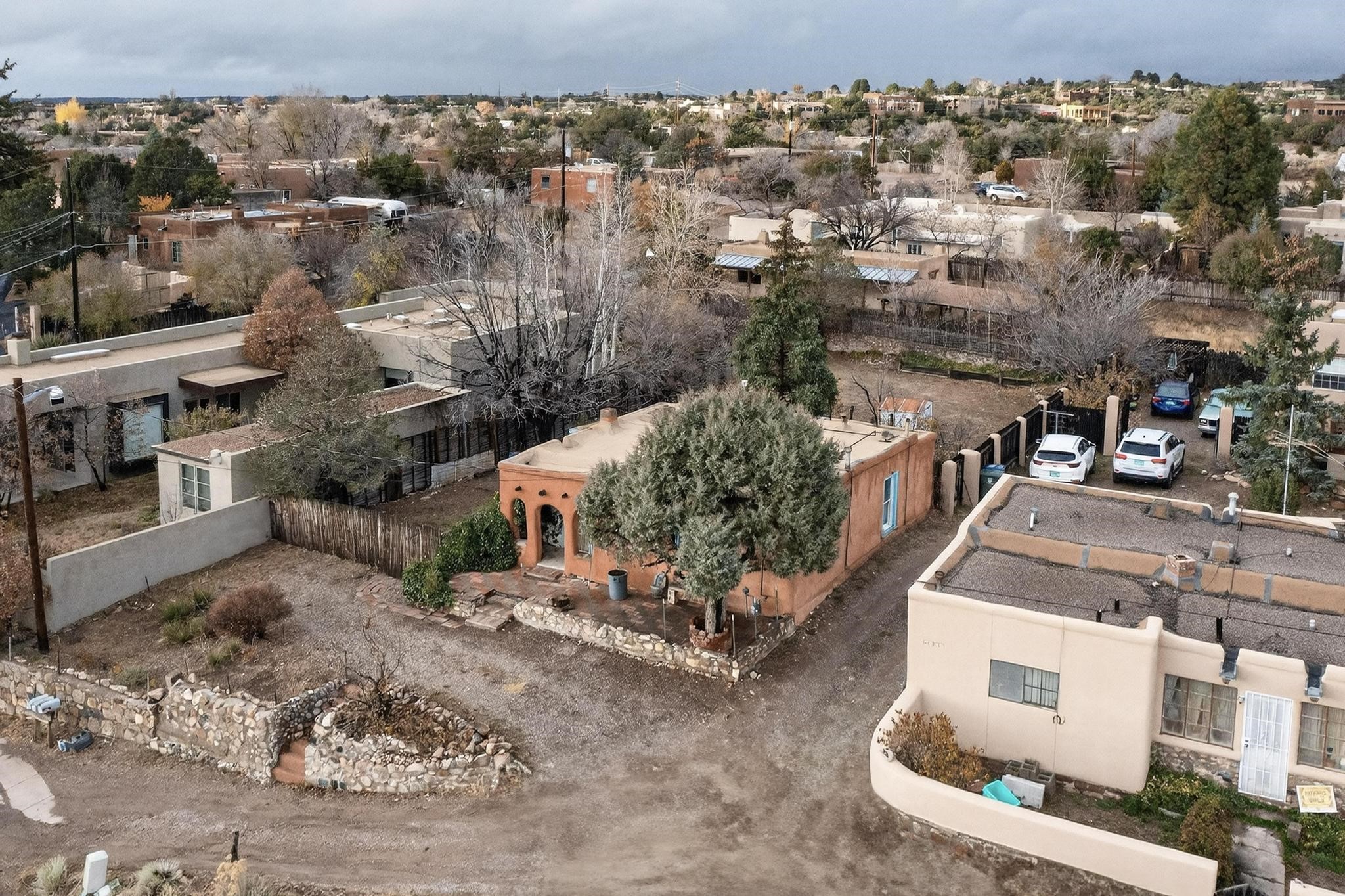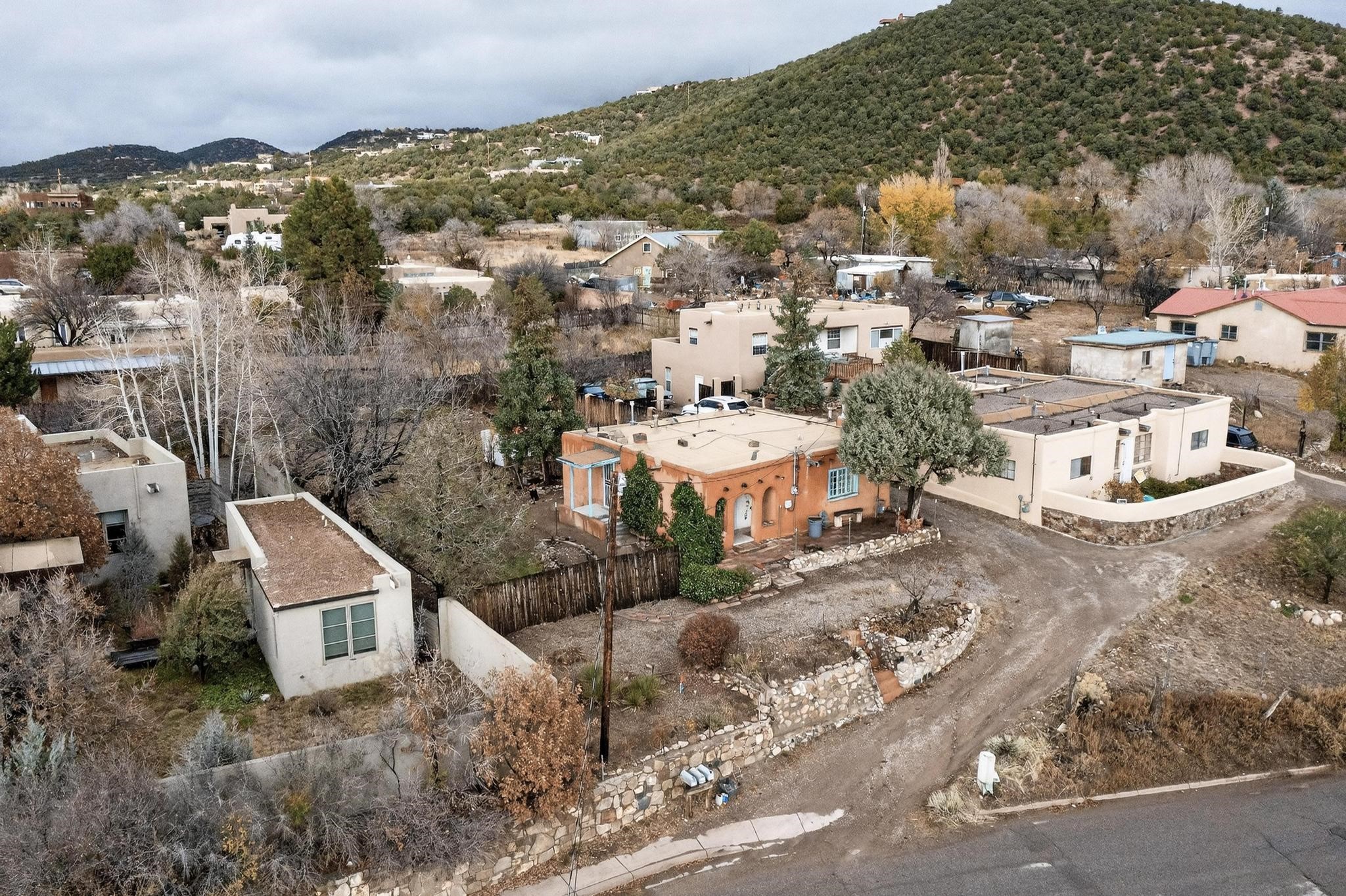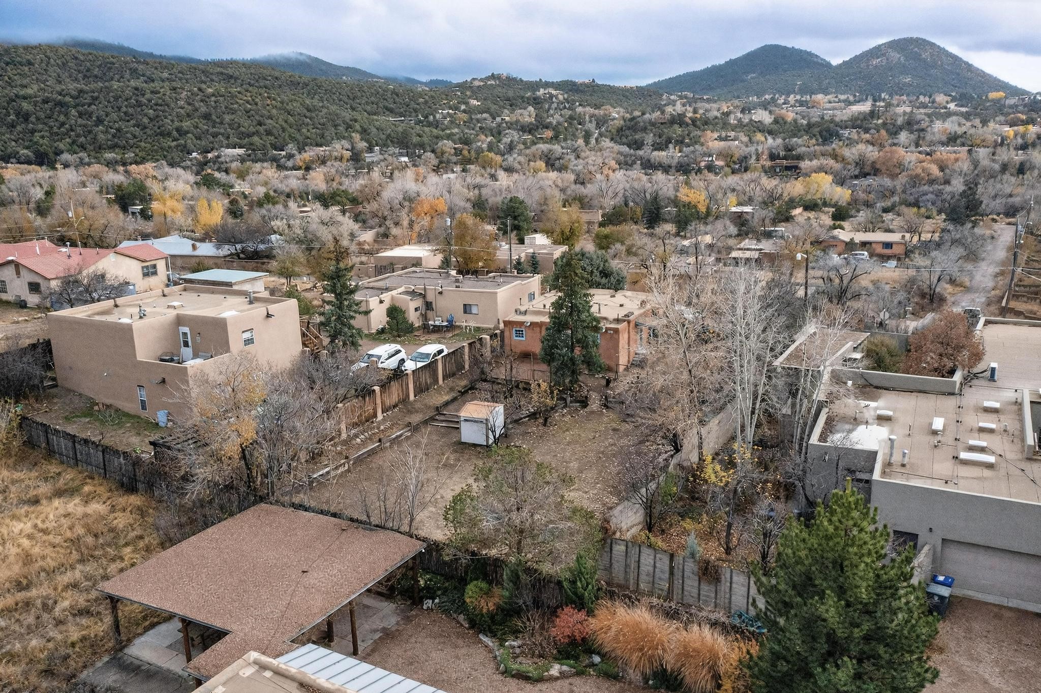 This Historic Adobe estate has prime land and development opportunity near downtown Santa Fe. This exclusive offering is a 1931 Adobe structure featuring a one bedroom one bathroom configuration. The elevated positioning affords expansive unparalleled views of the surrounding landscape. Preliminary assessment indicates the acreage is sufficient to accommodate the development of a second residential parcel, offering an exceptional investment for expansion opportunity, subject to zoning confirmation. Notably, there is a separate rear entrance to the backside of the property on N. Armijo Lane. The estate is defined by its maturity and natural beauty, featuring abundant native trees, notably including two striking black walnut trees along with some other fruit baring trees. The property maintains a remarkable balance of secluded natural tranquility while remaining approximately 5 minutes from the cultural and culinary center of downtown Santa Fe. This is a rare market entry for a developer, investor, or homeowner seeking a distinct blend of historic architecture, and close proximity to the city and acreage for future expansion. Don't miss this opportunity!