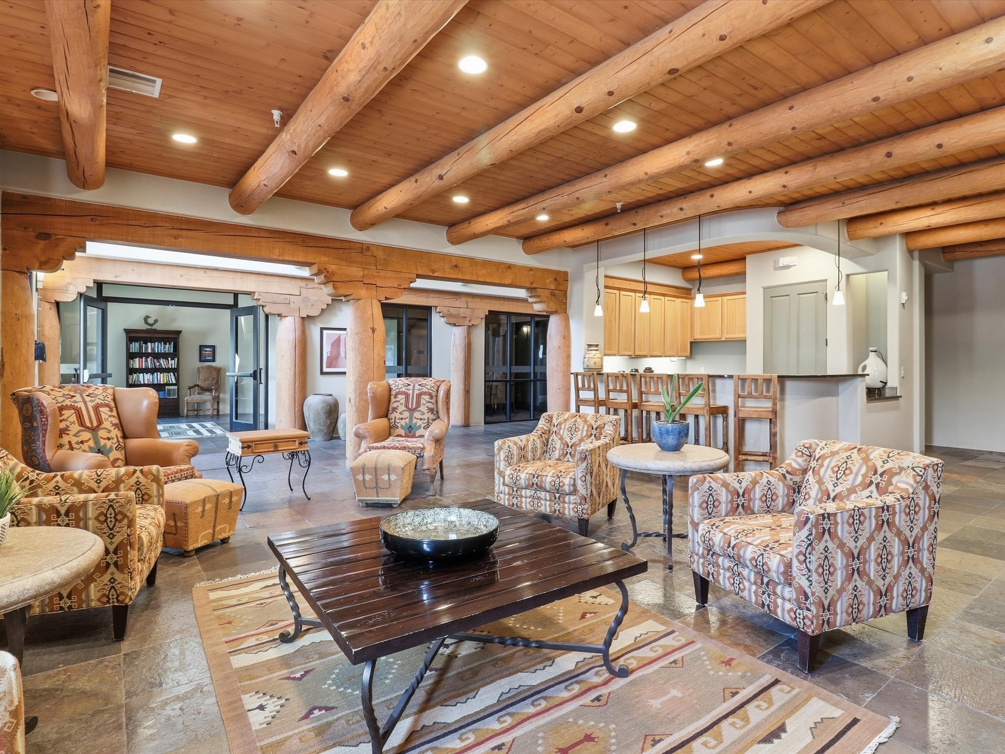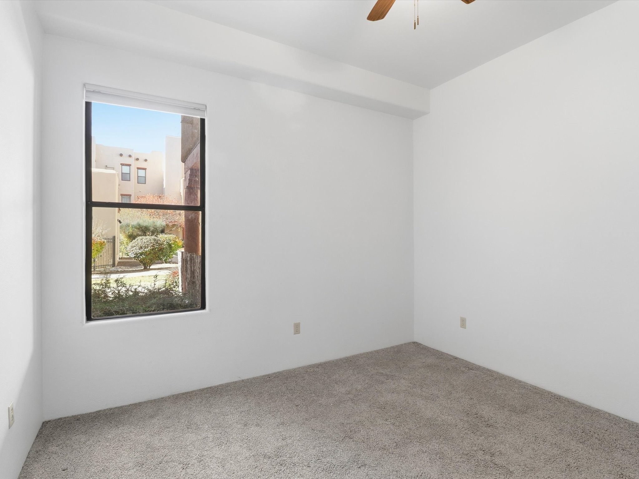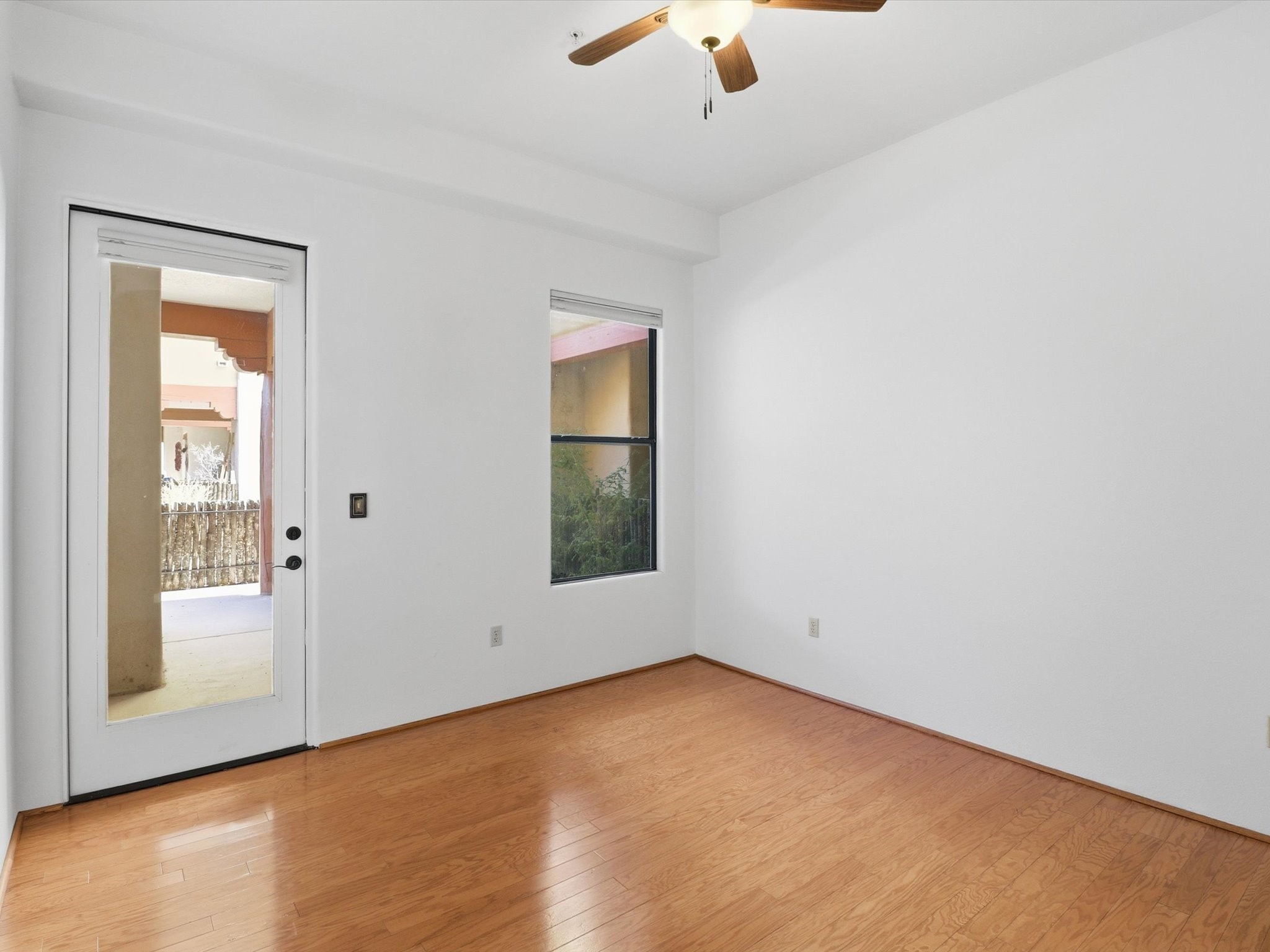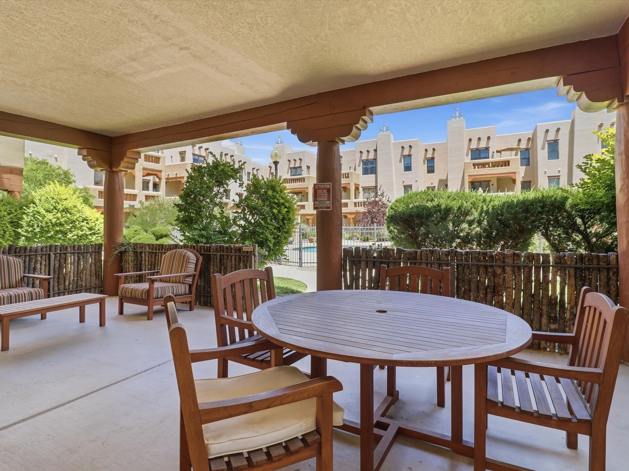Welcome to this beautiful corner unit in the desirable Alameda Condos! Having abundant natural light, this ground-floor gem has two bedrooms, each with its own full bathroom and walk-in closet. The primary bedroom offers a private patio entrance and an enclosed shower area, perfect for relaxing mornings.Enjoy an open-concept living and dining space centered around a cozy gas corner Kiva fireplace, while the kitchen is equipped with appliances for new homeowners daily use. Step outside to your fenced patio and take in serene pool views.With central refrigerated air conditioning, a host of community amenities--including a pool, gym, reading rooms, gated parking, on-site office, and building-wide WiFi--this condo is perfect for full-time living or a convenient lock-and-leave lifestyle. Comfort, style, and security all in one!