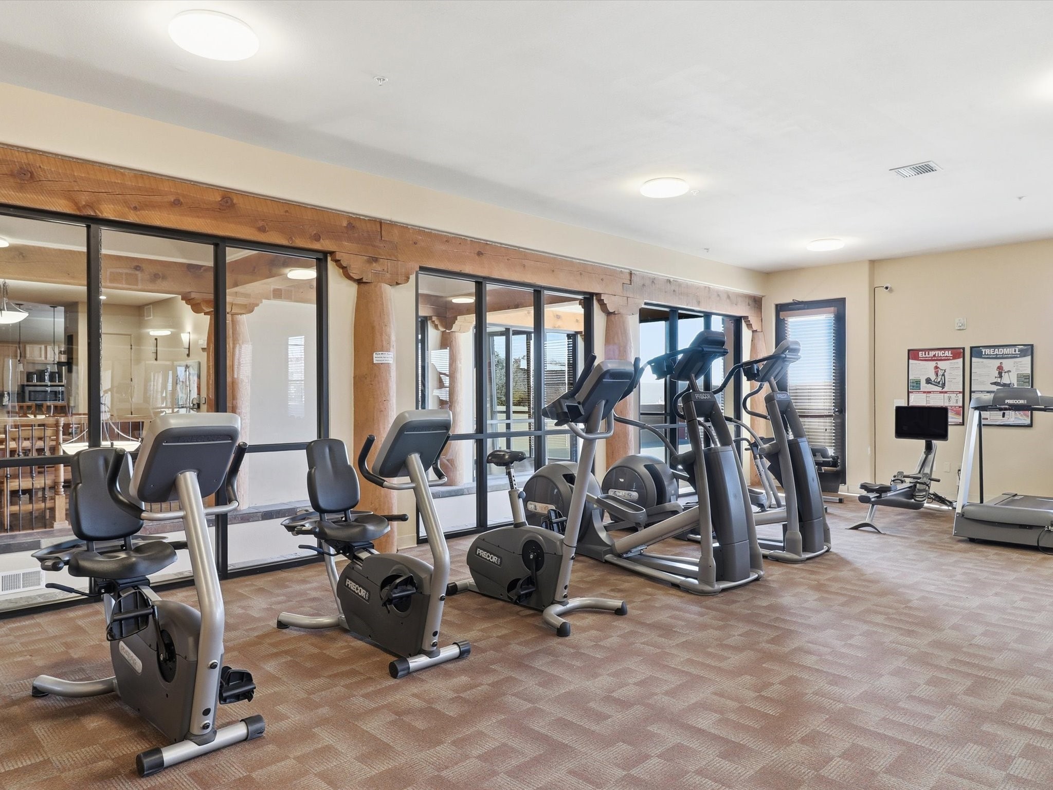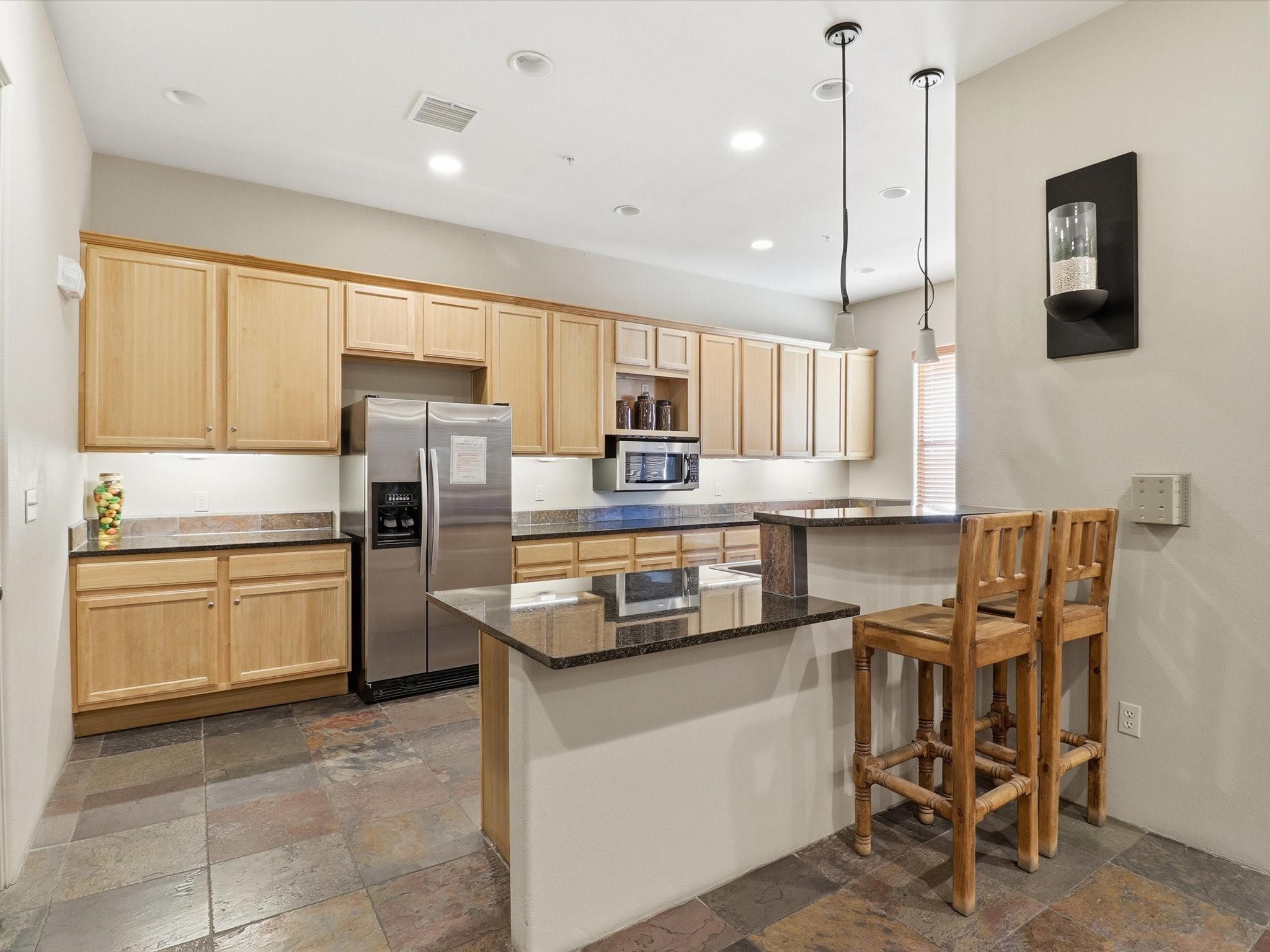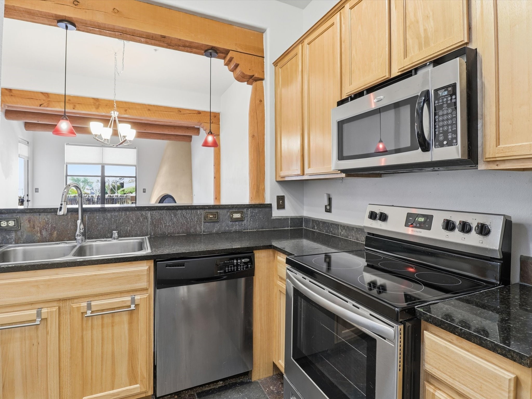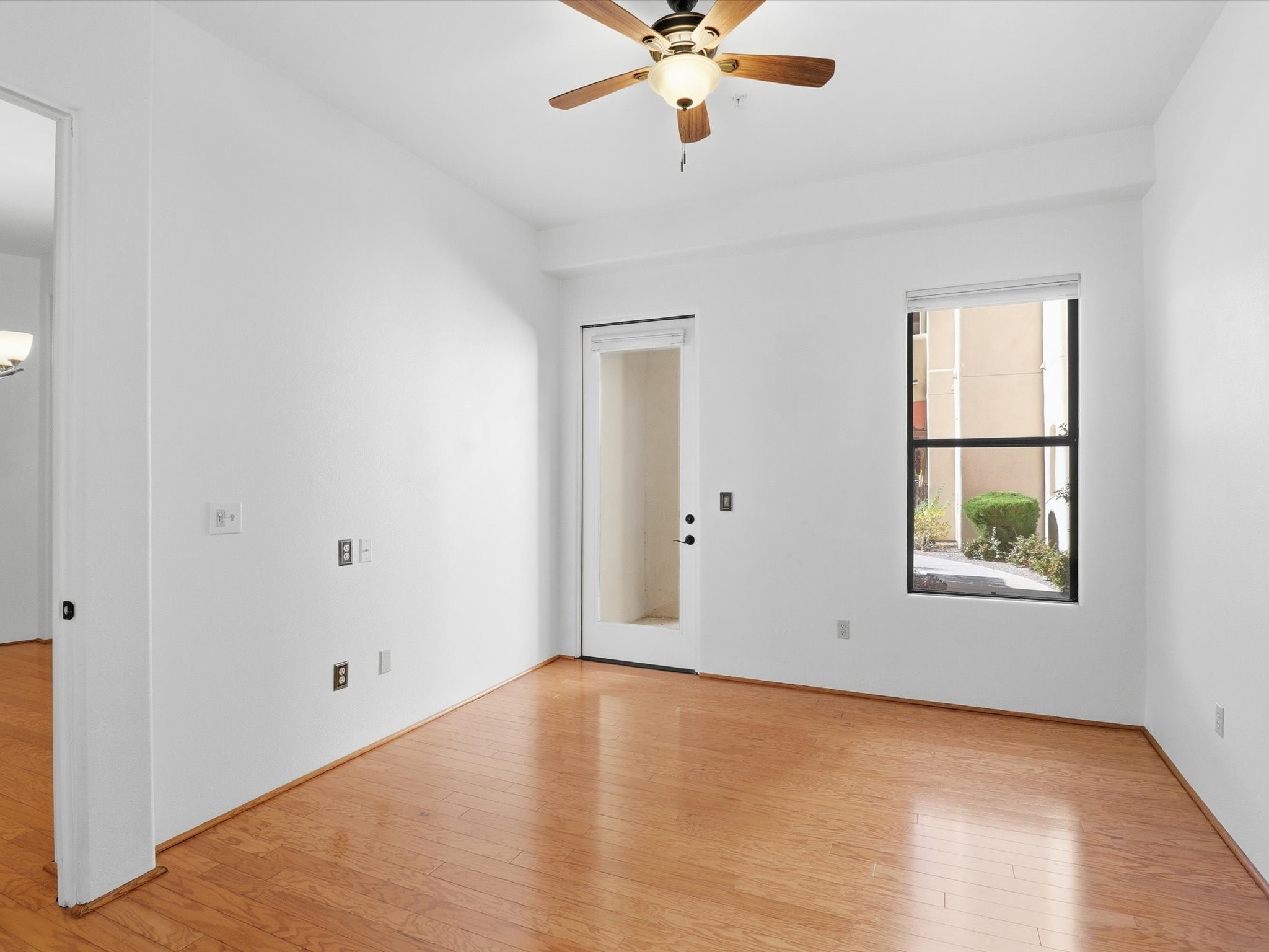 Welcome to this beautiful corner unit in the desirable Alameda Condos! Having abundant natural light, this ground-floor gem has two bedrooms, each with its own full bathroom and walk-in closet. The primary bedroom offers a private patio entrance and an enclosed shower area, perfect for relaxing mornings.Enjoy an open-concept living and dining space centered around a cozy gas corner Kiva fireplace, while the kitchen is equipped with appliances for new homeowners daily use. Step outside to your fenced patio and take in serene pool views.With central refrigerated air conditioning, a host of community amenities--including a pool, gym, reading rooms, gated parking, on-site office, and building-wide WiFi--this condo is perfect for full-time living or a convenient lock-and-leave lifestyle. Comfort, style, and security all in one!