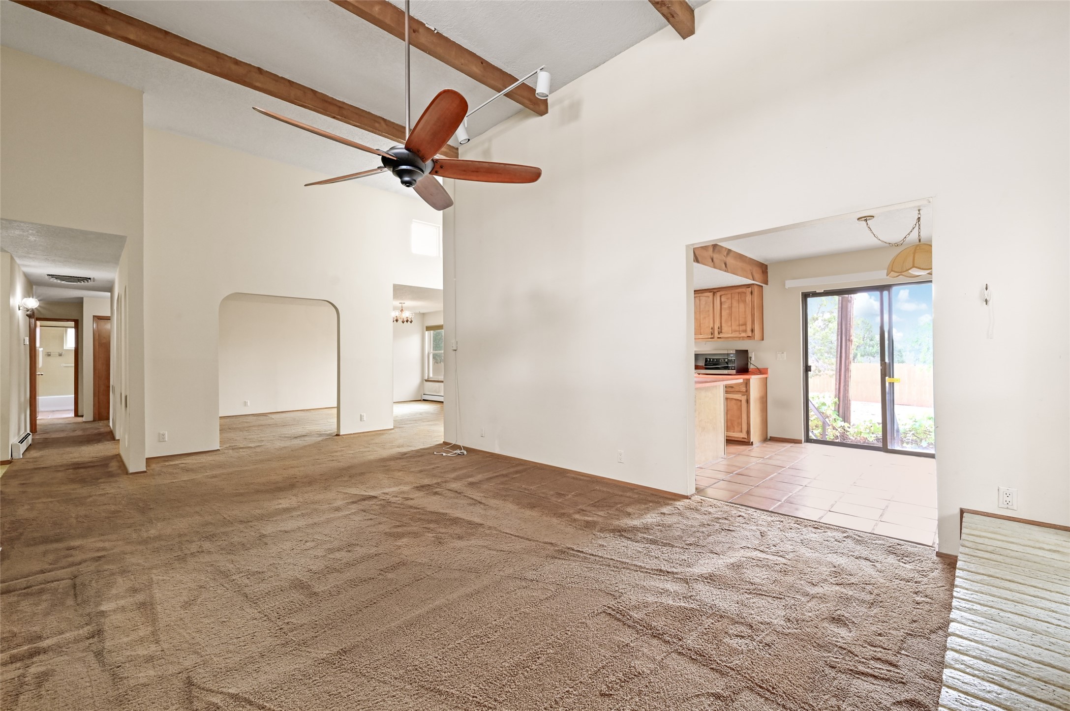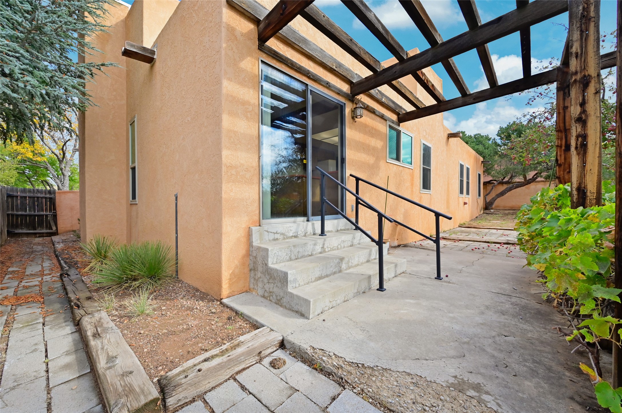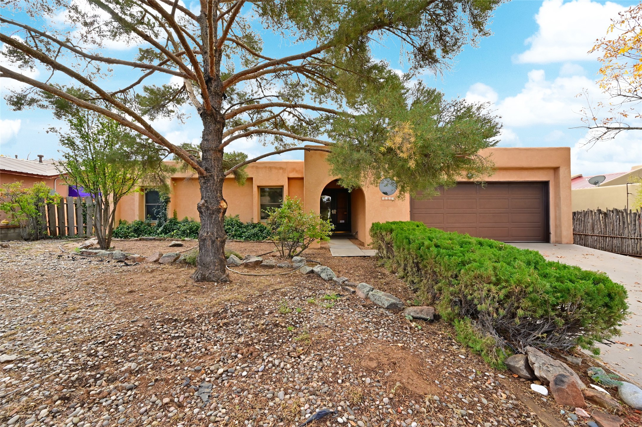 Rare opportunity to reimagine this 3 bed/2 bath 1700+sf single family home on ~1/4 acre lot in classic, central Santa Fe location! Entry foyer opens to living room w/dramatic tall ceilings, beams, windows, and wood burning fireplace. Eat-in kitchen w/dining area has classic Saltillo tile flooring and leads to generous rectangular backyard w/ample space to create and upgrade for multiple purposes, from gardening, entertaining, restoration, and more. 2 car garage + additional spaces in driveway/street. Close to everything. Neighborhood is just minutes from I-25 & Railrunner station for commuters, retail/grocery stores, multiple schools, and <10 min drive to the Plaza. Come and see the potential this has to offer to make it your own!