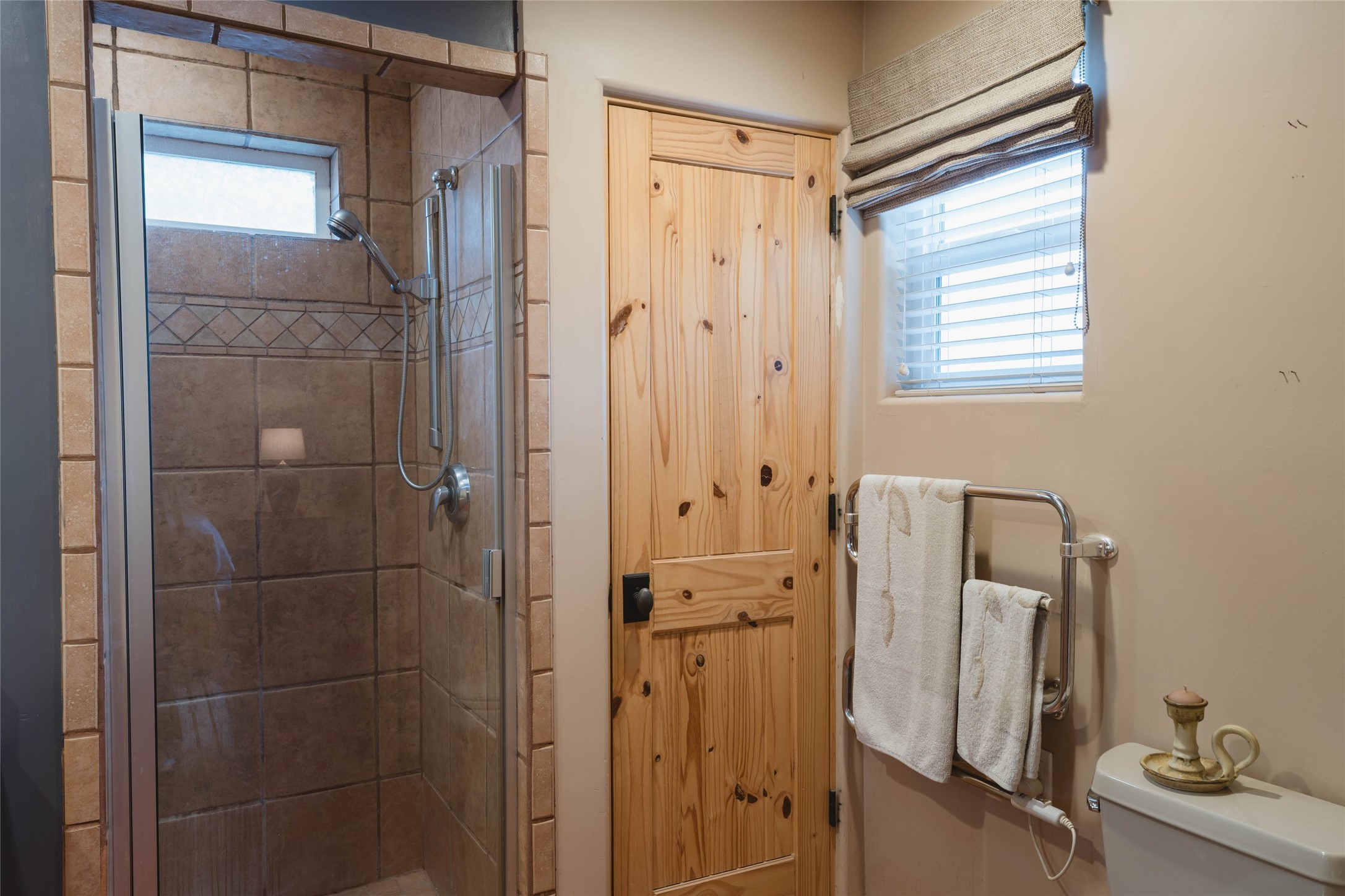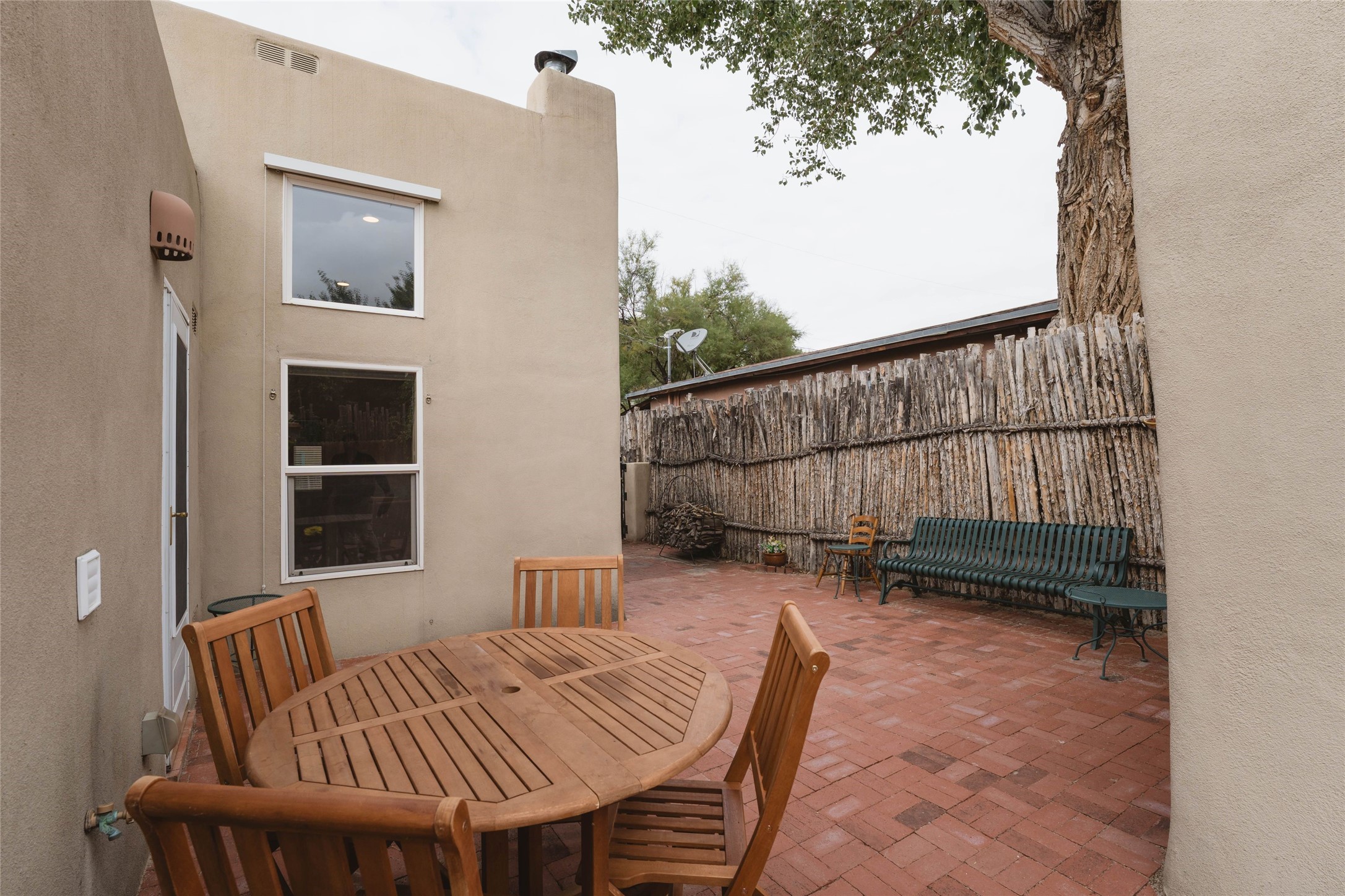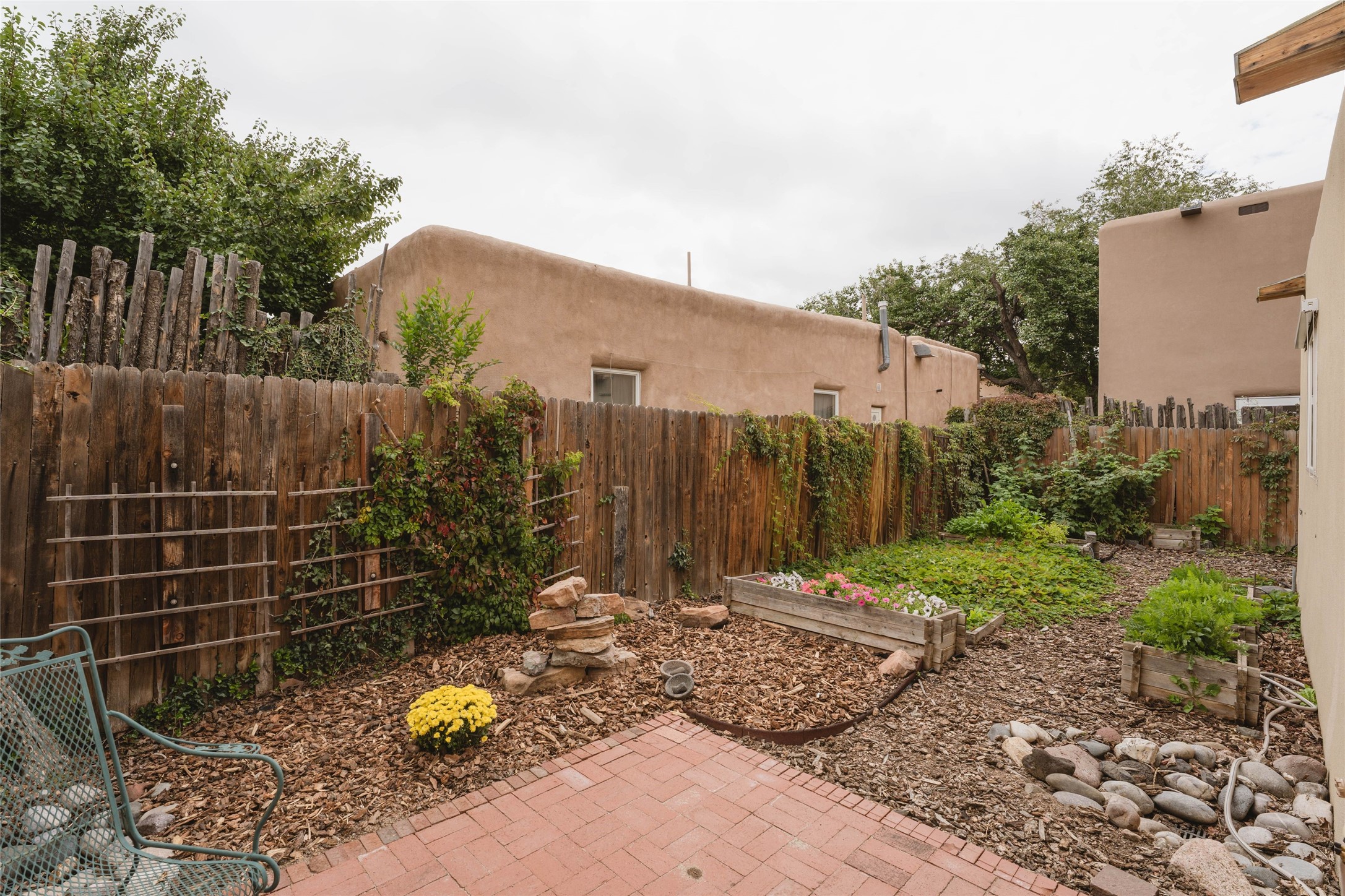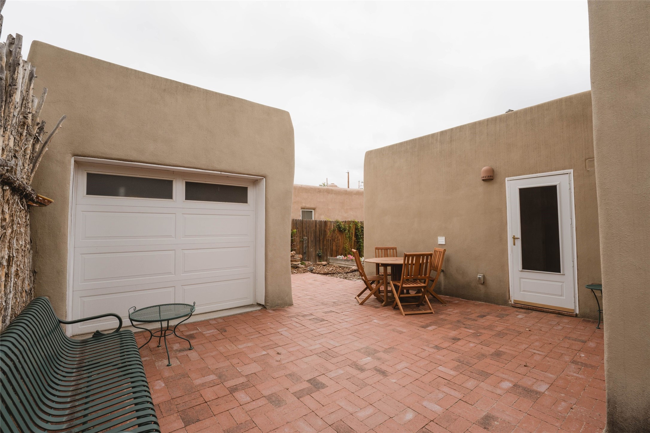 A rare opportunity in one of Santa Fe's historic areas: a newer home, built in 2004, offering modern convenience in one of the city's most desirable neighborhoods. Situated at 109 Candelario Street, this 3-bedroom, 2-bath residence spans 1,472 square feet and blends contemporary living with classic Santa Fe style. Inside, soaring viga ceilings, brick floors, and a kiva fireplace define the open living space. The kitchen features granite countertops, ample cabinetry, stainless steel appliances, and a spacious island. Radiant in-floor heating and a mini-split cooling system ensure year-round comfort. The primary suite offers privacy and an en-suite bath with a walk-in shower. Additional bedrooms are versatile, perfect for guests, a home office, or a creative space. Both bathrooms showcase artisanal tile details that reflect Santa Fe's character. Outdoors, enjoy a private walled courtyard with garden beds, brick patios, and areas for entertaining or relaxing. The one-car garage offers secure parking or can serve as a studio or workshop, conveniently located close to downtown. All of this is located just minutes from the Plaza, Canyon Road, and Santa Fe's galleries, restaurants, and cultural attractions. Opportunities like this are rare newer construction in a historic location with modern systems and flexible living space. Schedule your private showing today.