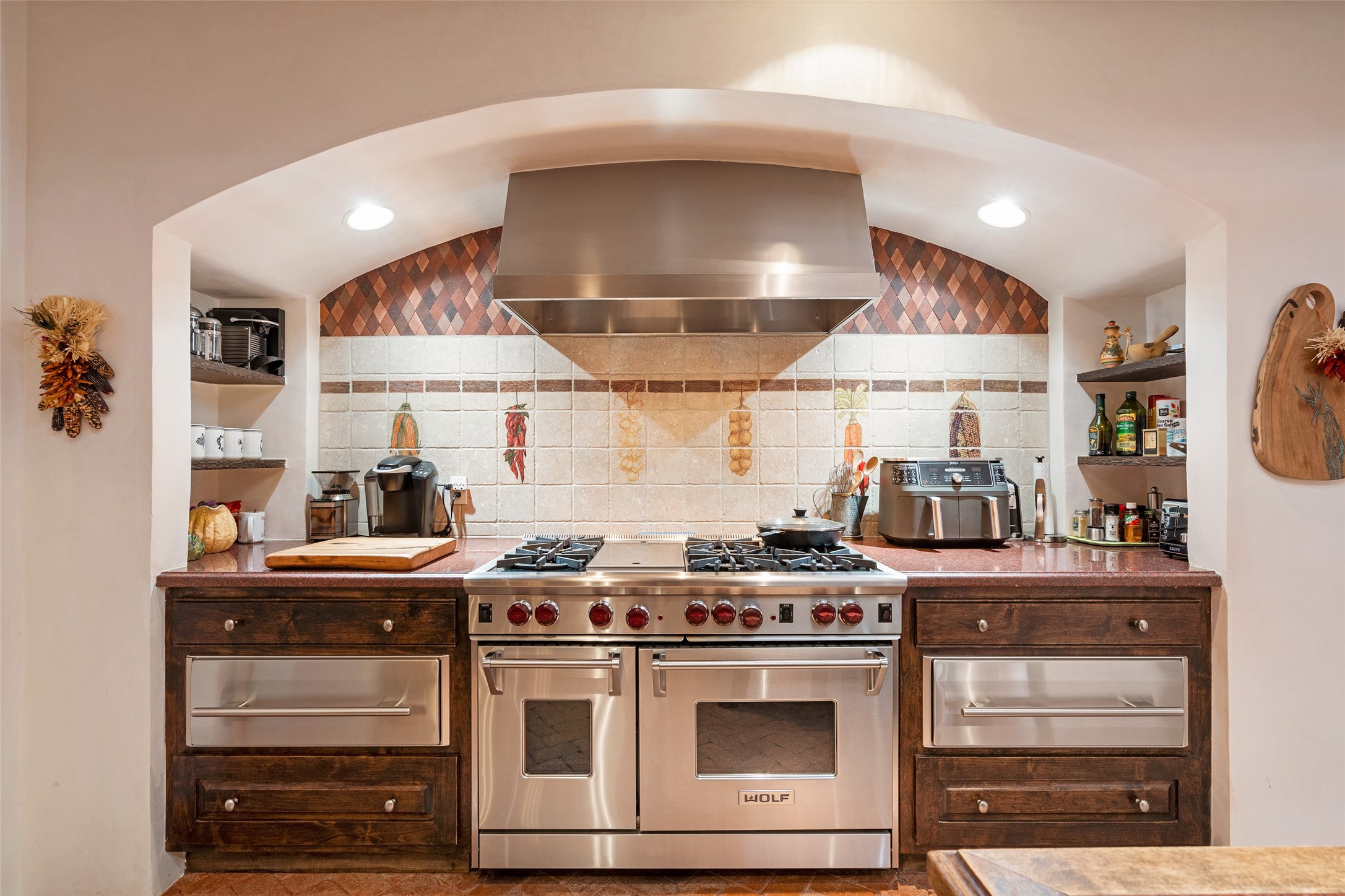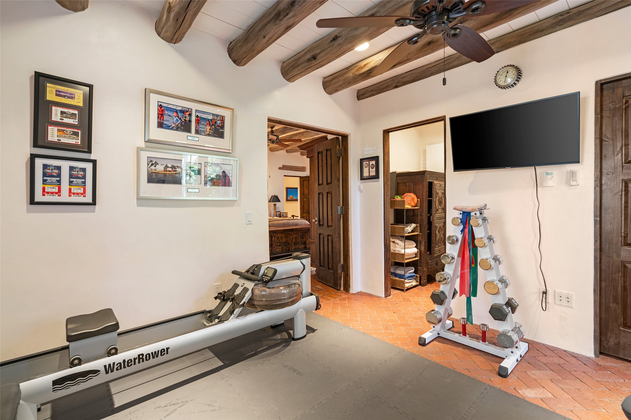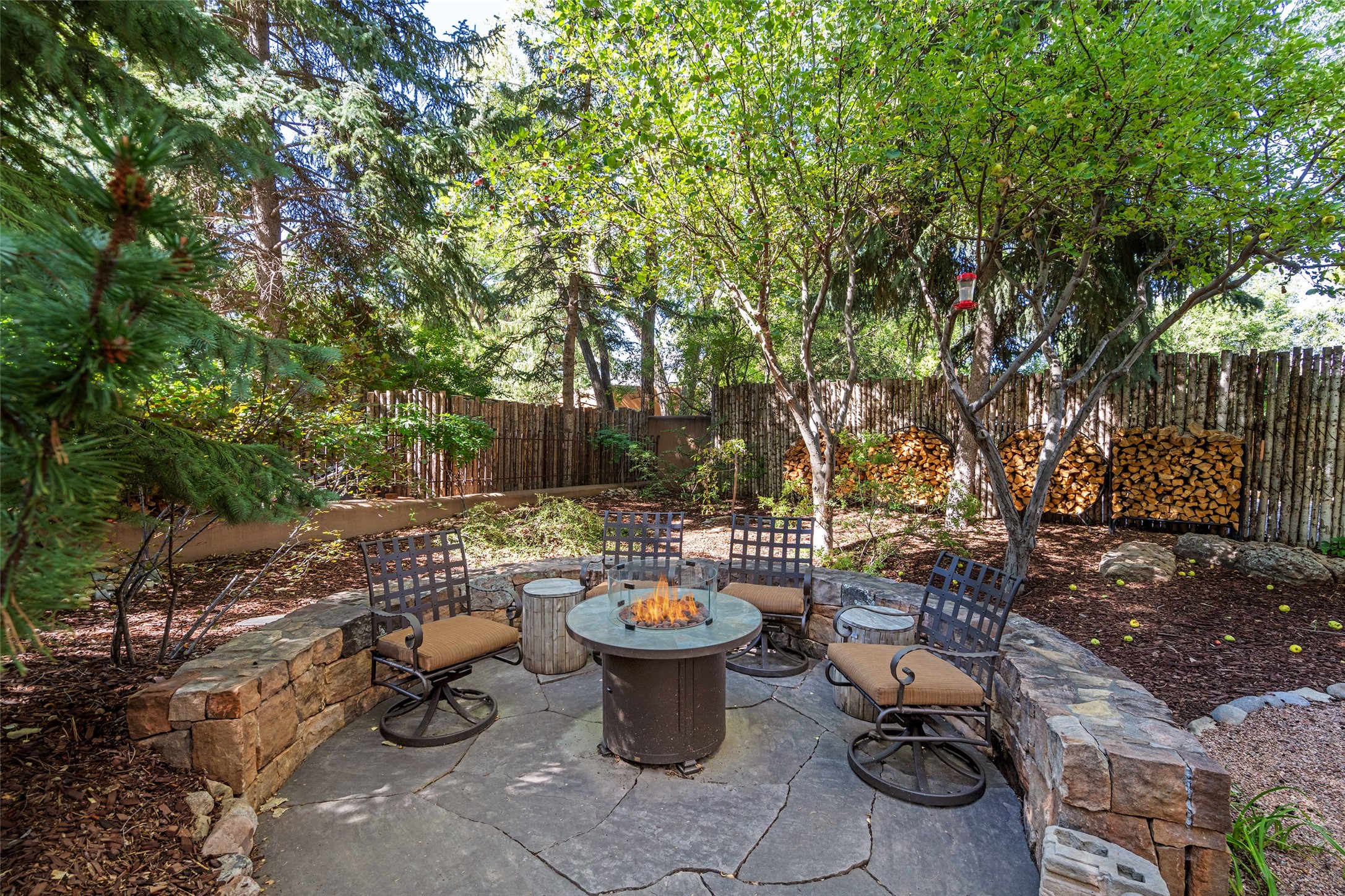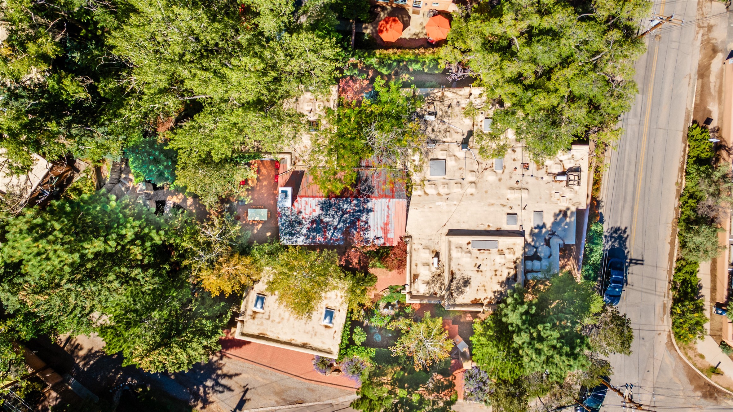 STATELY HISTORIC EASTSIDE BETTY STEWART HOME WITH PROVENANCE AND TRUE BLUE-CHIP LOCATION ON THE ACEQUIA MADRE. Rare offering for the ultimate downtown residence - everything from Downtown Subscription to fine dining, exploring Canyon Road, and enjoying the surrounding hills - all at your fingertips. Nestled in the epicenter of one of Santa Fe's most coveted locations, this exceptional residence seamlessly blends historic charm with refined updates. Surrounded by exquisite mature trees and vines; a winding path around the property shows a parade of color, seasonal landscape interest and multiple fountains that serve to enhance the natural outdoor experience year-round. Cross the wood bridge and sit by the Acequia - the ultimate Santa Fe respite. A Betty Stewart addition, executed to the highest standards, showcases vaulted ceilings, hand-carved woodwork, deep inset windows, and elegant chandeliers that fill the home with natural warmth. Classic brick floors flow throughout, leading to numerous patios perfect for entertaining. The large kitchen is both inviting and functional with a floating Kiva fireplace, Wolf/Sub-Zero/Thermador appliances, and pantry. The owner's suite offers a built-in study and an adjoining flex space ideal as a laundry, gym, or office. A private guest suite includes patio access and its own elevated Kiva fireplace. Gorgeous vigas and beams highlight the home's Southwestern character. Additional features include an office/study or third bedroom, an oversized detached two-car garage, multiple mini-splits for cooling, and two radon mitigation systems. Optional Acequia irrigation rights further enhance the lust setting. Just moments from galleries, restaurants, and cultural landmarks, this property represents the rare opportunity to own a piece of Santa Fe history while enjoying modern comfort in an unparalleled location.