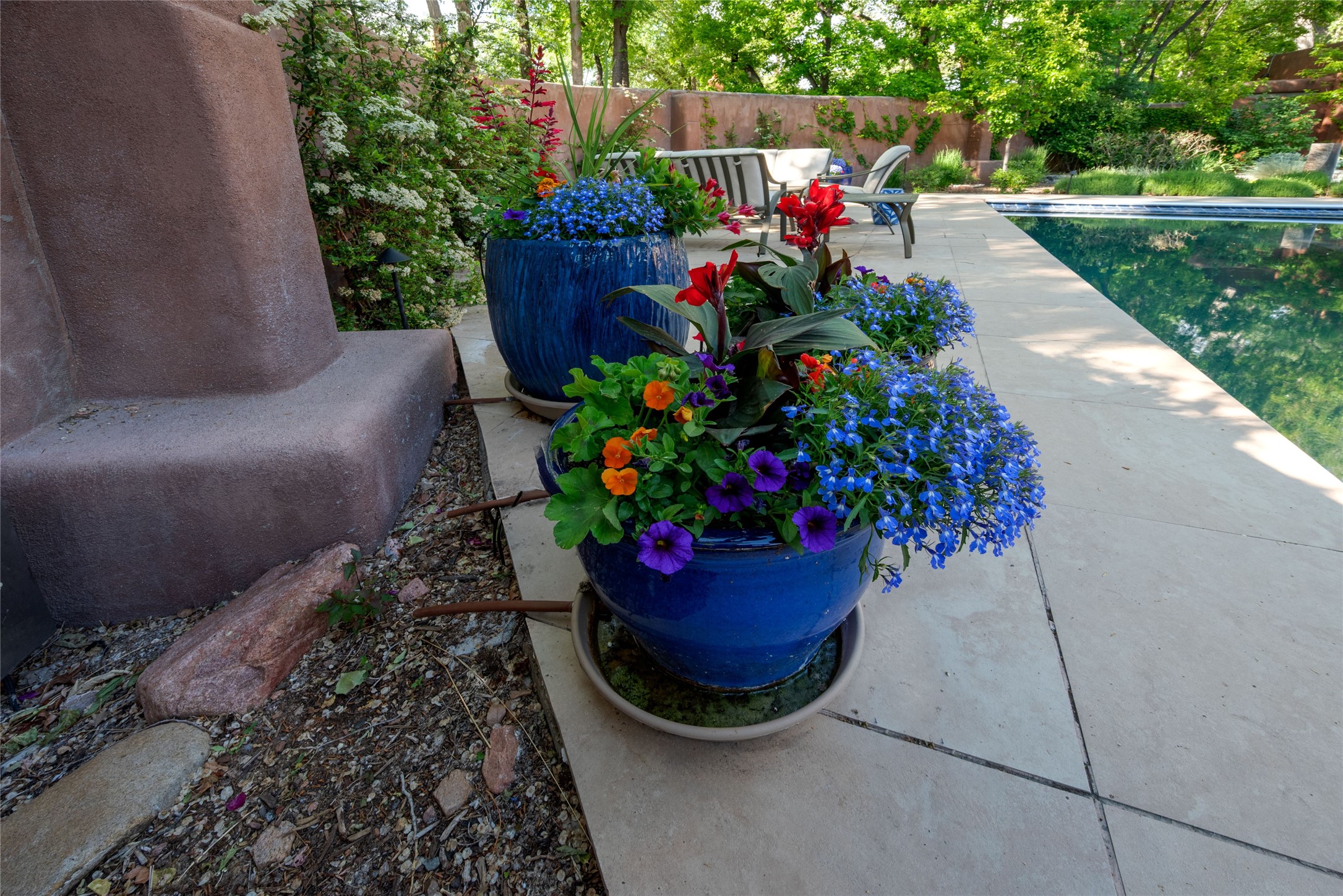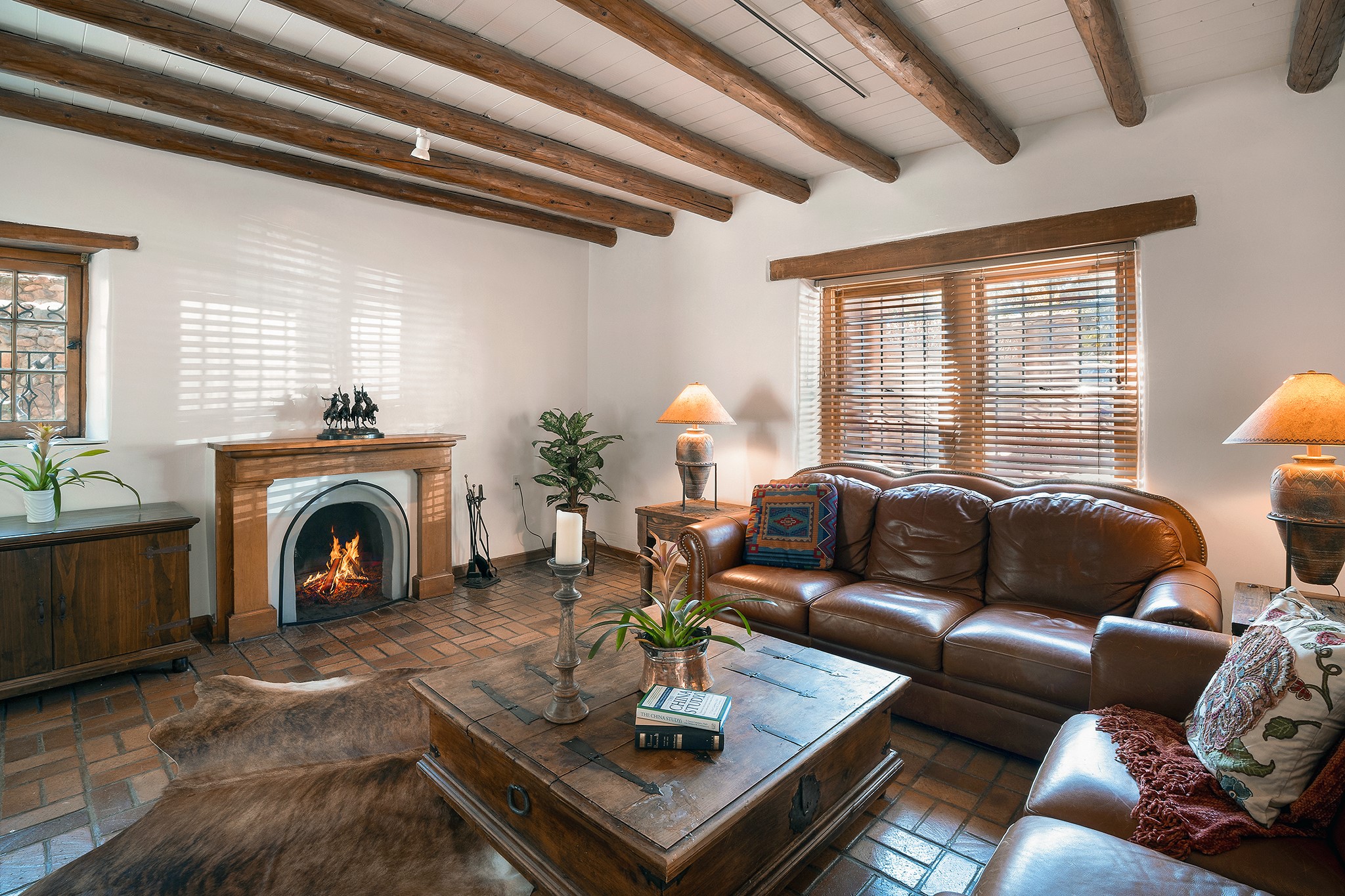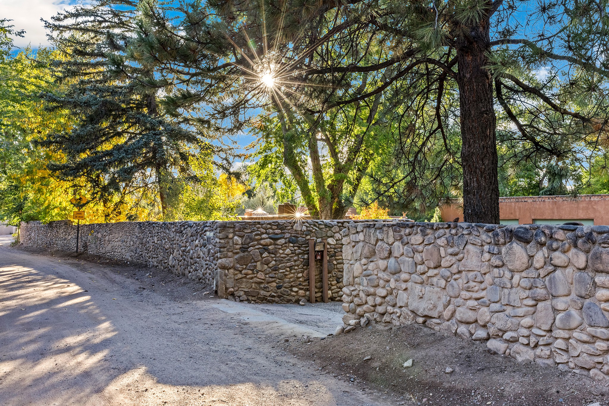 481 Arroyo Tenorio, behind an iconic stonewall in the heart of the Historic East side and the Acequia Madre runs through it! Tucked away and gated on a serene lane in the coveted Historic District is this enviable compound which blends traditional Santa Fe architecture with modern comforts. Thick plastered walls, vigas, coved ceilings, and multiple fireplaces create warmth and authenticity, while large windows and French doors invite abundant natural light. An elegantly designed pool, hot tub and extended outdoor living space and vegetable garden were added in 2022. The main house flexible floor plan offers gracious living and dining areas, a well-appointed kitchen, two private bedroom suites , additional guest bedroom , 2.5 baths office and media room. Perfect for full-time living or part time with privacy and security . The guest house features one bedroom , one bath , living area ,dining and kitchenette. Outdoor living is equally inviting, with lush, landscaped gardens, flagstone patios, and shaded portals ideal for entertaining or quiet retreat.Just moments from Canyon Road, the Plaza, and some of Santa Fe's finest restaurants and galleries, around the corner from famous local Downtown Subscription coffee shop and Garcia Street Books. This home provides the perfect balance of privacy and proximity. A rare opportunity to own a classic East side property in one of the city's most sought-after neighborhoods.