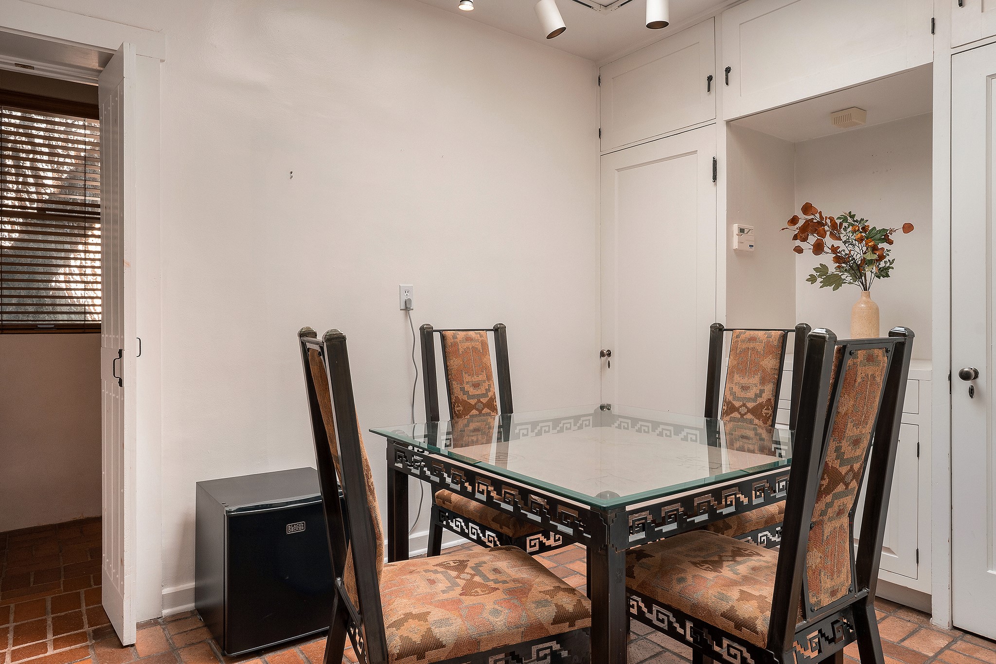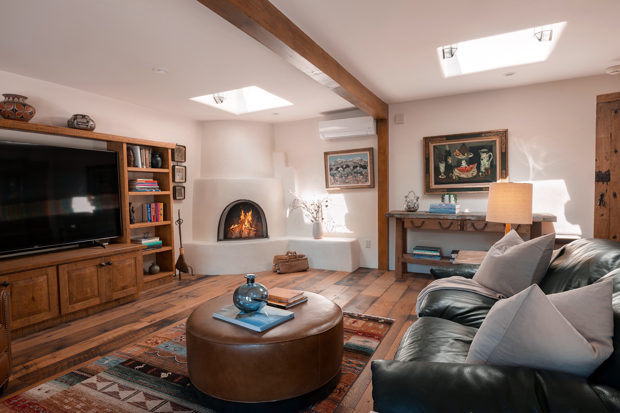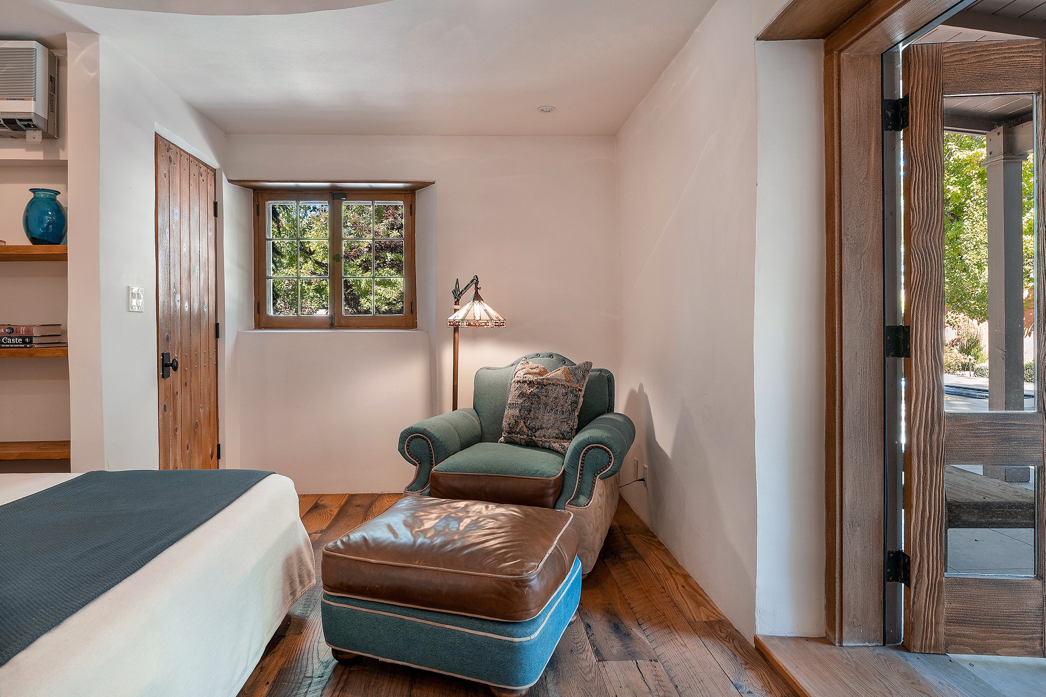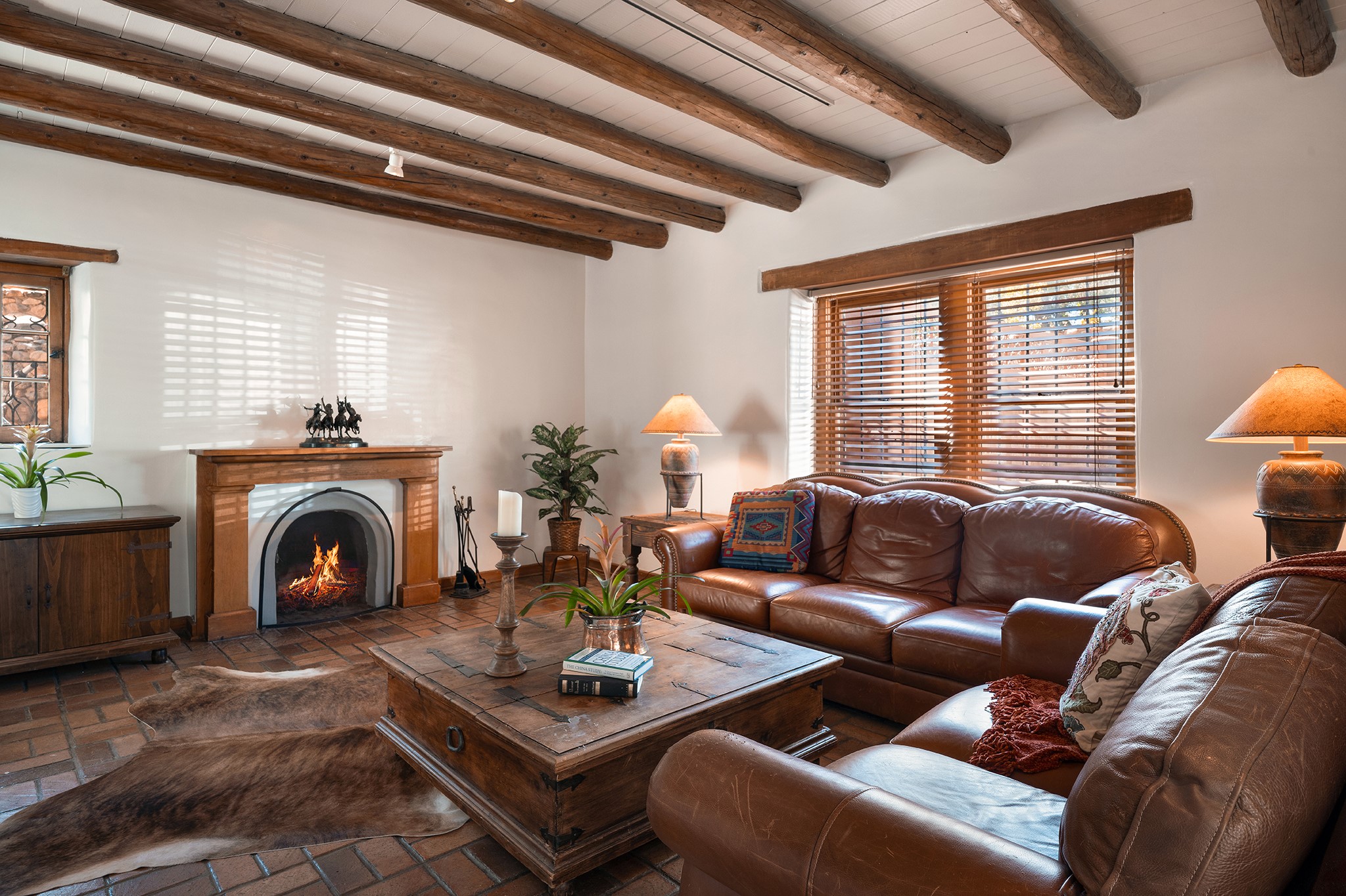 481 Arroyo Tenorio, behind an iconic stonewall in the heart of the Historic East side and the Acequia Madre runs through it! Tucked away and gated on a serene lane in the coveted Historic District is this enviable compound which blends traditional Santa Fe architecture with modern comforts. Thick plastered walls, vigas, coved ceilings, and multiple fireplaces create warmth and authenticity, while large windows and French doors invite abundant natural light. An elegantly designed pool, hot tub and extended outdoor living space and vegetable garden were added in 2022. The main house flexible floor plan offers gracious living and dining areas, a well-appointed kitchen, two private bedroom suites , additional guest bedroom , 2.5 baths office and media room. Perfect for full-time living or part time with privacy and security . The guest house features one bedroom , one bath , living area ,dining and kitchenette. Outdoor living is equally inviting, with lush, landscaped gardens, flagstone patios, and shaded portals ideal for entertaining or quiet retreat.Just moments from Canyon Road, the Plaza, and some of Santa Fe's finest restaurants and galleries, around the corner from famous local Downtown Subscription coffee shop and Garcia Street Books. This home provides the perfect balance of privacy and proximity. A rare opportunity to own a classic East side property in one of the city's most sought-after neighborhoods.