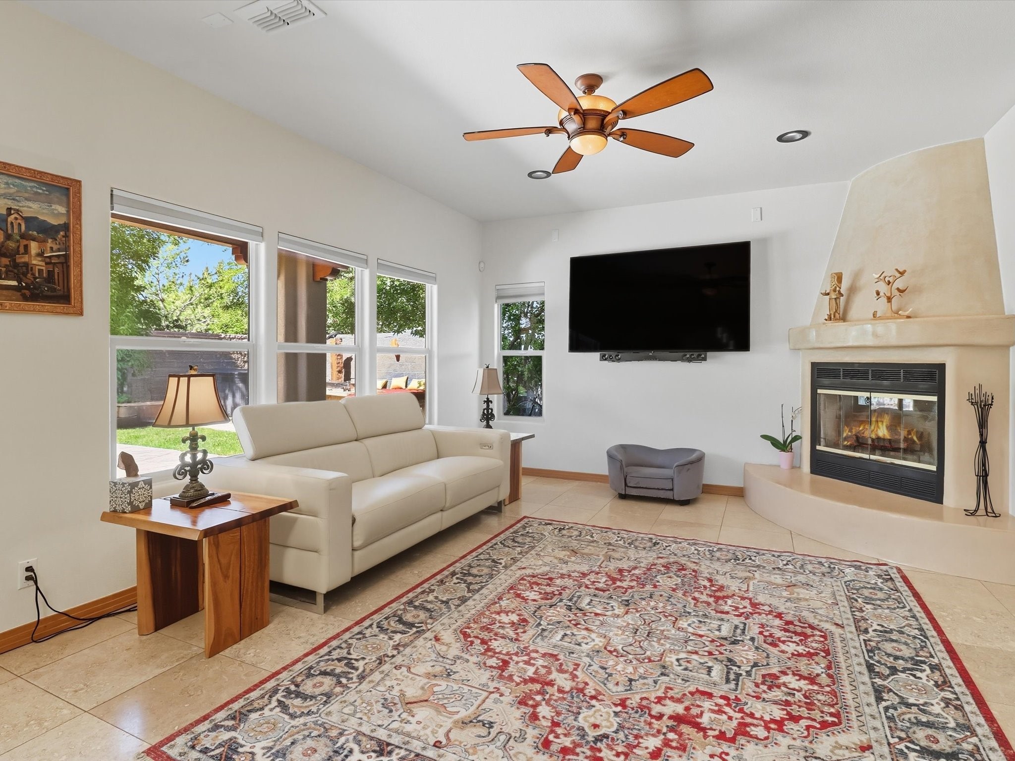 Nestled on a quiet street, this beautiful two-story home offers the perfect blend of comfort, functionality, and charm--ideal for a starting family or a growing one. Step inside to an inviting open floor plan that seamlessly connects the main living spaces. The main level features a dedicated office, perfect for remote work or study, and a warm, welcoming living area with a traditional Kiva fireplace to keep you cozy during winter nights.The kitchen is thoughtfully designed with a breakfast counter, stainless steel appliances, and plenty of space for everyday meals and gatherings. From here, step out to the beautifully landscaped backyard, complete with a covered portal, ample seating for guests, an outdoor hot tub, Gas Fire table and a charming gazebo with heating elements, outdoor speakers and ambient lighting --perfect for BBQ nights or morning tea with family and friends. Upstairs, you'll find four spacious bedrooms, including the primary suite, a private retreat with an attached bathroom featuring a his-and-her sink, an enclosed shower, and a walk-in closet. A private balcony extends from the suite, offering the perfect spot to enjoy your morning coffee while soaking in the fresh air.Blending modern convenience with inviting outdoor spaces, this home is truly designed for both relaxation and entertaining.