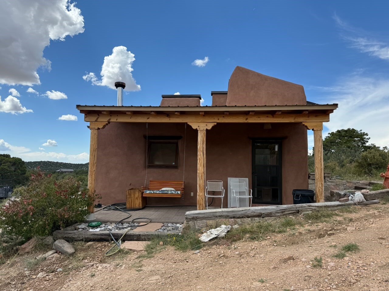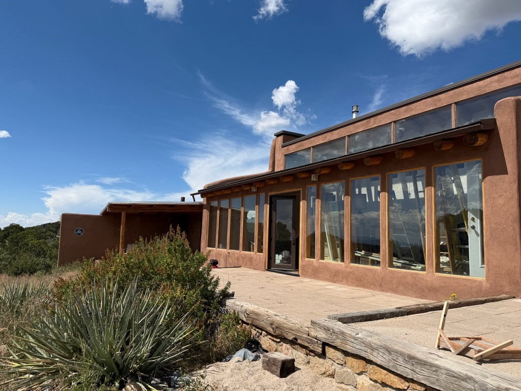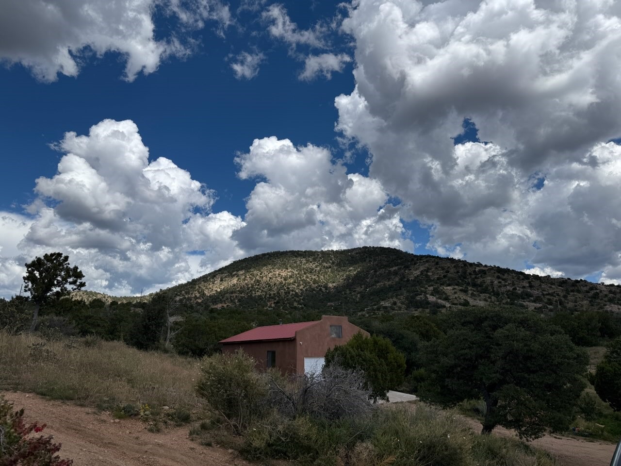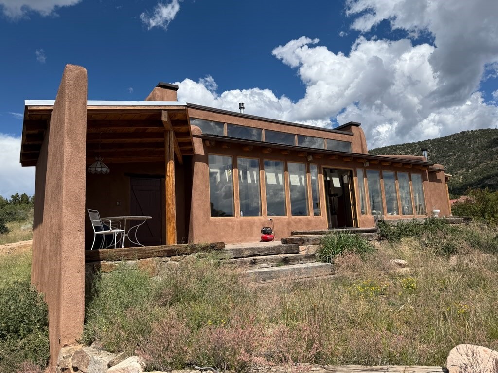 Passive Solar Adobe on large treed lot with great Galisteo Basin and Sunset views. Large free standing shop/studio garage.