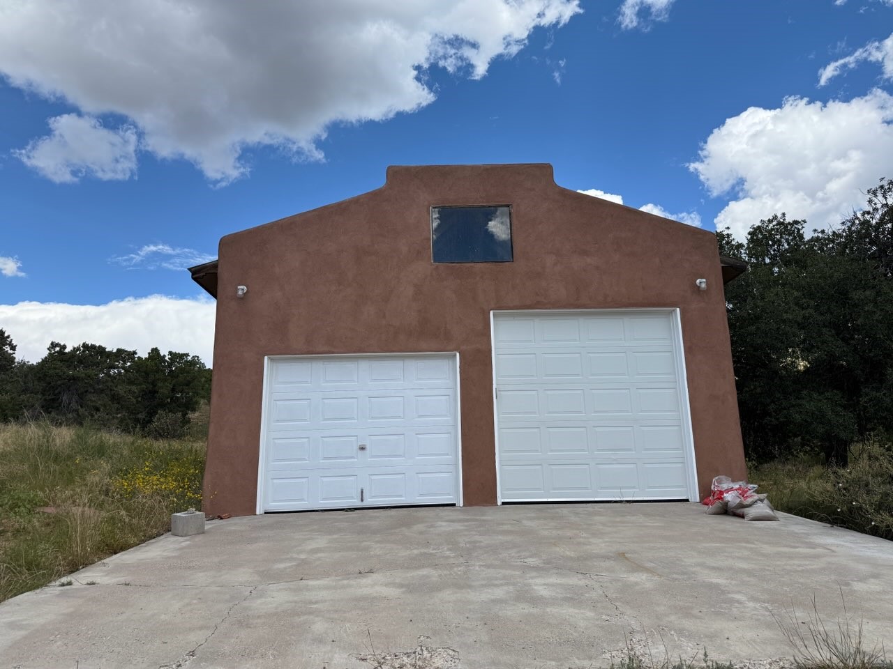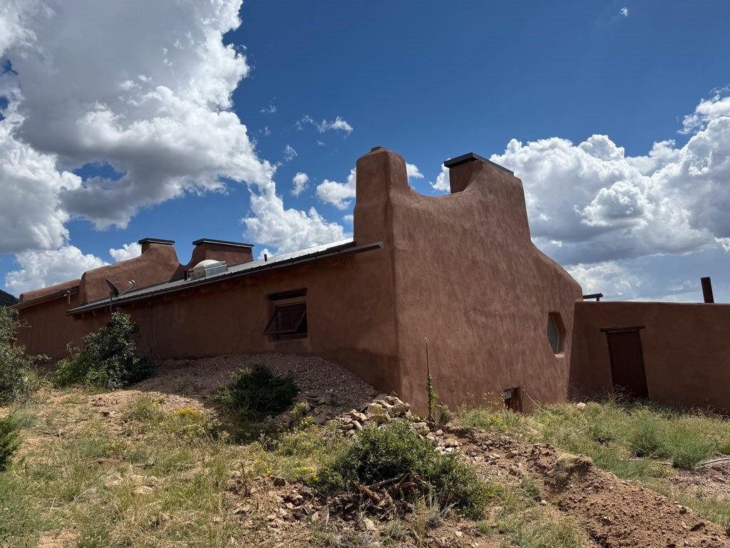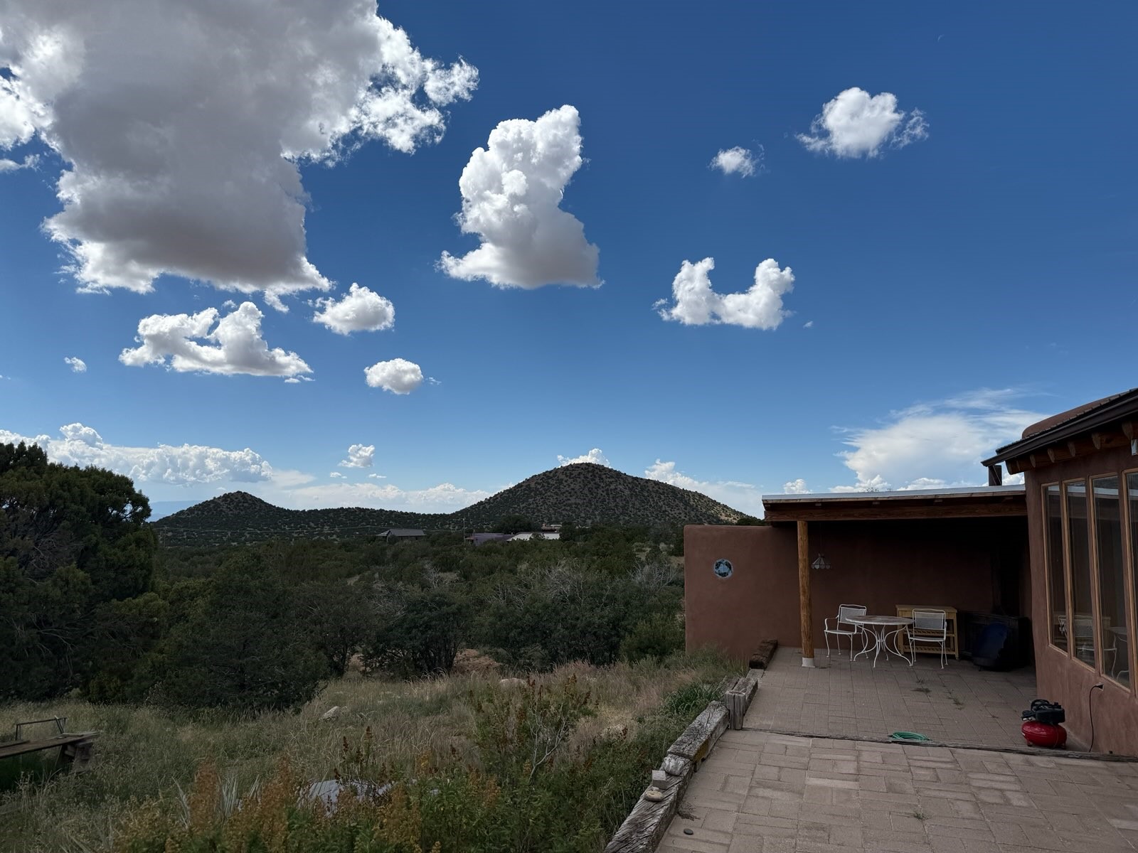 Passive Solar Adobe on large treed lot with great Galisteo Basin and Sunset views. Large free standing shop/studio garage.
