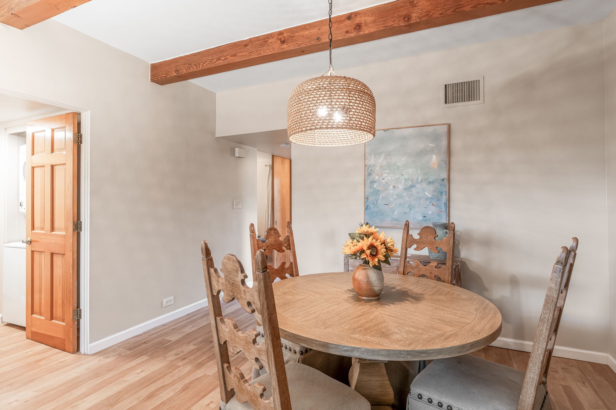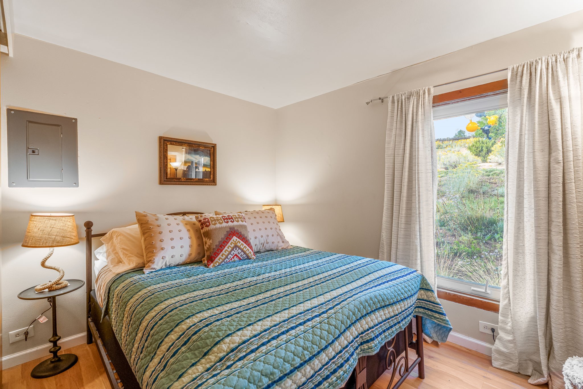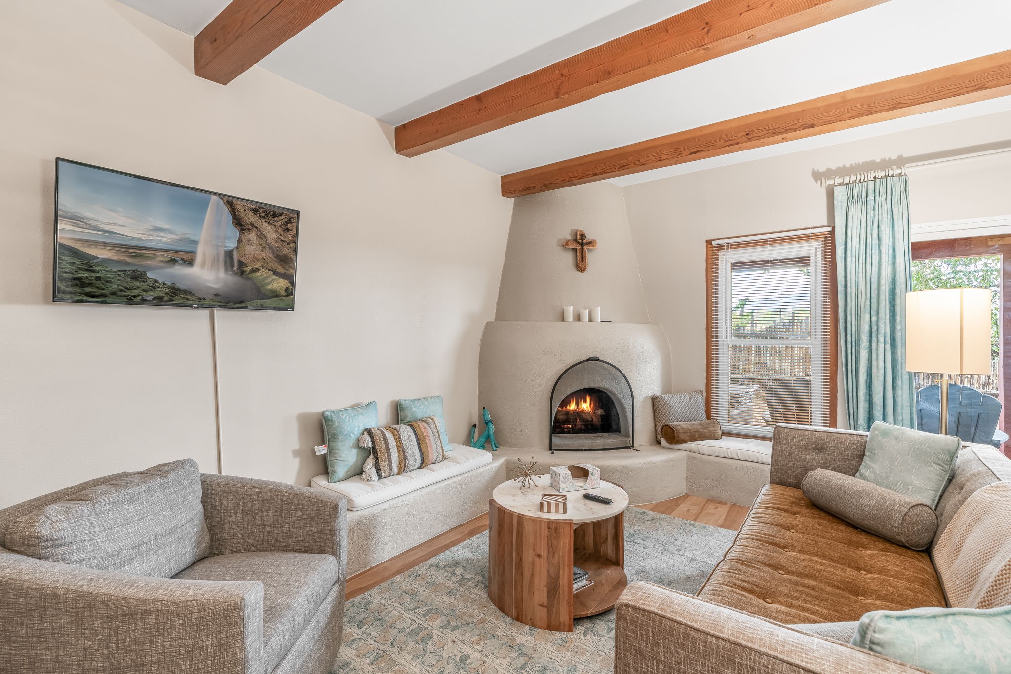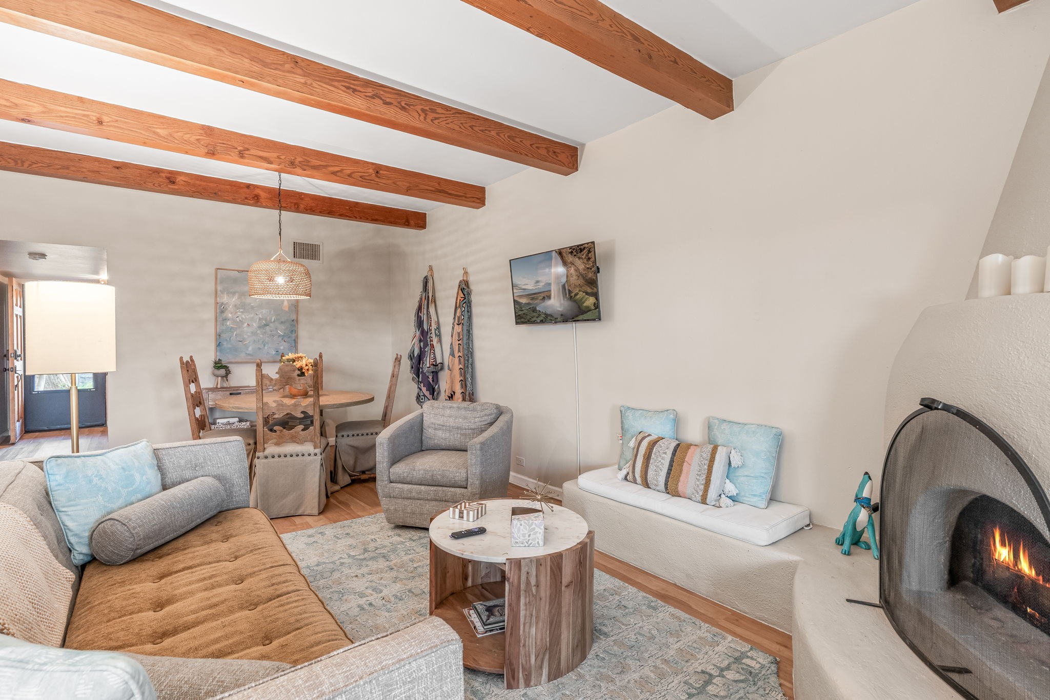 A cute and well-located Northside condo! This is a remodeled fully-furnished short term rental, with 2 beds and 2 baths. This house is recently updated, with all new HVAC, new kitchen cabinets, countertops, sink and disposal, all new flooring, new bathroom vanities, and more in 2024. Appreciate a magnificent view of the Sangre de Cristo Mountains from a private back patio, and enjoy community amenities including a barbecue grill. A very convenient 2-minute drive to the plaza. This is an easy lock and leave condo or full time residence!