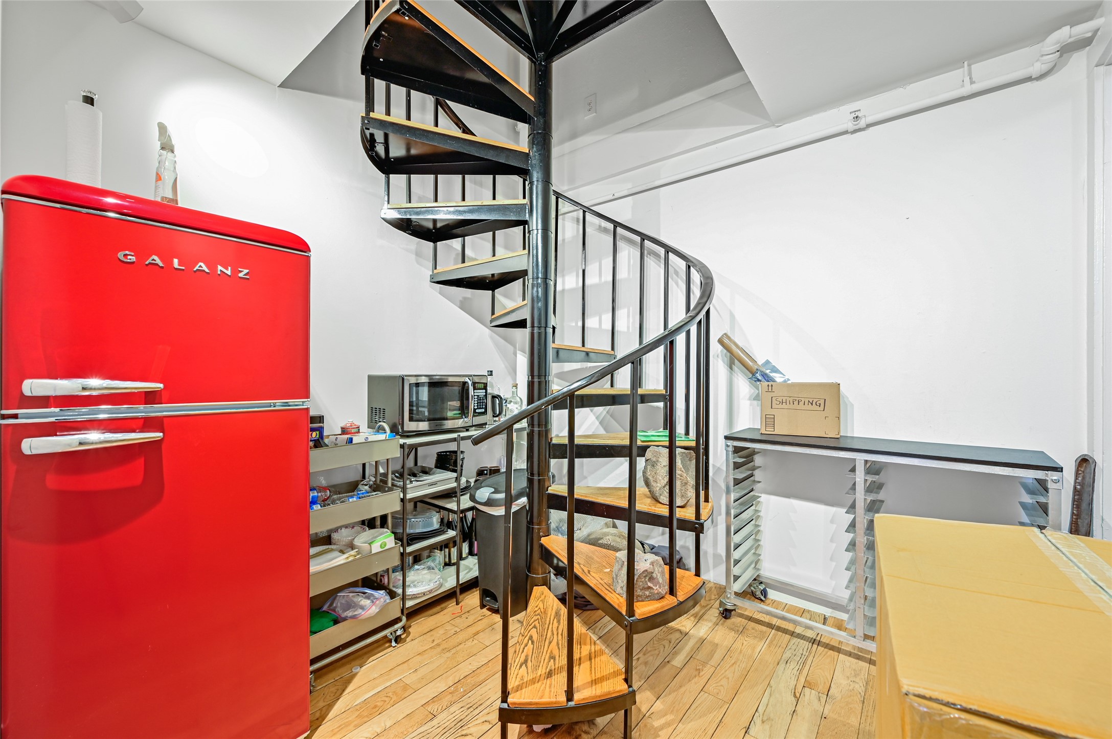 Rare opportunity! A beautifully designed gallery/retail space perfectly positioned just off the Santa Fe Plaza, directly along the path of high visitor traffic. Featuring high ceilings and newly finished hardwood floors with track lighting throughout, private upstairs office, restroom with large work sink, this space offers both sophistication and functionality. The expansive finished basement provides ample storage and includes a private employee restroom. Convenient loading zones are available at both the front and rear of the property. With excellent visibility, generous storage for inventory and supplies, and a light-filled showroom. Don't miss the opportunity to establish your gallery or retail presence in one of Santa Fe's most desirable and highly trafficked locations.