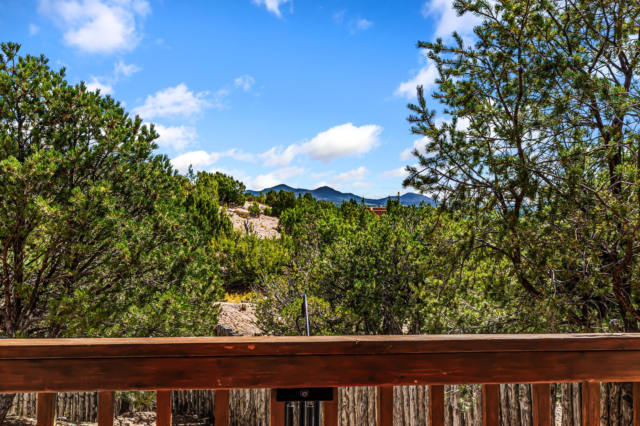 Very rarely, there is a property that combines incredible views from almost every room, ultimate Santa Fe style, modern amenities and an unbeatable location! 5 minutes from downtown, this 3 bed 3 bath custom build is the complete package!Enter the hand carved front doors and be greeted by dramatic views straight away. From here, step into the grand salon with soaring ceilings, a kiva fireplace and stately hand-troweled plaster. The dining room features a drop ceiling and recessed lighting for the most intimate ambience. You'll be serving your happy guests in style from the updated chef's kitchen -featuring Silestone quartz countertops, stainless appliances, a playful handpainted tile backsplash, and a sleek modern design. Almost every room in the home has house outdoor access for that seamless indoor-outdoor living. The views from the portal will be sure to impress: city lights at night and Sangre De Cristo-facing sunsets for that gorgeous Santa Fe color palette. The generous primary suite has its own kiva fireplace, outdoor portal, and a sumptuous bath - with oversized pebble shower, dedicated water closet, deep-soaking tub and dual sinks. The two guest rooms share a large full bath. Recent upgrades (2022) include a new foam and gravel roof with a 10-year warranty, plaster walls in the main living areas, latilla ceilings and 40 new recessed lights in dining and guest rooms, a new alarm system, and an outdoor kiva fireplace flanked by bancos. The oversized 2-car garage has direct entry into the kitchen and dedicated laundry area for easy access. With plenty of storage, this home is perfect for a primary residence, or make it your Santa Fe getaway! Don't miss this opportunity to own all the best Santa Fe has to offer! Schedule a showing today!