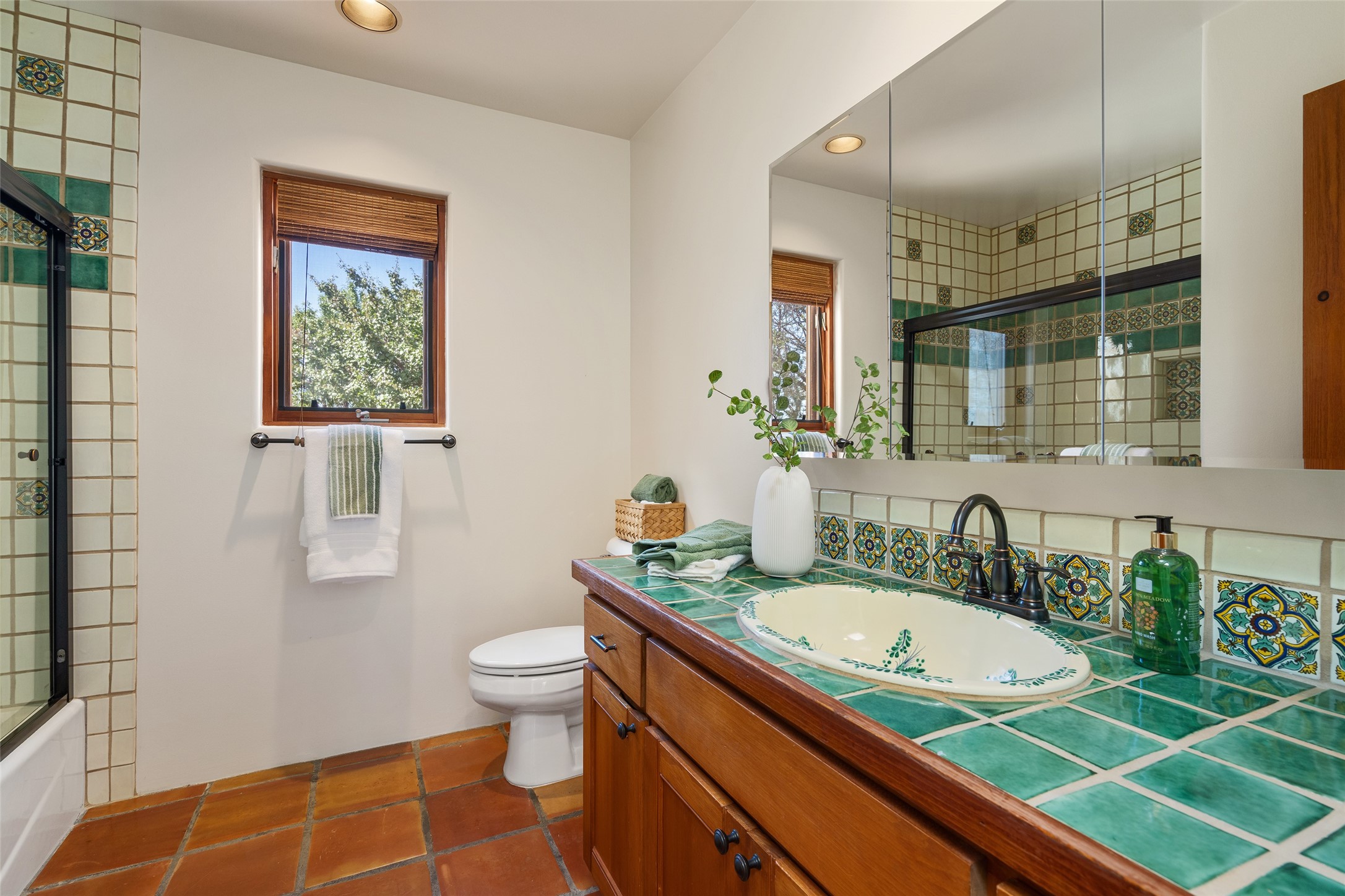 Located in the highly desirable Eldorado community just minutes from Santa Fe, 3-bedroom, 3-bath home perfectly blends classic Santa Fe style with thoughtful modern updates. From its warm Saltillo tile floors to its cork-floored bedrooms--ideal for comfort and allergy sensitivity--every detail invites relaxed, functional living.A standout feature of the home is the nearly 1,100 square feet of versatile flex space with its own private entrance--ideal for a studio, home office, guest suite, or creative retreat.The updated kitchen will impress, featuring a high-end Bluestar gas range, Kenmore Elite refrigerator, and stainless dishwasher. The guest and flex-space bathrooms have also been tastefully renovated, offering both style and comfort. A whole-house water filtration system adds an extra layer of wellness and convenience.Outdoors, mature landscaping frames a private front courtyard and a fully walled backyard oasis, where newly built decks and a relaxing hot tub create the perfect setting for entertaining or unwinding under the stars.For those who value space and storage, the property includes a rare, RV garage--approximately 25' x 40'--in addition to 3 additional car bays, offering ample room for vehicles, projects, or recreational gear.Living in Eldorado means access to miles of scenic walking paths, a welcoming community center, pool, tennis courts, and more--all within a vibrant neighborhood that embodies the best of Santa Fe living.This home is more than just a place to live--it's an inviting canvas for your lifestyle.