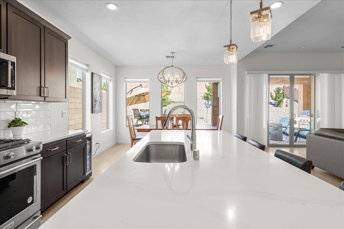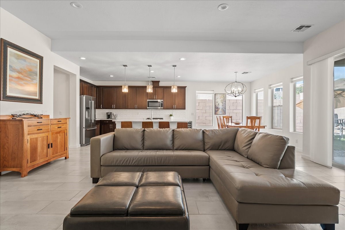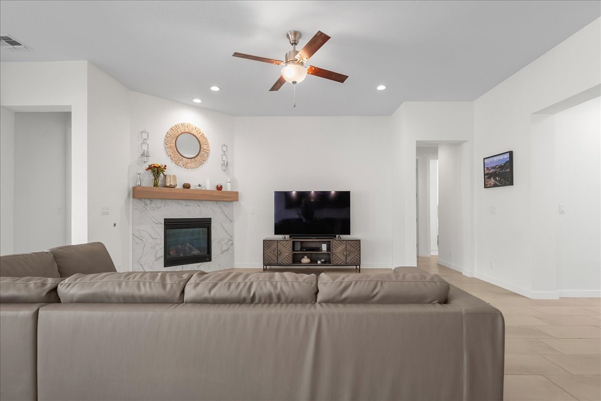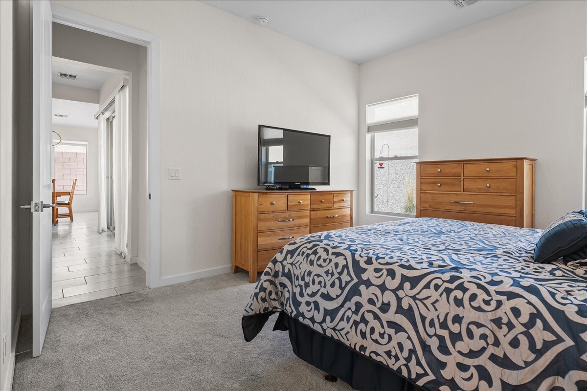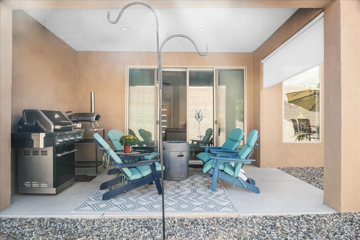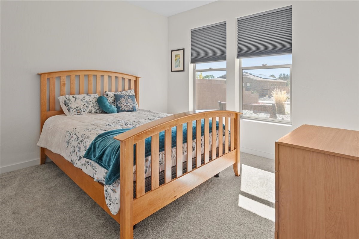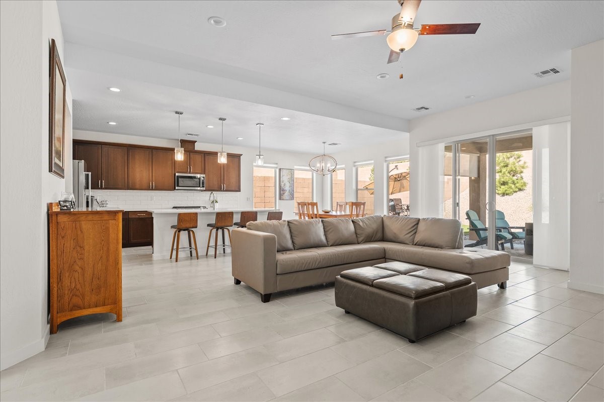 Welcome to this bright and beautiful home, just minutes from LANL. Built in 2021 and move-in ready, it features $35,000 in thoughtful builder upgrades, modern finishes, and a functional layout perfect for today's lifestyle. The open-concept design is filled with natural light and includes a stylish kitchen with granite countertops, stainless steel appliances, 42-inch cabinetry, decorative backsplash, pantry, and a large island. The dining and living areas flow seamlessly together, anchored by a cozy gas fireplace. The primary suite offers a spacious retreat with dual vanities, a walk-in shower, a tub, and a large walk-in closet. Additional bedrooms and a dedicated office with French doors provide flexibility for guests, work, or hobbies. Enjoy outdoor living in the fenced backyard, complete with a covered patio, and low-maintenance landscaping with automatic sprinkler system. Garage storage system conveys with property. With a transferable builder warranty and a location close to schools, parks, shopping, and dining, this home is ready for you to move right in. Schedule your showing today!