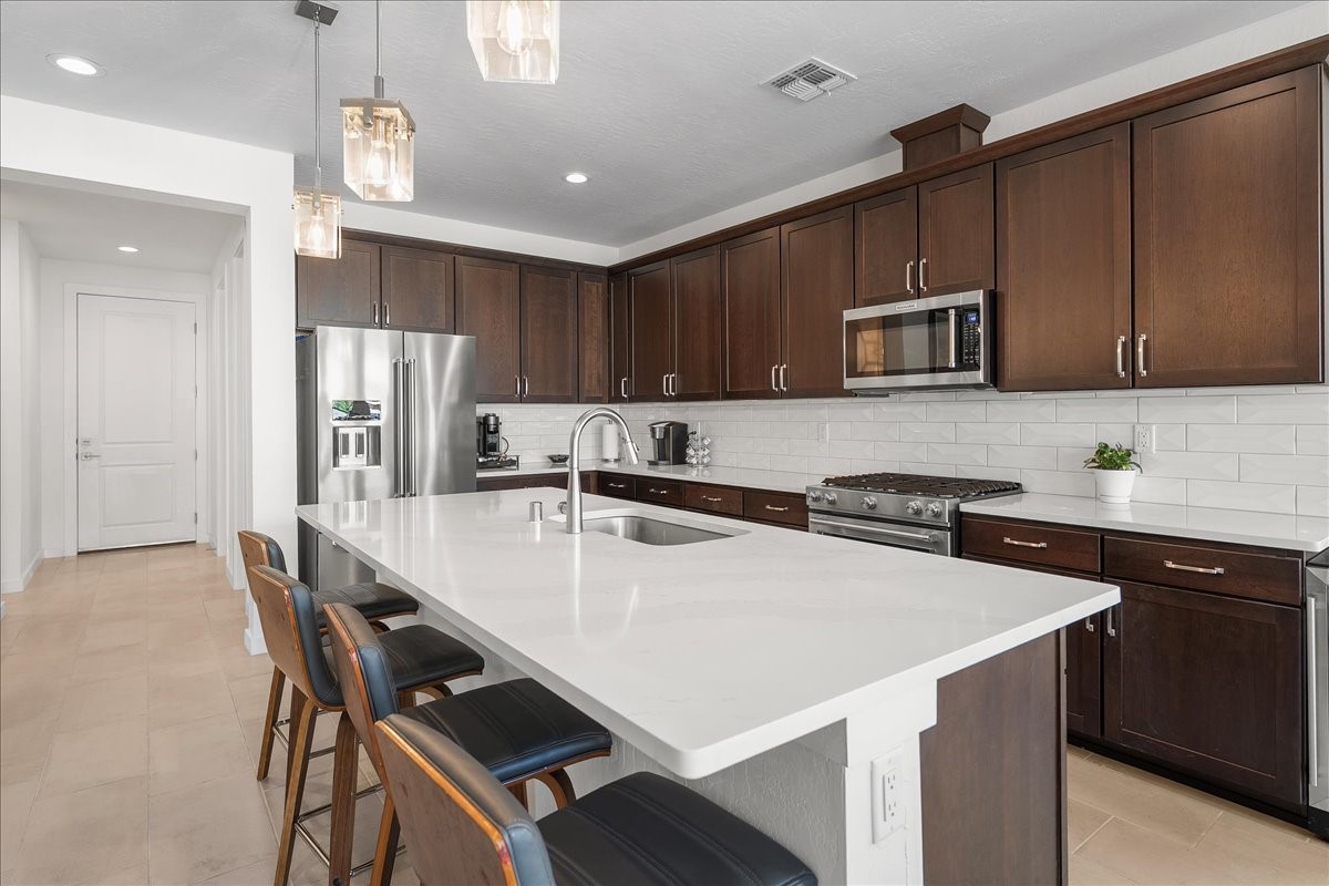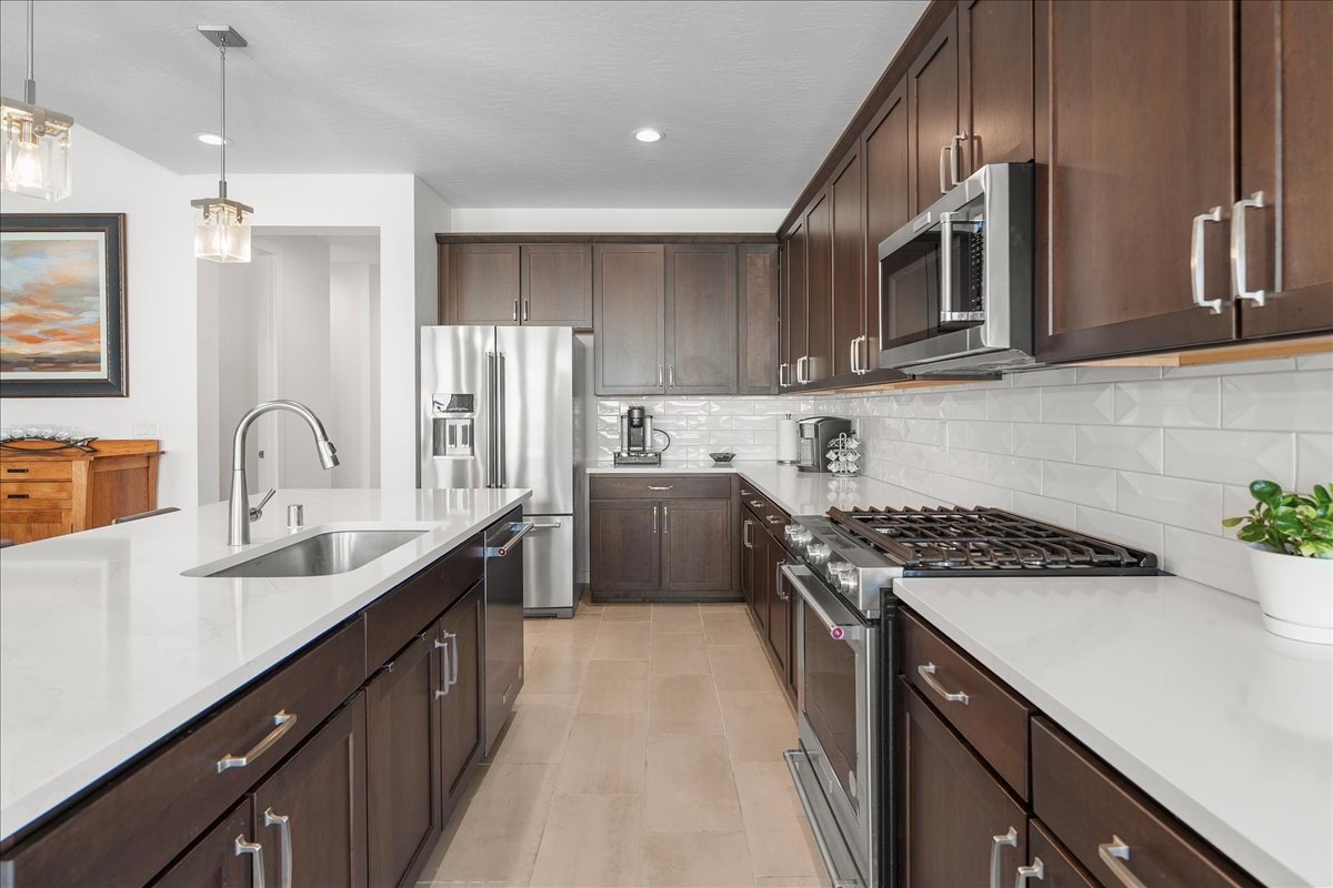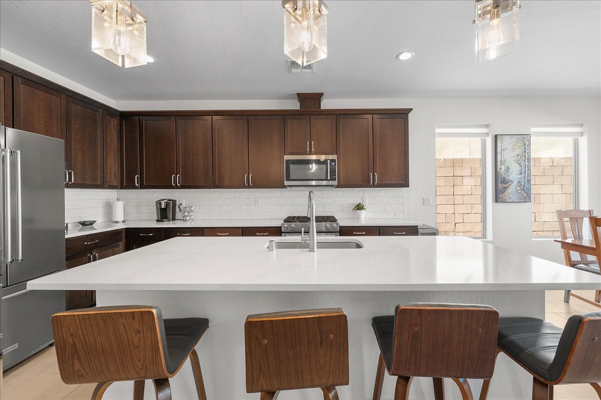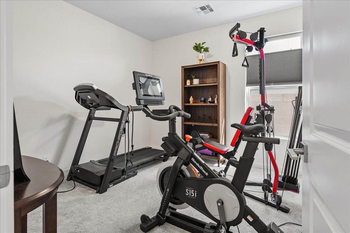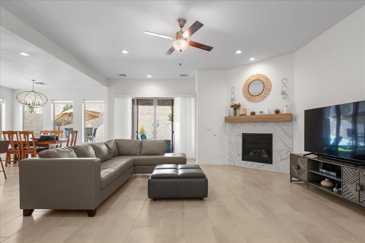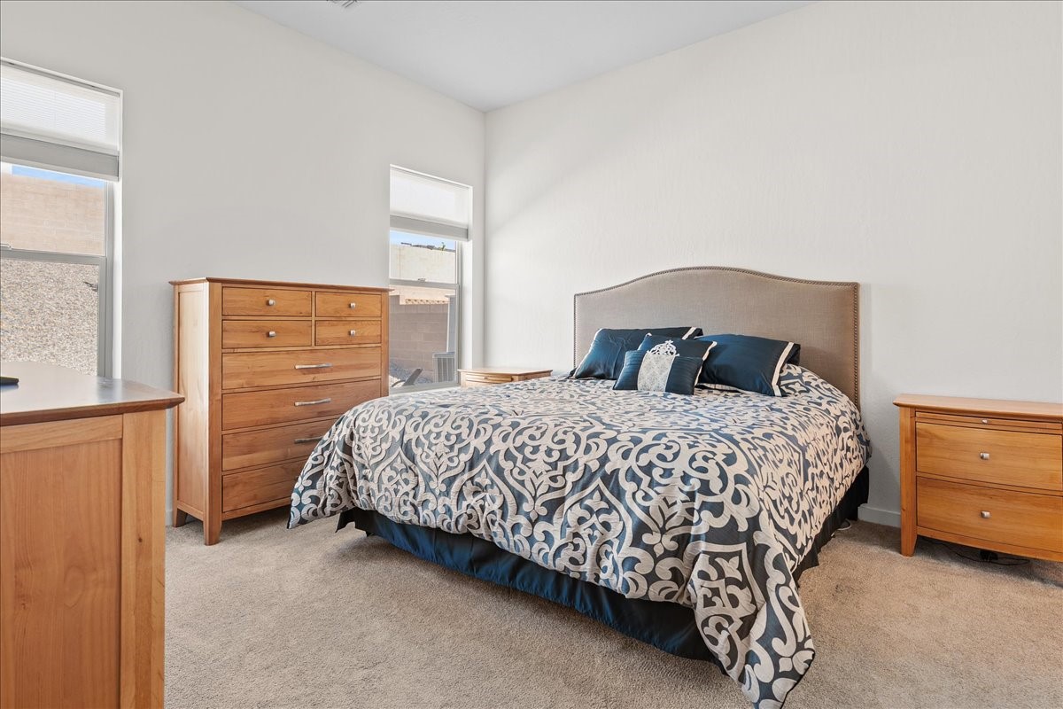 Welcome to this bright and beautiful home, just minutes from LANL. Built in 2021 and move-in ready, it features $35,000 in thoughtful builder upgrades, modern finishes, and a functional layout perfect for today's lifestyle. The open-concept design is filled with natural light and includes a stylish kitchen with granite countertops, stainless steel appliances, 42-inch cabinetry, decorative backsplash, pantry, and a large island. The dining and living areas flow seamlessly together, anchored by a cozy gas fireplace. The primary suite offers a spacious retreat with dual vanities, a walk-in shower, a tub, and a large walk-in closet. Additional bedrooms and a dedicated office with French doors provide flexibility for guests, work, or hobbies. Enjoy outdoor living in the fenced backyard, complete with a covered patio, and low-maintenance landscaping with automatic sprinkler system. Garage storage system conveys with property. With a transferable builder warranty and a location close to schools, parks, shopping, and dining, this home is ready for you to move right in. Schedule your showing today!
