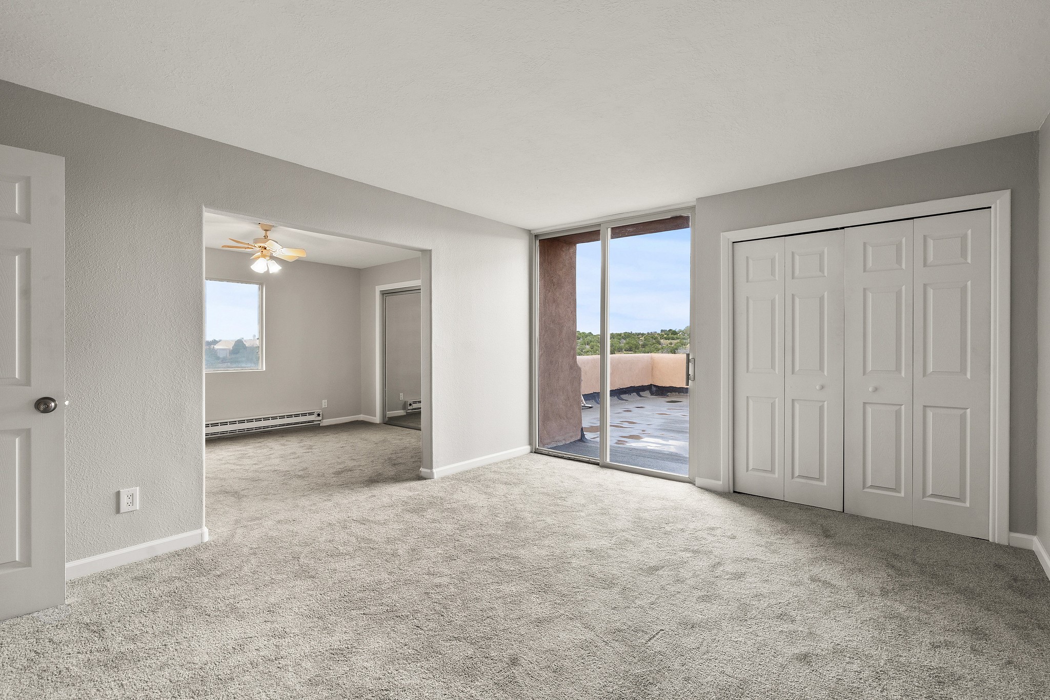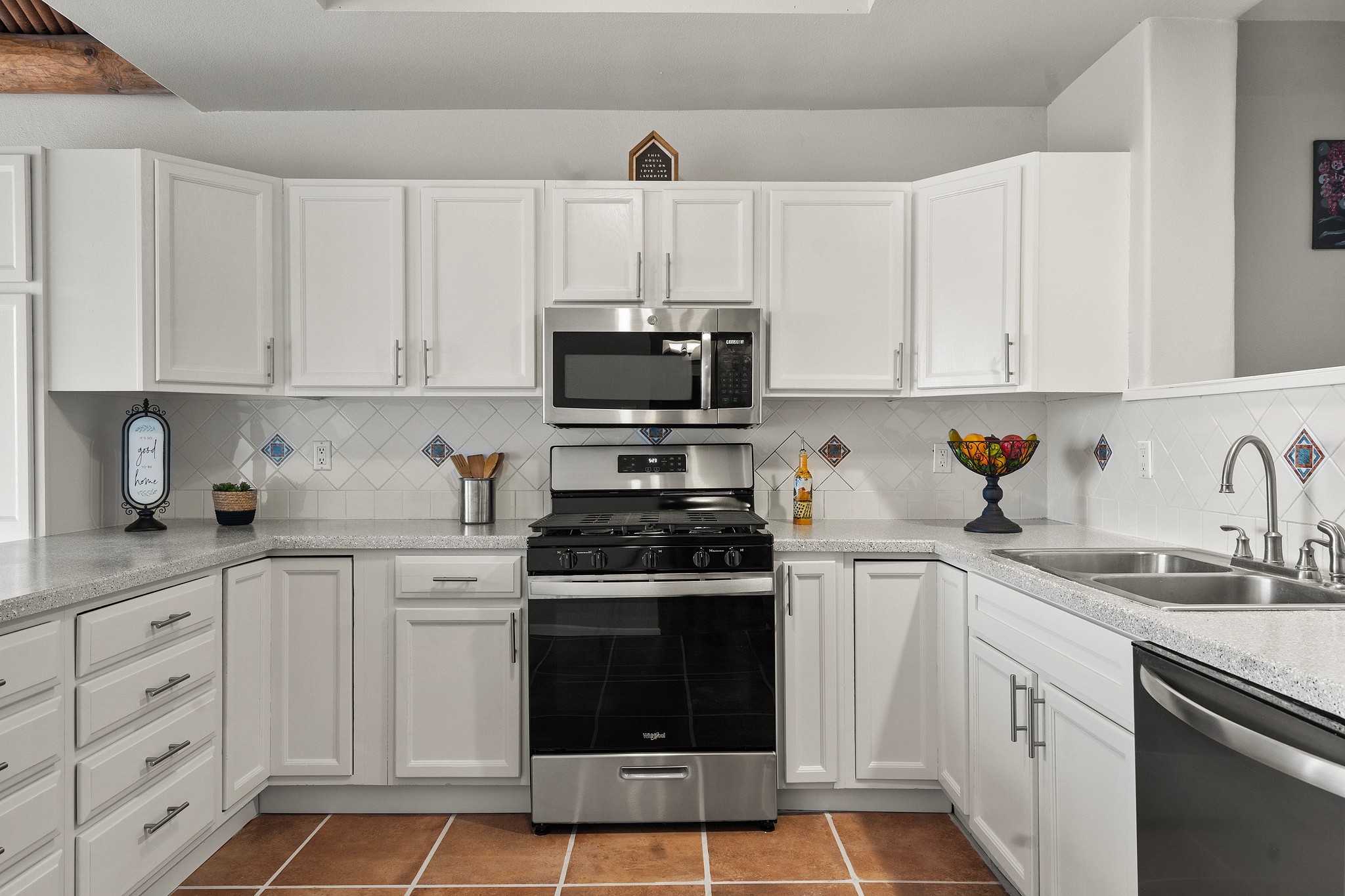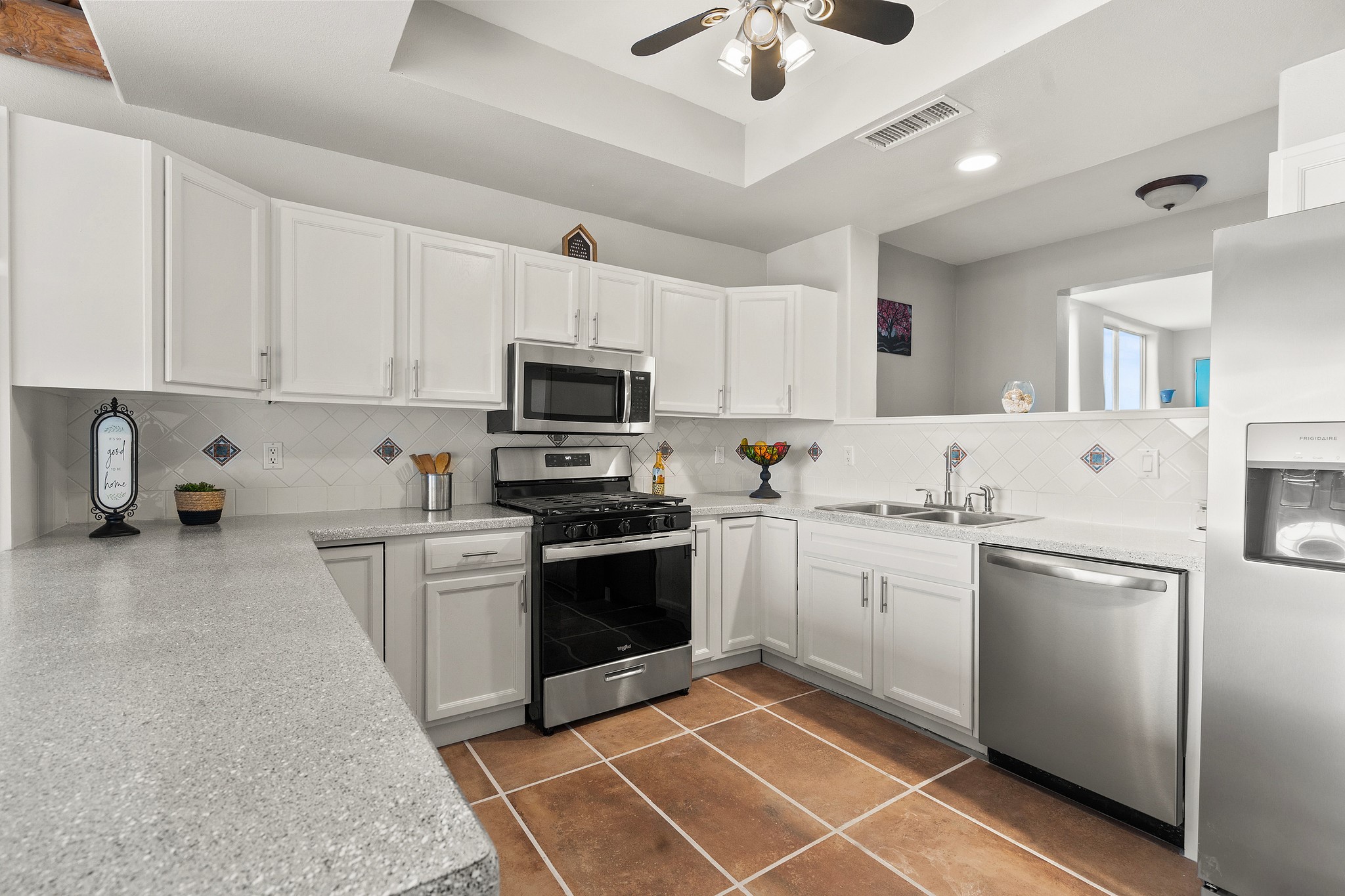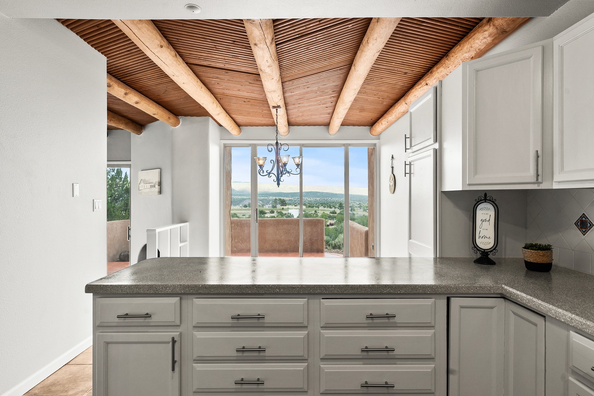 Extensively updated multi level townhome that is move in ready and on an end lot! Exterior features a new roof, new stucco, and a new swamp cooler. Inside: fresh paint, new carpet, new tile in kitchen & primary bath, updated kitchen, and new appliances. The garage features a new insulated door, epoxy floor, and fresh paint. Bathrooms have new toilets, shower fixtures, and upgraded shower door. Bright, open spaces with great natural lighting, show casing vigas, and a cozy Kiva fireplace. The spacious primary bedroom offers a walkout balcony with stunning views. Minutes from Cochiti golf course and Cochiti lake, with breathtaking skies and scenic views all around! Don't miss out on this spectacular home! Washer/dryer and pool table included. Ask for amenities list for all details.