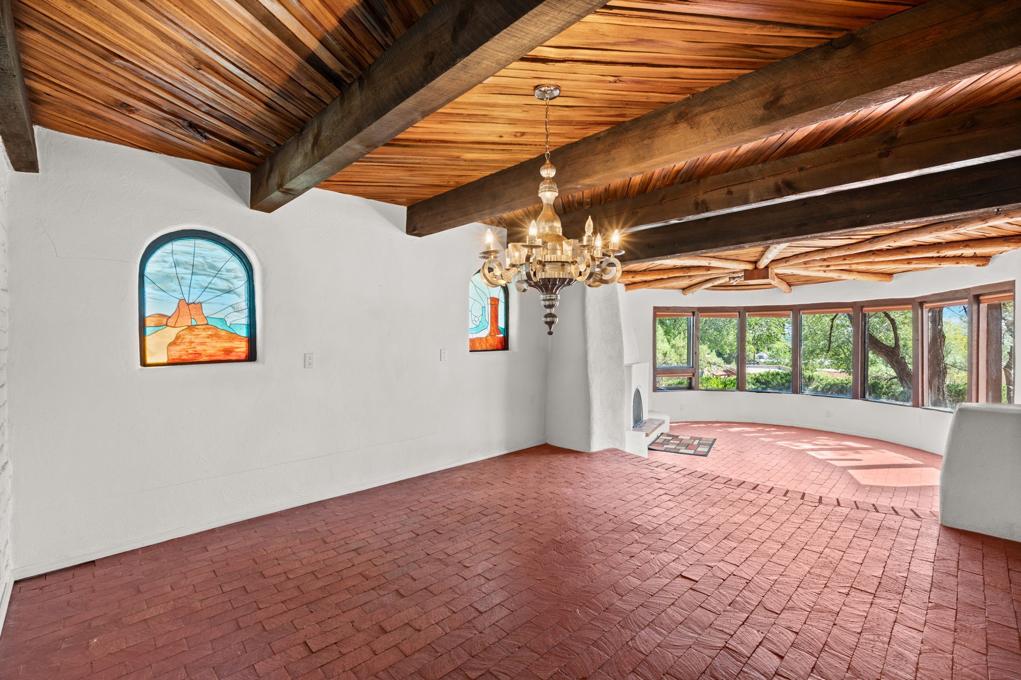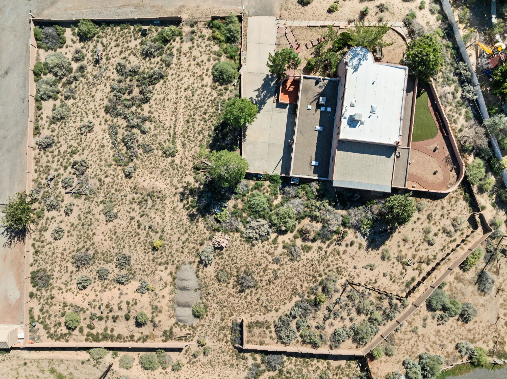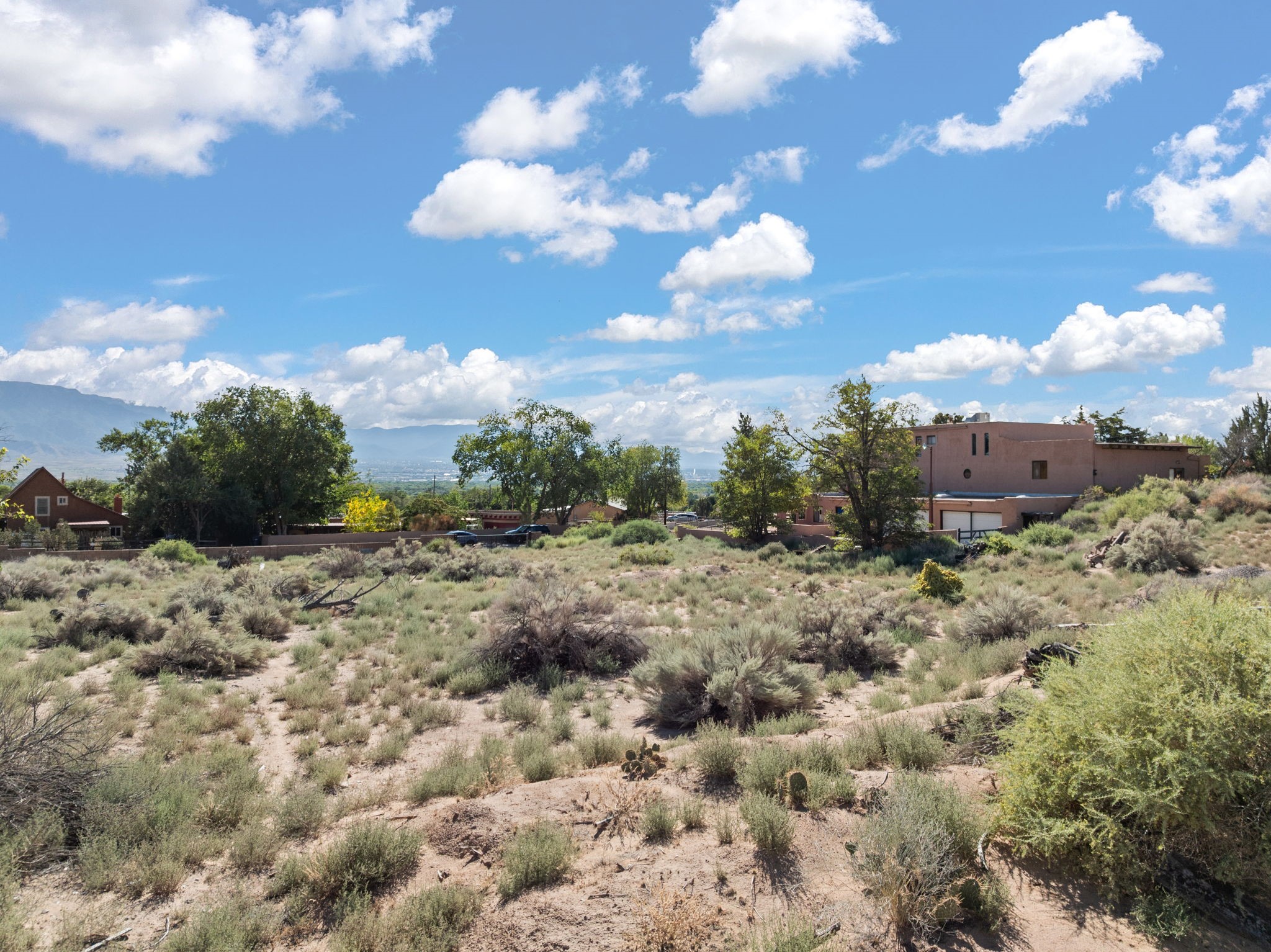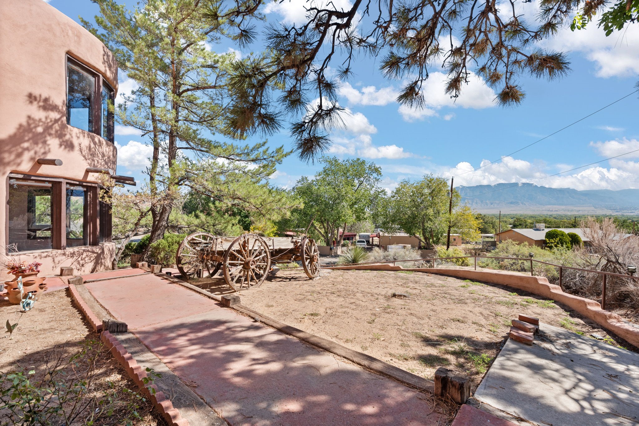 What an opportunity to purchase an adobe on two lots, 1.38 acres with guest house & unlimited views. Indoor pool, stained glass, 3 levels, 4 car garage. Brick floors, latillas, beams, vigas, kiva fireplaces, & unlimited potential. 5 BR's, 4, Baths, studio, in a sought out area that is convienant for shopping and commuting. Main home 3746. sf. includes the guest house of 561 sf. Indoor pool room of 1280 sf is not included in sf. A four car garage plus storage. A dumb waiter or utility lift functions from the garage to the third level for owners convienence. A must to see and call home!