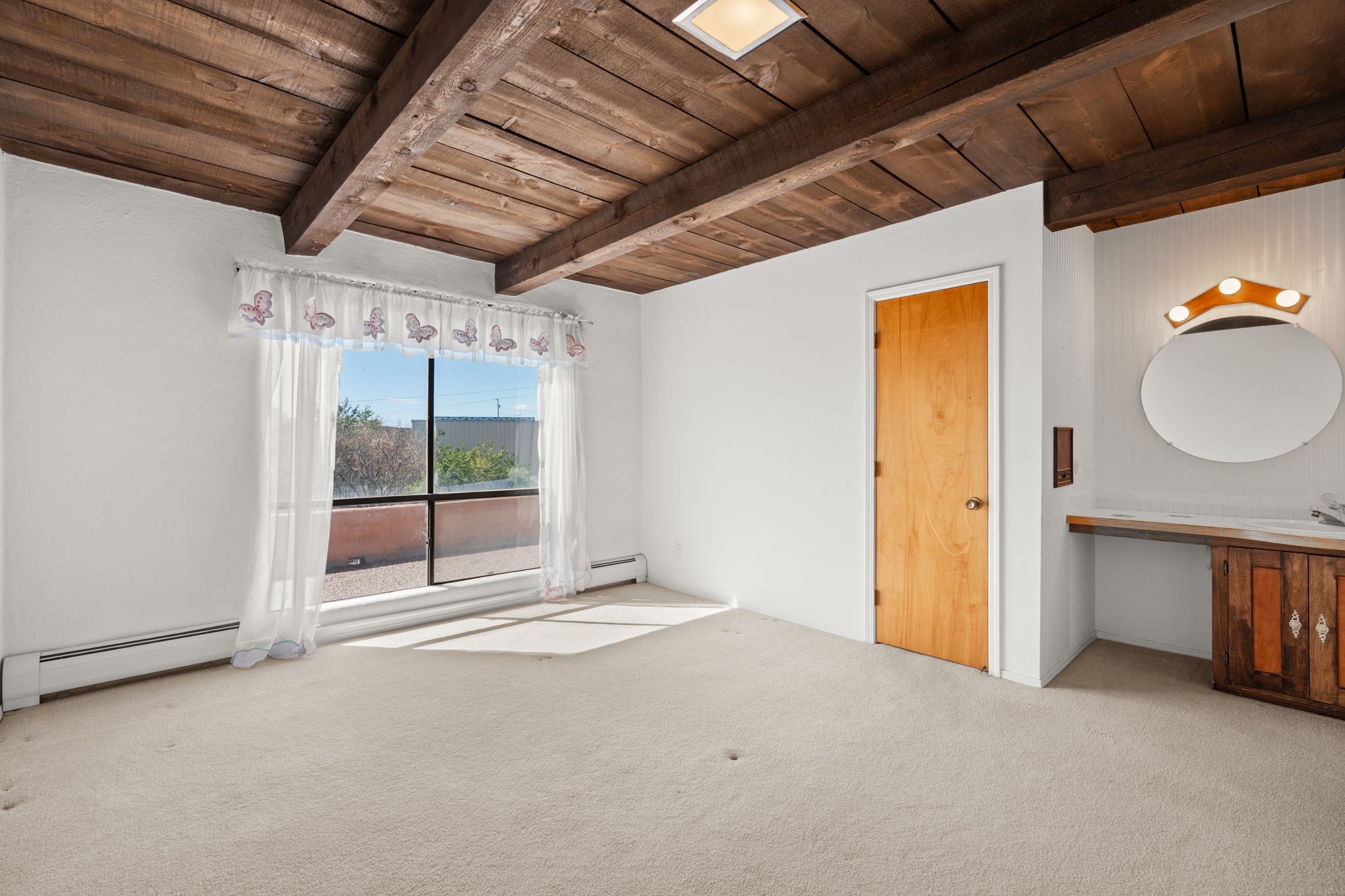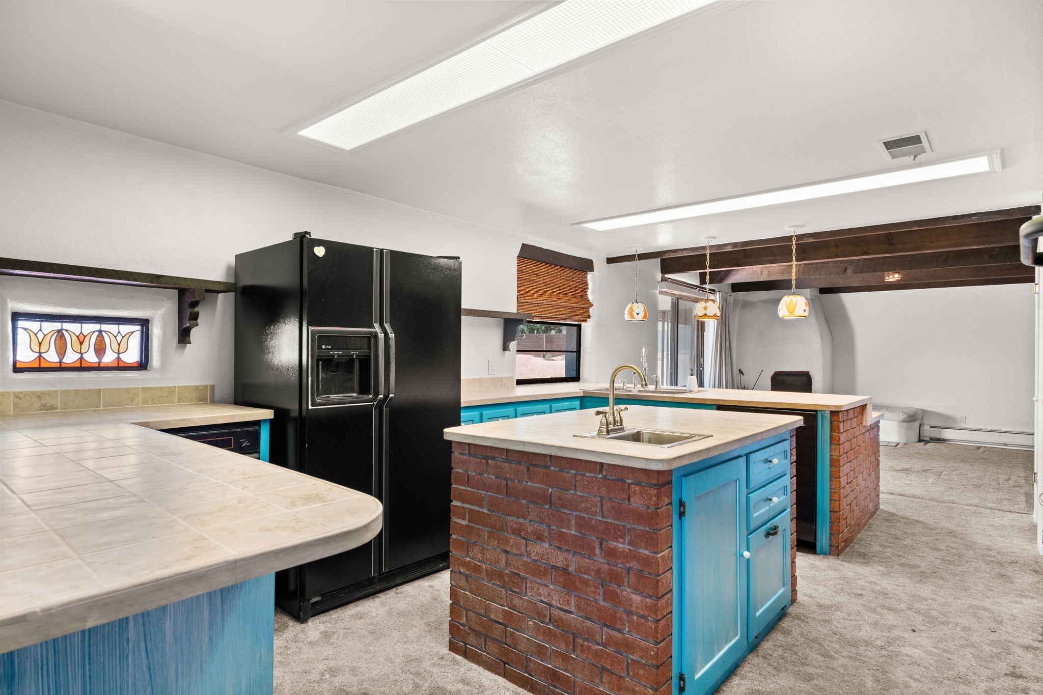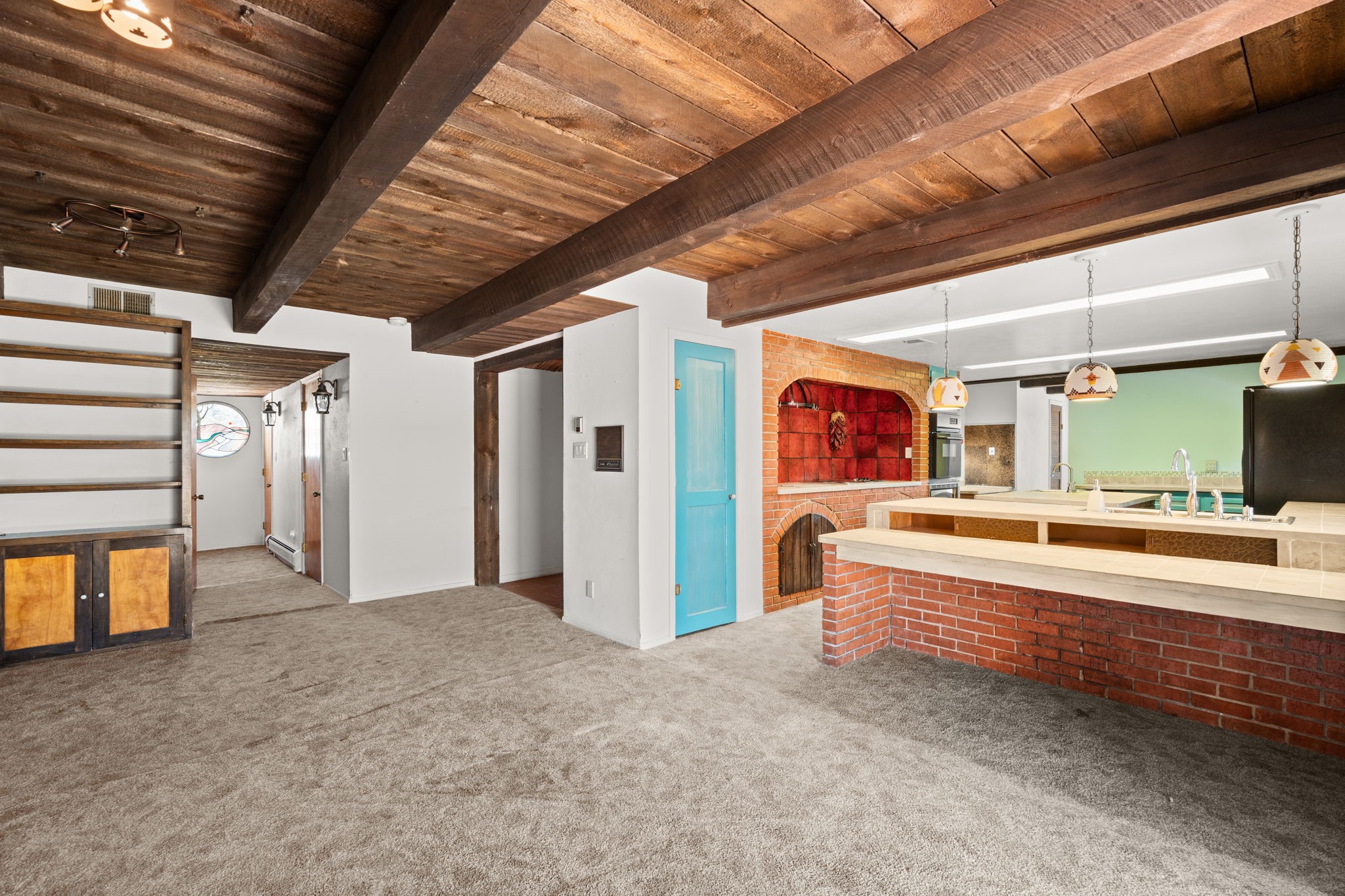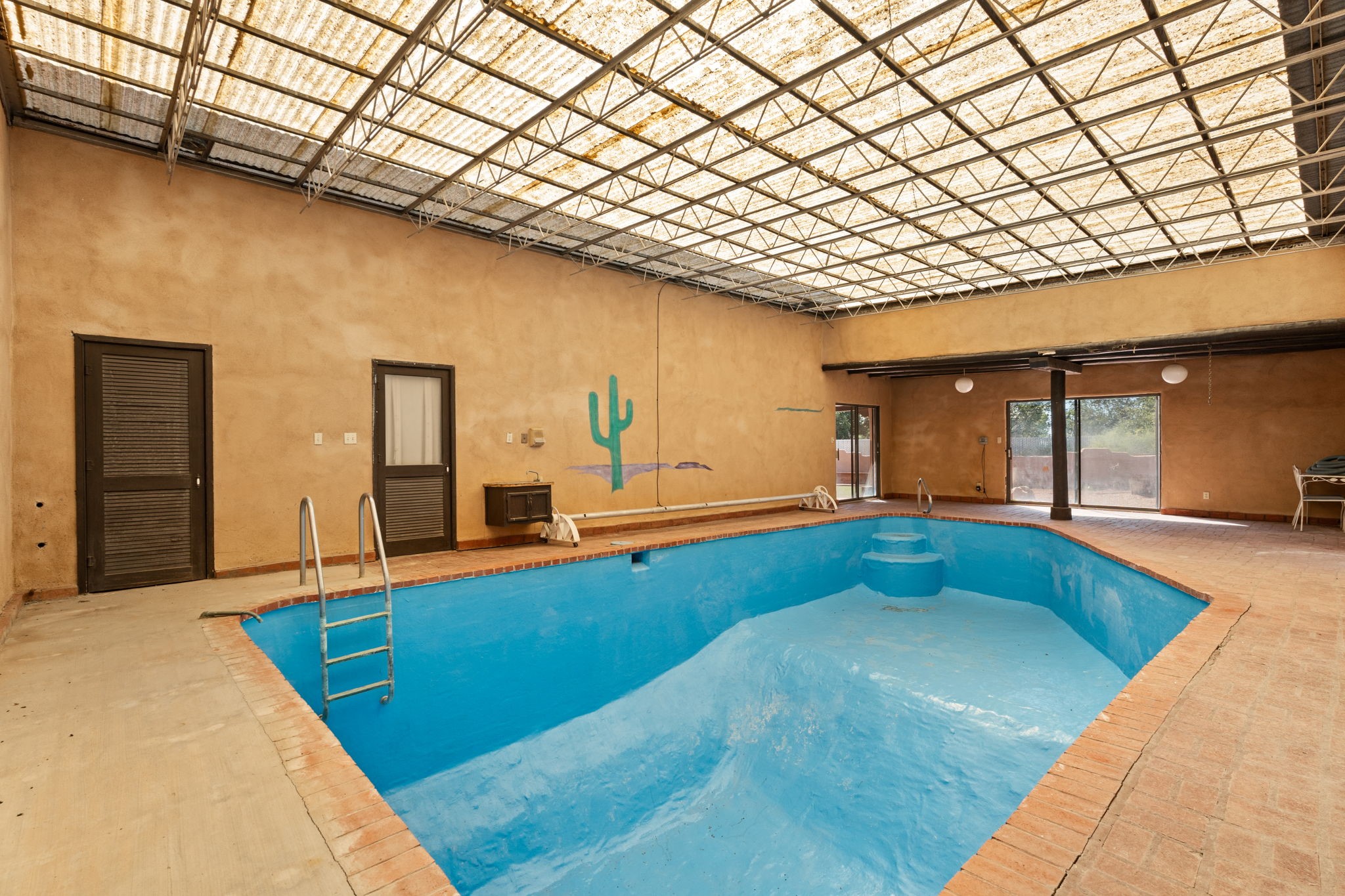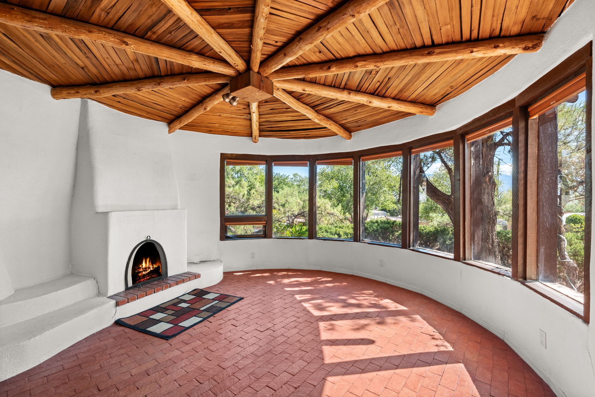 What an opportunity to purchase an adobe on two lots, 1.38 acres with guest house & unlimited views. Indoor pool, stained glass, 3 levels, 4 car garage. Brick floors, latillas, beams, vigas, kiva fireplaces, & unlimited potential. 5 BR's, 4, Baths, studio, in a sought out area that is convienant for shopping and commuting. Main home 3746. sf. includes the guest house of 561 sf. Indoor pool room of 1280 sf is not included in sf. A four car garage plus storage. A dumb waiter or utility lift functions from the garage to the third level for owners convienence. A must to see and call home!