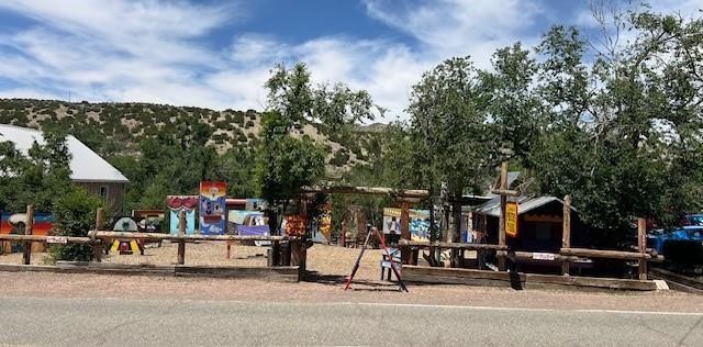 Rare opportunity to own the only two adjoining undeveloped commercial lots in Madrid's business district along the historic Turquoise Trail. Located at 2881 & 2883 B State Hwy. 14, these properties offer 140 feet of highway frontage with excellent visibility and high daily traffic. Each lot is approximately 8,000 sq. ft., with utilities (water and power) at the property lines and the potential to build up to 2,400 sq. ft. per lot (to be verified with SF County if of material concern). There's ample space for required off-street parking. Included with 2881 is a 200 sq. ft. studio built with 12" pumice and concrete walls, vigas, French doors, thick wood jambs, and a 200 sq. ft. concrete patio. Both parcels are currently rented month-to-month to Connie's Photo Park and Old West Photography, with rental agreements set to terminate at closing. Personal property, including the Gypsy Wagon, stagecoach, camper, costumes, and photo props, are not included in the sale. A standout investment in one of New Mexico's most popular artistic and tourist destinations. The Live work and commercial designations make these lots highly usable. It's rare to find two lots together in the townsite of Madrid. This opens up the possibilities due to current building and us regulations, single lots are hard to develop. Sold as one.