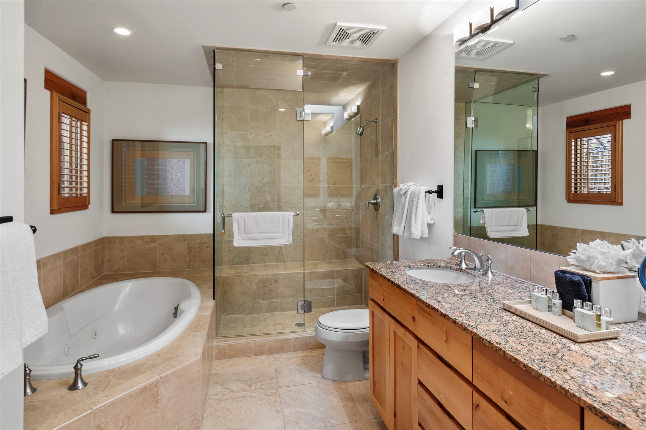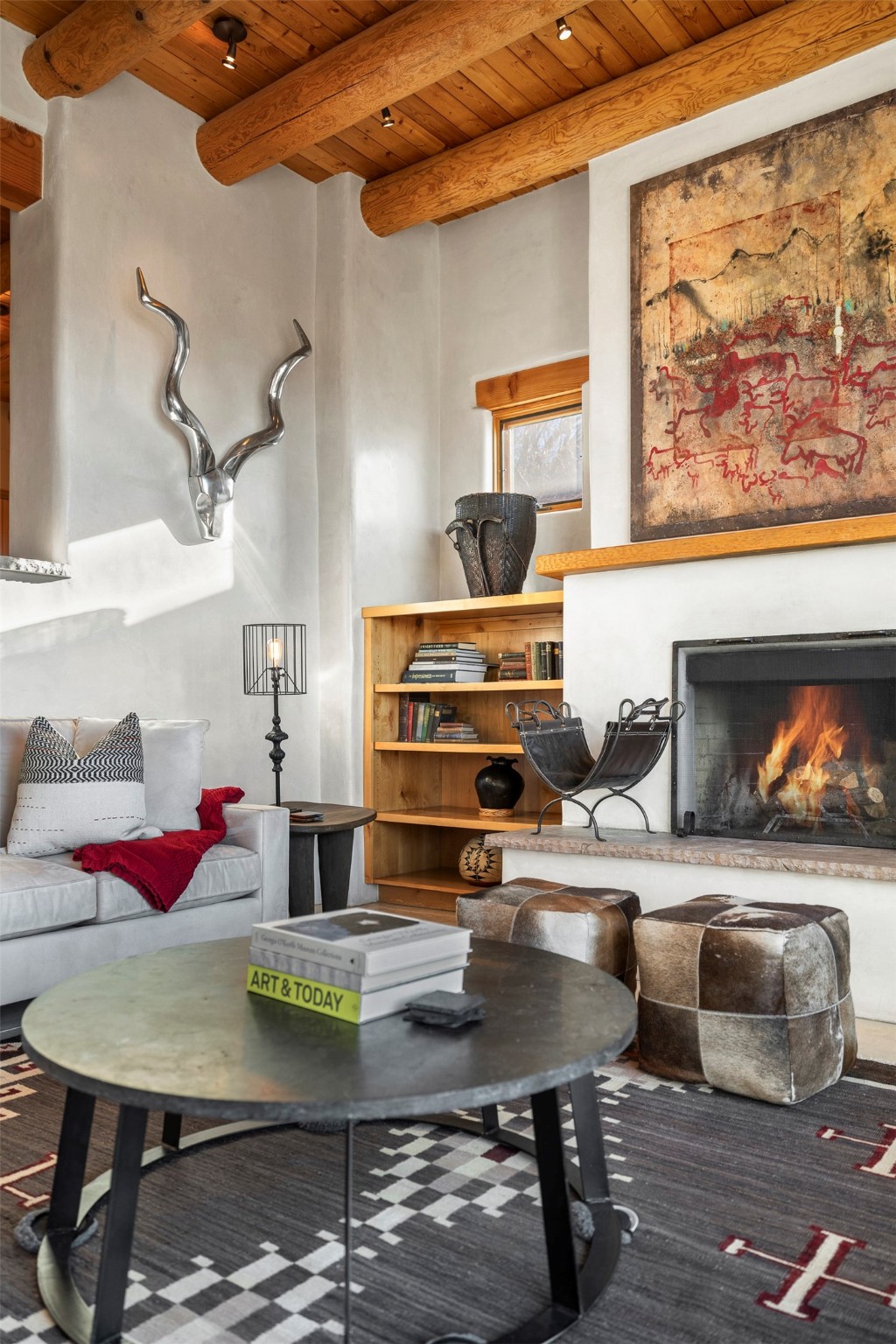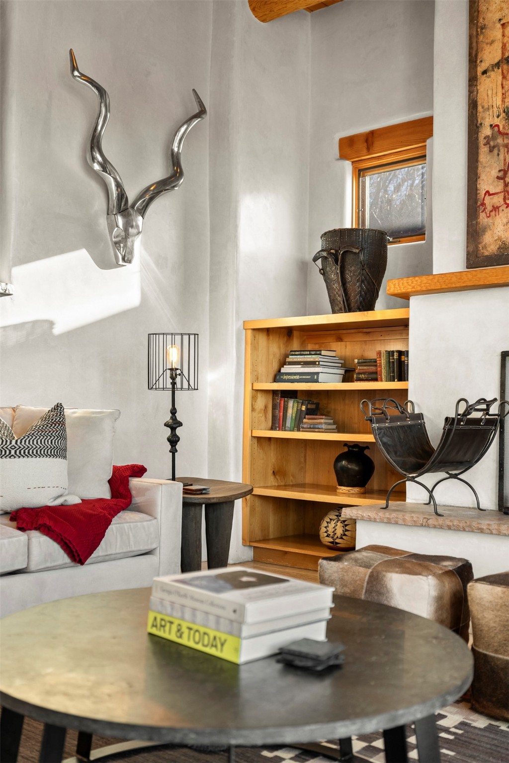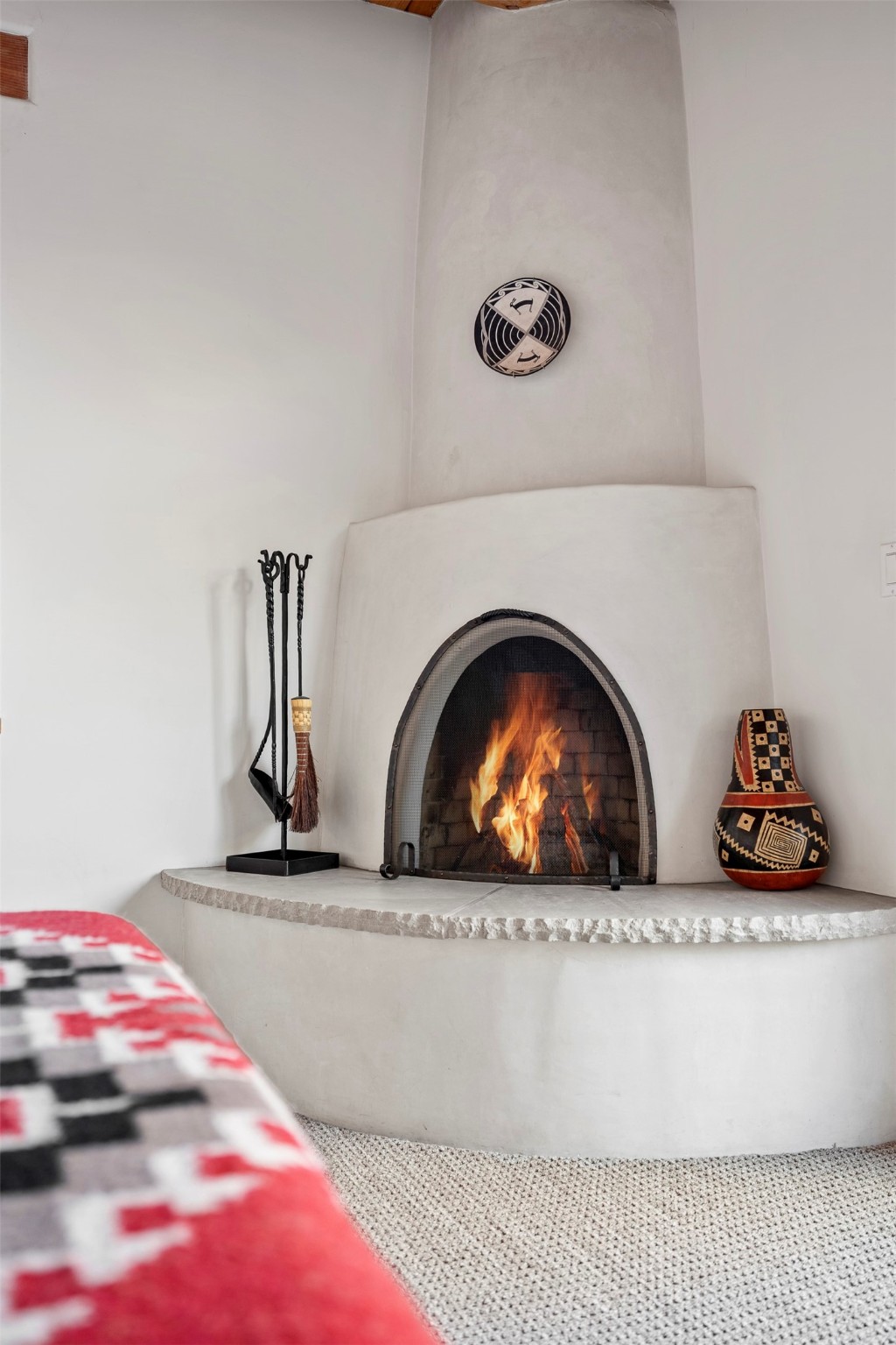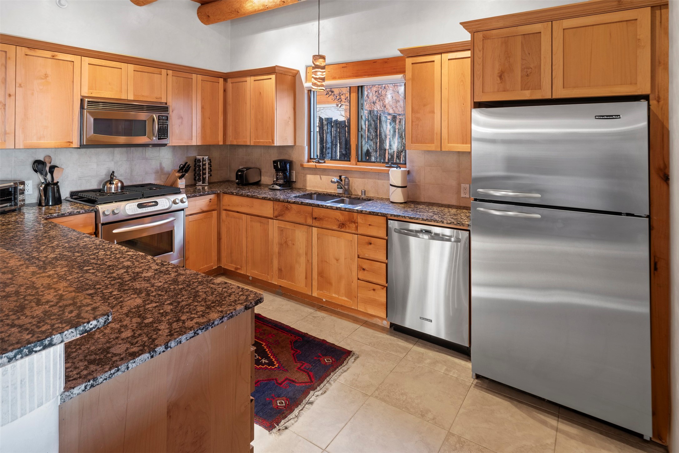 Nestled within the exclusive Bishop's Lodge Villas, just 2.5 miles north of the historic Santa Fe Plaza, this impeccably renovated villa blends the soul of traditional Pueblo architecture with the elegance of contemporary design. Adjacent to 200 acres of the Santa Fe National Forest, the property offers both a serene escape into nature and effortless access to the city's renowned cultural heartbeat. Spanning approximately 1,800 square feet, this freestanding unit enjoys extraordinary privacy, uninterrupted mountain views, and the coveted amenities of a gated community neighboring the world-class Bishop's Lodge Resort, managed by Auberge. Residents enjoy access to fine dining, a luxurious spa, equestrian facilities, and a sparkling community pool set against panoramic vistas. Inside, the villa reflects Santa Fe's timeless character with soaring ceilings, exposed vigas, hand-troweled plaster walls, and tile floors. A newly redesigned living room features floor-to-ceiling windows framing the desert landscape and a dramatic fireplace anchoring the space. Just above, the gourmet kitchen seamlessly opens to the dining area, creating a fluid setting for entertaining. Each of the two bedrooms is a private sanctuary, with kiva fireplaces, en-suite baths, and doors opening to secluded patios where desert breezes and vivid sunsets become part of the daily rhythm. Thoughtful upgrades--including a new roof, central HVAC, and modern appliances--make this residence move-in ready, while recent enhancements preserve its rustic yet refined aesthetic. Step outside to discover patios bordered by native landscaping, ideal for morning coffee, alfresco dining, or evenings spent under the brilliant New Mexico sky. For the adventurous spirit, hiking trails begin just beyond your doorstep, weaving through the protected wilderness of the National Forest.