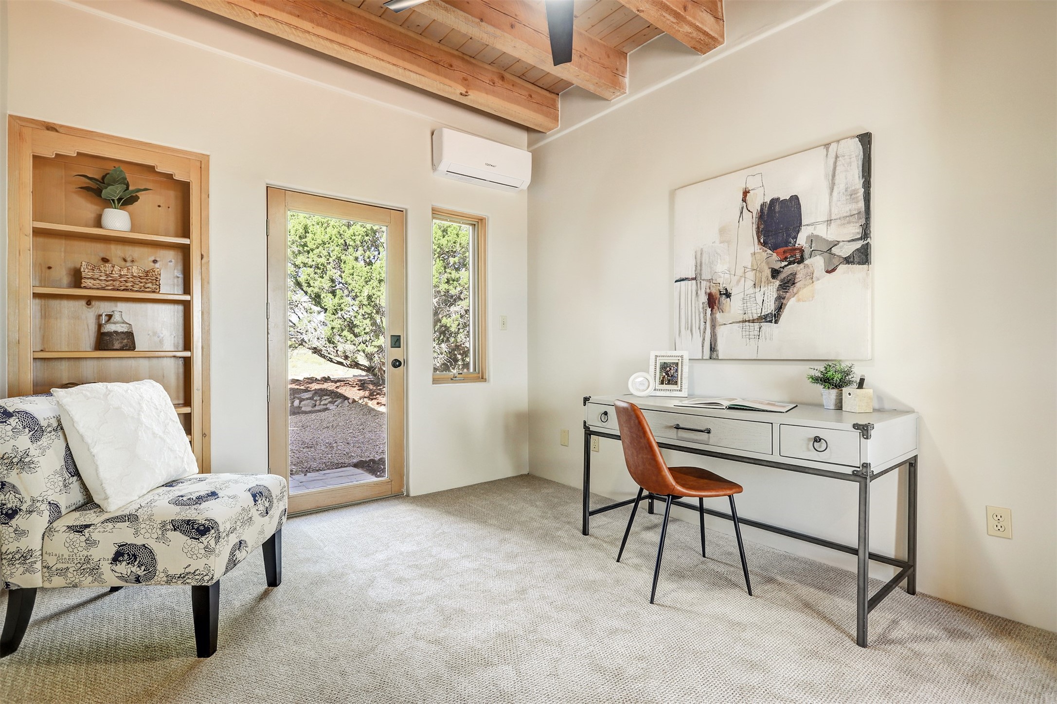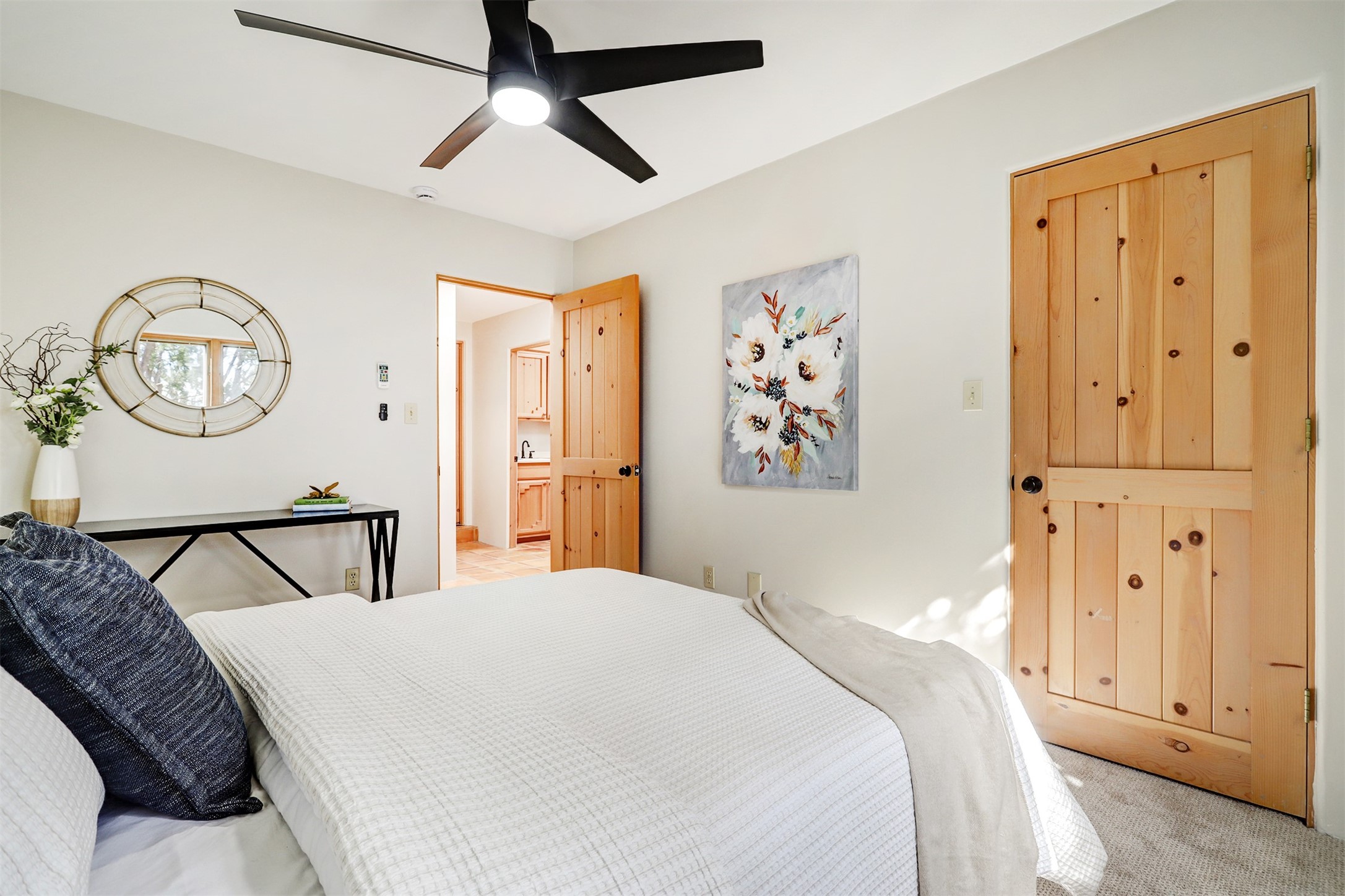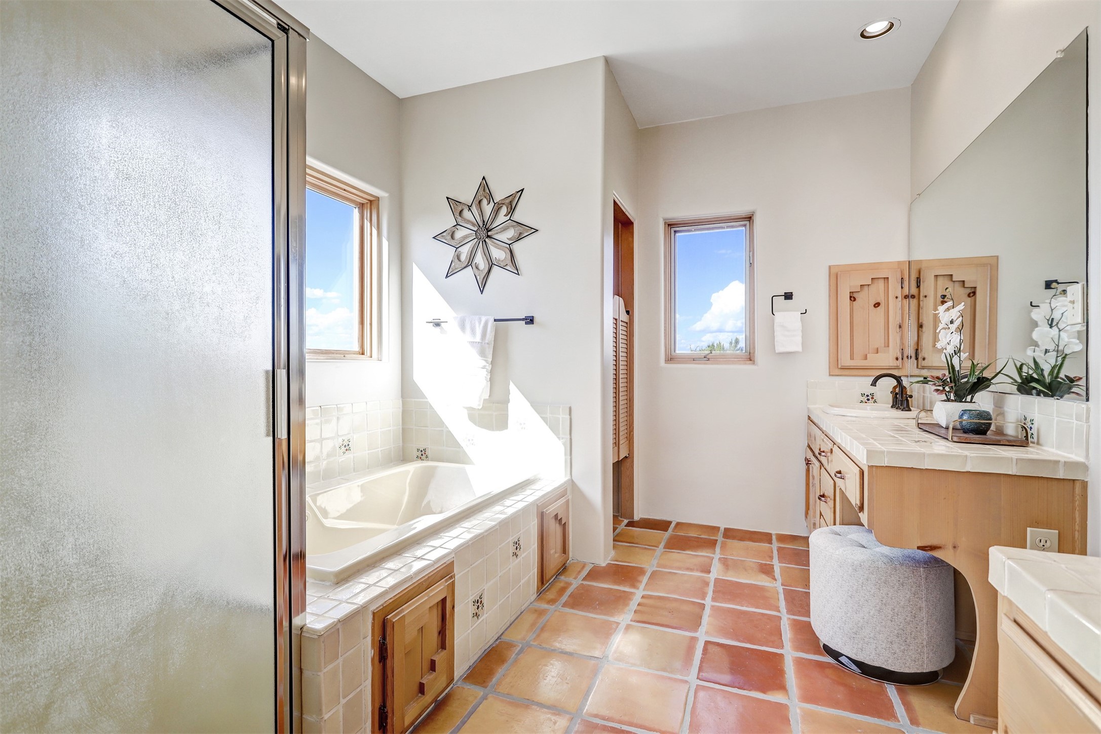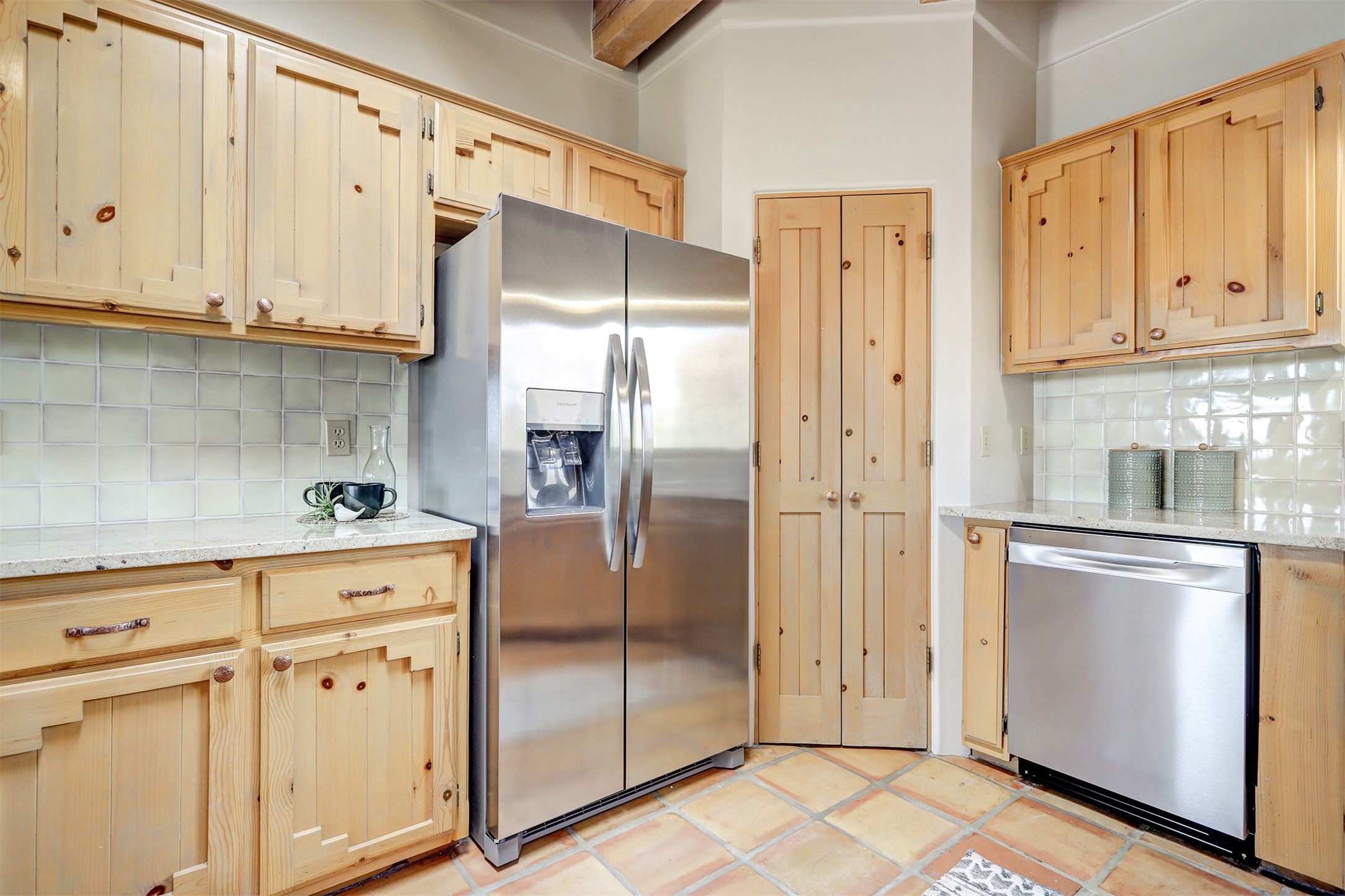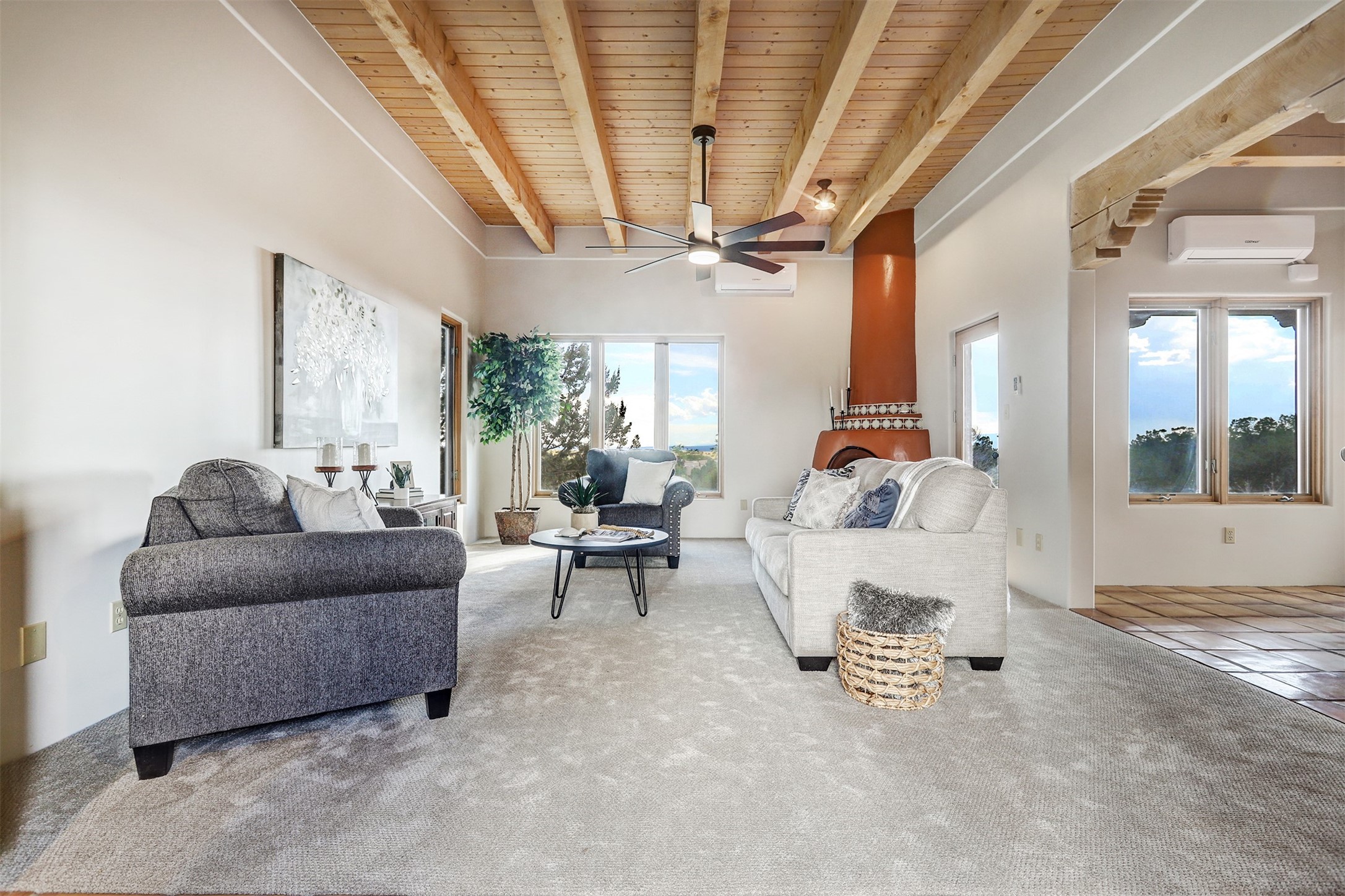 Step into this enchanting single-story home in Eldorado, where timeless Santa Fe character meets thoughtful modern upgrades. From the moment you enter, rich Saltillo tile and a stunning kiva fireplace set the tone, creating warmth and authenticity throughout. Vibrant colors, beautiful light fixtures, wood ceilings, beams, and corbels fill the home with unmistakable Santa Fe charm. The kitchen is truly the heart of the home -- beautifully refreshed with new countertops, a handmade backsplash, and new stainless steel appliances that make cooking a joy. The space itself glows with natural light and character. This home offers four bedrooms, providing flexibility for family, guests, or creative pursuits. The fourth bedroom can easily serve as a home office, studio, or be adapted for many possibilities. Two bathrooms blend comfort and style with updated finishes. Additional upgrades include a new TPO roof, fresh stucco, new hot water heater, mini-split system, fresh interior and exterior paint, and plush carpeting in the bedrooms. Every update was made with care, ensuring you can move right in and enjoy. Beyond the home, Eldorado offers a vibrant lifestyle with a wealth of amenities. The Community Center features a swimming pool, tennis and pickleball courts, basketball courts, a playground, and a dog park. Residents enjoy access to hiking and biking paths, a disc golf course, and the Community Preserve. The area hosts a variety of events, including yoga, Tai Chi, and hiking groups, fostering a strong sense of community. Santa Fe's world-class dining, galleries, and festivals are just a short drive away. Beautifully updated and thoughtfully designed, this Eldorado gem is ready to welcome you home.