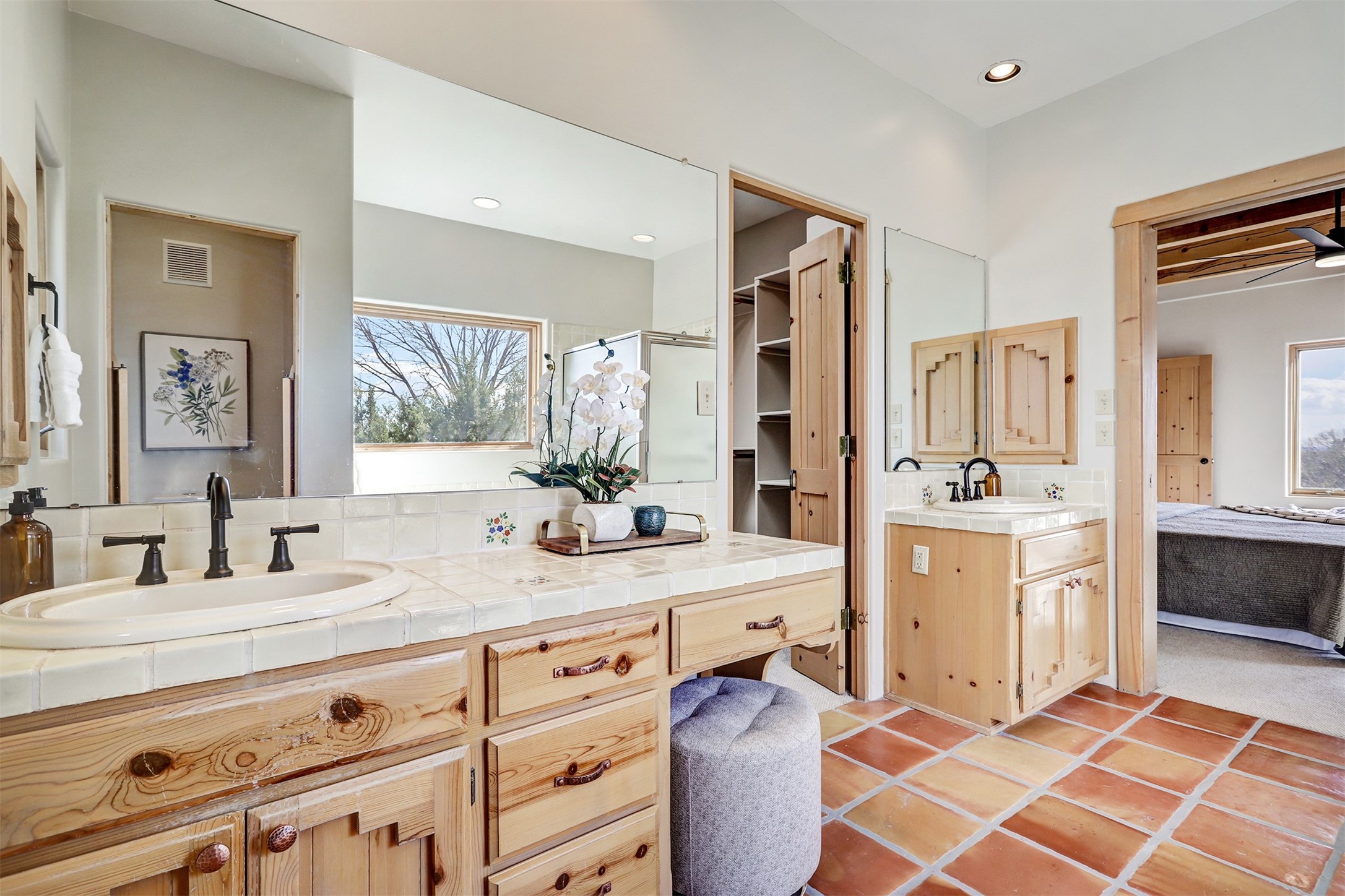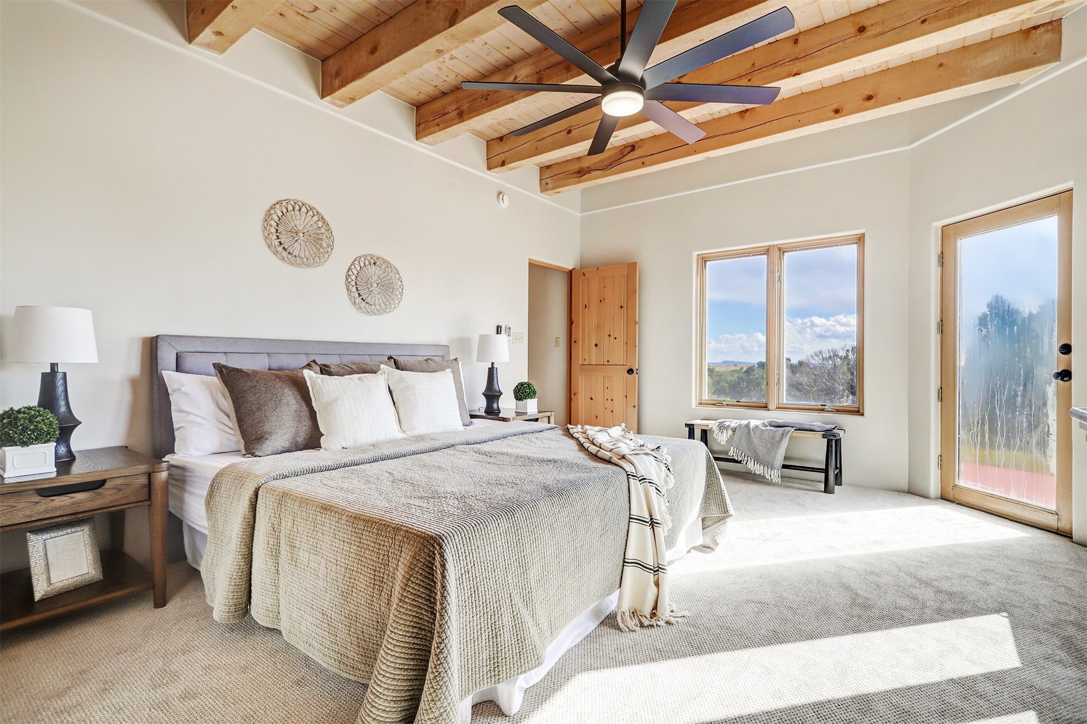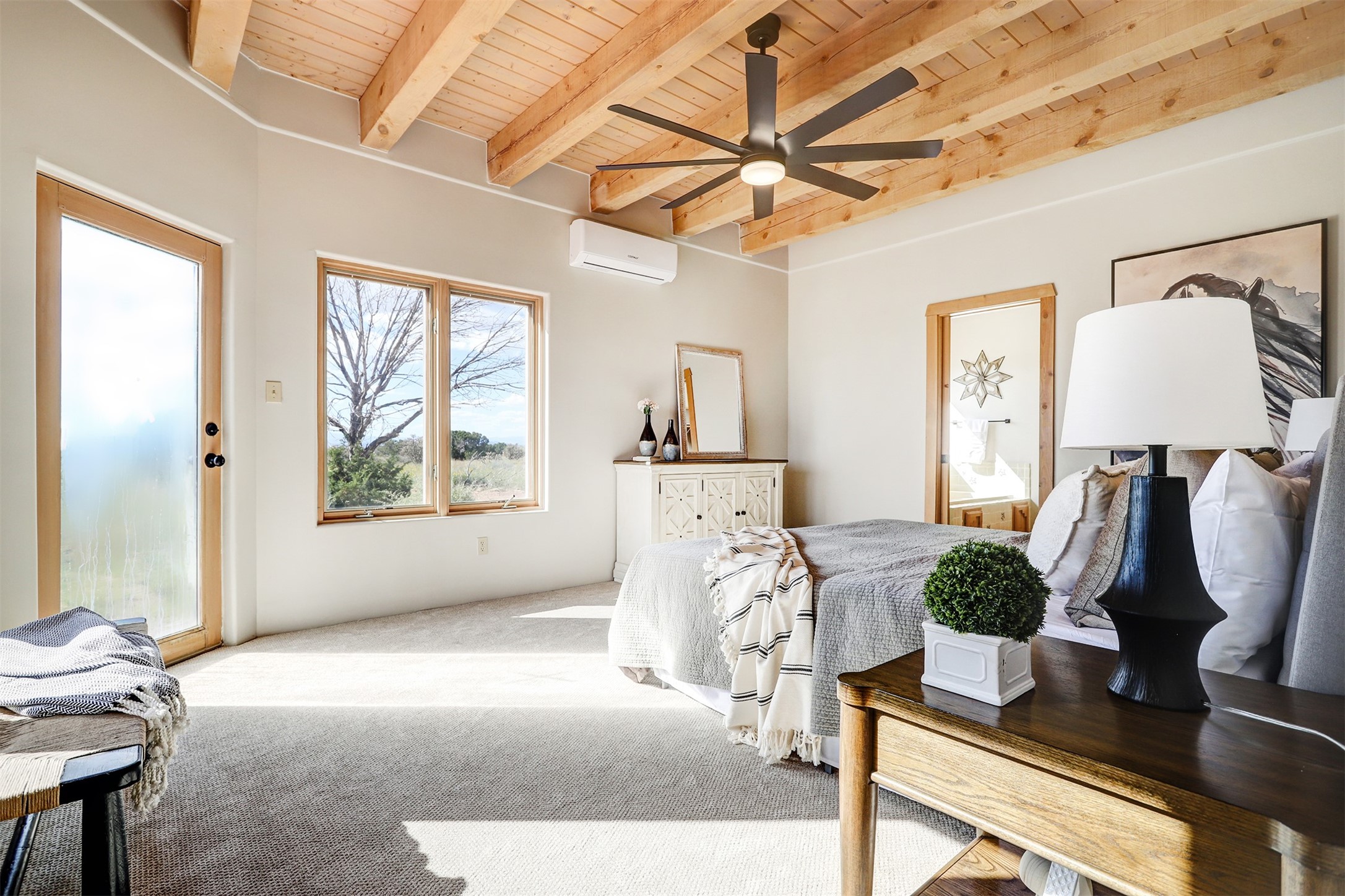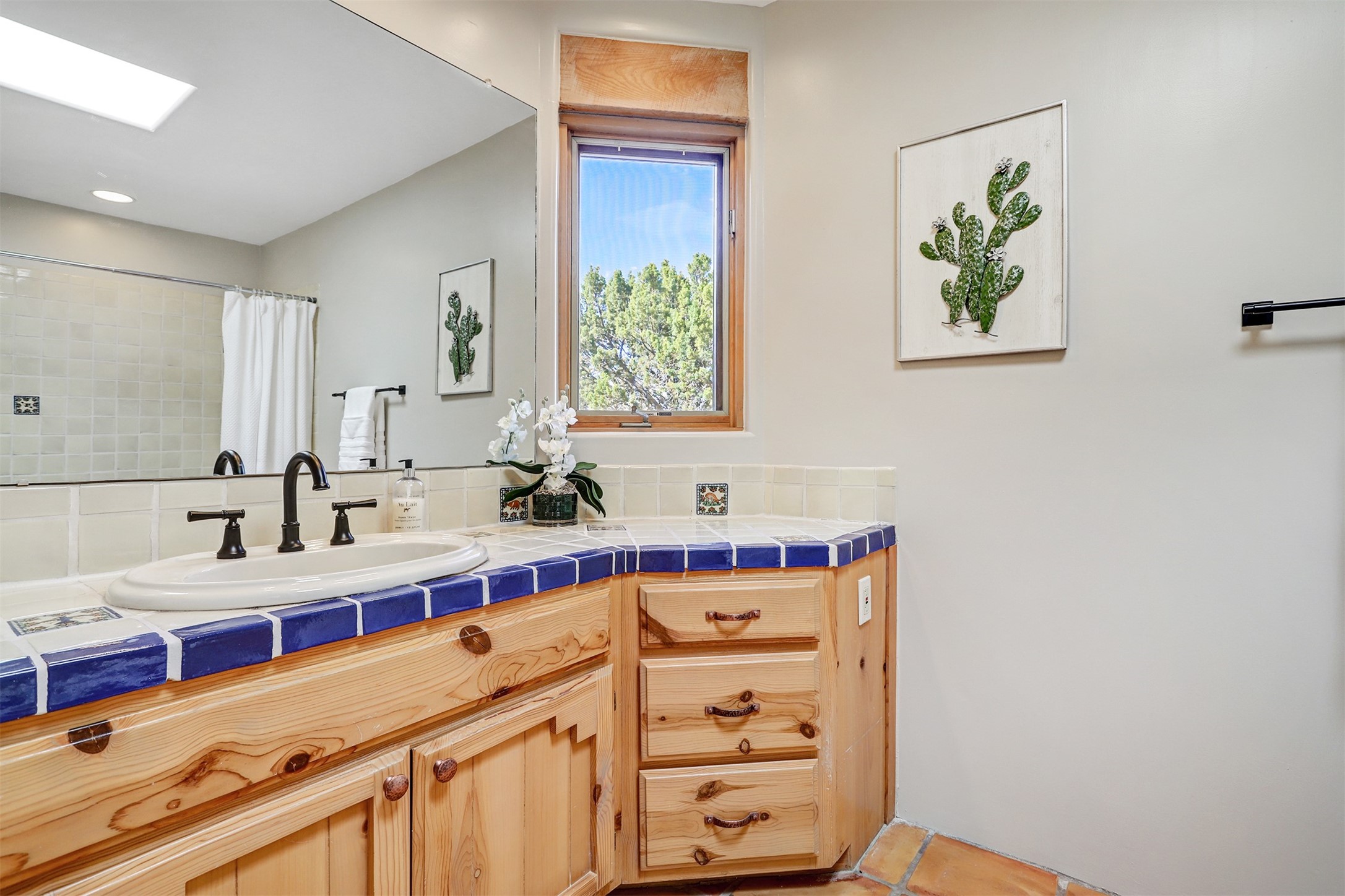 Step into this enchanting single-story home in Eldorado, where timeless Santa Fe character meets thoughtful modern upgrades. From the moment you enter, rich Saltillo tile and a stunning kiva fireplace set the tone, creating warmth and authenticity throughout. Vibrant colors, beautiful light fixtures, wood ceilings, beams, and corbels fill the home with unmistakable Santa Fe charm. The kitchen is truly the heart of the home -- beautifully refreshed with new countertops, a handmade backsplash, and new stainless steel appliances that make cooking a joy. The space itself glows with natural light and character. This home offers four bedrooms, providing flexibility for family, guests, or creative pursuits. The fourth bedroom can easily serve as a home office, studio, or be adapted for many possibilities. Two bathrooms blend comfort and style with updated finishes. Additional upgrades include a new TPO roof, fresh stucco, new hot water heater, mini-split system, fresh interior and exterior paint, and plush carpeting in the bedrooms. Every update was made with care, ensuring you can move right in and enjoy. Beyond the home, Eldorado offers a vibrant lifestyle with a wealth of amenities. The Community Center features a swimming pool, tennis and pickleball courts, basketball courts, a playground, and a dog park. Residents enjoy access to hiking and biking paths, a disc golf course, and the Community Preserve. The area hosts a variety of events, including yoga, Tai Chi, and hiking groups, fostering a strong sense of community. Santa Fe's world-class dining, galleries, and festivals are just a short drive away. Beautifully updated and thoughtfully designed, this Eldorado gem is ready to welcome you home.