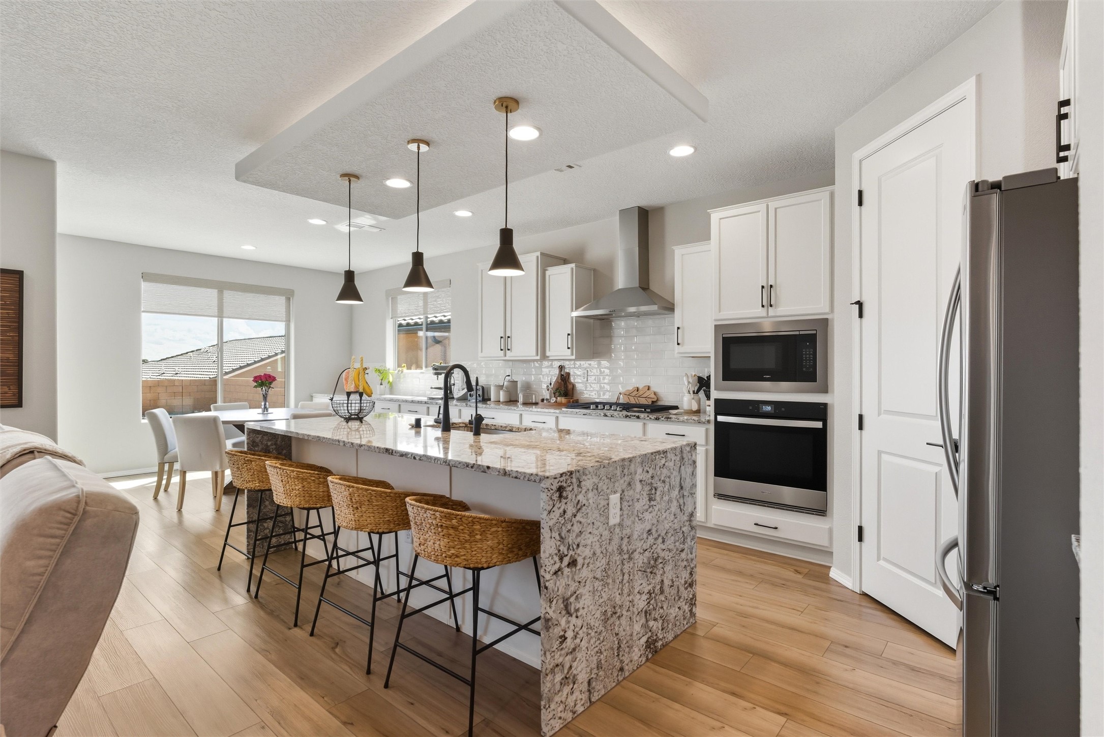 Built in 2024 by Pulte, this beautiful 3-bedroom, 2-bathroom home in the Colibri subdivision offers 2,222 sq. ft. of living space on a premium lot with the popular Stella floor plan. Over $65,000 in owner upgrades elevate the home far beyond new construction.At the heart of the home, the kitchen features a waterfall-edge granite island, upgraded cabinetry, and premium appliances. Bathrooms feel spa-like with upgraded tile and glass shower enclosures, while the living room is anchored by a gas fireplace -- perfect for cozy Santa Fe evenings. A flex dining/office space adds versatility to match your lifestyle.What truly sets this property apart is efficiency. A 6.8 kW solar system and 240V ChargePoint Level 2 EV chargermake utility bills exceptionally low -- charging an EV costs just $2-3 for 200+ miles of driving, with monthly totals averaging only $6-$16. Added upgrades include custom blinds, low-maintenance landscaping with irrigation, a whole-home water filtration/softener/RO system, extended gas line in the yard for a fire pit or outdoor kitchen, and a Vivint smart security camera system. Appliances (French door refrigerator, washer, and dryer) are included. Home is prewired for ceiling fans and cabinets are soft close. Located just 15 minutes from downtown Santa Fe, the home provides quick access to Highway 599, I-25, Cerrillos Road, and Highway 14, making commutes effortless. Shopping, dining, Walmart, parks, Santa Fe Brewing Co., El Parasol, and Santa Fe Community College are all close by.The sellers are even willing to sell the home fully furnished depending on the offer -- a true turnkey opportunity in one of Santa Fe's newest and sweetest neighborhoods.Property Website: https://sites.engagingmediamarketing.com/32-Wirecrest-Ln