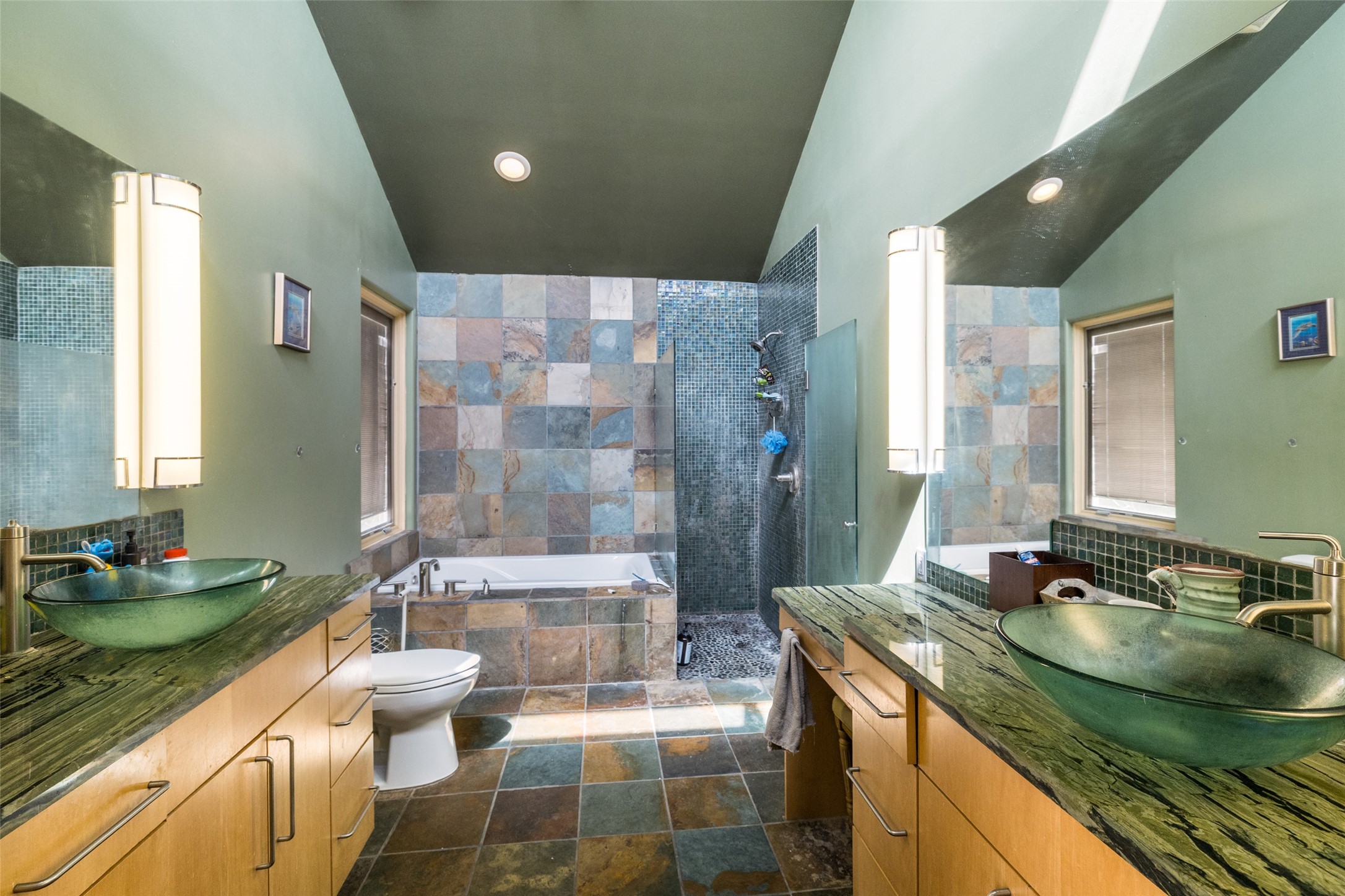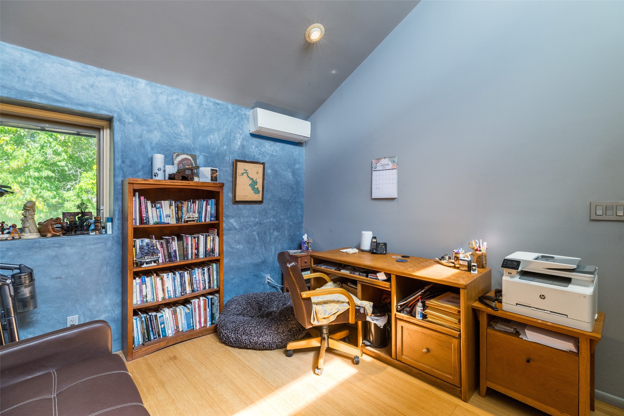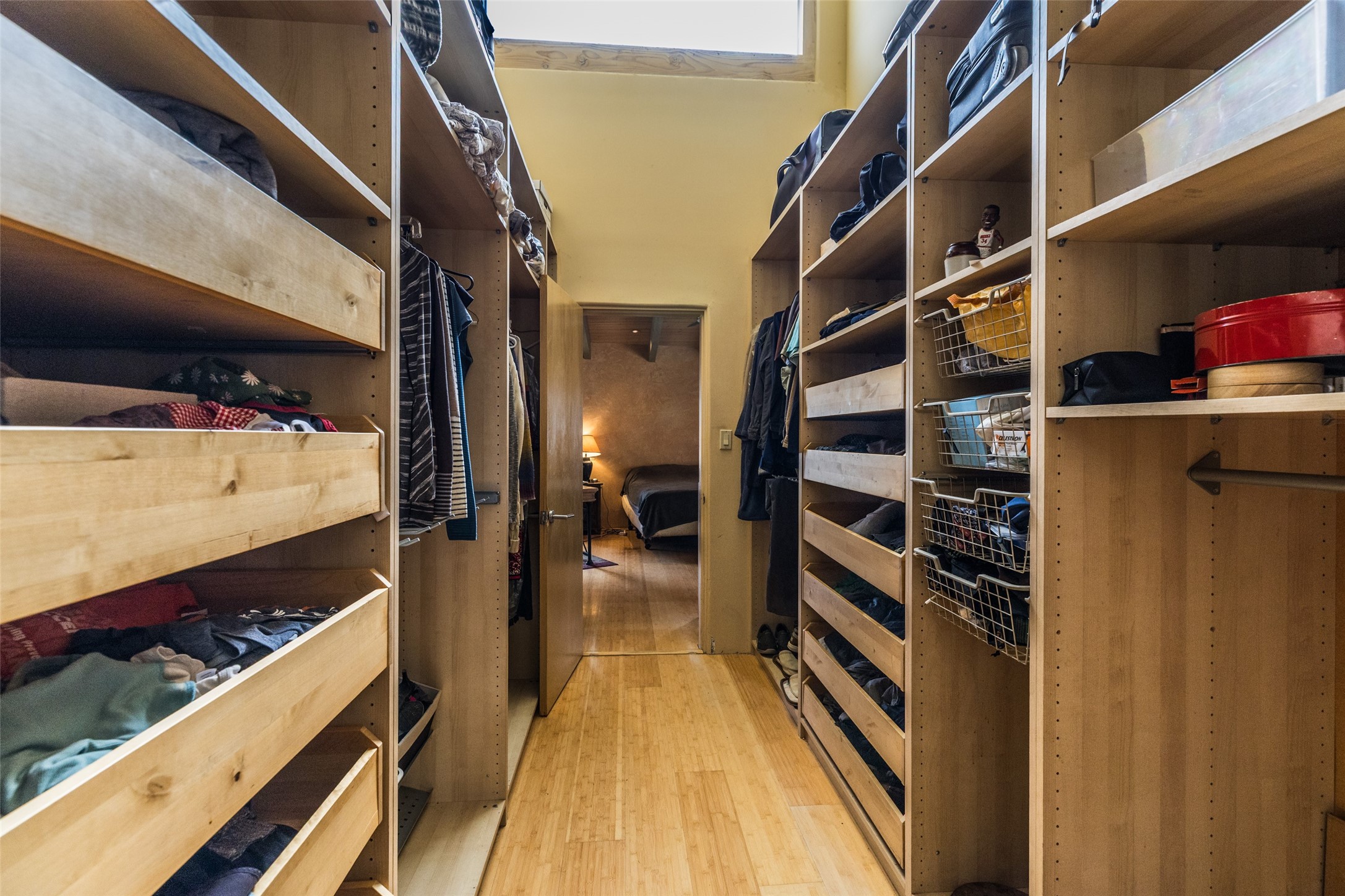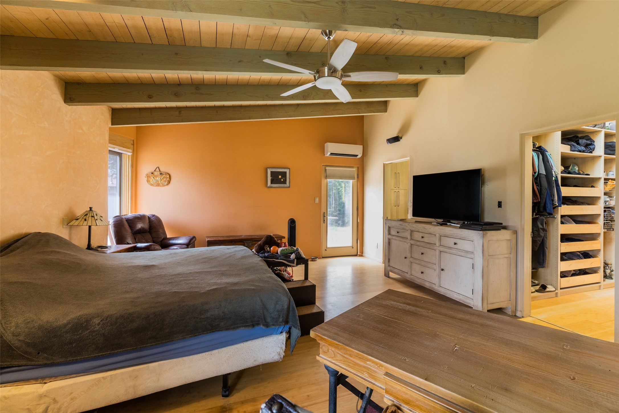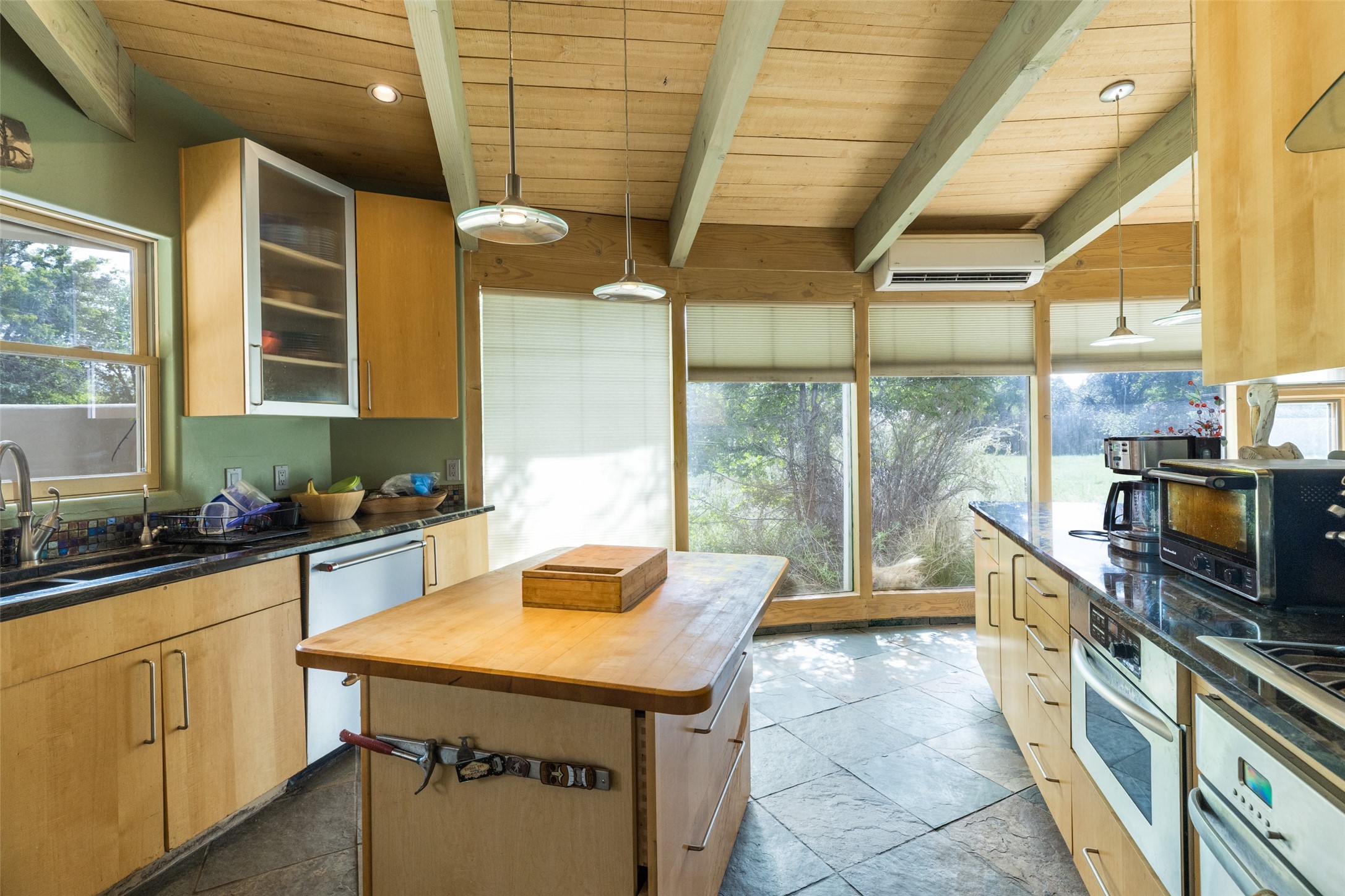 Located just 20 minutes from both Los Alamos & Santa Fe, within the Nambe/Pojoaque greenbelt, this unique property sits on over an acre of land with water rights and a valve for flood irrigation. Outdoors, enjoy mature cottonwoods along with apple, apricot, and pear trees in a lush, meadow-like setting. The Trombe wall in the living area utilizes passive solar principles! The energy-efficient home also features radiant floor heating, mini splits, a durable metal roof, bamboo & slate tile flooring, granite countertops, & wood-beamed ceilings. The open kitchen flows seamlessly into the great room, while the primary suite includes a huge walk-in closet & private patio. Use the heated garage space to park up to four cars or to create a unique studio or flex area. Don't miss this opportunity!