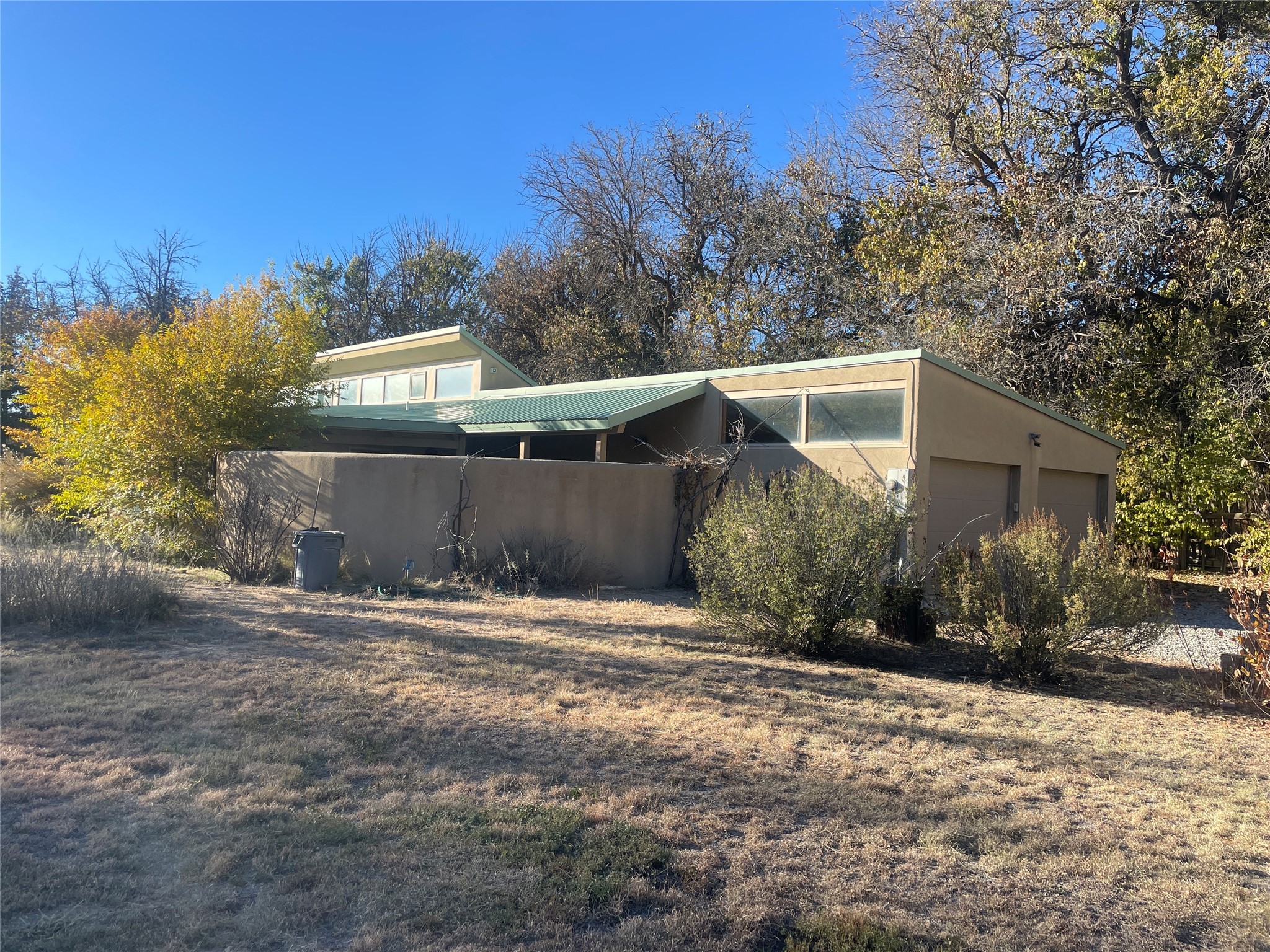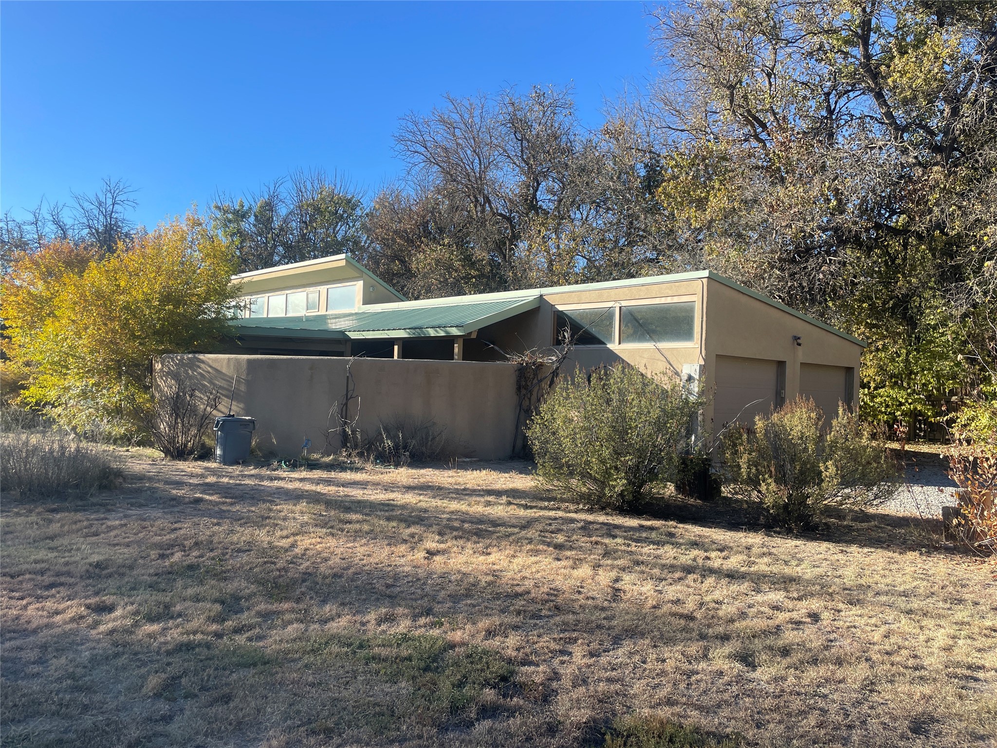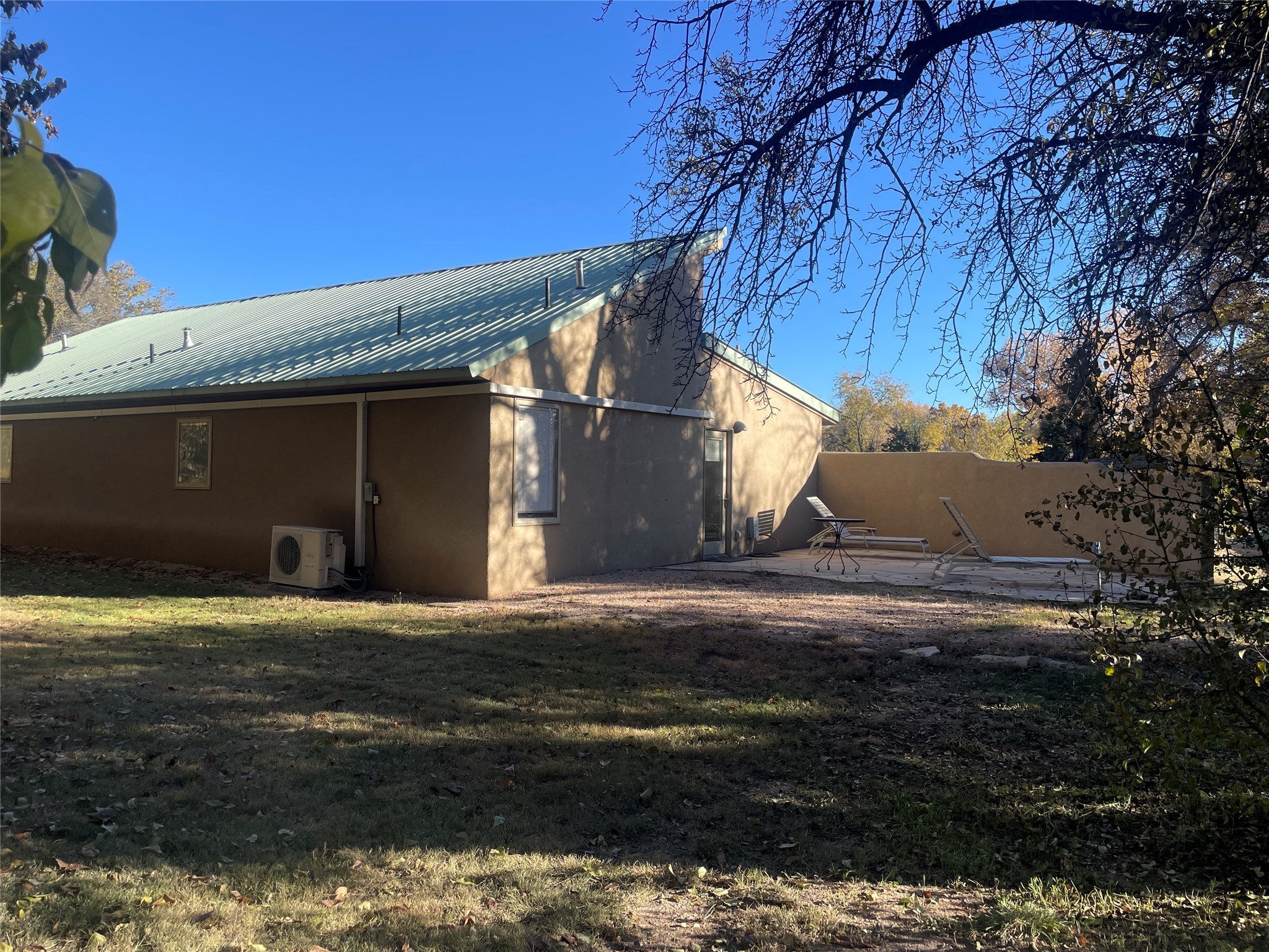 Located just 20 minutes to Los Alamos or Santa Fe, within the Nambe/Pojoaque greenbelt, this unique property sits on over an acre of land w/ WATER RIGHTS & a valve for flood irrigation. Enjoy mature cottonwoods, Osage orange, apple, apricot, & pear trees in a lush, meadow-like setting. The Trombe wall in the living area & bedroom utilizes passive solar principles! Other features include radiant floor heat, mini splits, a durable metal roof, bamboo & slate tile flooring, granite countertops, & wood-beamed ceilings. The open kitchen flows seamlessly into the great room, while the primary suite includes a huge walk-in closet & private patio. Use the 840 sq ft (80 ft X 21ft) heated garage space to park up to four cars or to create a unique studio or flex area. Don't miss this opportunity!