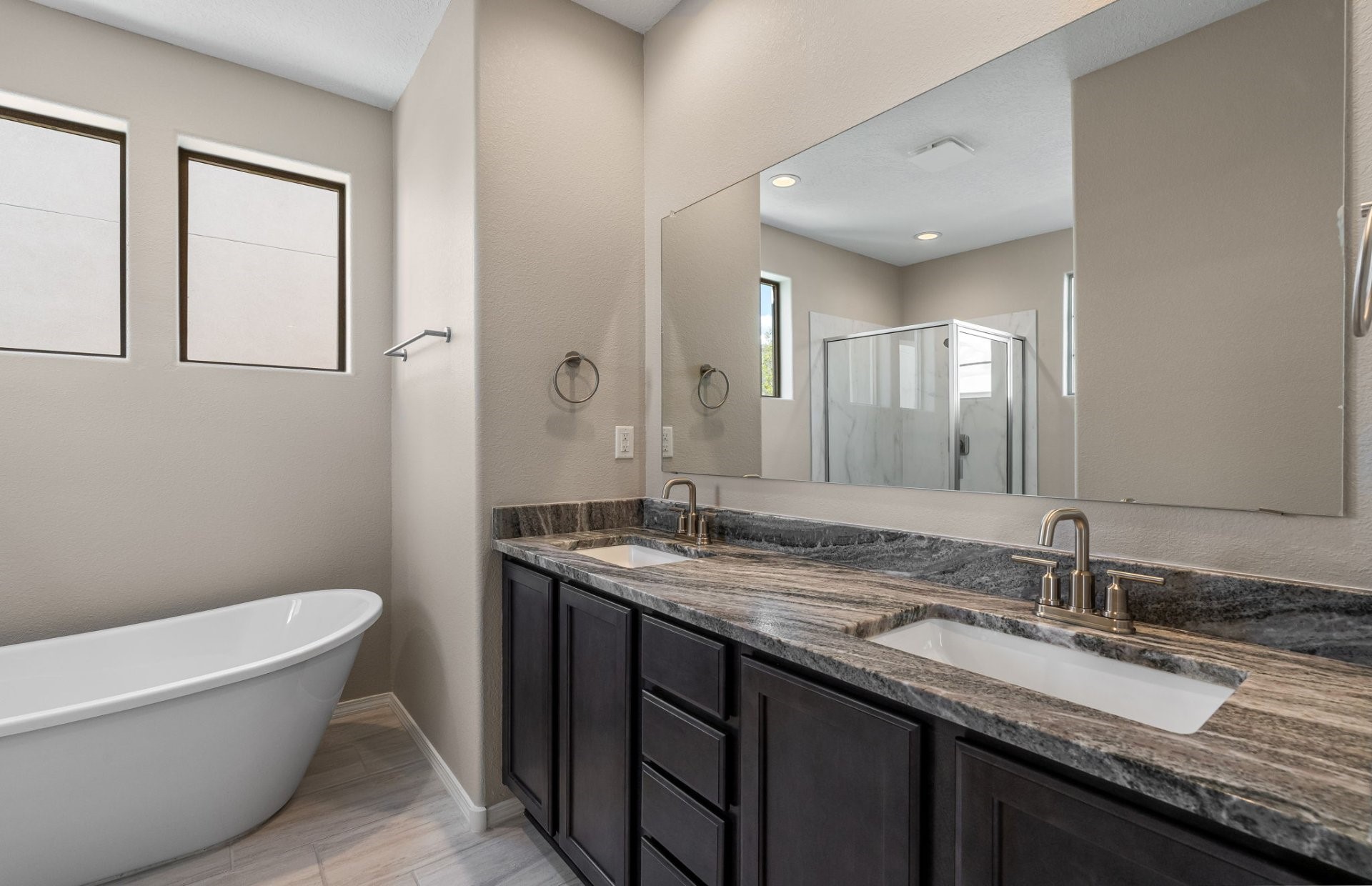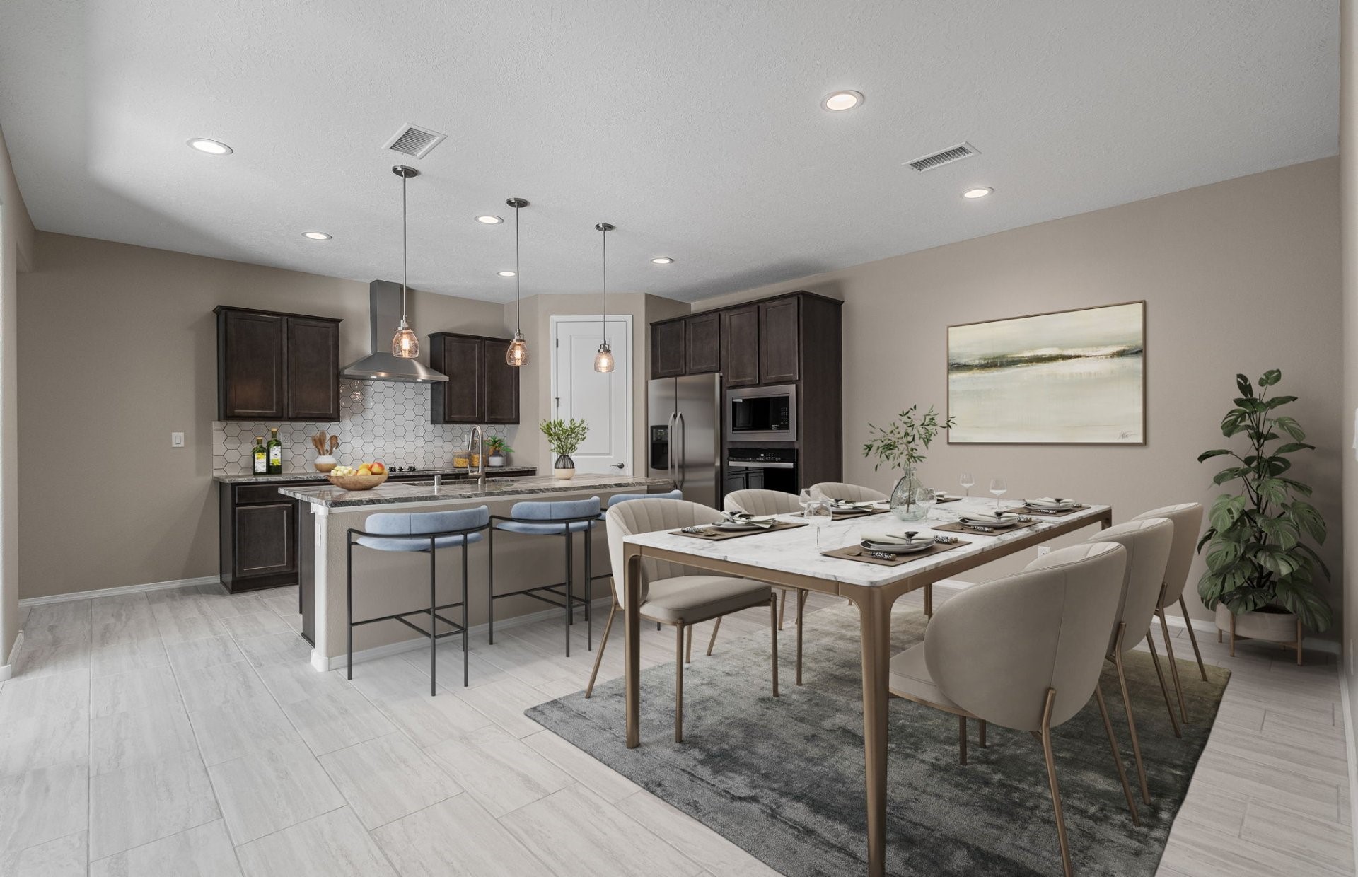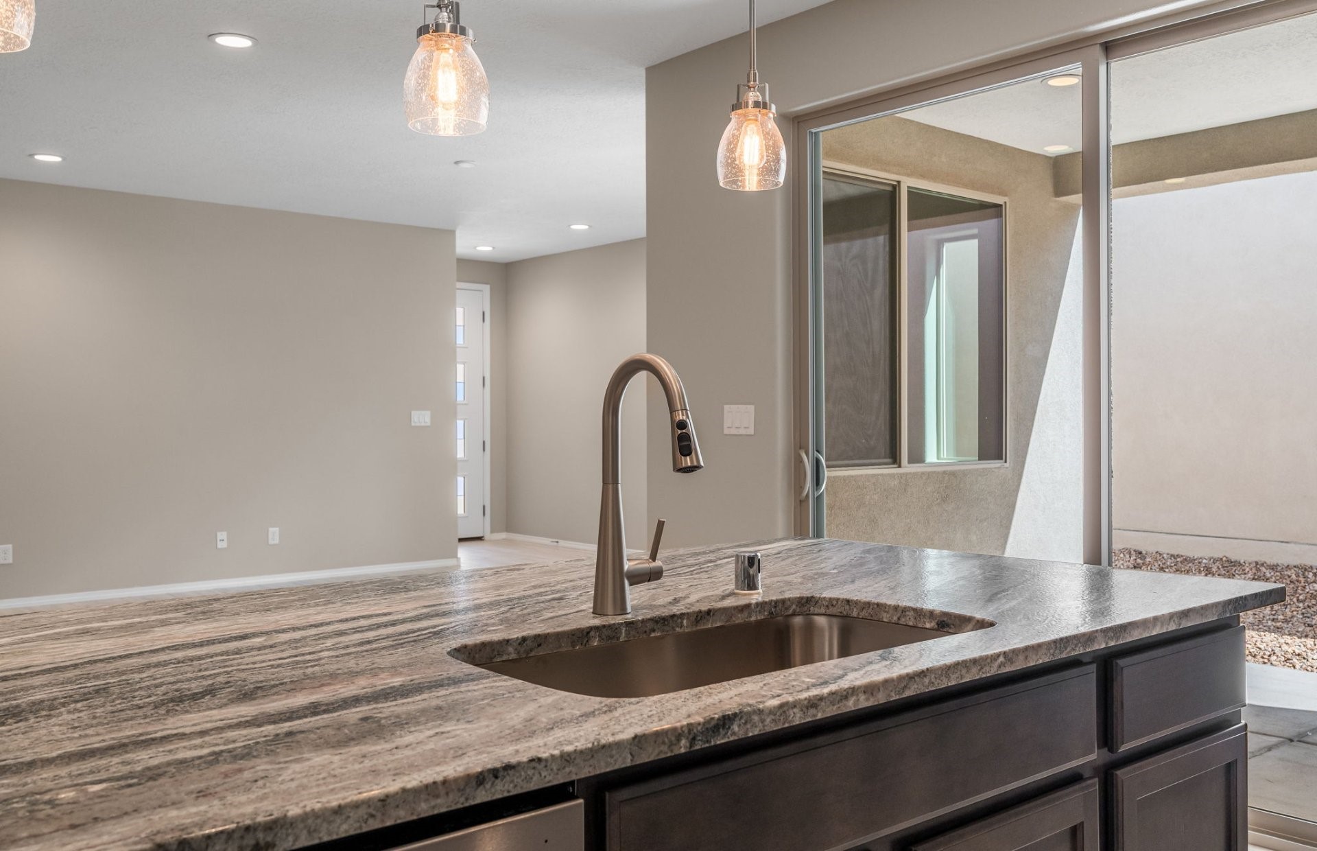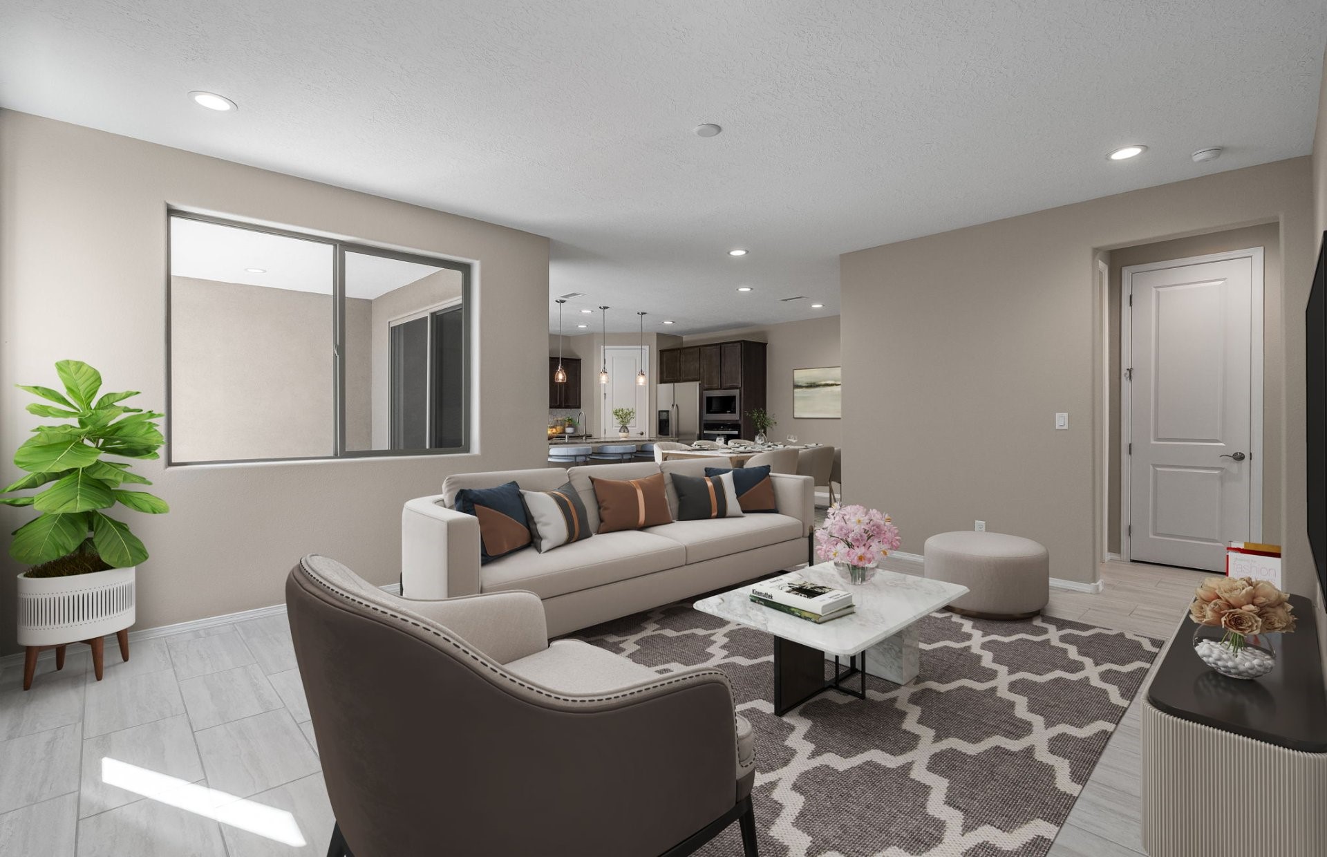 Ready July 2025! Step into this beautiful single-story home featuring a modern open-concept layout perfect for today's lifestyle. The heart of the home is an expansive kitchen with a huge island, ideal for cooking, entertaining, and gathering. The luxury owner's bath offers a spa-like retreat, complete with premium finishes. With 2 spacious bedrooms and a versatile open space, this home provides ample room for both relaxation and productivity. Enjoy seamless indoor/outdoor living on the large patio, perfect for entertaining or unwinding. The full 2-car garage offers plenty of space for vehicles and storage. This home is a true gem, and you won't want to miss it!