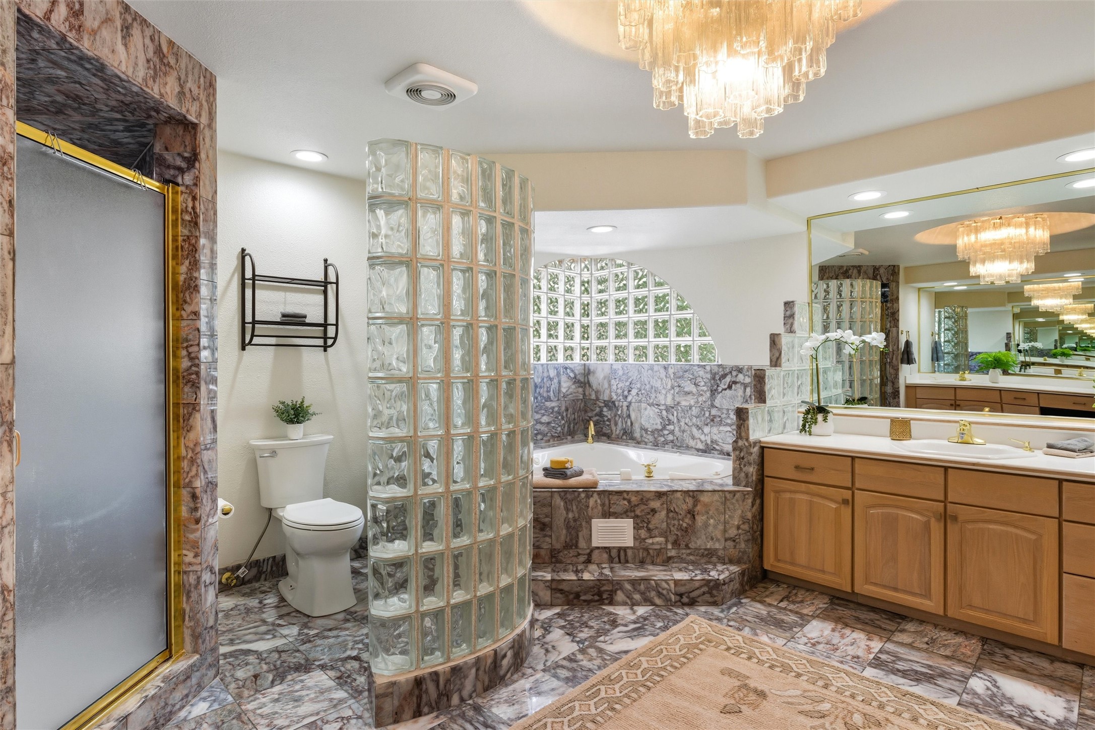 North Mesa Luxury Estate -- Over 5,000 Sq. Ft. on Two AcresThis remarkable North Mesa estate is more than a home -- it's a sanctuary. Nestled on two private acres and offering over 5,000 square feet of beautifully designed living space, every detail here has been crafted with comfort, style, and entertaining in mind.From the moment you step through the custom double doors, the soaring open staircase sets a dramatic tone, while the thoughtful layout flows gracefully throughout. With three generous living spaces, two anchored by striking fireplaces, there's room to gather, relax, and enjoy life's moments in style. The updated eat-in kitchen is both elegant and practical, featuring a built-in buffet for added storage and seamless access to the courtyard -- perfect for al fresco dining and summer evenings under the stars. The formal dining room is the ideal blend of intimate and sophisticated, inviting long conversations over dinner.The home offers four bedrooms plus a bonus wellness room with sauna, creating a true retreat. A main-level en-suite bedroom provides convenience for guests or multi-generational living. Upstairs, you'll find an additional living space with French doors leading to a private deck, plus a dedicated media room paired with a wet bar -- ideal for movie nights, game-day gatherings, or quiet evenings with friends.The primary suite is a haven of its own -- expansive, light-filled with beautiful bay windows, and opening to a private deck. With dual closets and a spa-inspired bath featuring two vanities, an oversized soaking tub, and a separate shower, it's a space designed for relaxation and rejuvenation.Outdoors, the property shines just as brightly: A paved loop driveway leading to two detached garages, including one outfitted for RV storage. A pull-through garage accommodating up to six vehicles. A flourishing orchard with irrigation, plus direct access to county land and scenic trails. A private fenced courtyard with artificial turf, an entertainer's patio, and a hot tub tucked into a quiet corner -- the perfect place to unwind.This estate offers a rare combination of scale, sophistication, and serenity -- a home where every day feels like a getaway.