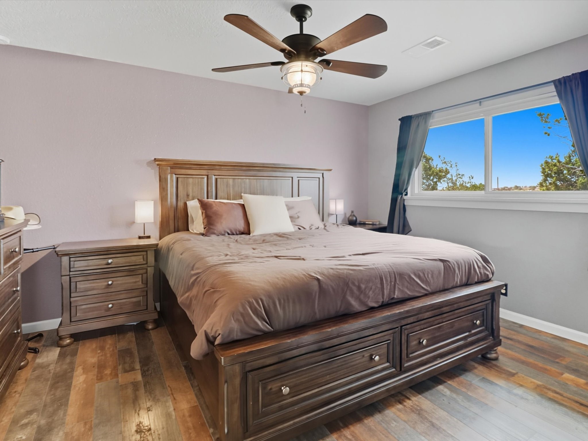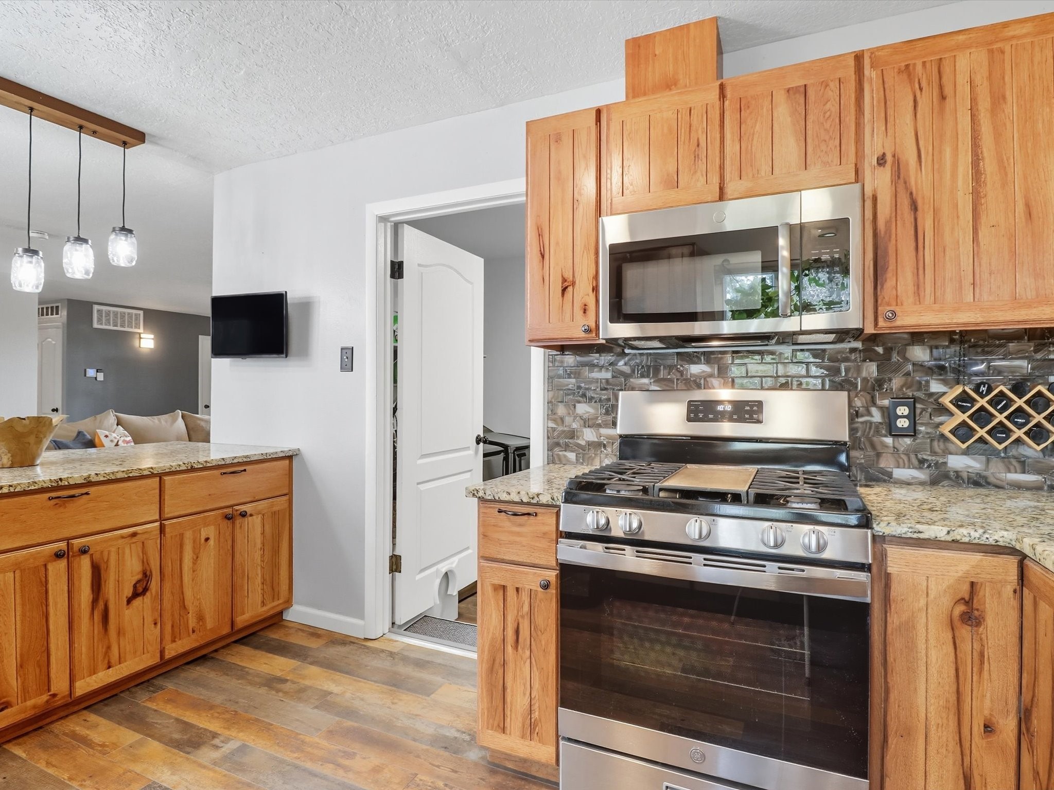 Discover peaceful, single-level living on a sprawling 3-acre lot in Edgewood, where modern luxury meets tranquil country charm. The heart of this home is the fully remodeled kitchen, featuring custom-crafted cabinetry, sleek granite countertops, and new luxury vinyl flooring that flows throughout the home. In 2021 new windows were put in the home, including a large living room window that frames a spectacular view of the mountains and surrounding landscape. The property includes a fully fenced acre ideal for pets or outdoor recreation, leaving 2 acres for horses or recreational vehicles. The spacious, detached garage offers ample room for vehicles, storage, or a workshop, catering to any hobbyist. No HOA offers unmatched freedom and flexibility. This property is full of upgrades and ready for you to move in.