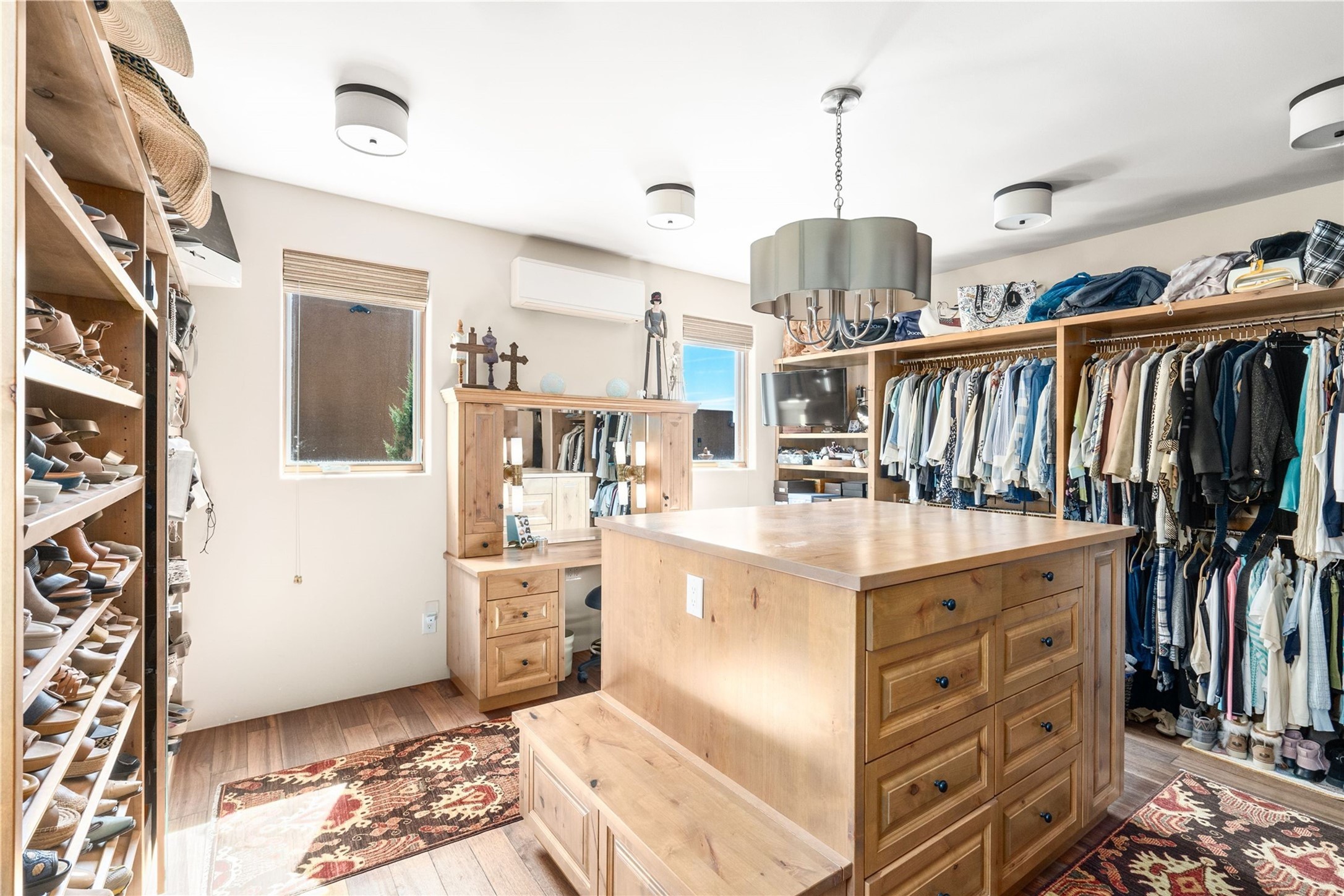 In the tree-studded rolling hills northwest of town are Las Campanas and a host of other developments and neighborhoods of larger, private lots and newer homes, most with city services and utilities. The land here sits between the city and the arroyos that carry rainwater to the Rio Grande, just a few miles west, creating a landscape almost like ocean waves rolling into shore.
