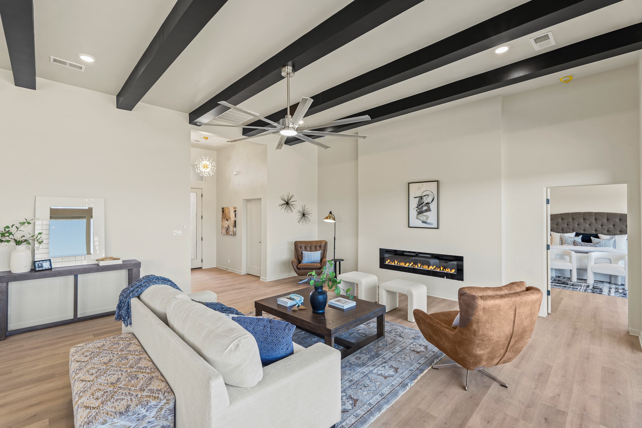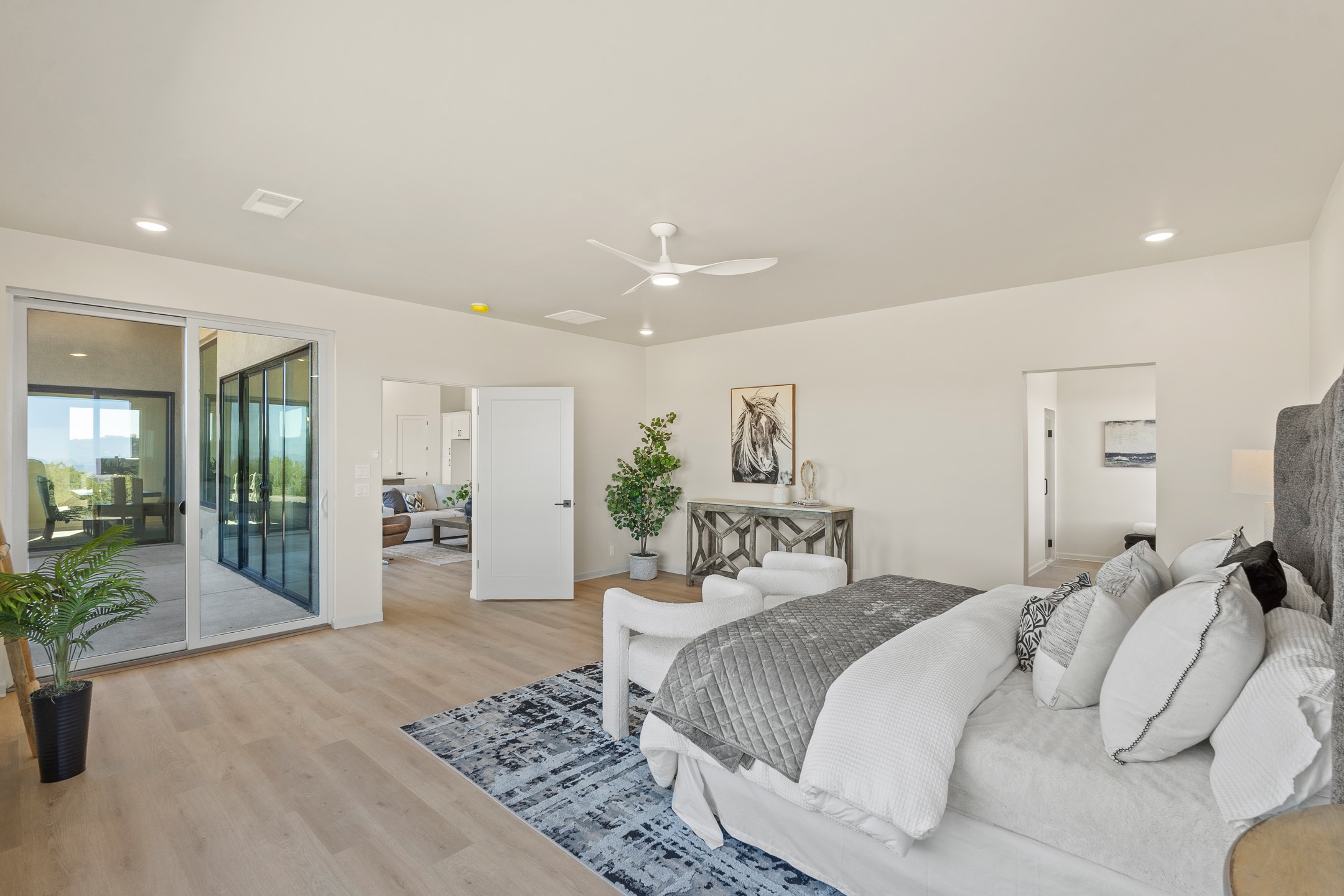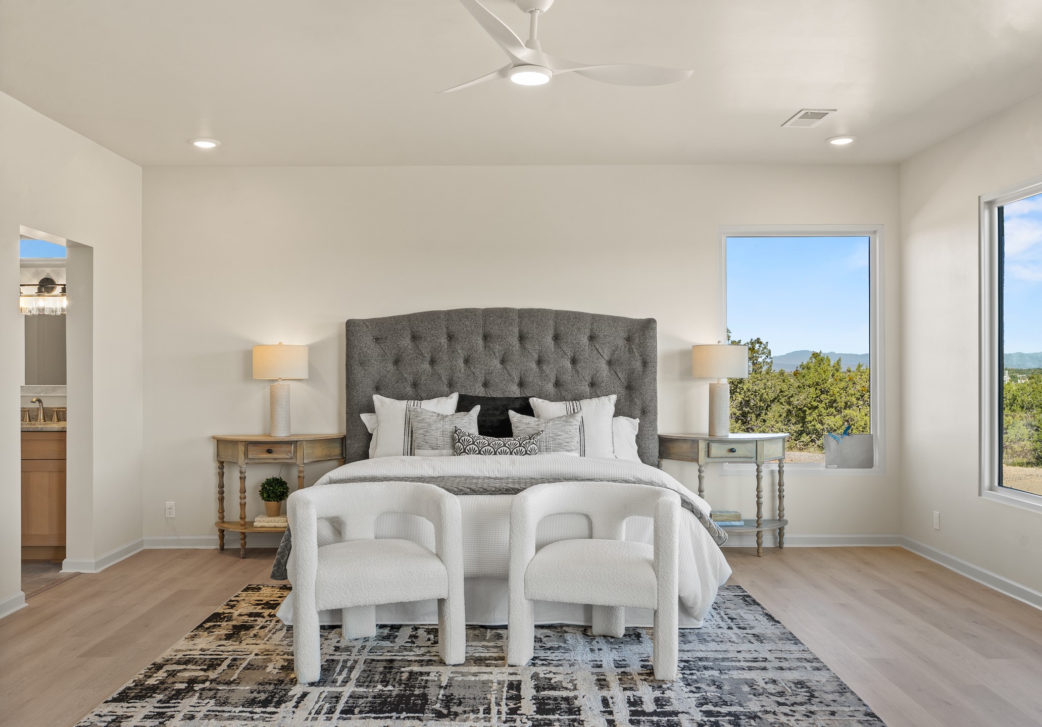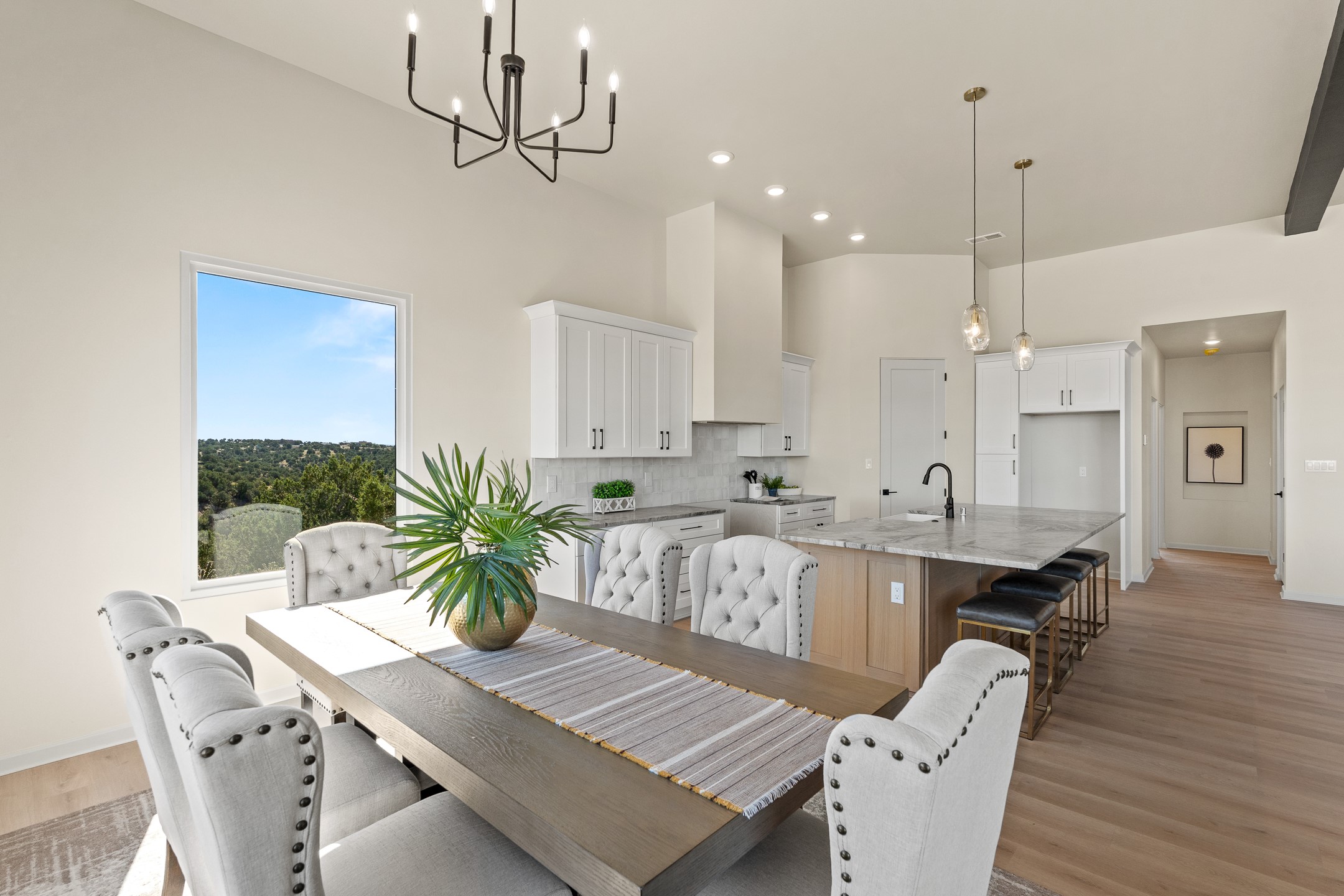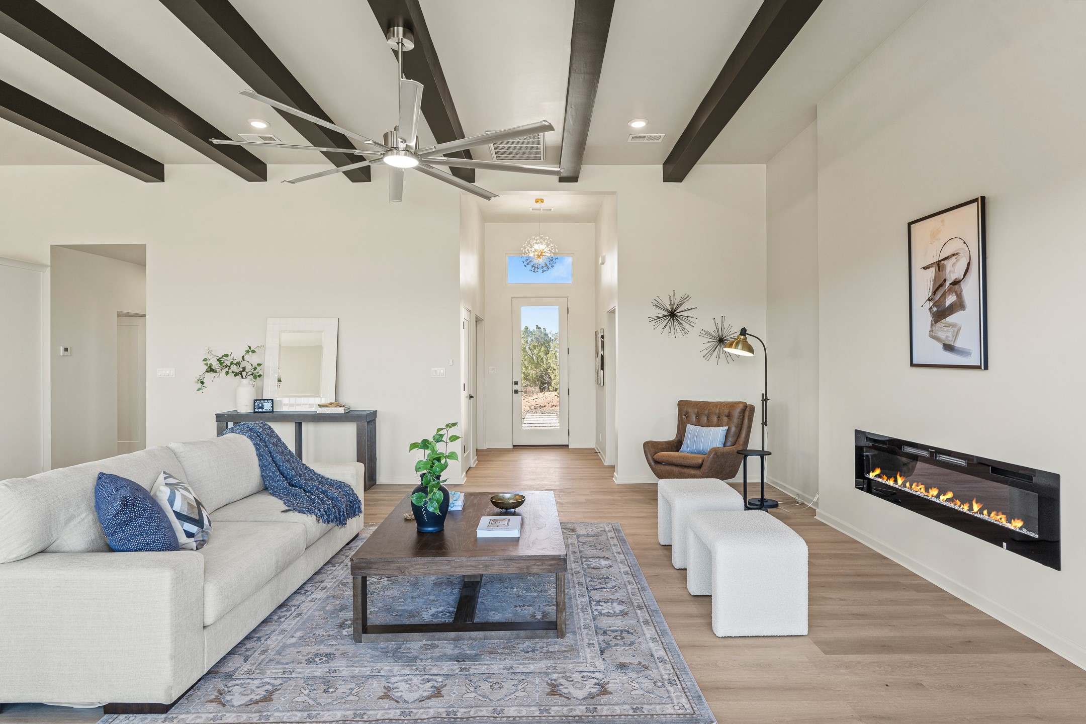 Just completed and ready for occupancy! Mountain views from every window in this new custom built contemporary pueblo style home with open floor plan situated on a huge 10.0 +/- ac. private lot in Lamy. Convenient access to US-285, the Agora shopping center, bank and restaurants. Perfect for indoor and outdoor entertaining. Open kitchen/family/dining room has floor to ceiling windows and double sliding glass doors to take in the fabulous views and access to the portal. The contemporary kitchen has a huge island bar and large walk in pantry. Every room has large picture windows with fabulous mountain views. Owner's bath has double sinks, soaking tub and large walk in shower room with double shower heads and rain showers and a large walk in closet. Home features contemporary style vigas in living areas. Three bedrooms with good separation and 2 baths. A guest house and equestrian structures are allowed, as well as 10 horses or cattle. (1 large animal per acre.) No HOA, recreational vehicles are allowed if parked inconspicuously. Connected to the Eldorado community water system. Located only 20 minutes from Downtown Santa Fe this home offers gorgeous views, rural living and easy access to everything Santa Fe has to offer. This home has it all; new home, fabulous views, great outdoor spaces, contemporary open floor plan, large private lot. Buyer to verify all information and Covenants. Seller gives $4000 credit to the buyer at closing for Range, dishwasher and microwave. Open House Sunday, October 5. 1:00 - 4:00 PM.